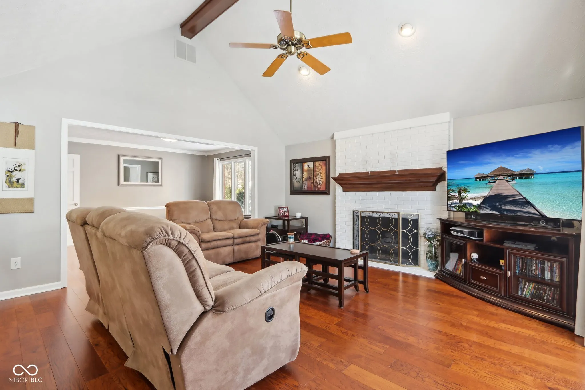 This all-brick ranch is a perfect blend of charm, comfort, and modern updates. Featuring 3 spacious bedrooms, 2 full bathrooms, an office, and a formal dining room, this home offers plenty of space for both living and entertaining. Work from home? This office is perfect for you. The updated kitchen is a chef’s delight, boasting granite countertops, stainless steel appliances, a gas cooktop, a large island, a planning center, and a cozy breakfast nook. The real hardwood flooring adds warmth and timeless appeal. Updated flooring in Kt & nook & added LED lighting. The master suite has been thoughtfully updated, creating a luxurious retreat. New stylish ensuite added offers spa like appeal & privacy. Guest bath refreshed & offers double sinks. Laundry Room has additional storage and soaking sink. This home offers a ton of storage solutions including 800 sqft of finished attic space. This space offers new skylights, all walls, ceiling, floors caulked & painted-electricity, heat & a/c. Storage closet on main level ideal for a spiral staircase leading to this attic area. Step outside to enjoy the screened-in porch, relax in the hot tub (2019), or host a barbecue with the built-in grill and gas line – and yes, the grill stays! This home offers easy walkable access to Eagle Creek Park & the Colts’ Complex greenways-walk, run or bike. Roof is 4 years old, interior & exterior painted in 2018.