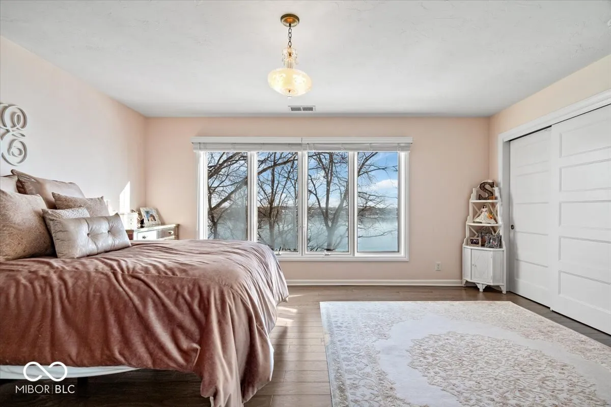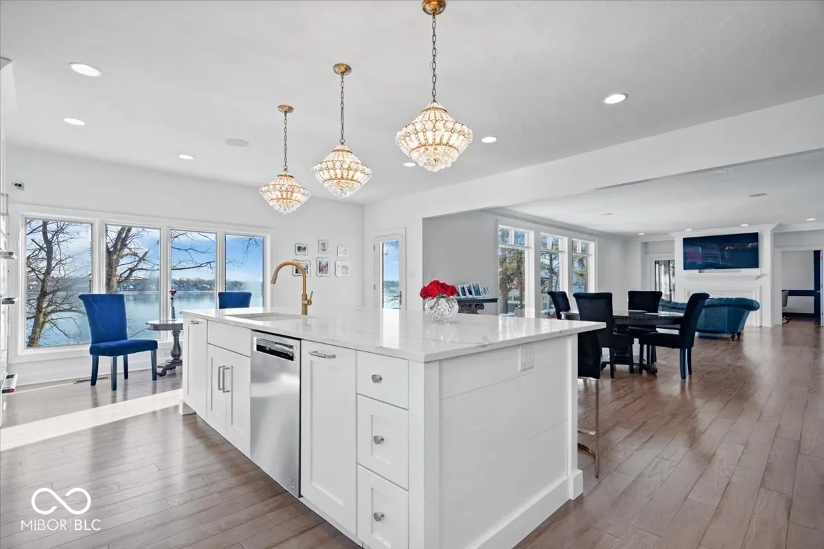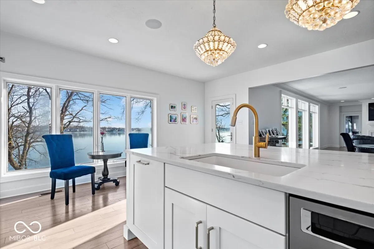 This stunning waterfront home offers an unparalleled living experience with 180 feet of main body lake frontage, providing breathtaking lake views from every room. With 5 bedrooms, 4.5 bathrooms, & 6,703 sqft of living space, this residence is designed for both luxury & comfort. As you enter through the two-story foyer, you’ll be greeted by an open floor plan adorned with gorgeous hardwood floors & elegant staircase. The main level features a spacious living room w/ a stone fireplace & expansive floor-to-ceiling windows that perfectly frame the serene lake views. The kitchen is a chef’s delight, boasting a massive island, two dishwashers, double ovens, a built-in paneled refrigerator, & a walk-in butler’s pantry. A built-in bar w/ a wine fridge adds a touch of elegance, making it ideal for entertaining. The main level also includes a guest suite w/ an attached, newly remodeled bathroom, a formal dining room, & a private office w/ custom built-in bookshelves & a large picture window w/ more lake views. Upstairs, discover three additional spacious bedrooms, including the luxurious owner’s suite w/ an en-suite bath featuring a fully tiled walk-in shower & his & hers dual walk-in closets with a dressing room. The upper level also houses an impressive laundry room equipped w/ two washers & dryers. The lower level of this home is equally impressive, offering dual access to a walk-out basement that includes an exercise room, a full bar, a temperature-controlled wine cellar, a second guest suite, a newly remodeled full bath, & a large family room w/ a second fireplace & walkout access to the lake. Outside, the half-acre lot is beautifully landscaped & multiple brick patios on the main & lower levels, perfect for enjoying the tranquil lake views. The three-car garage offers ample storage w/ upper-level space spanning the full length of the garage. This home is a true masterpiece, offering a luxurious lifestyle with unparalleled lakefront living.