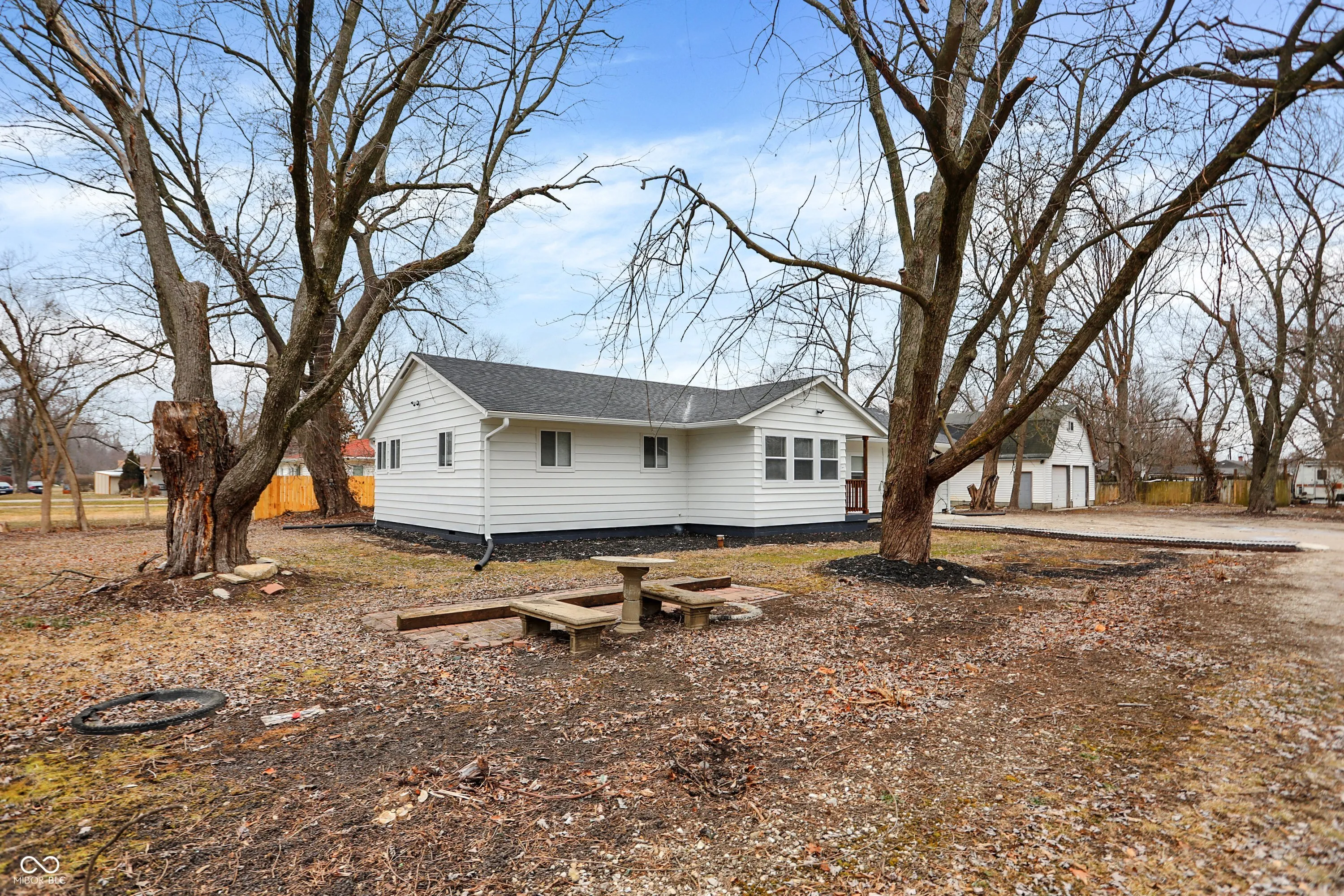 The house is back on the market as the buyer failed to get financing. Welcome to this beautifully renovated ranch home, set on a spacious corner lot of nearly 1 acre! Featuring 3 bedrooms, 2 full bathrooms, and an attached garage, this home offers modern comfort and style. Updates include a new roof, electrical system, HVAC, windows, and appliances. Step inside to an inviting open-concept living space that seamlessly combines the living room, dining area, and a stunning brand-new kitchen. The centerpiece is a large island with granite countertops, perfect for entertaining and everyday living. The dining area is ideal for hosting family and friends. The owner’s suite is thoughtfully designed, providing ample space and comfort. Every bedroom includes stylish modern ceiling fans, while both bathrooms feature elegant, spa-inspired tile finishes for a luxurious feel. Enjoy your morning coffee or unwind on the deck overlooking the fully fenced backyard. Additionally, the property boasts two detached garages and a finished man cave, perfect for hobbies or extra storage. Situated in a private yet convenient location, this home offers tranquility while being just a short drive to the heart of Indianapolis. Don’t miss this one!