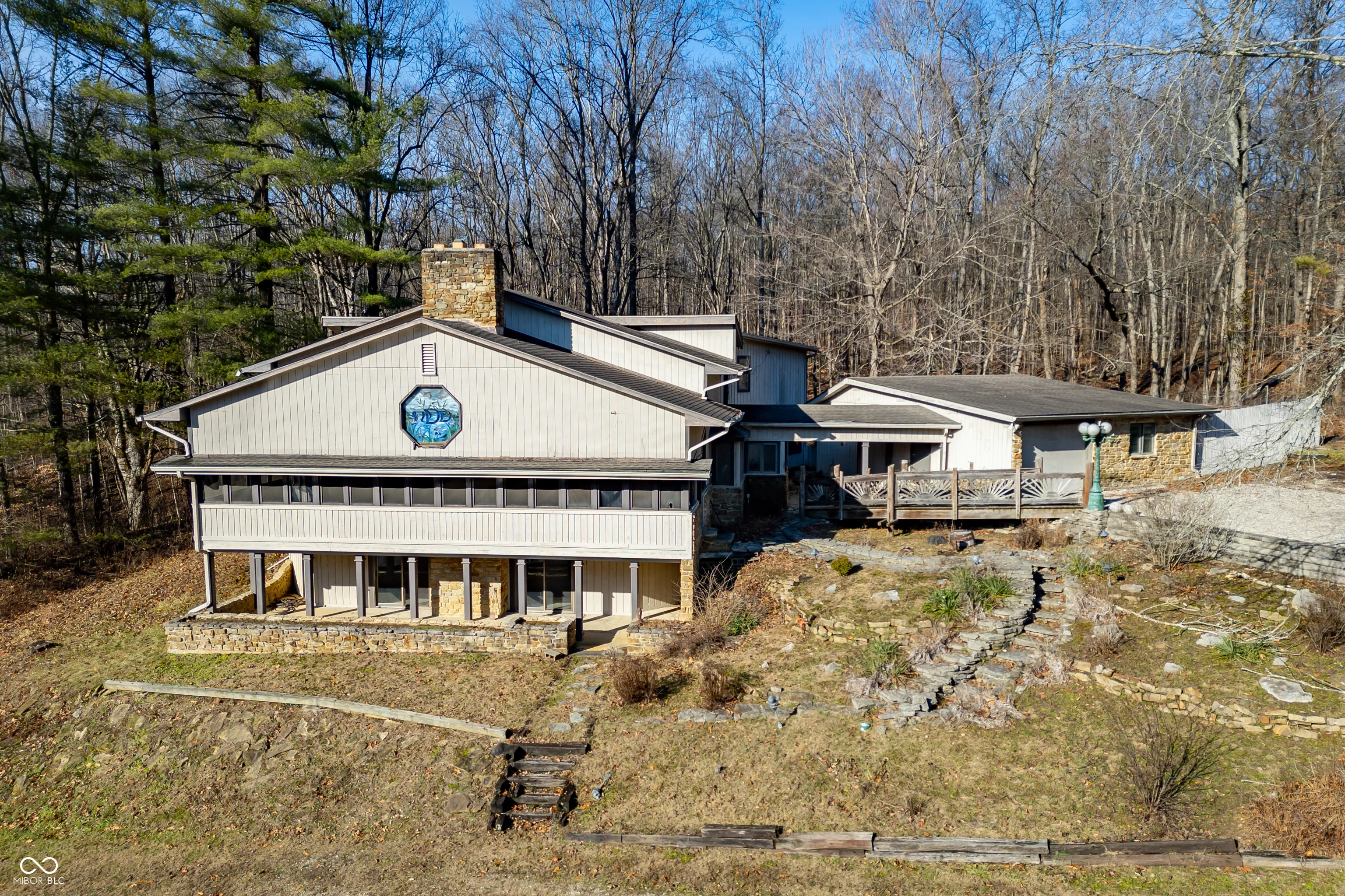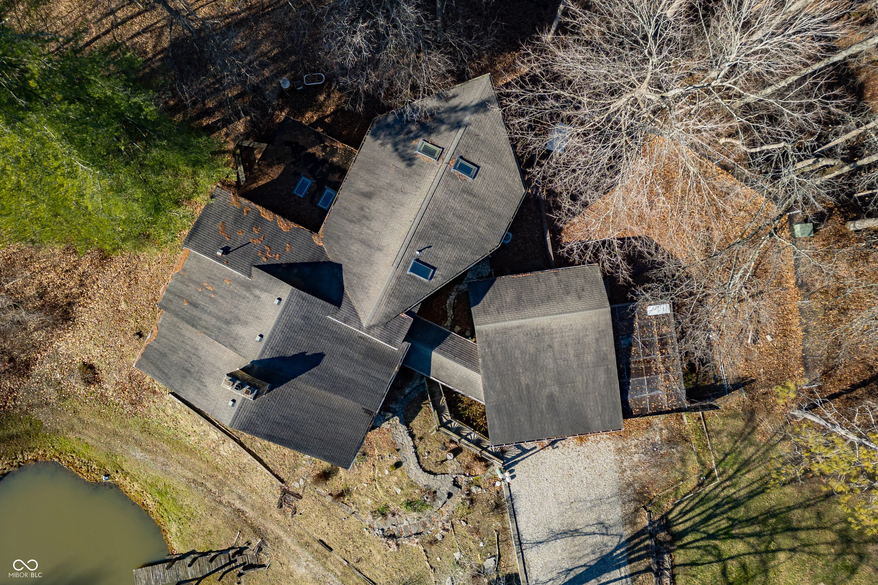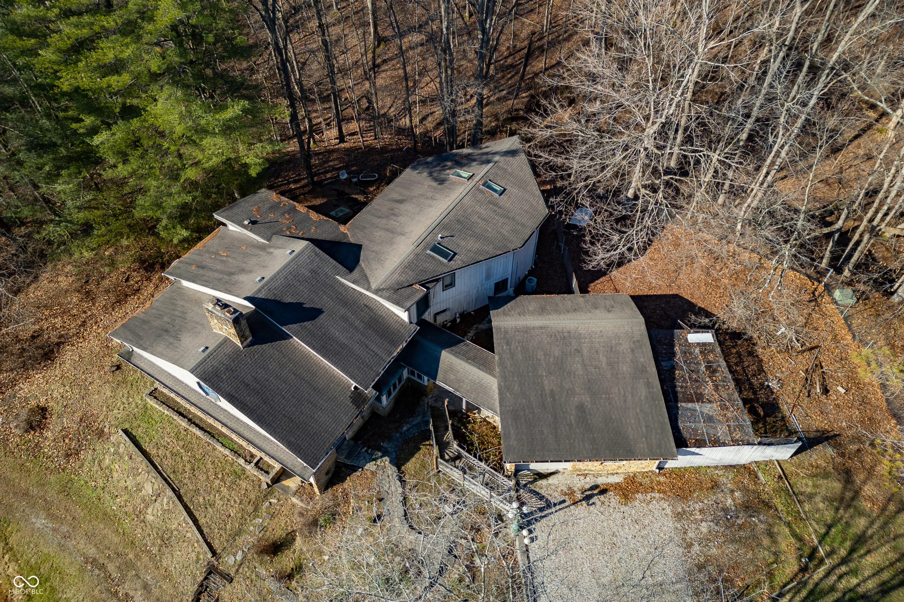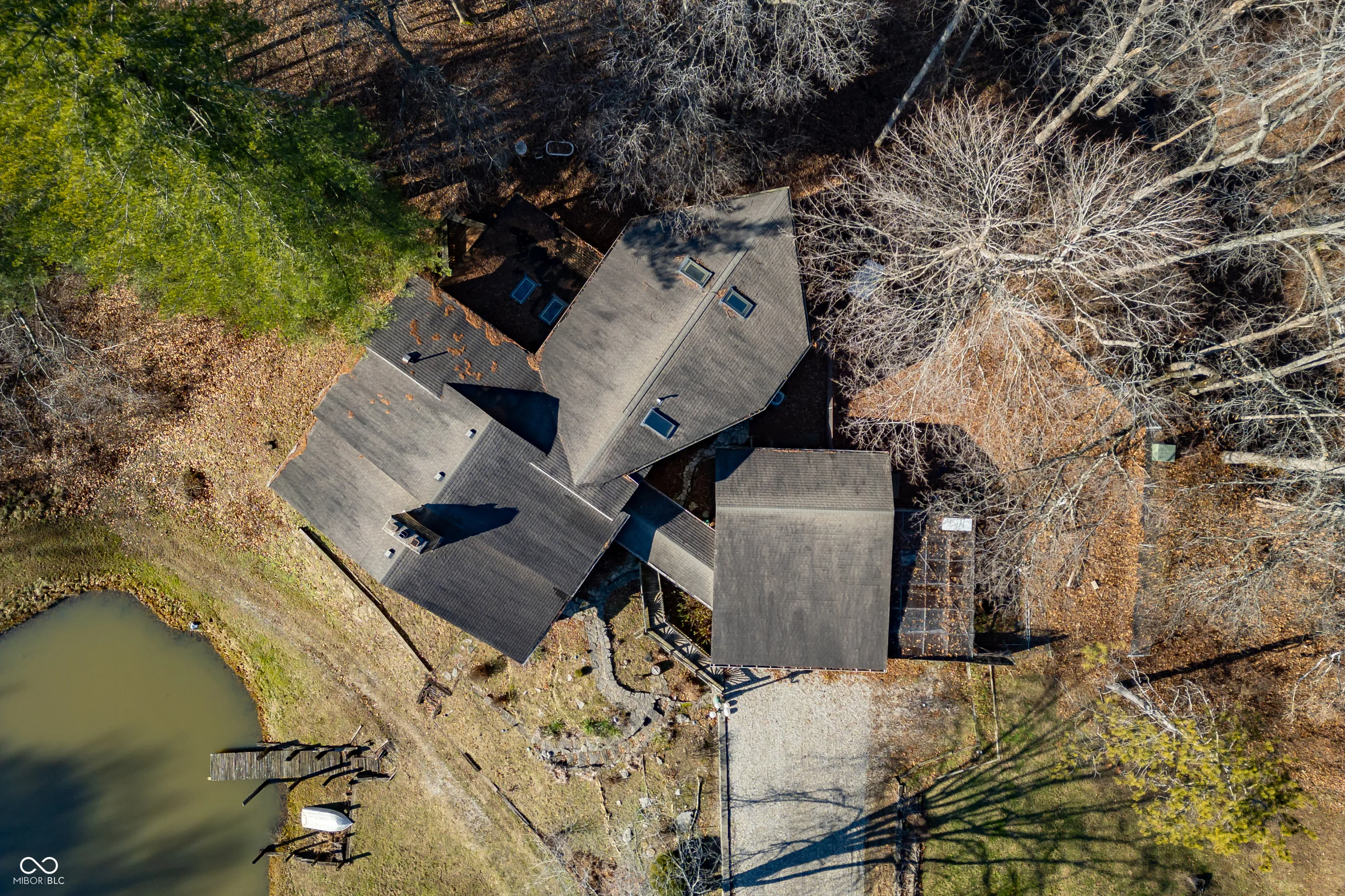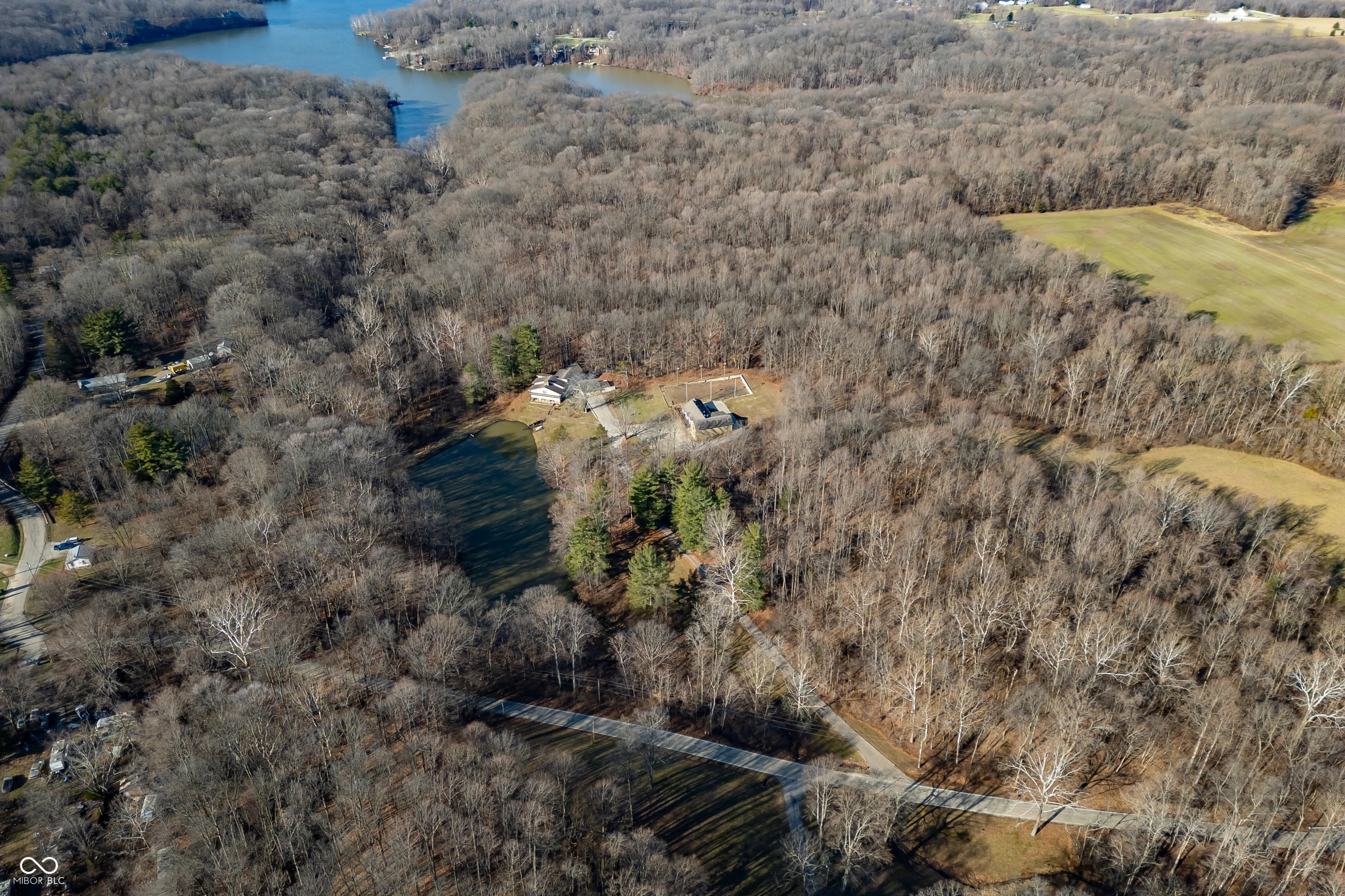 A unique opportunity to own two homes on over sixteen wooded acres. Do you like to entertain? Need in-law or guest quarters? Perhaps an Airbnb on your property? The possibilities are endless. The updated guest house features an indoor basketball, pickleball, or racquetball court. An open-concept great room, kitchen, and dining area are highlighted by an amazing built-in bar. It also includes one bedroom & a new custom bathroom. All of above a four-car attached garage & workshop. Great views of the stocked pond from the wrap-around deck. The main home is over 5,000 square feet with a lodge like feeling featuring vaulted ceilings, wood beams, hardwood flooring, & stone fireplace. The massive master suite includes two full bathrooms, one of which has been completely renovated. Finished walkout basement overlooks the pond and woods. Just waiting on your vision to make this great property your own private retreat.