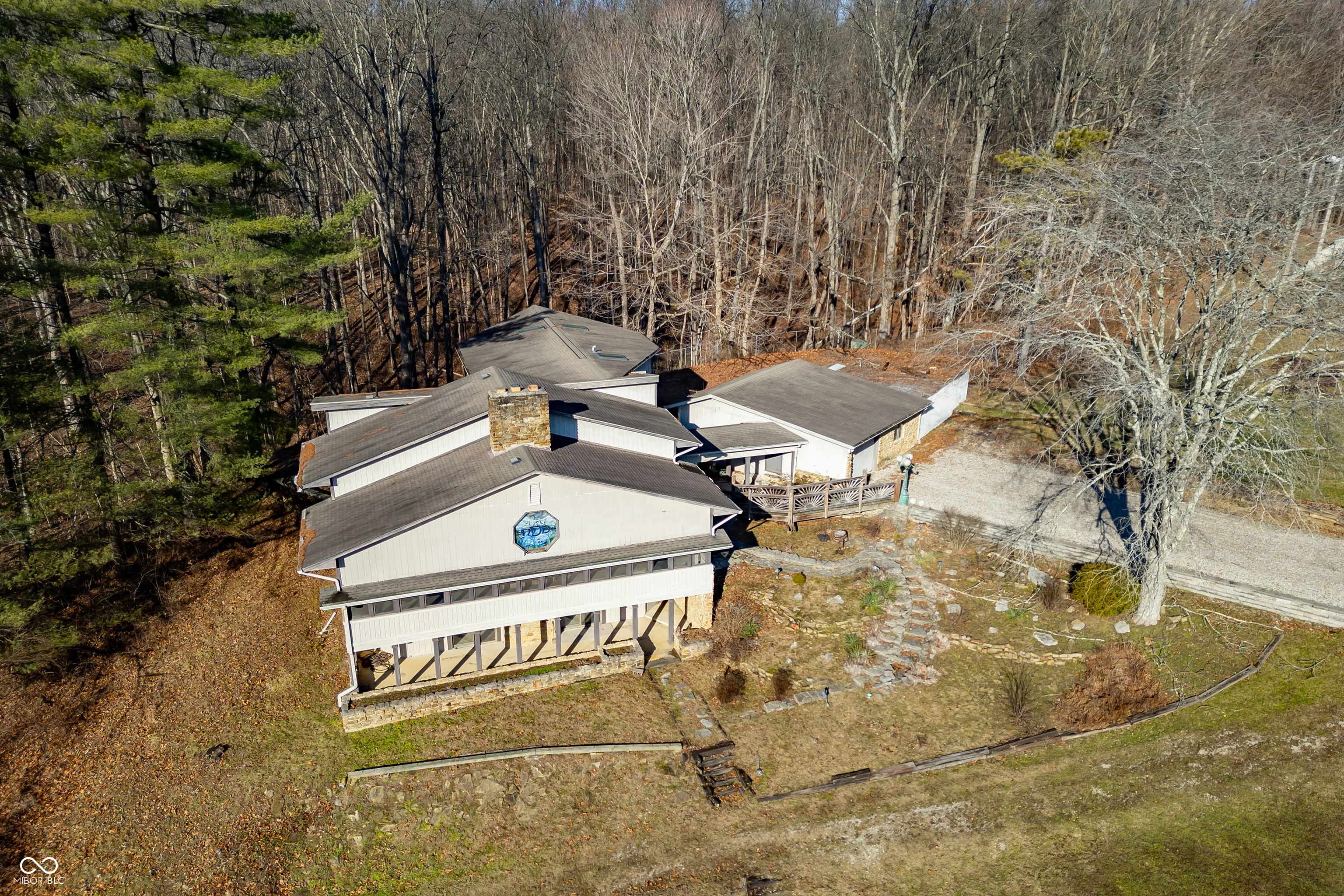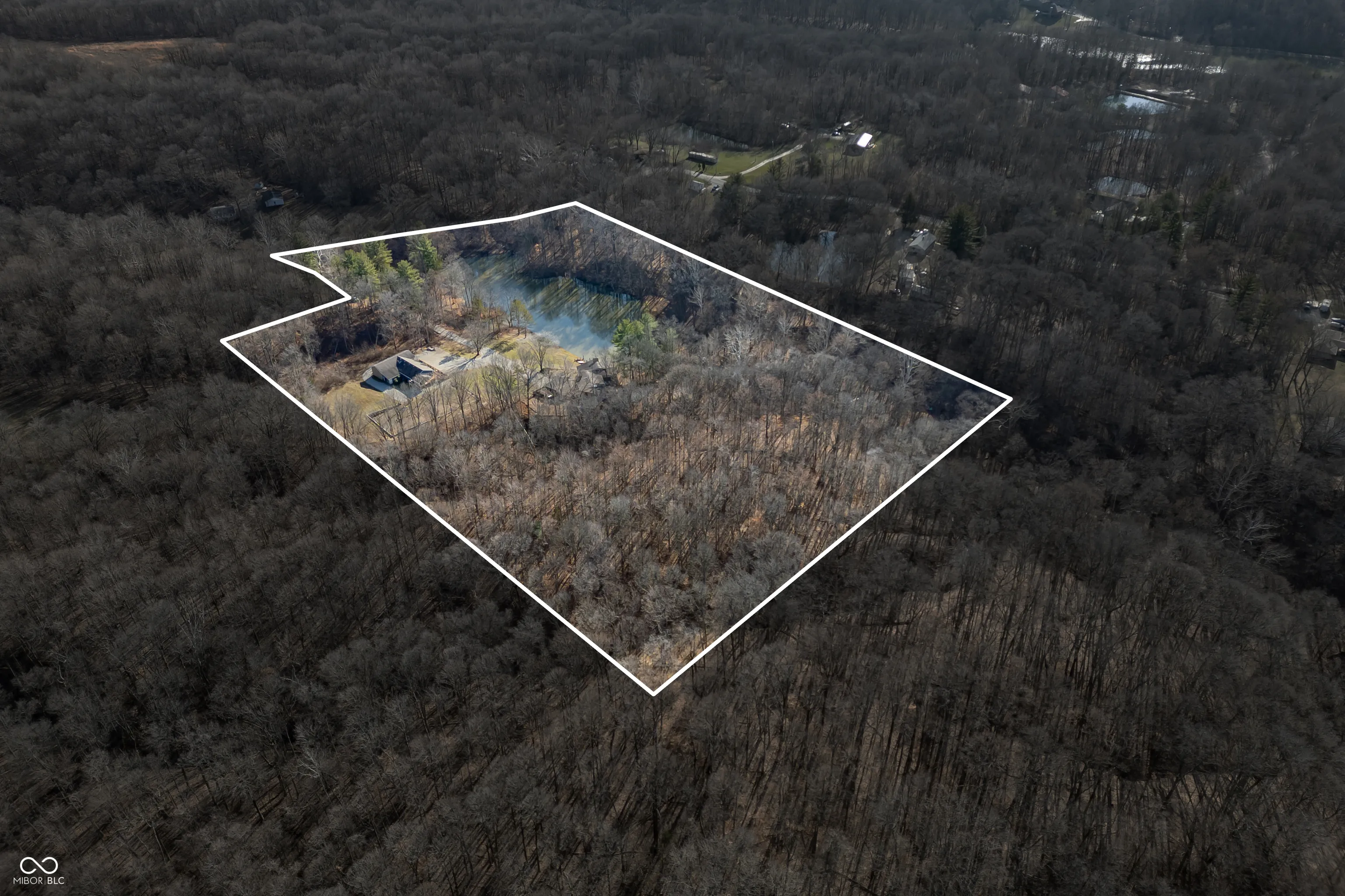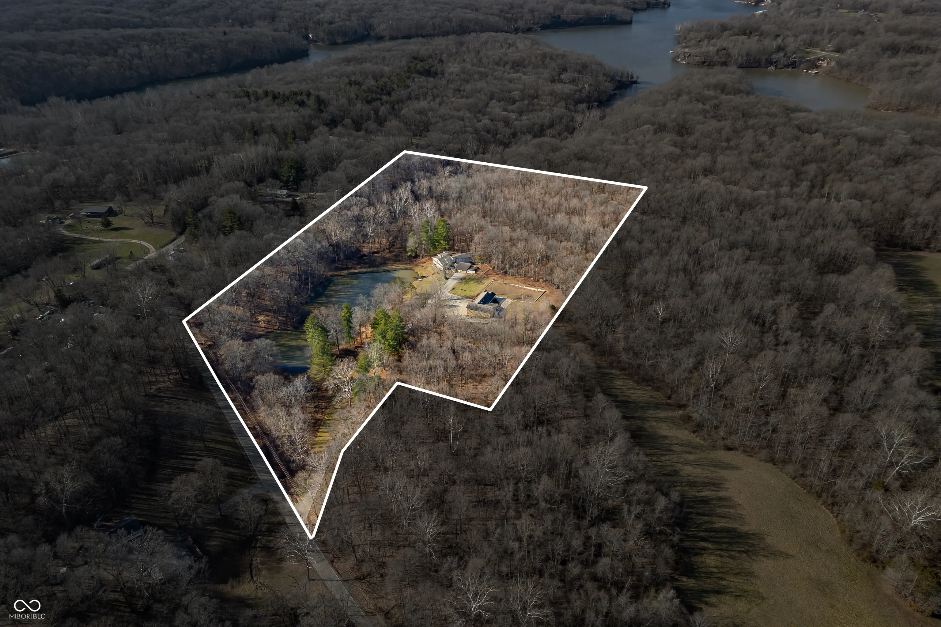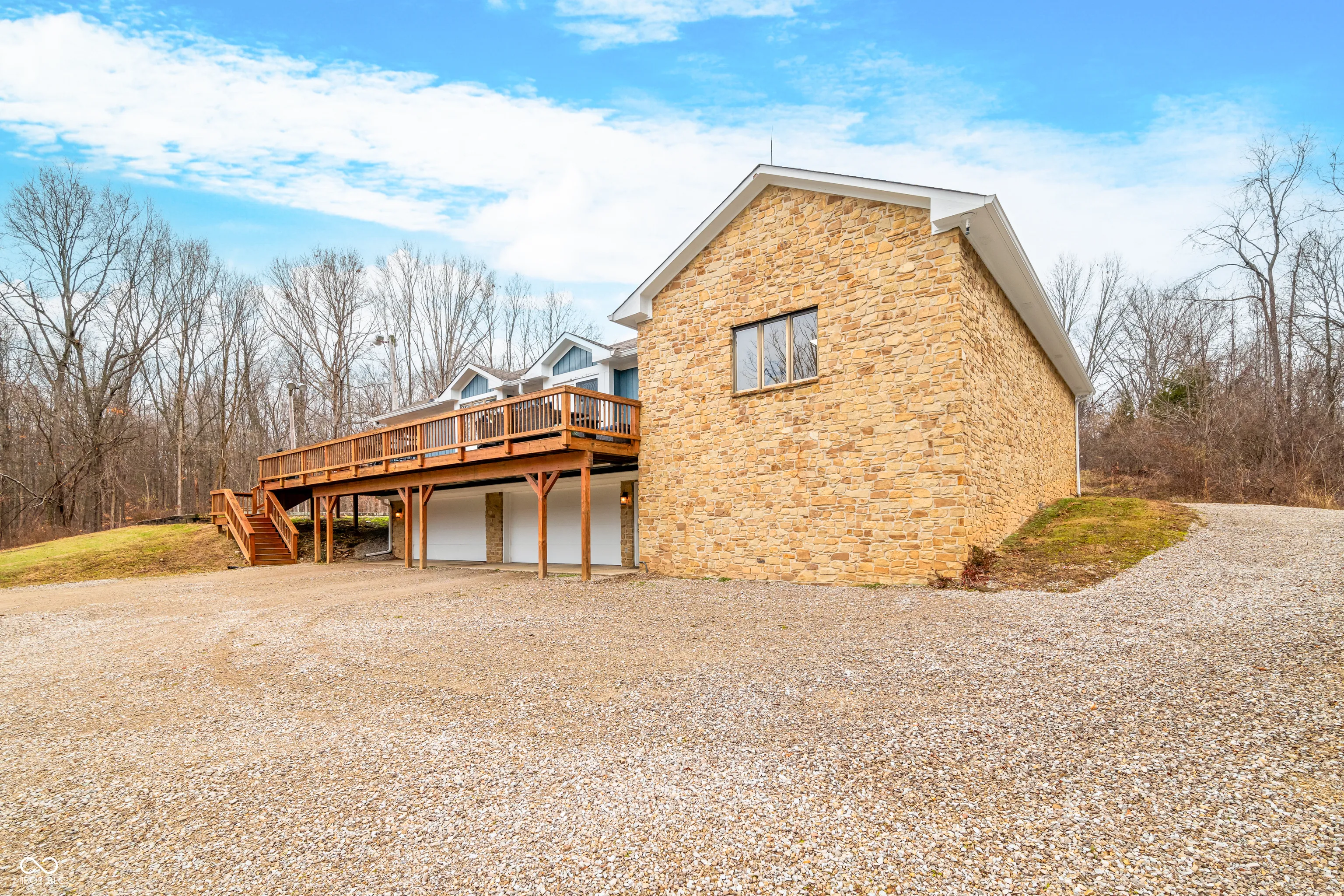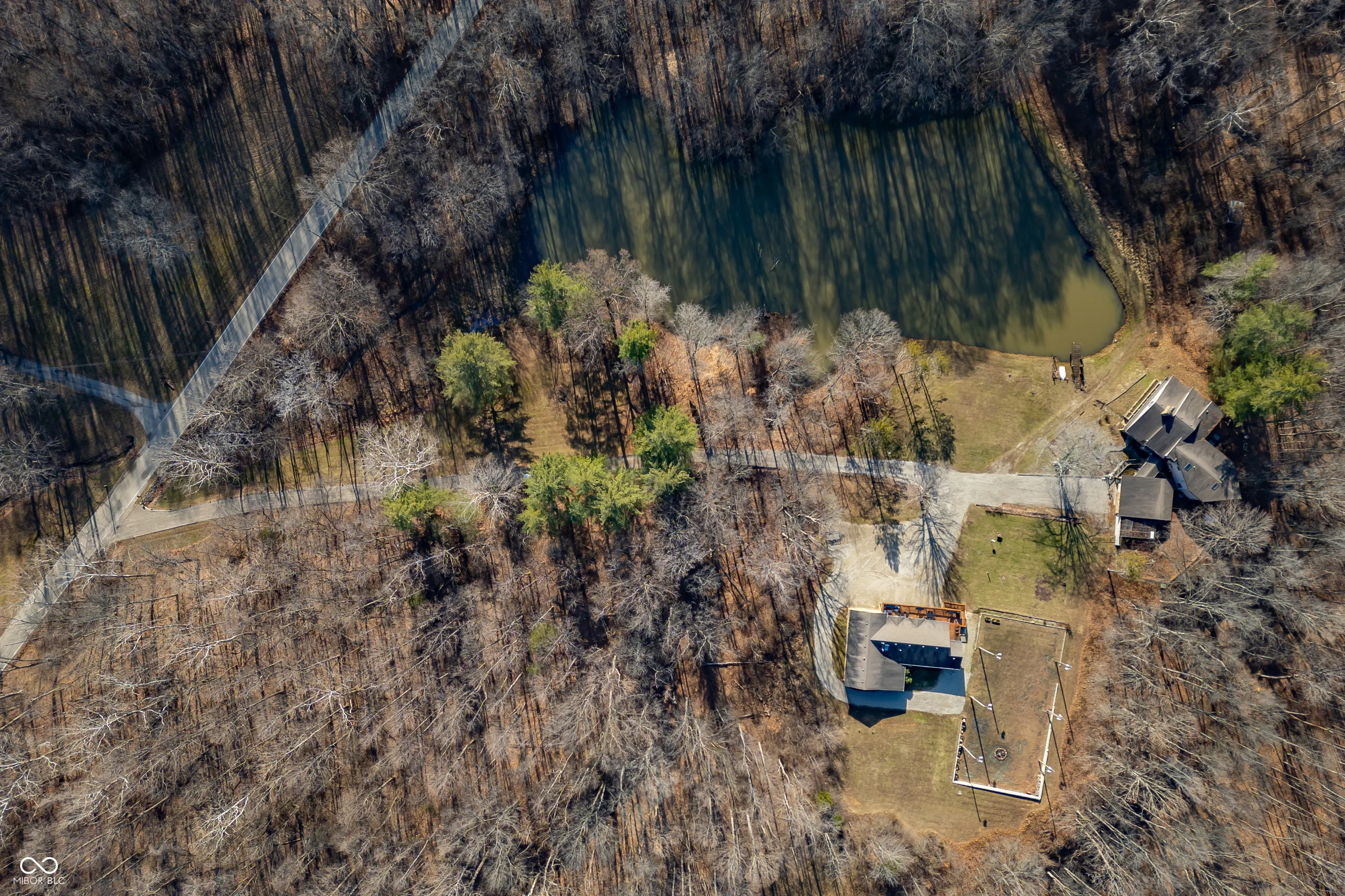 A unique opportunity to own two homes on over sixteen wooded acres. Do you like to entertain? Need in-law or guest quarters? Perhaps an Airbnb on your property? The possibilities are endless. The updated guest house features an indoor basketball, pickleball, or racquetball court. An open-concept great room, kitchen, and dining area are highlighted by an amazing built-in bar. It also includes one bedroom & a new custom bathroom. All of above a four-car attached garage & workshop. Great views of the stocked pond from the wrap-around deck. The main home is over 5,000 square feet with a lodge like feeling featuring vaulted ceilings, wood beams, hardwood flooring, & stone fireplace. The massive master suite includes two full bathrooms, one of which has been completely renovated. Finished walkout basement overlooks the pond and woods. Just waiting on your vision to make this great property your own private retreat.
