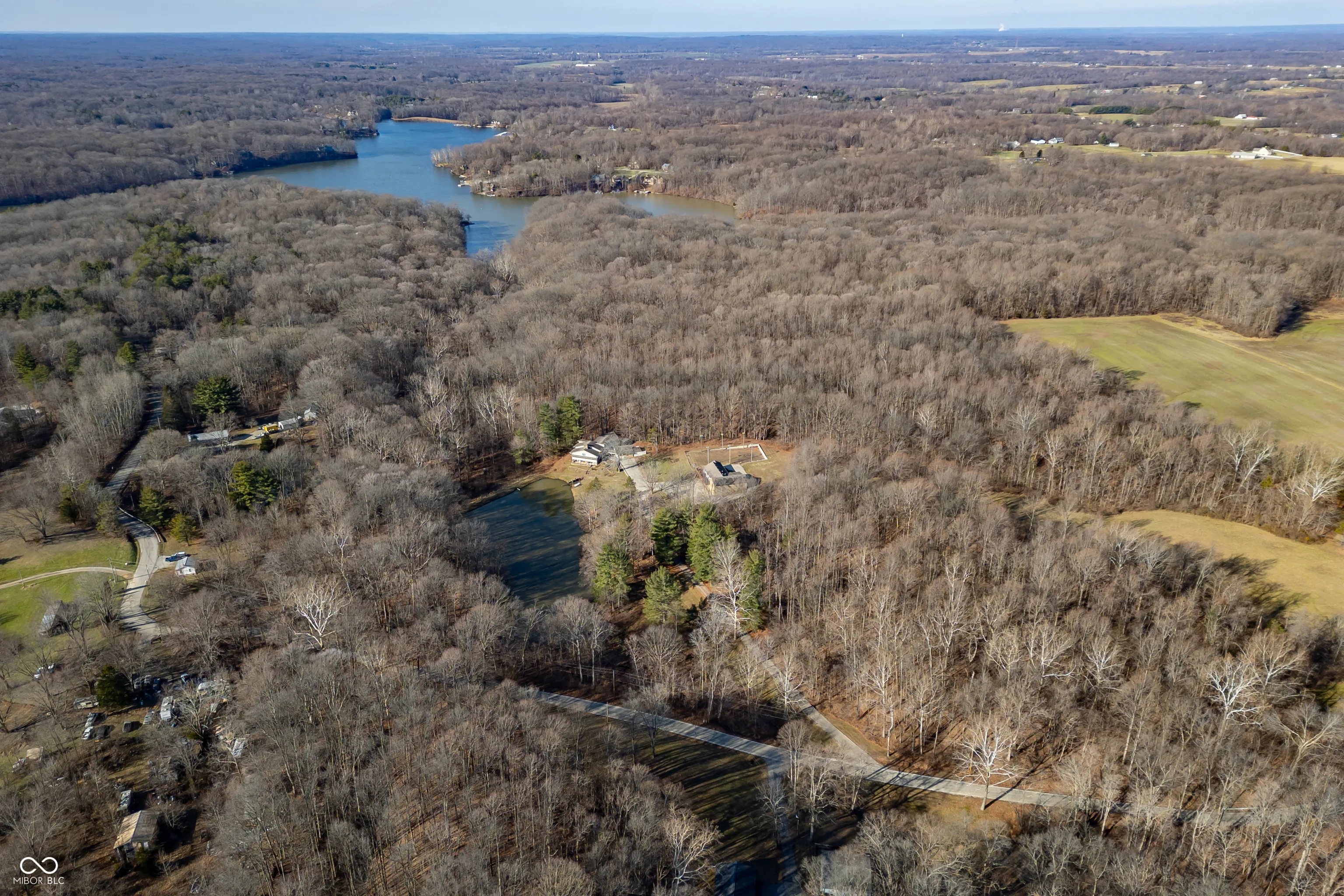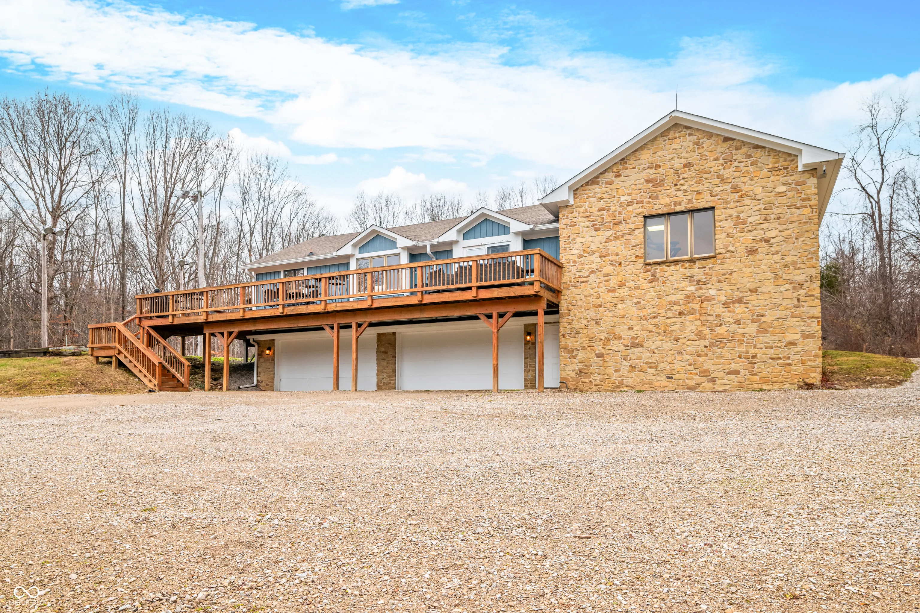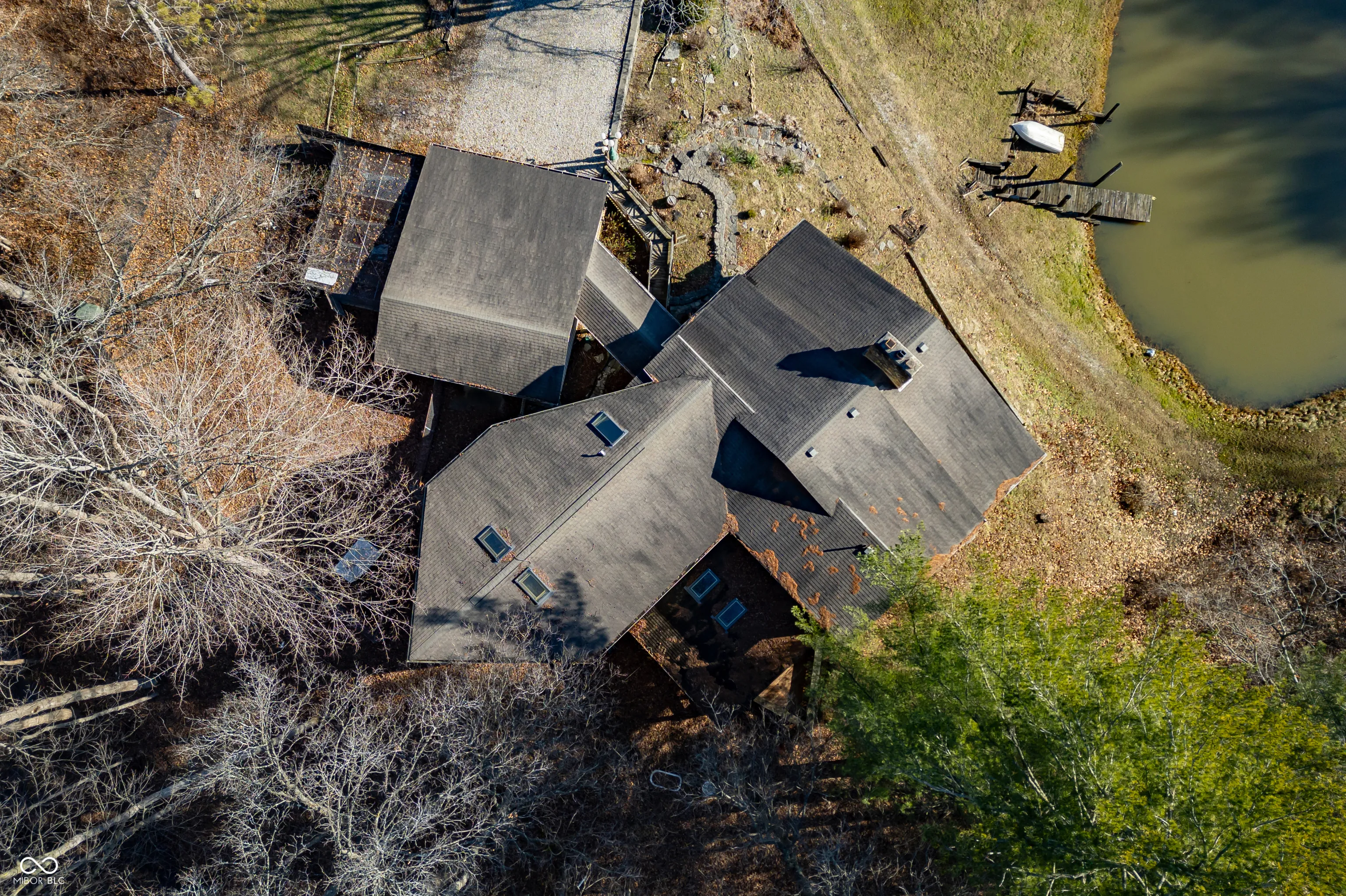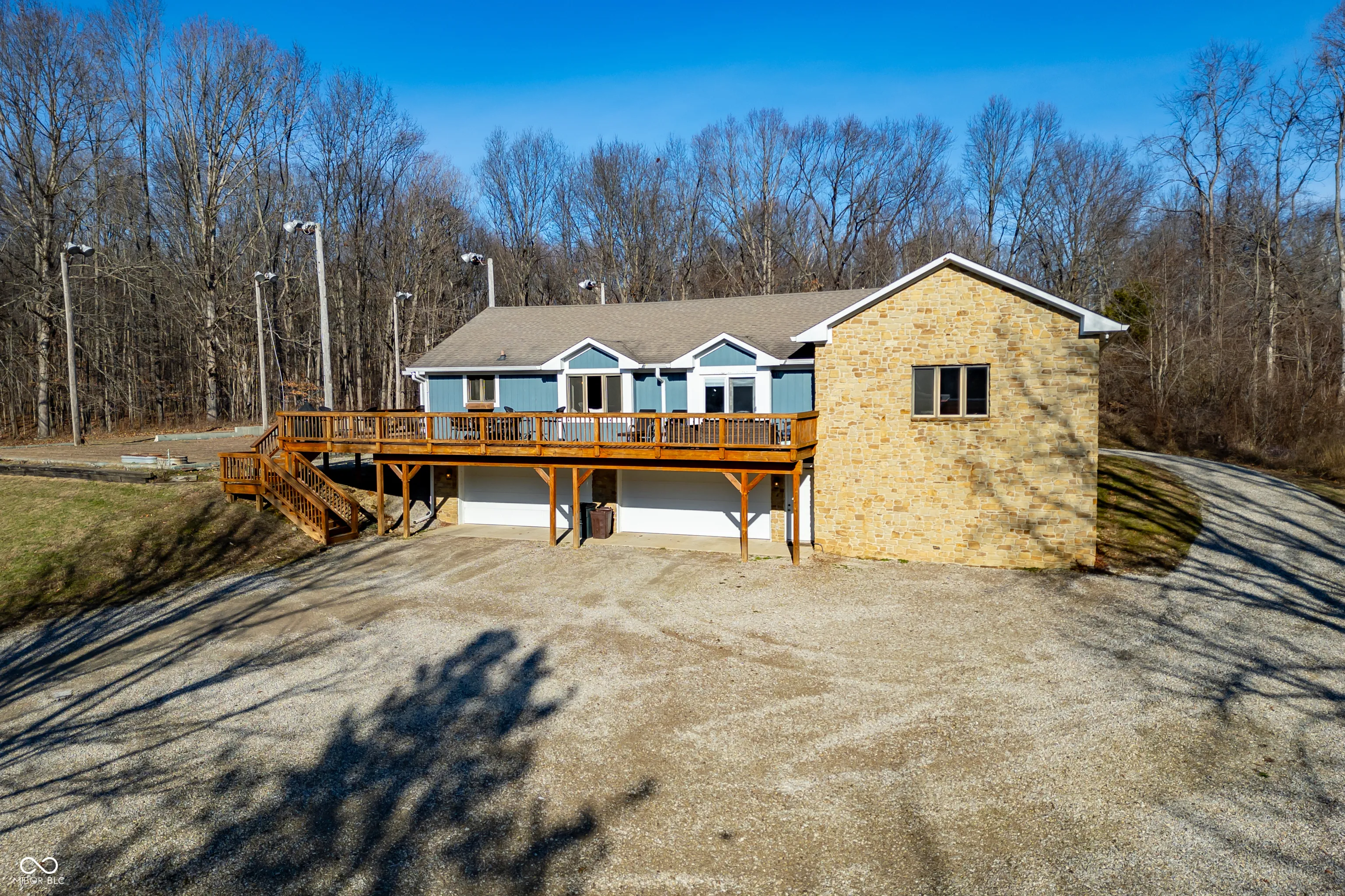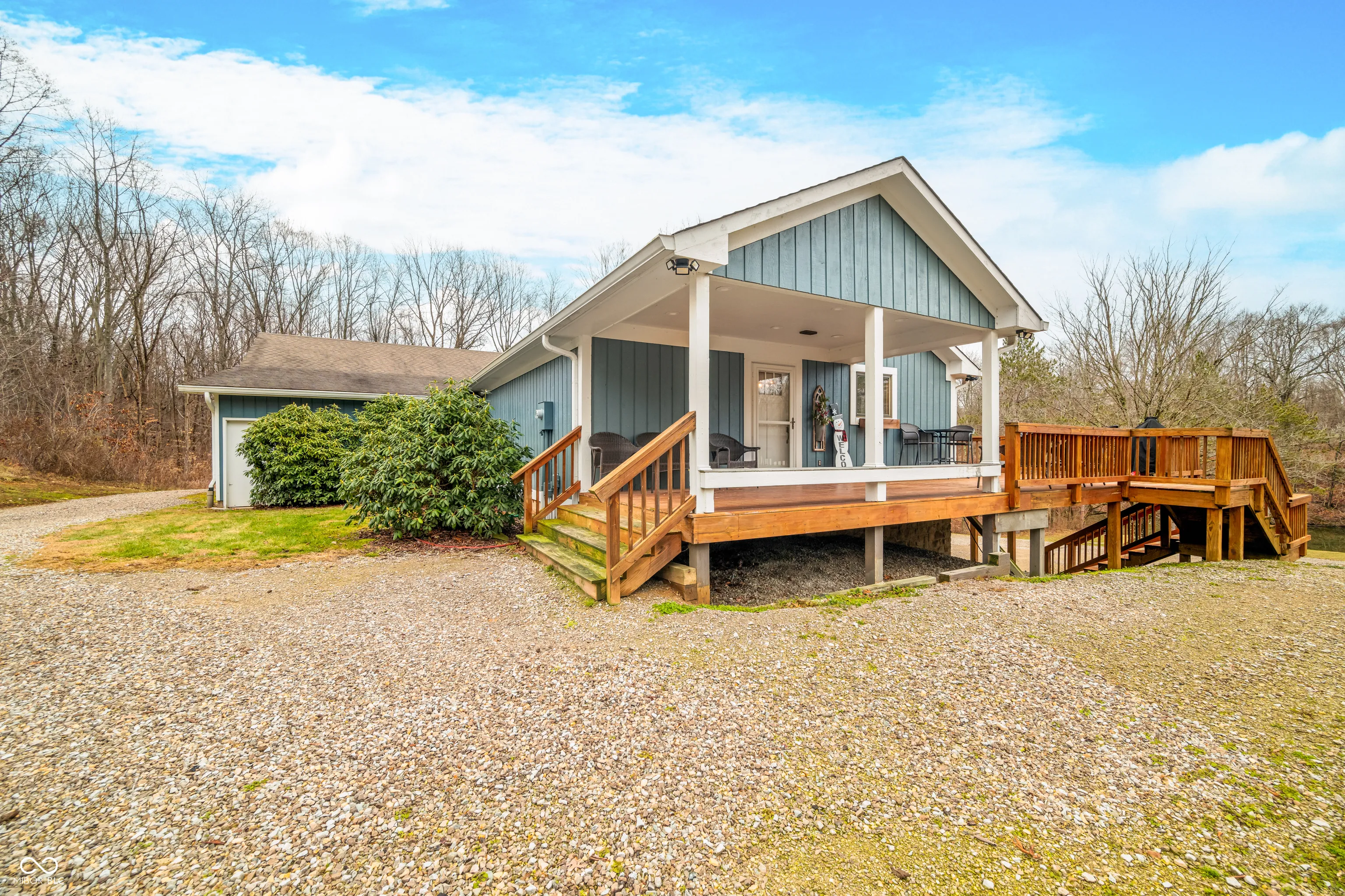 A unique opportunity to own two homes on over sixteen wooded acres. Do you like to entertain? Need in-law or guest quarters? Perhaps an Airbnb on your property? The possibilities are endless. The updated guest house features an indoor basketball, pickleball, or racquetball court. An open-concept great room, kitchen, and dining area are highlighted by an amazing built-in bar. It also includes one bedroom & a new custom bathroom. All of above a four-car attached garage & workshop. Great views of the stocked pond from the wrap-around deck. The main home is over 5,000 square feet with a lodge like feeling featuring vaulted ceilings, wood beams, hardwood flooring, & stone fireplace. The massive master suite includes two full bathrooms, one of which has been completely renovated. Finished walkout basement overlooks the pond and woods. Just waiting on your vision to make this great property your own private retreat.