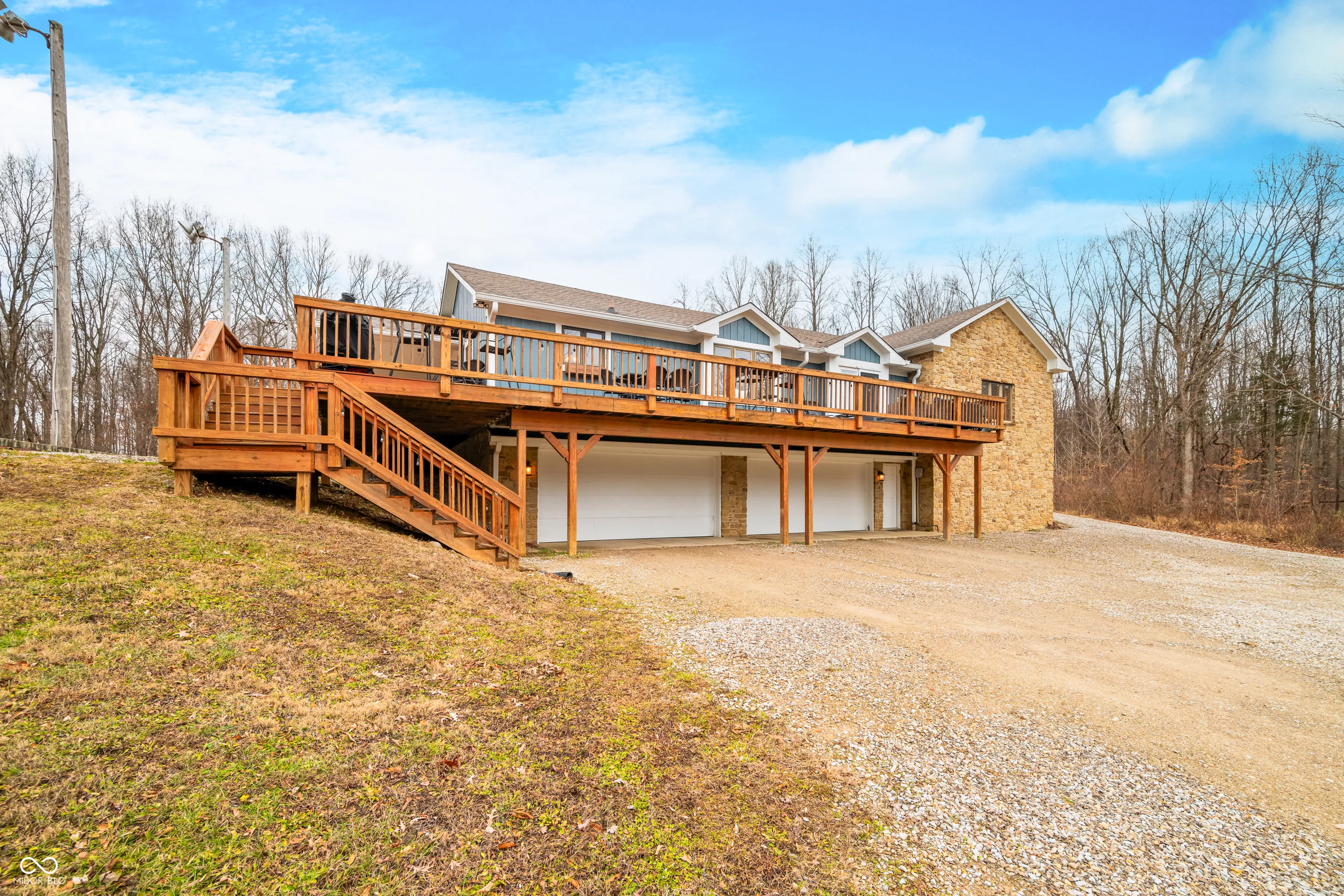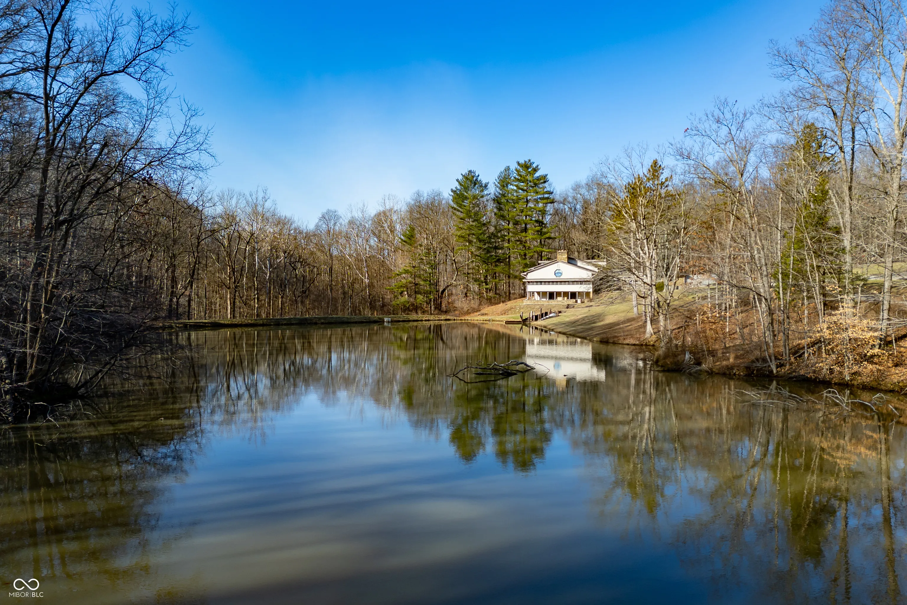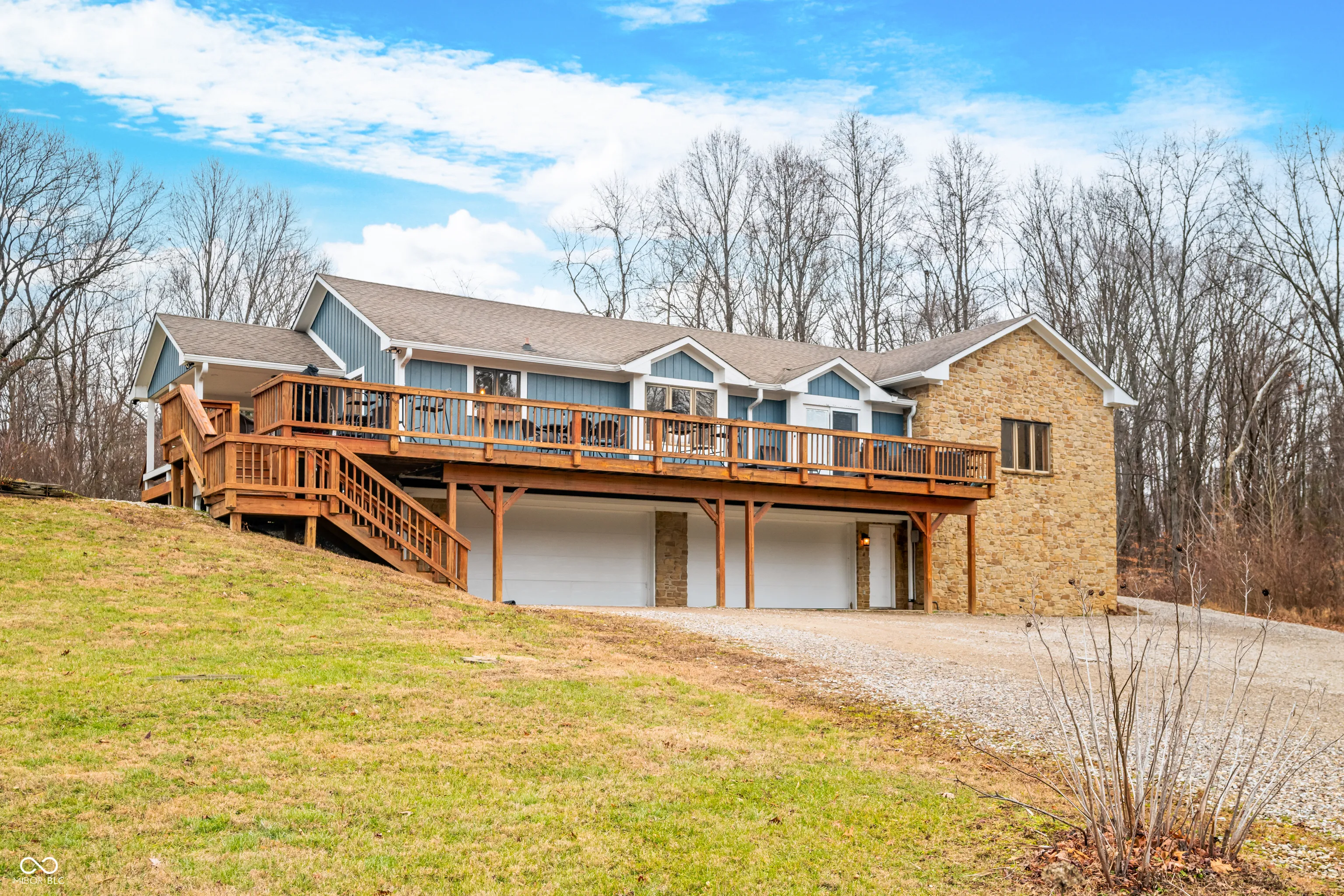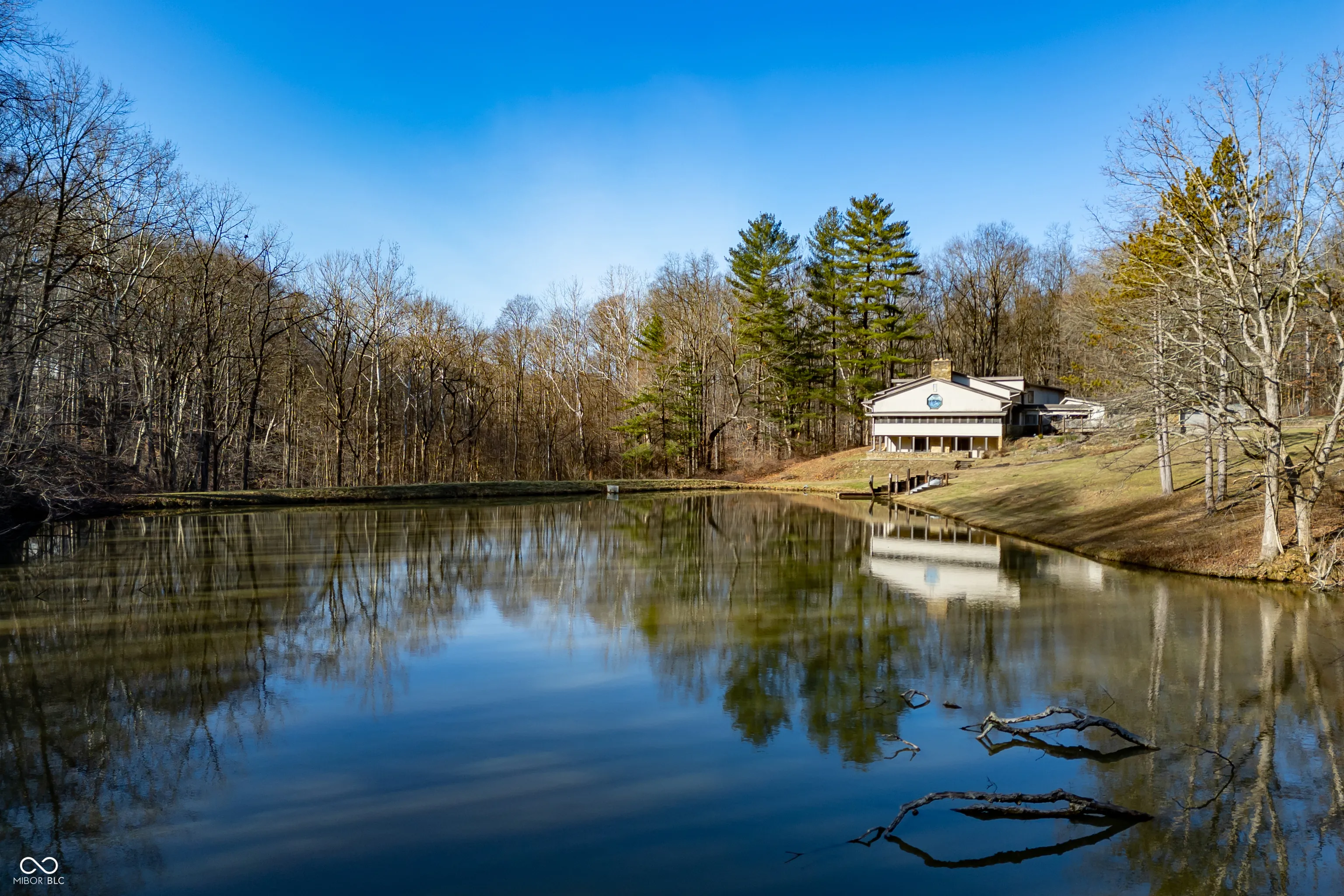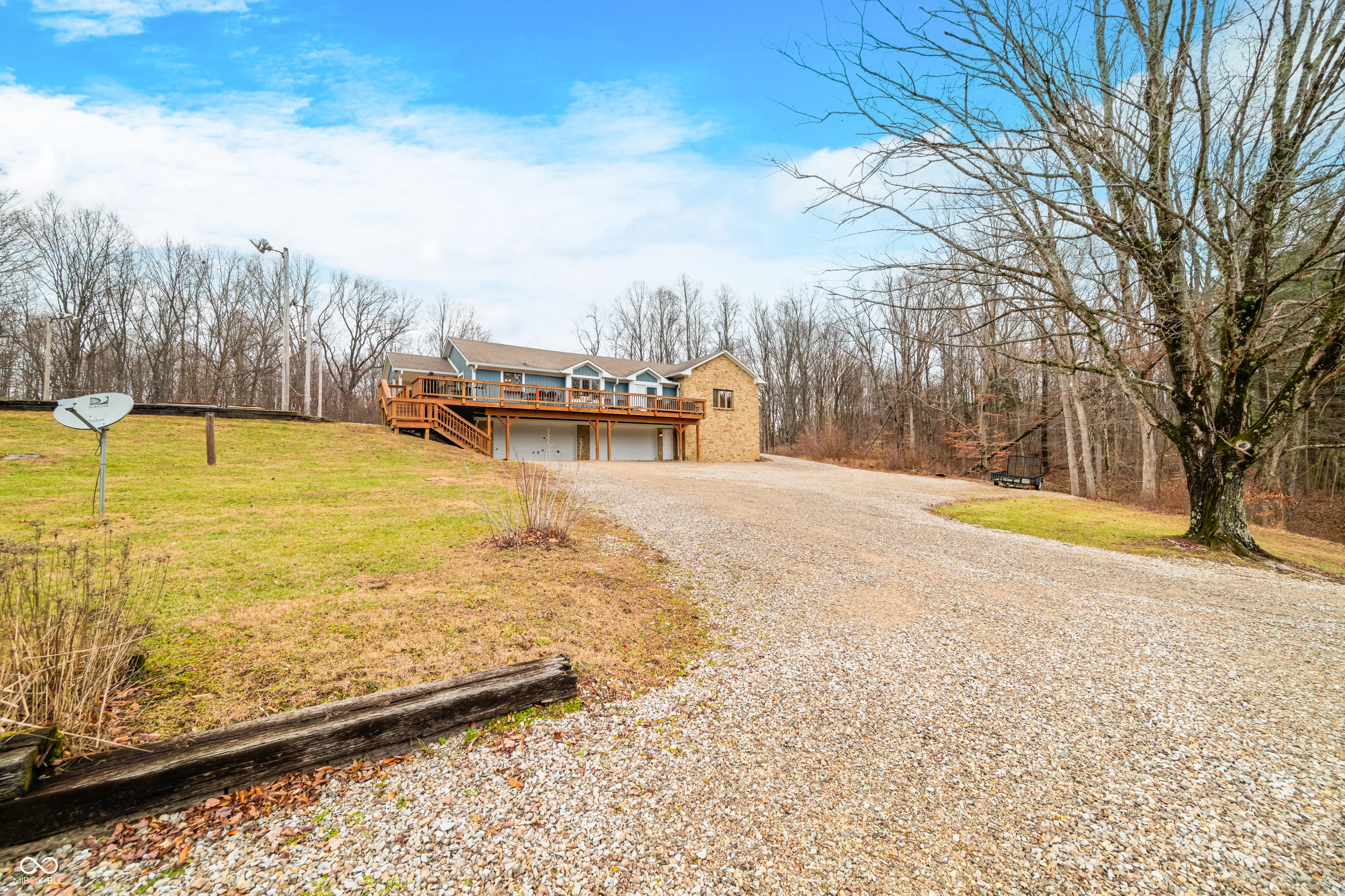 A unique opportunity to own two homes on over sixteen wooded acres. Do you like to entertain? Need in-law or guest quarters? Perhaps an Airbnb on your property? The possibilities are endless. The updated guest house features an indoor basketball, pickleball, or racquetball court. An open-concept great room, kitchen, and dining area are highlighted by an amazing built-in bar. It also includes one bedroom & a new custom bathroom. All of above a four-car attached garage & workshop. Great views of the stocked pond from the wrap-around deck. The main home is over 5,000 square feet with a lodge like feeling featuring vaulted ceilings, wood beams, hardwood flooring, & stone fireplace. The massive master suite includes two full bathrooms, one of which has been completely renovated. Finished walkout basement overlooks the pond and woods. Just waiting on your vision to make this great property your own private retreat.
