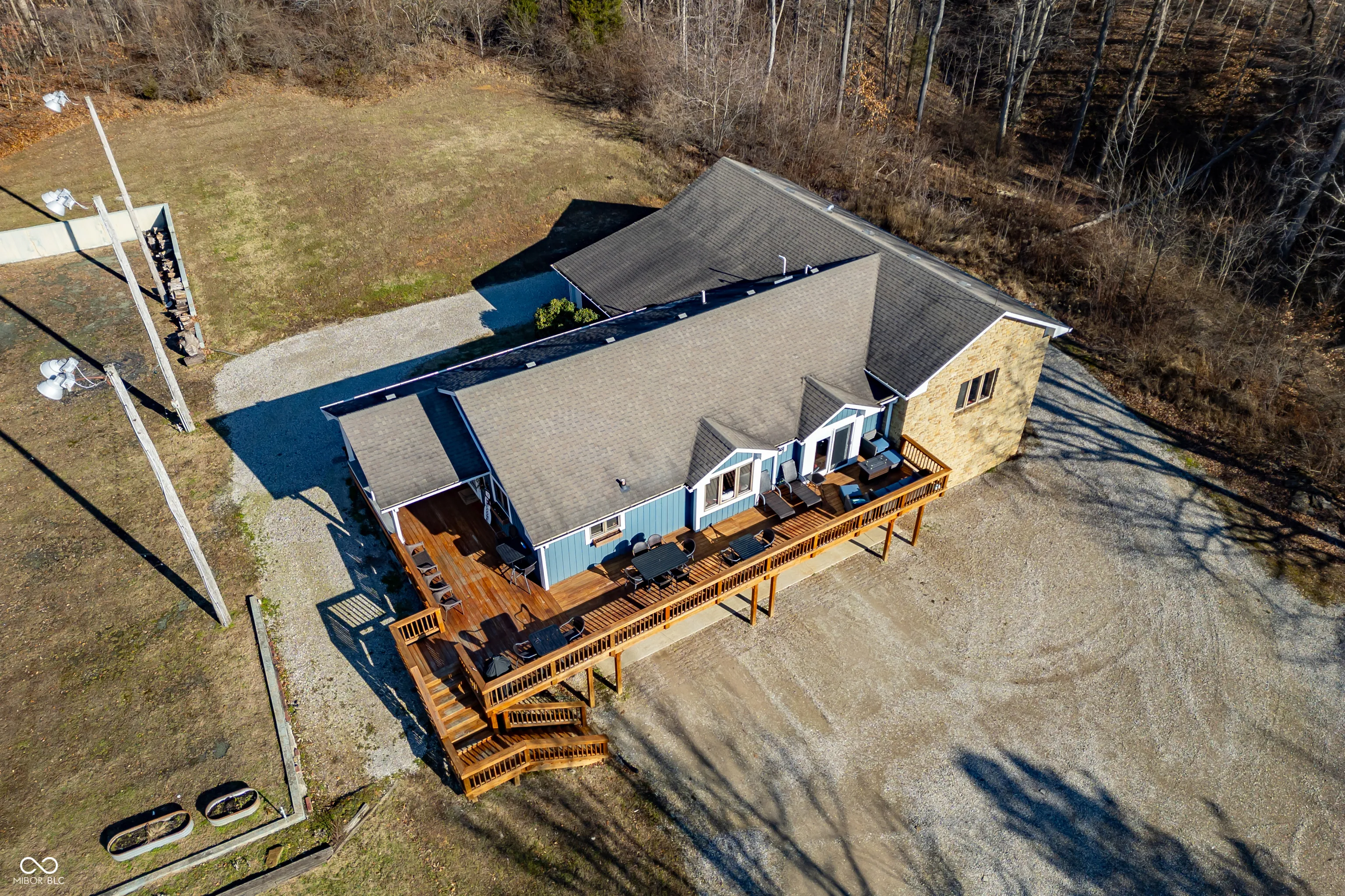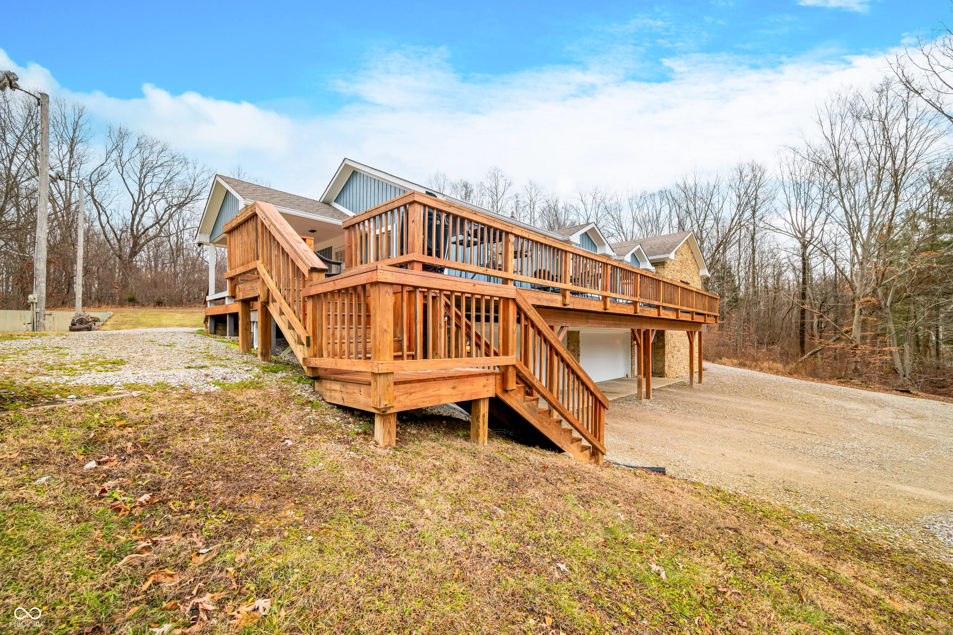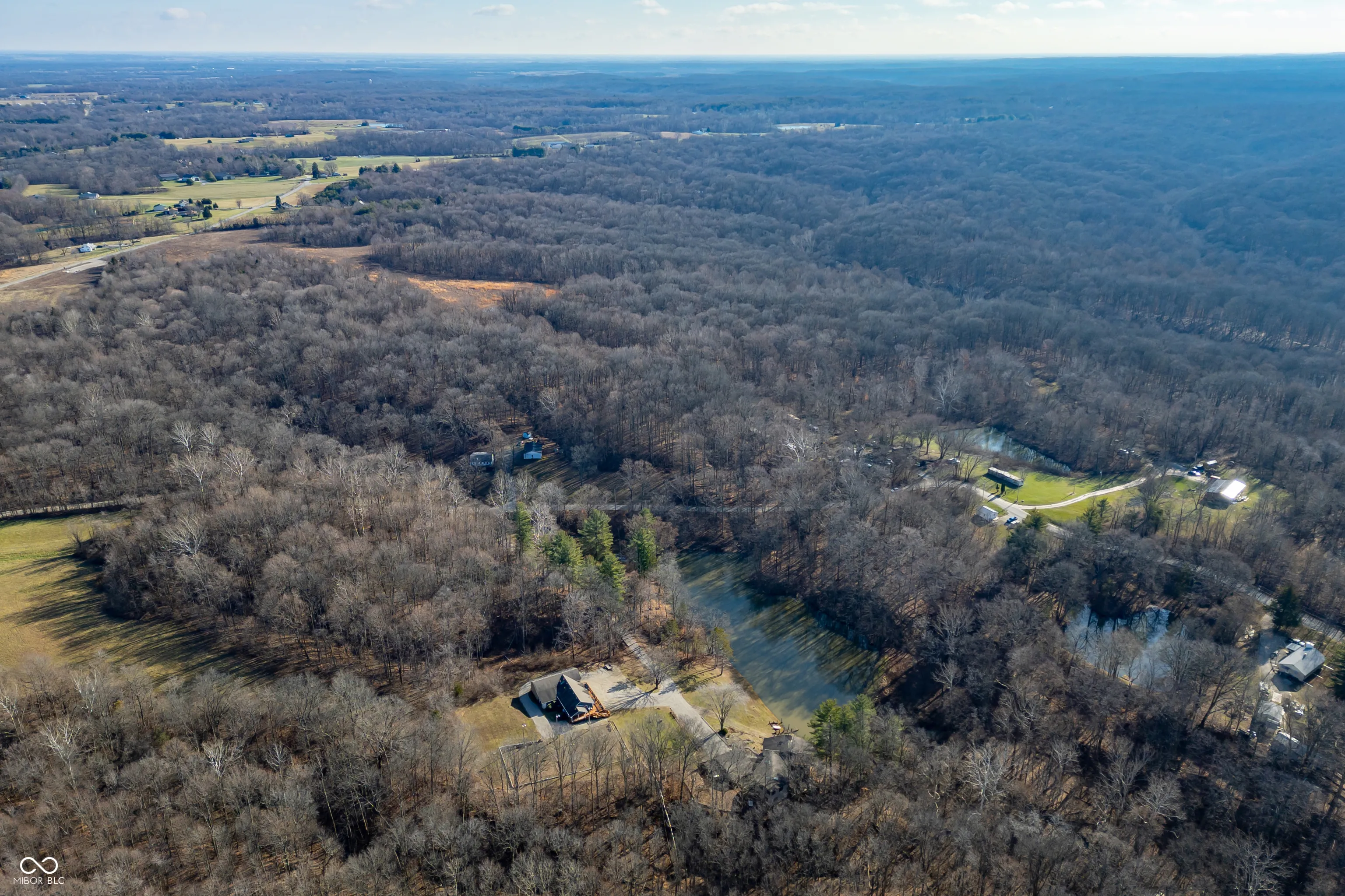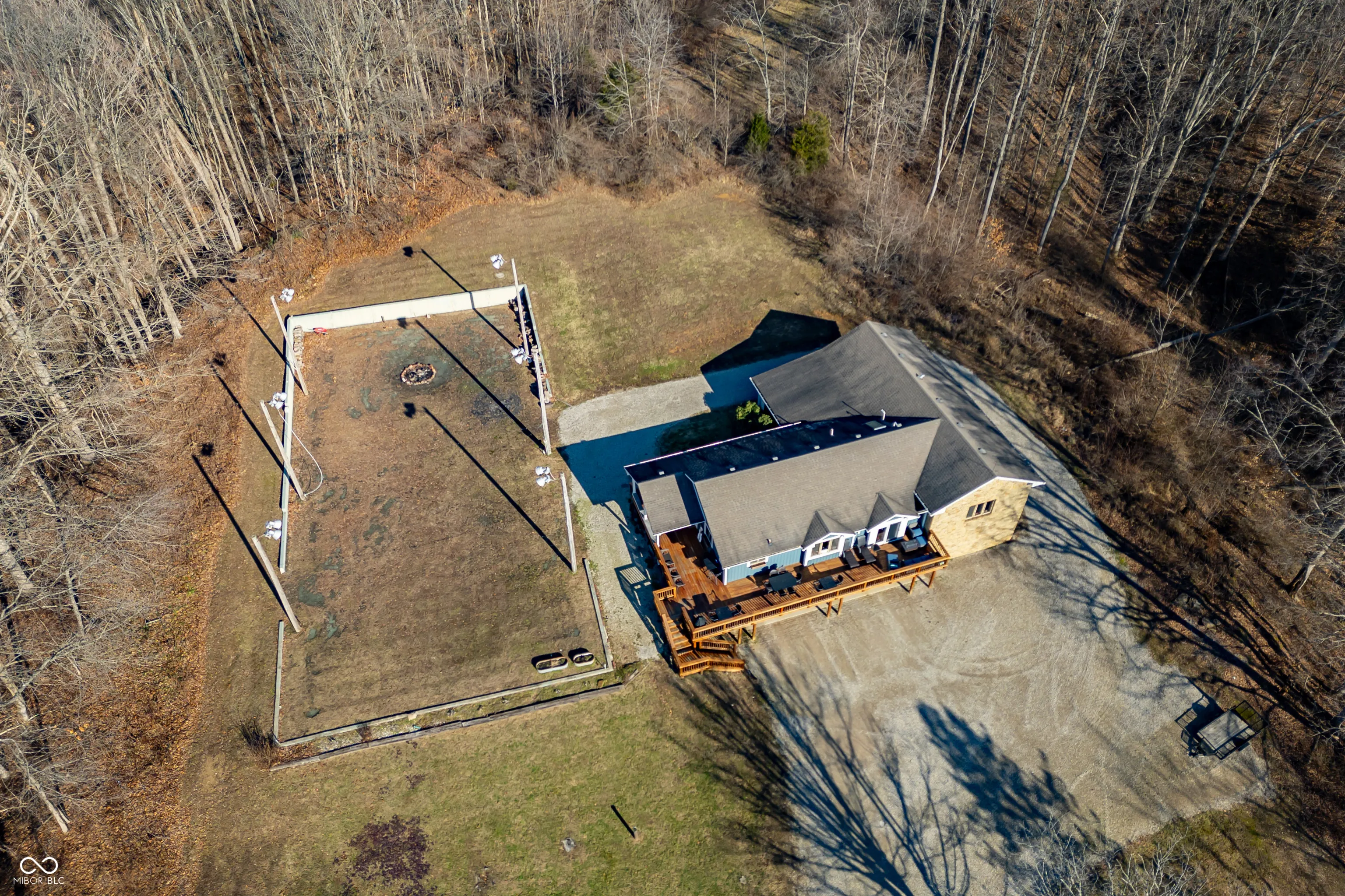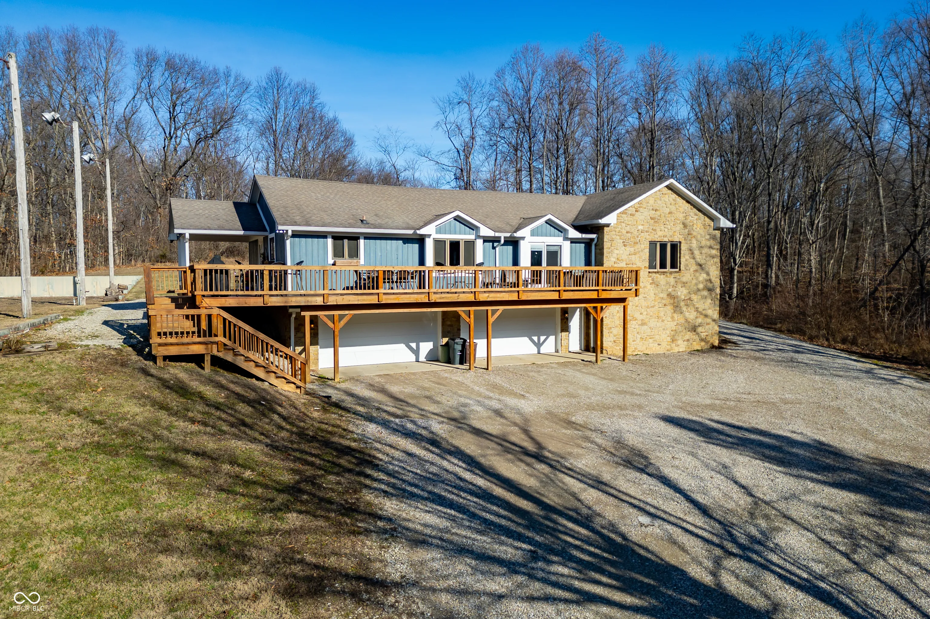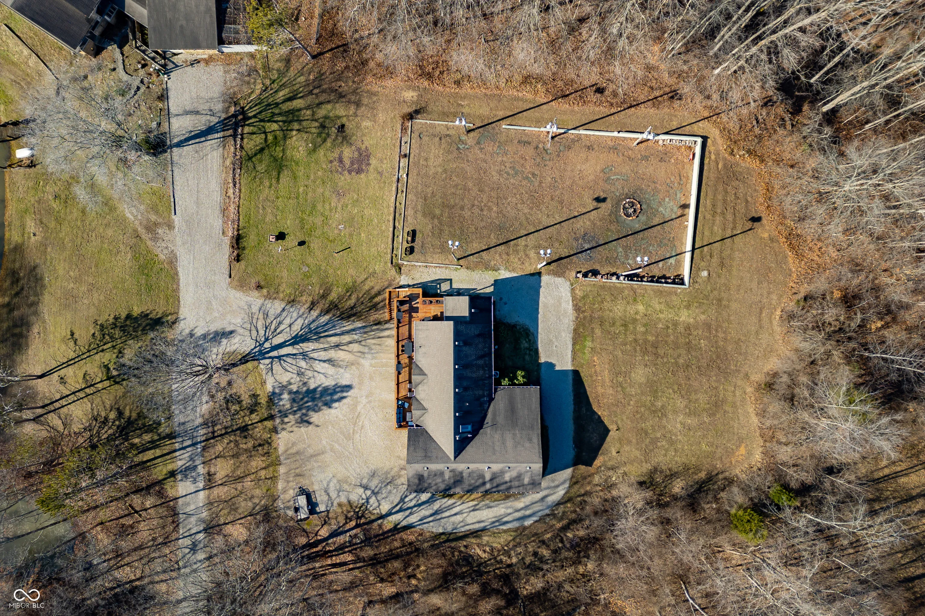 A unique opportunity to own two homes on over sixteen wooded acres. Do you like to entertain? Need in-law or guest quarters? Perhaps an Airbnb on your property? The possibilities are endless. The updated guest house features an indoor basketball, pickleball, or racquetball court. An open-concept great room, kitchen, and dining area are highlighted by an amazing built-in bar. It also includes one bedroom & a new custom bathroom. All of above a four-car attached garage & workshop. Great views of the stocked pond from the wrap-around deck. The main home is over 5,000 square feet with a lodge like feeling featuring vaulted ceilings, wood beams, hardwood flooring, & stone fireplace. The massive master suite includes two full bathrooms, one of which has been completely renovated. Finished walkout basement overlooks the pond and woods. Just waiting on your vision to make this great property your own private retreat.