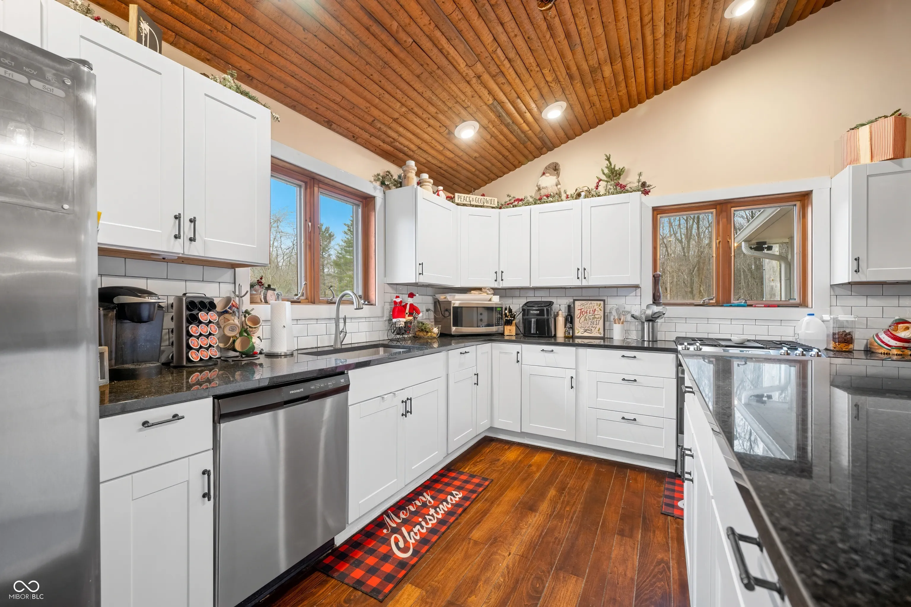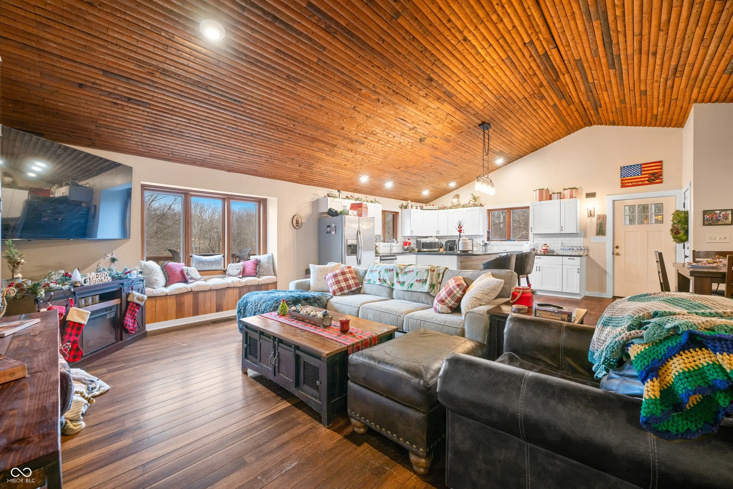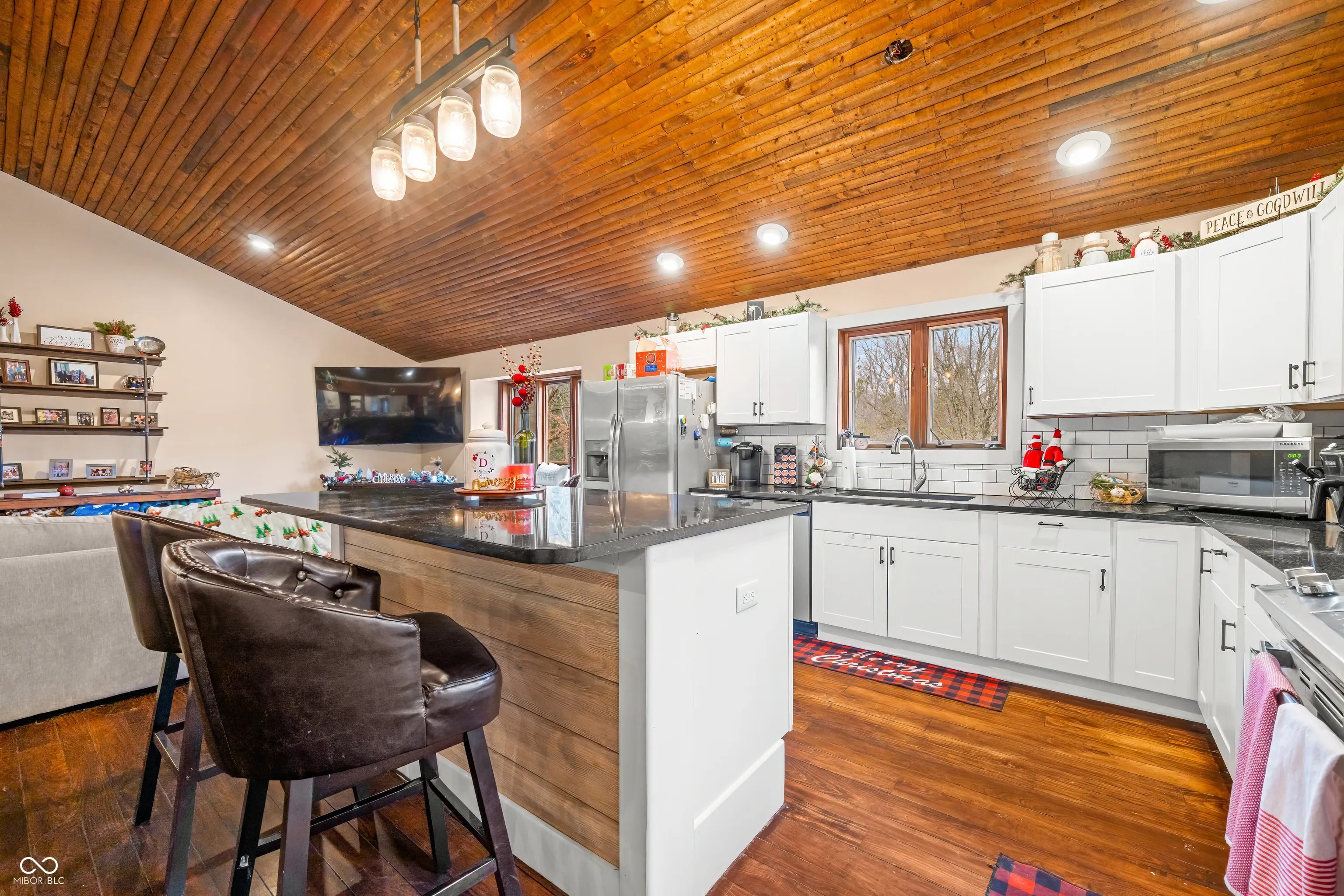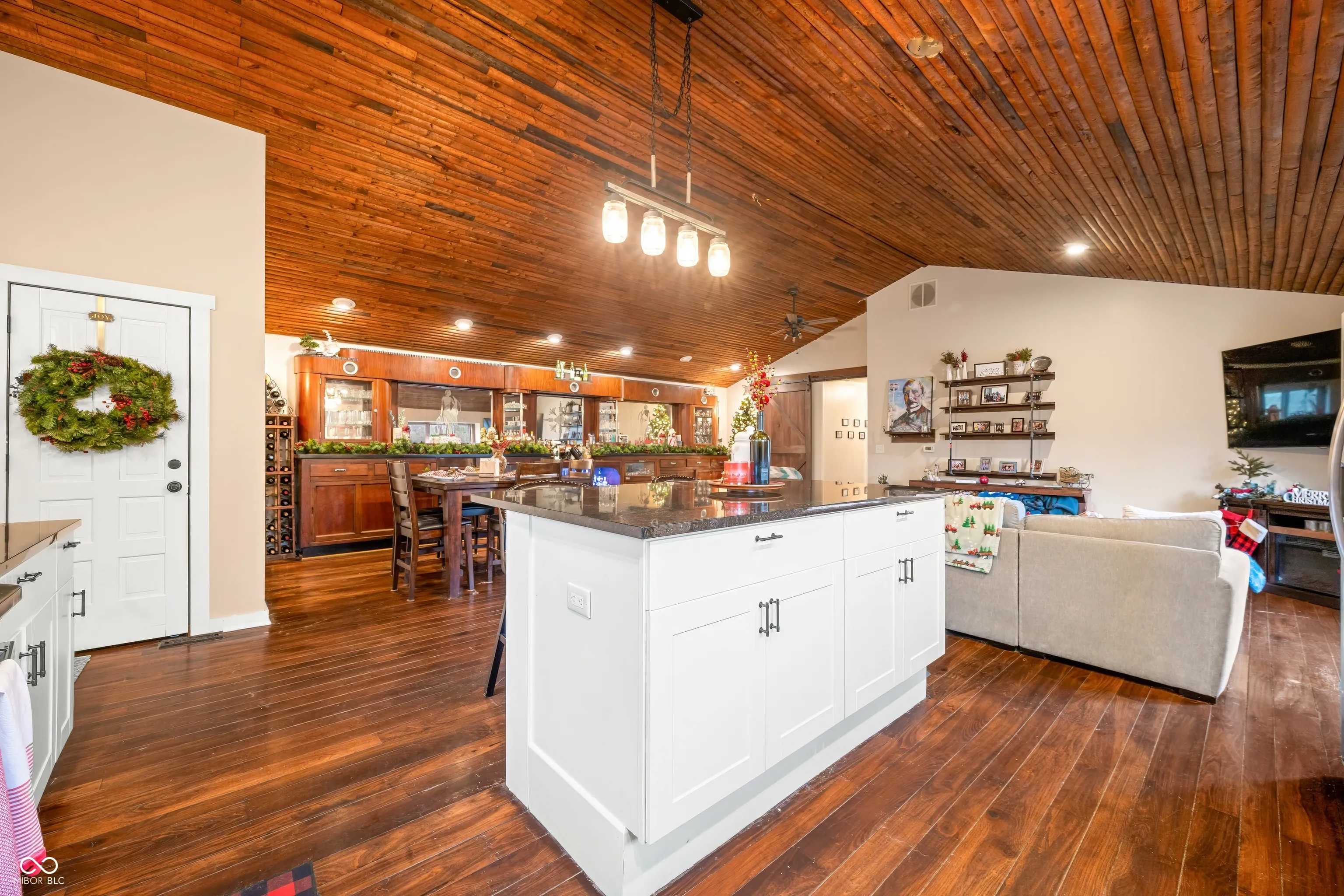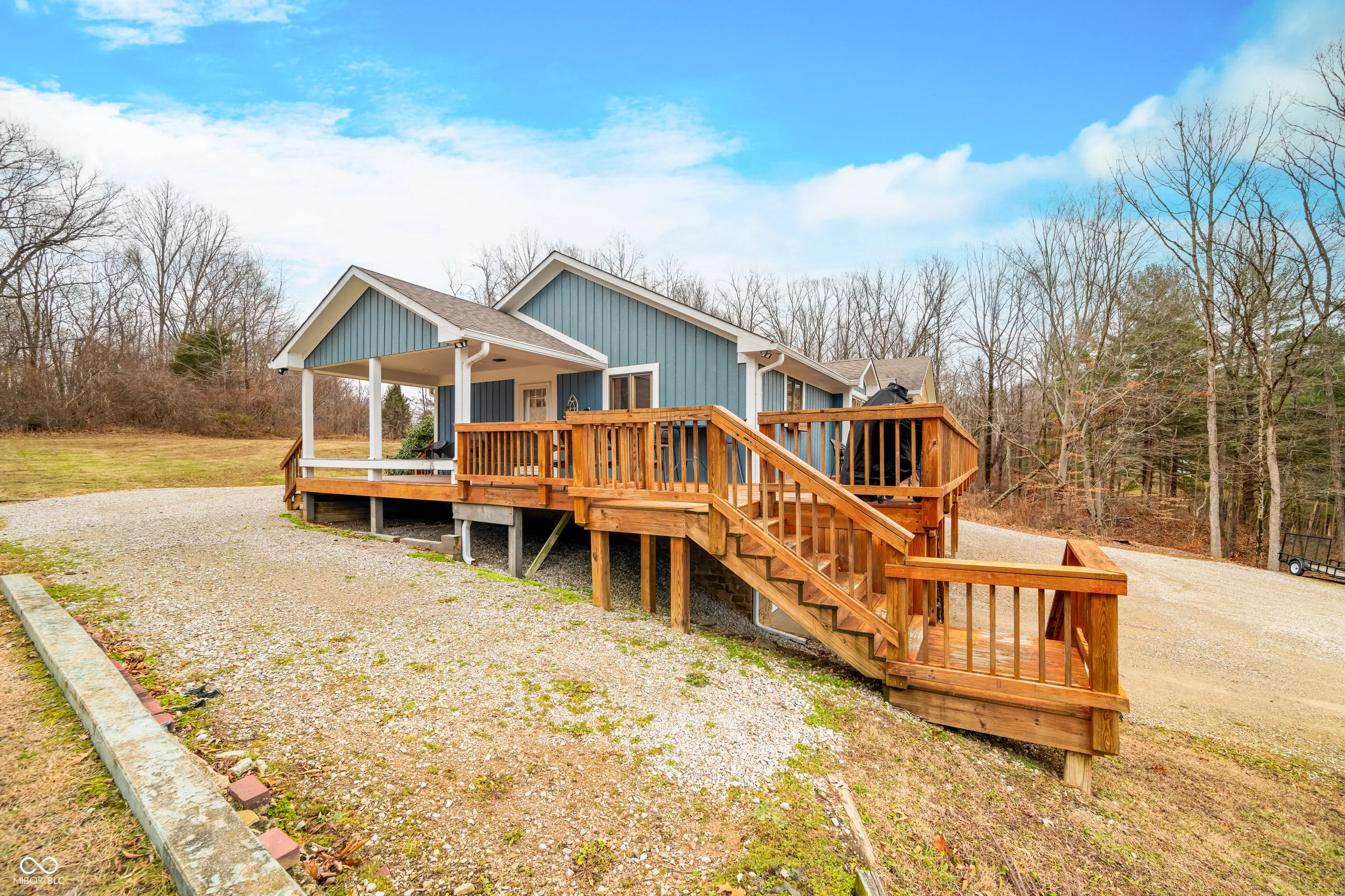 A unique opportunity to own two homes on over sixteen wooded acres. Do you like to entertain? Need in-law or guest quarters? Perhaps an Airbnb on your property? The possibilities are endless. The updated guest house features an indoor basketball, pickleball, or racquetball court. An open-concept great room, kitchen, and dining area are highlighted by an amazing built-in bar. It also includes one bedroom & a new custom bathroom. All of above a four-car attached garage & workshop. Great views of the stocked pond from the wrap-around deck. The main home is over 5,000 square feet with a lodge like feeling featuring vaulted ceilings, wood beams, hardwood flooring, & stone fireplace. The massive master suite includes two full bathrooms, one of which has been completely renovated. Finished walkout basement overlooks the pond and woods. Just waiting on your vision to make this great property your own private retreat.