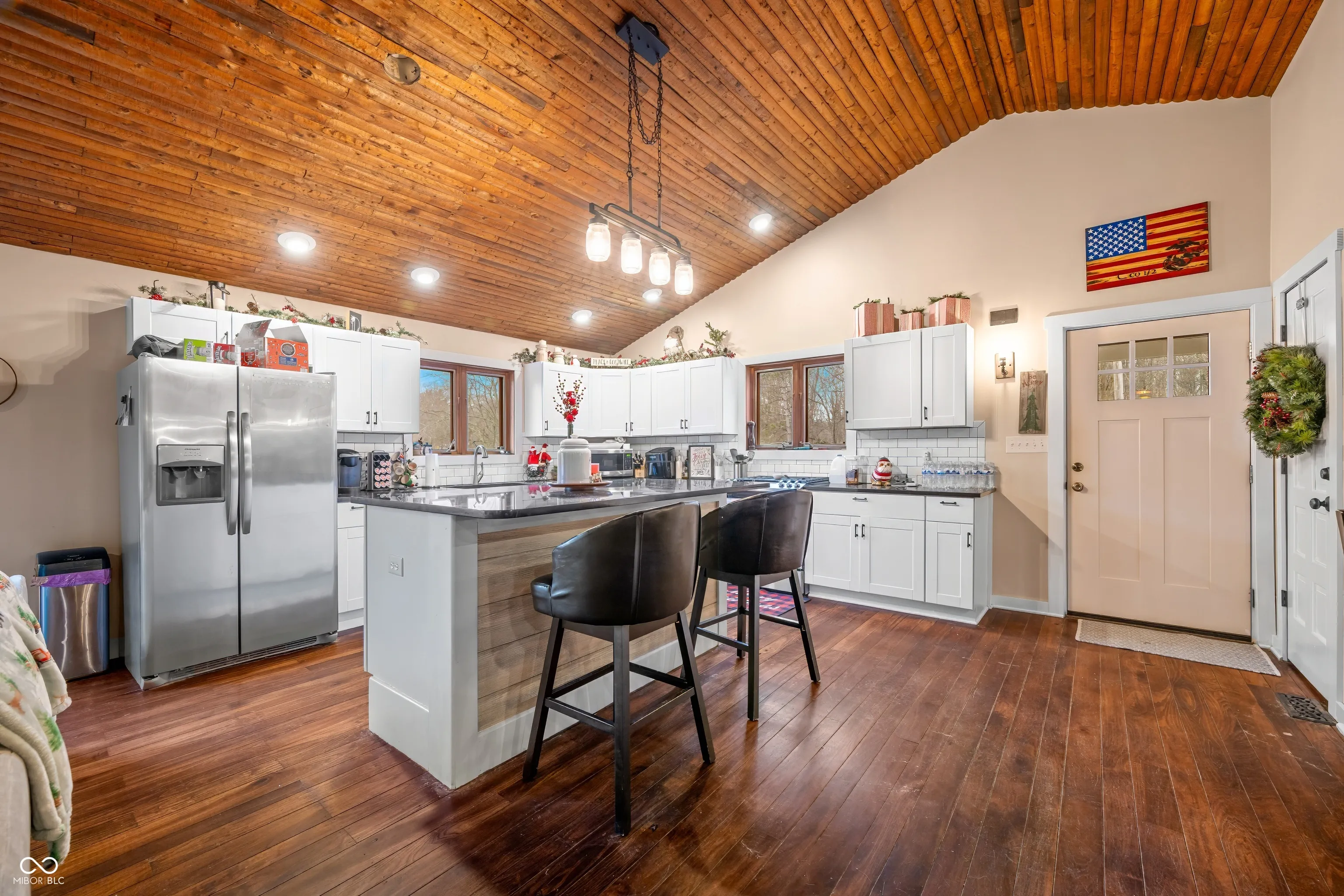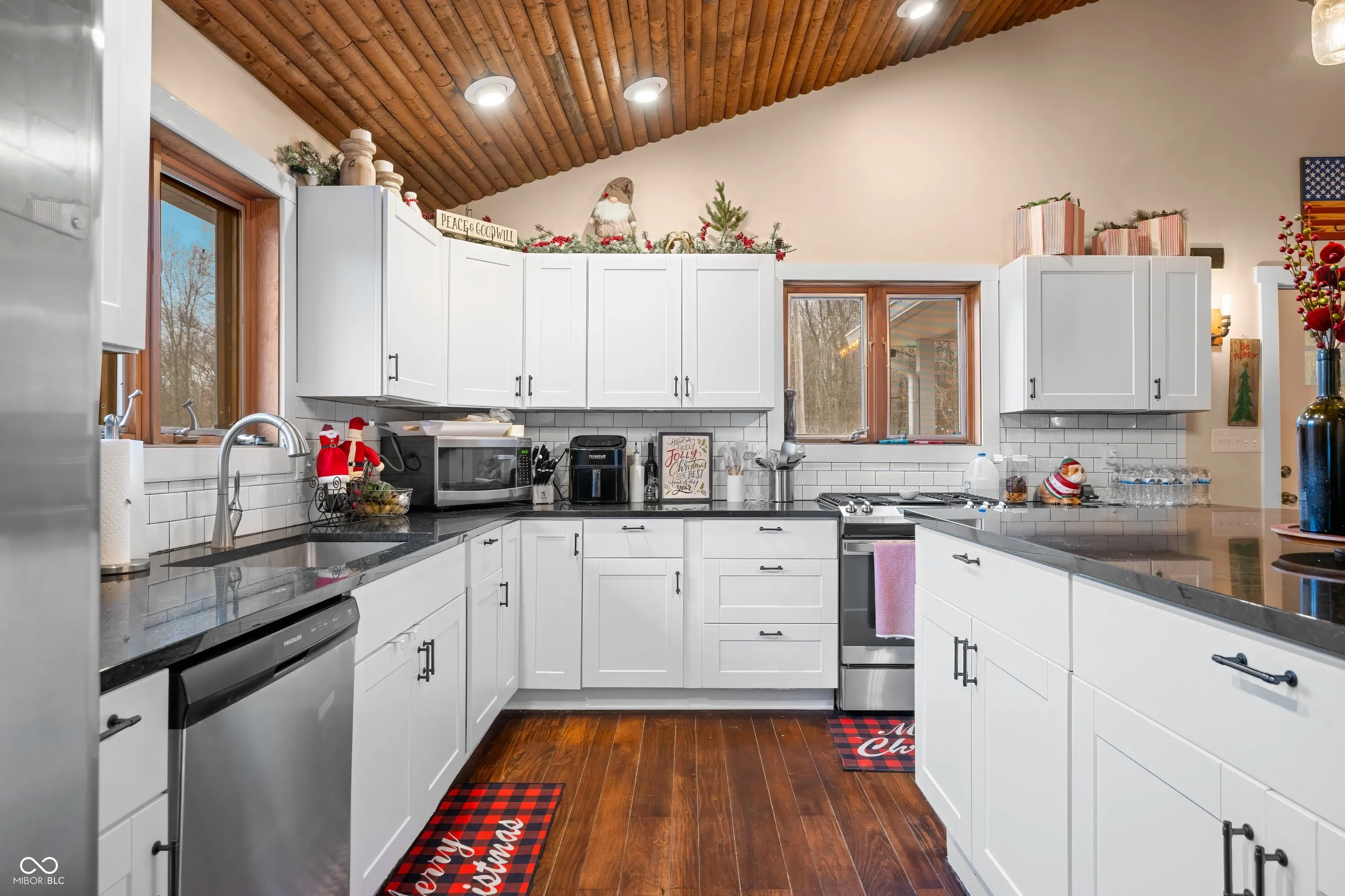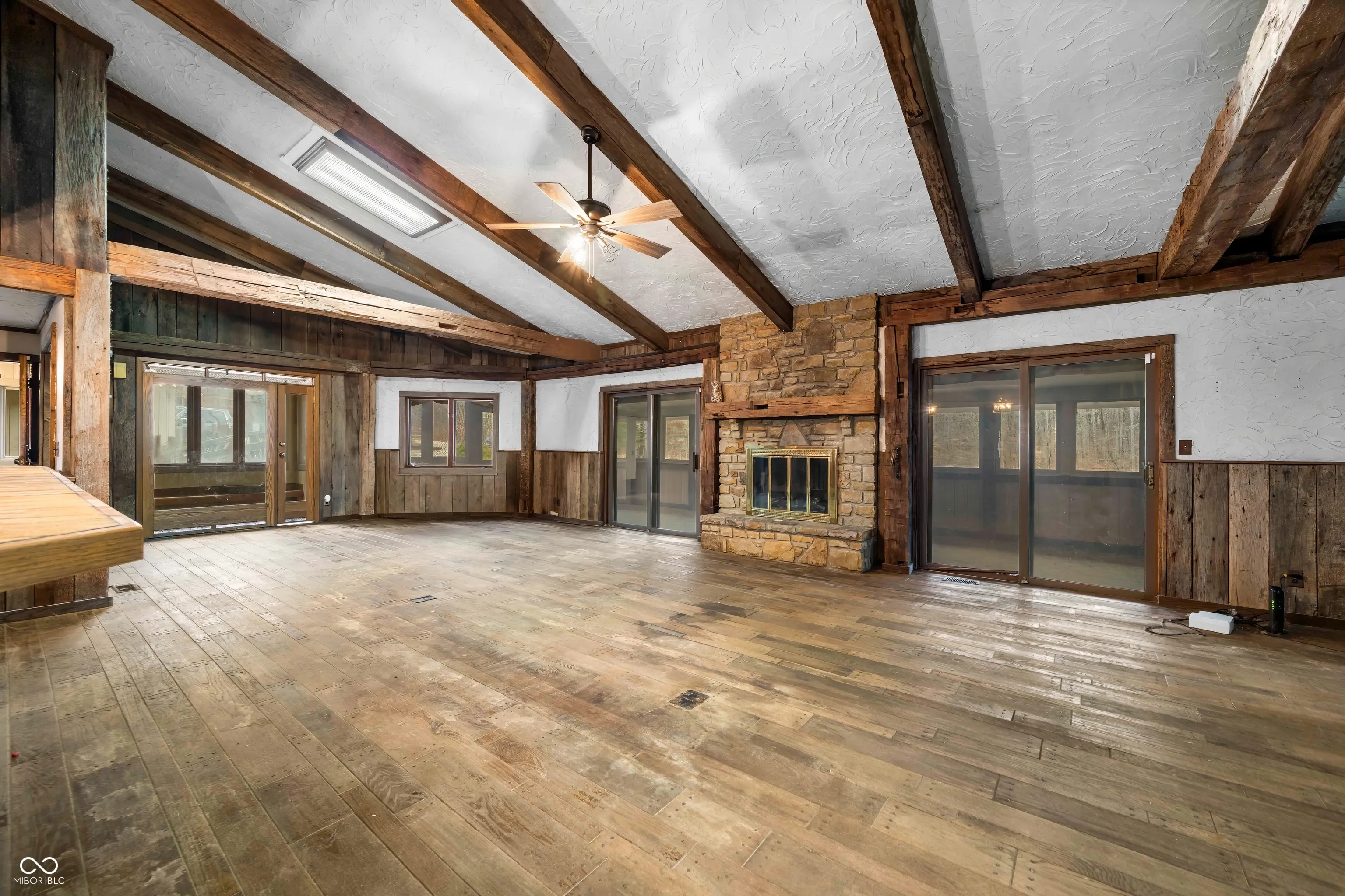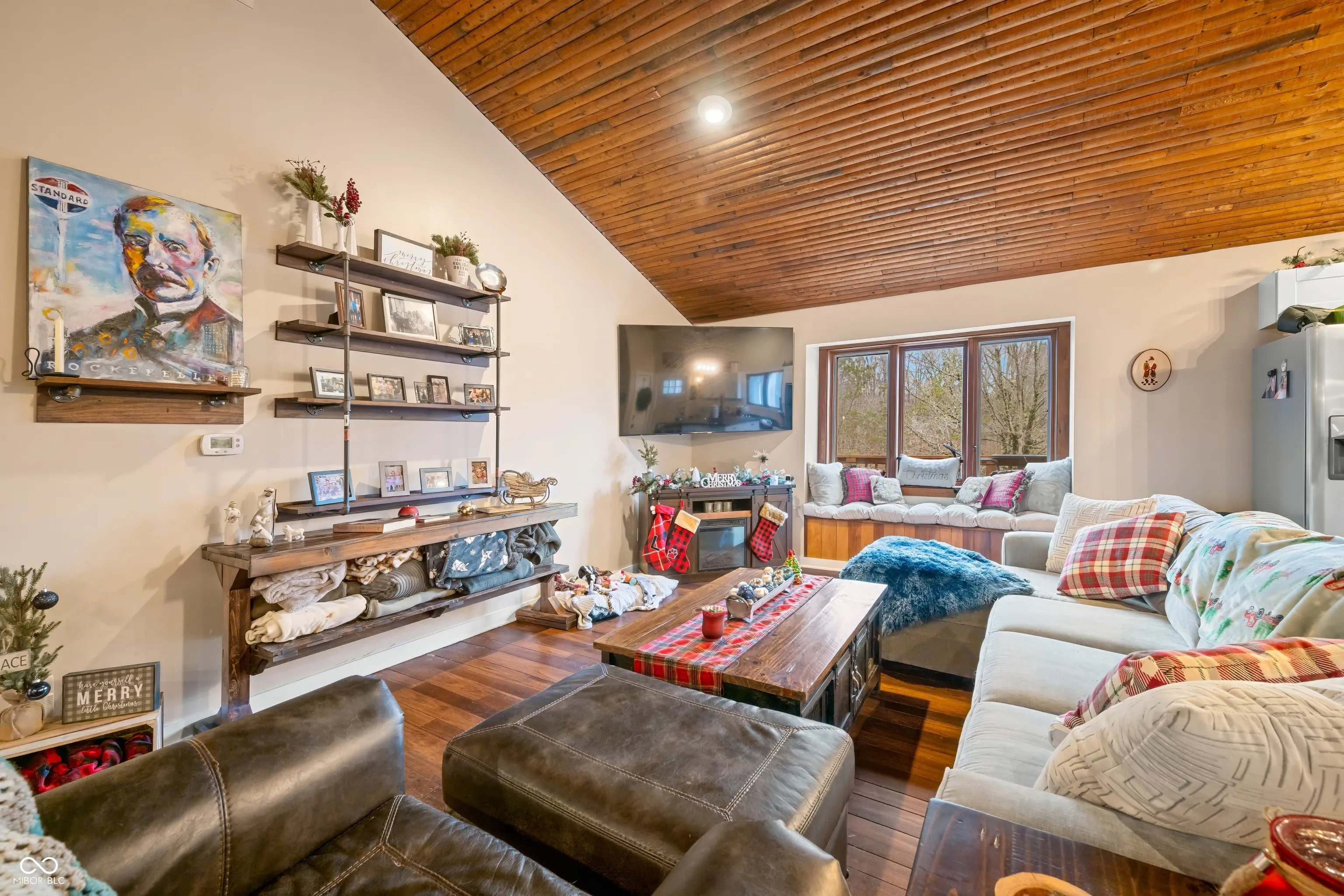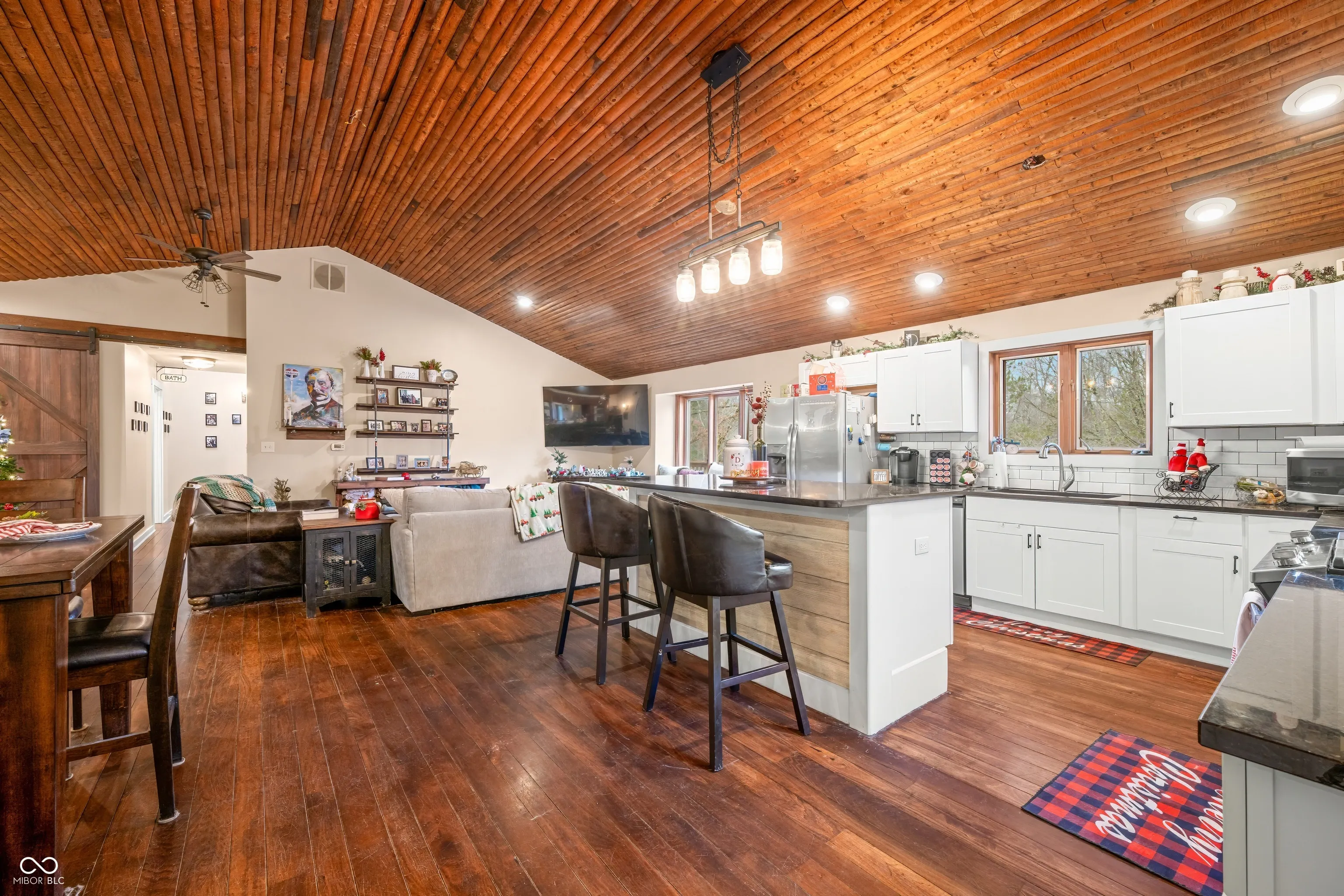 A unique opportunity to own two homes on over sixteen wooded acres. Do you like to entertain? Need in-law or guest quarters? Perhaps an Airbnb on your property? The possibilities are endless. The updated guest house features an indoor basketball, pickleball, or racquetball court. An open-concept great room, kitchen, and dining area are highlighted by an amazing built-in bar. It also includes one bedroom & a new custom bathroom. All of above a four-car attached garage & workshop. Great views of the stocked pond from the wrap-around deck. The main home is over 5,000 square feet with a lodge like feeling featuring vaulted ceilings, wood beams, hardwood flooring, & stone fireplace. The massive master suite includes two full bathrooms, one of which has been completely renovated. Finished walkout basement overlooks the pond and woods. Just waiting on your vision to make this great property your own private retreat.