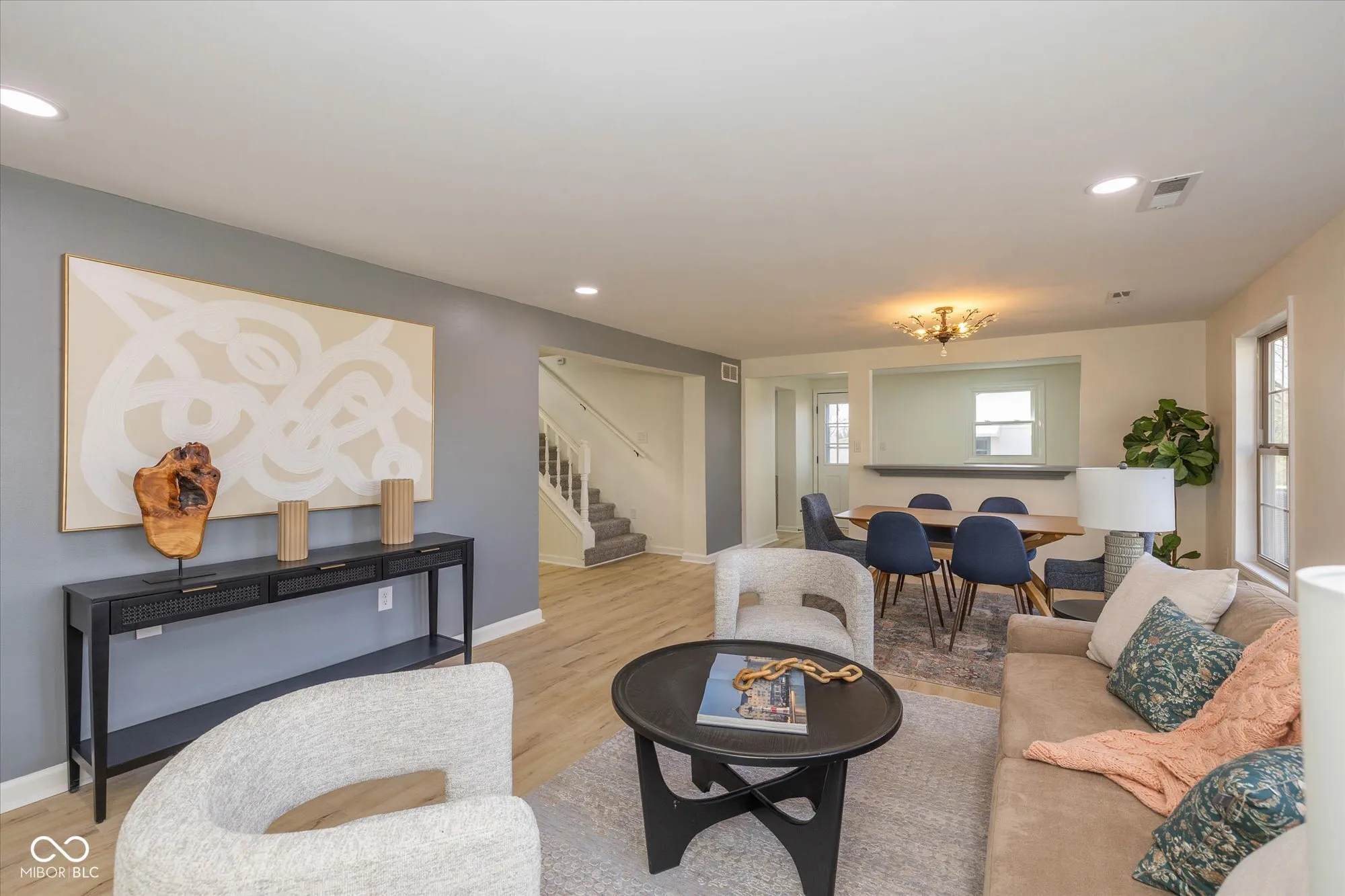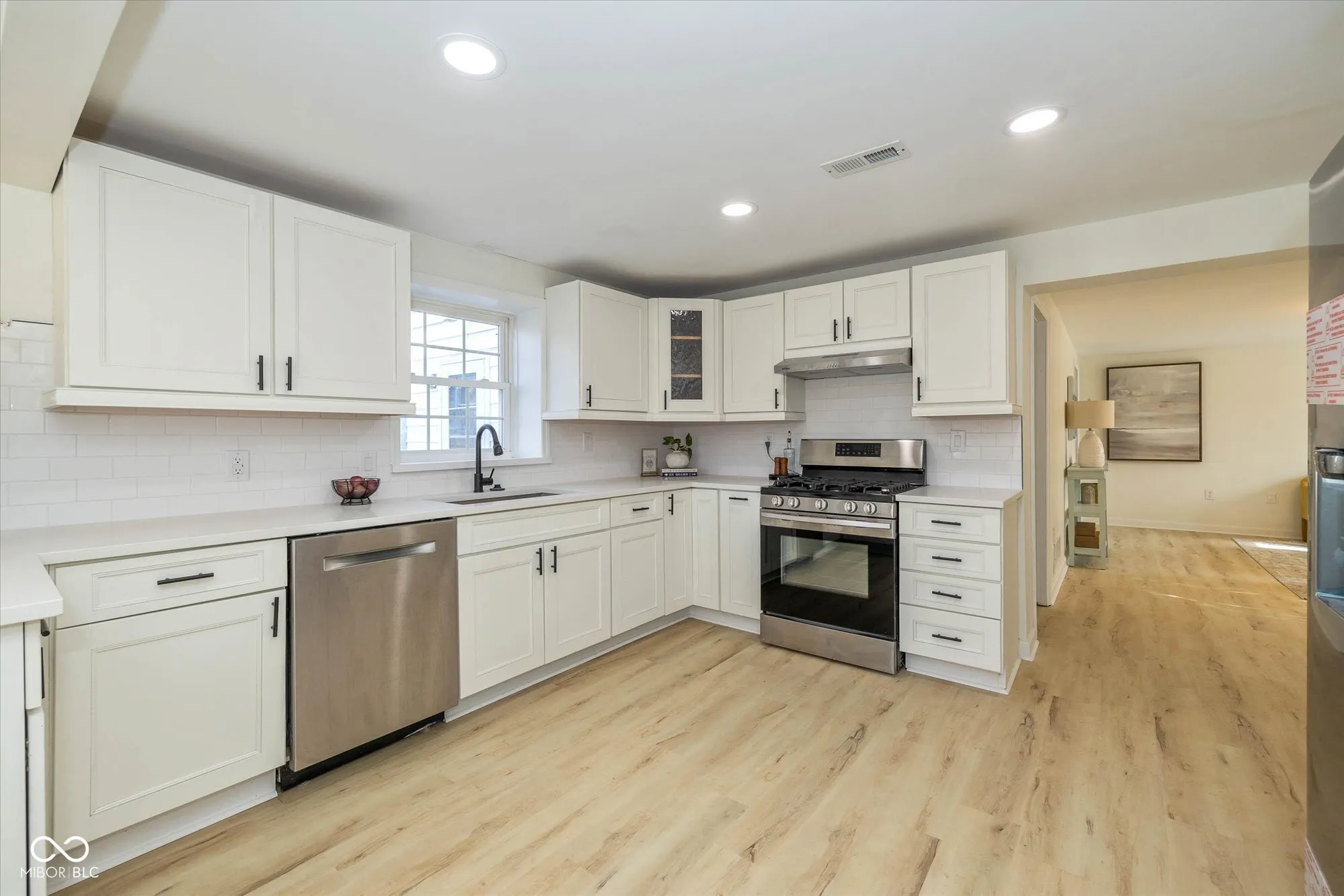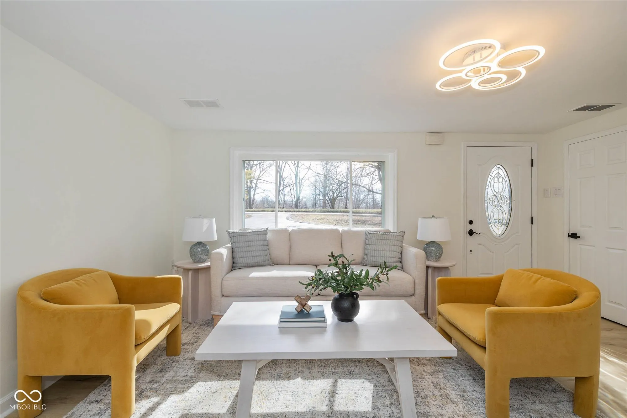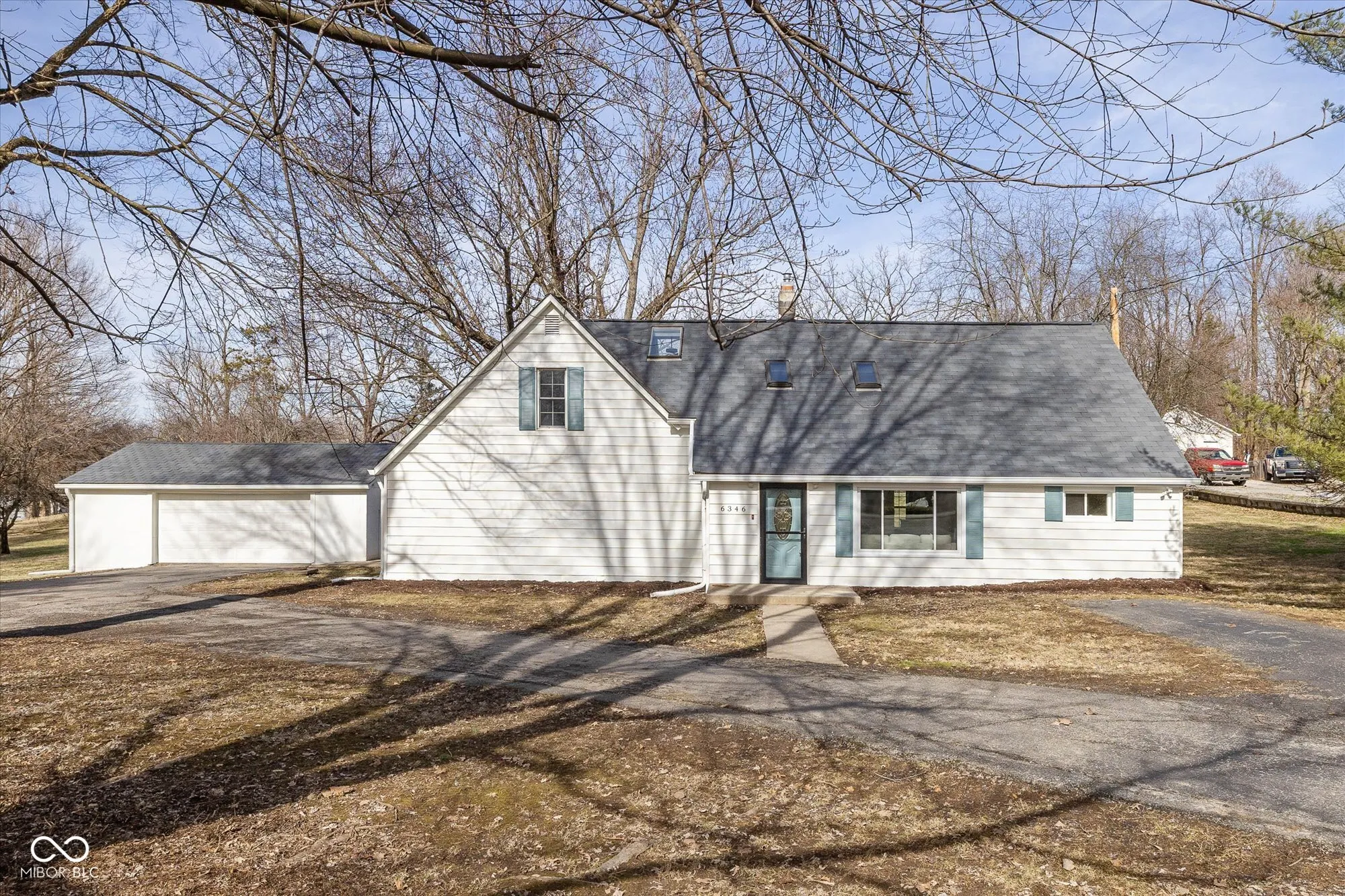 Surprisingly spacious and beautifully renovated home with over 3,000 square feet, five bedrooms, 2.5 baths, sitting on 3/4 acre lot. Tucked back among the trees with a circular driveway and lots of extra parking. Amazing and unique floorplan with natural light galore! A welcoming living room, large family room ideal for gatherings, large updated kitchen, 1/2 bath, huge laundry room and 2 bedrooms on the main floor. Upper level providing spaces for everyone, includes the primary suite with new tile shower, 2 more bedrooms, another updated full bath and loft area with skylight. The large kitchen is completely updated with enlarged pantry, gorgeous quartz countertops, tile backsplash, new refrigerator, range hood, disposal, newer electric range and dishwasher. Adjacent to the kitchen is the breakfast nook that leads out to the patio and huge backyard. Fresh paint inside and out, new luxury vinyl flooring on the main level (waterproof with lifetime warranty), new carpet with a 15 year warranty on upper level. New lighting, hardware and fixtures throughout the home. Two stairways, one off the kitchen leads directly to the primary suite and one in the center of the home leads upstairs. Brand new water heater, newer slate roof and some new windows. Seller will be replacing utility room sink. Oversized detached garage with garage door opener, new electrical panel, lights, outlets and a refrigerator. Offering plenty of space and privacy, with no HOA restrictions this property is close to great shopping, restaurants, and Washington Township Park. Minutes to I-465, the Indianapolis International Airport and downtown Indy.