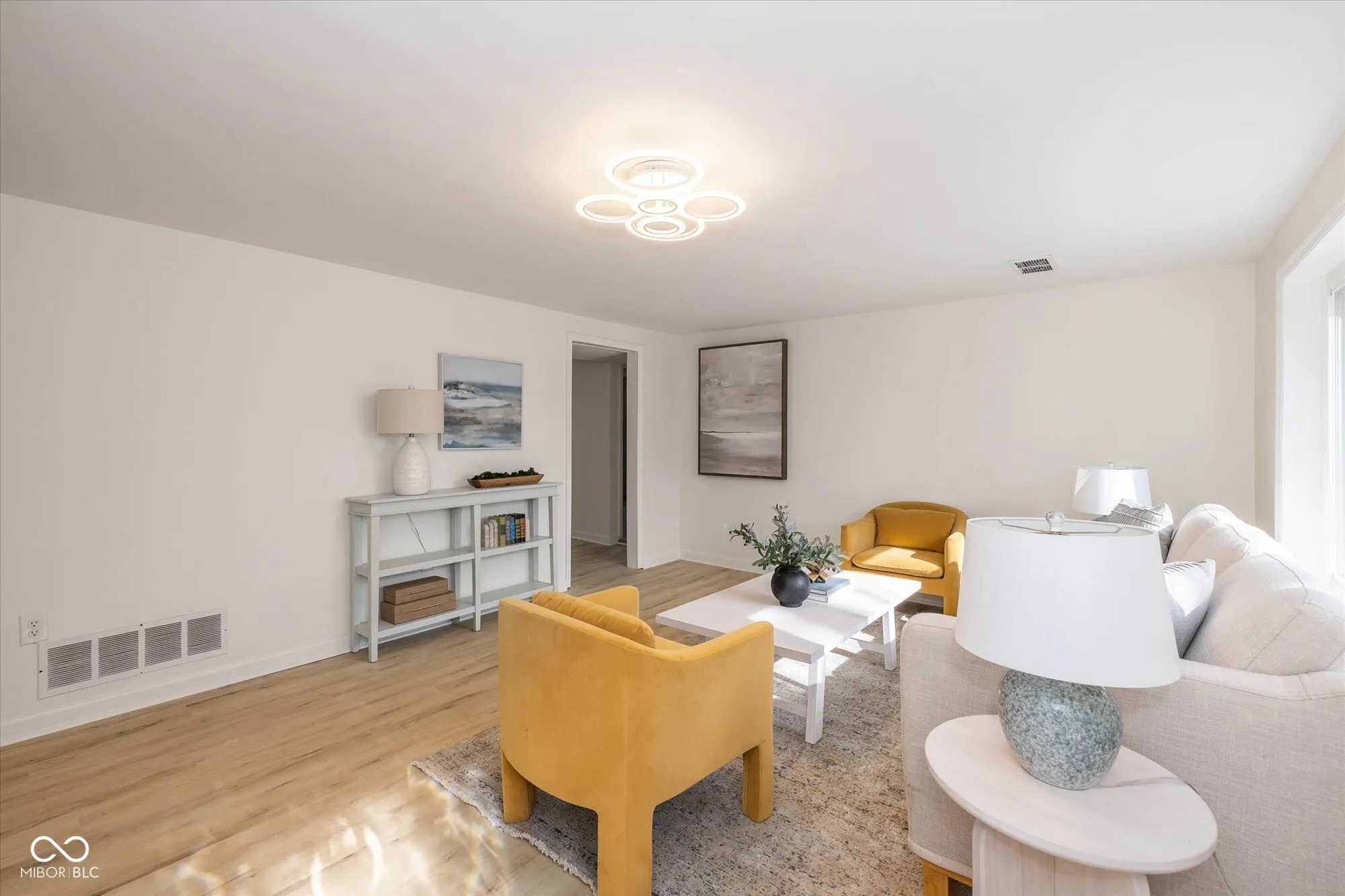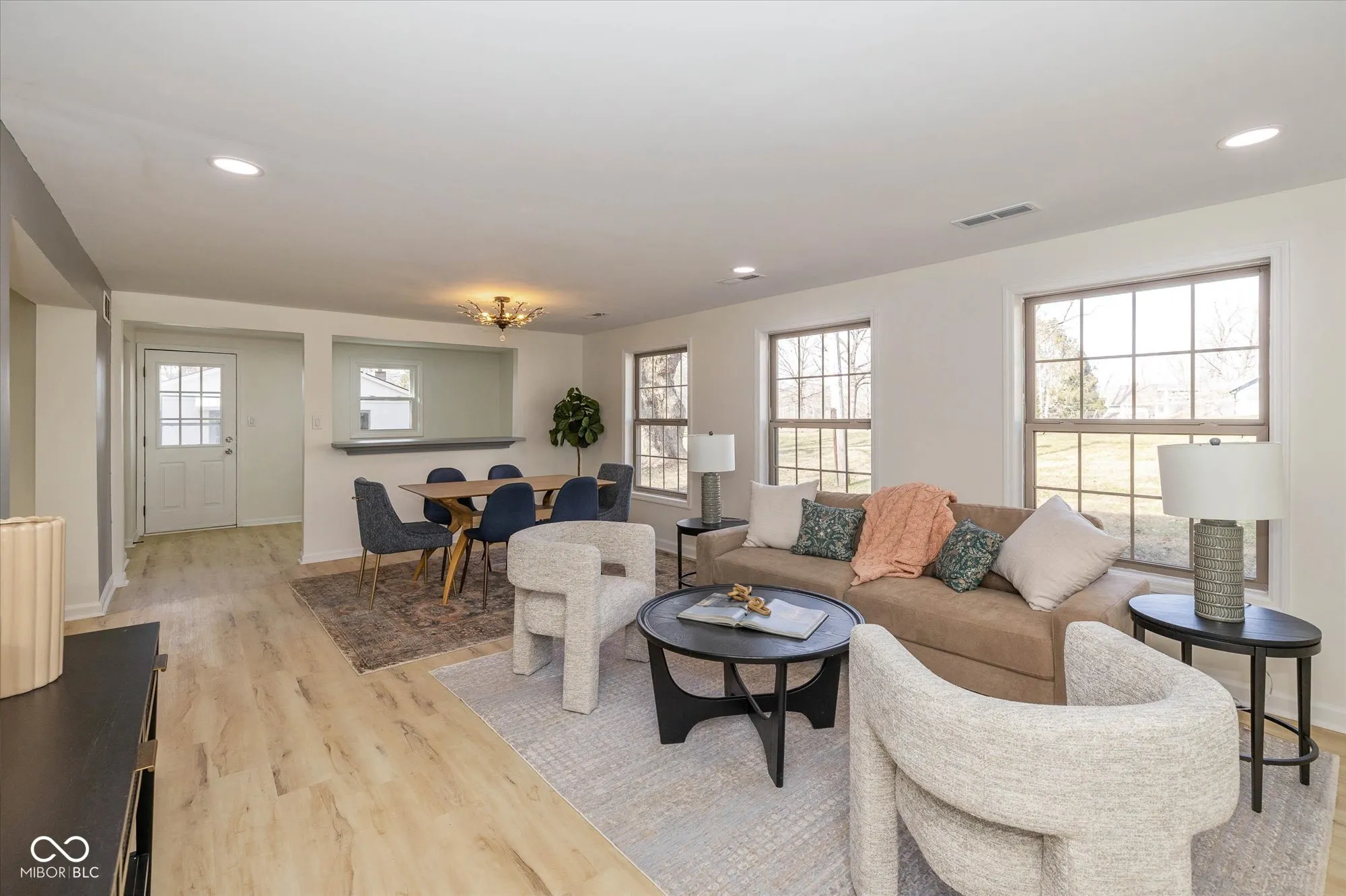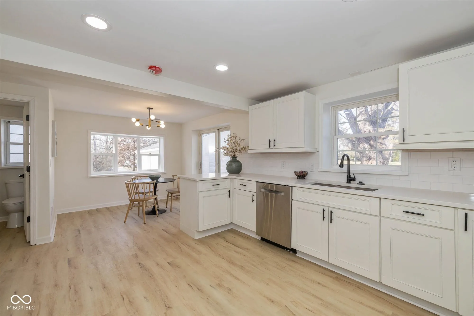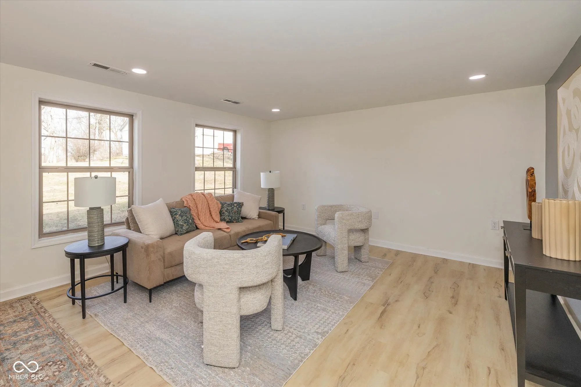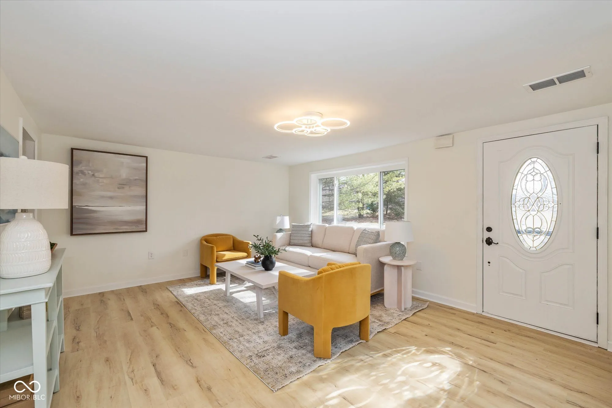 Surprisingly spacious and beautifully renovated home with over 3,000 square feet, five bedrooms, 2.5 baths, sitting on 3/4 acre lot. Tucked back among the trees with a circular driveway and lots of extra parking. Amazing and unique floorplan with natural light galore! A welcoming living room, large family room ideal for gatherings, large updated kitchen, 1/2 bath, huge laundry room and 2 bedrooms on the main floor. Upper level providing spaces for everyone, includes the primary suite with new tile shower, 2 more bedrooms, another updated full bath and loft area with skylight. The large kitchen is completely updated with enlarged pantry, gorgeous quartz countertops, tile backsplash, new refrigerator, range hood, disposal, newer electric range and dishwasher. Adjacent to the kitchen is the breakfast nook that leads out to the patio and huge backyard. Fresh paint inside and out, new luxury vinyl flooring on the main level (waterproof with lifetime warranty), new carpet with a 15 year warranty on upper level. New lighting, hardware and fixtures throughout the home. Two stairways, one off the kitchen leads directly to the primary suite and one in the center of the home leads upstairs. Brand new water heater, newer slate roof and some new windows. Seller will be replacing utility room sink. Oversized detached garage with garage door opener, new electrical panel, lights, outlets and a refrigerator. Offering plenty of space and privacy, with no HOA restrictions this property is close to great shopping, restaurants, and Washington Township Park. Minutes to I-465, the Indianapolis International Airport and downtown Indy.