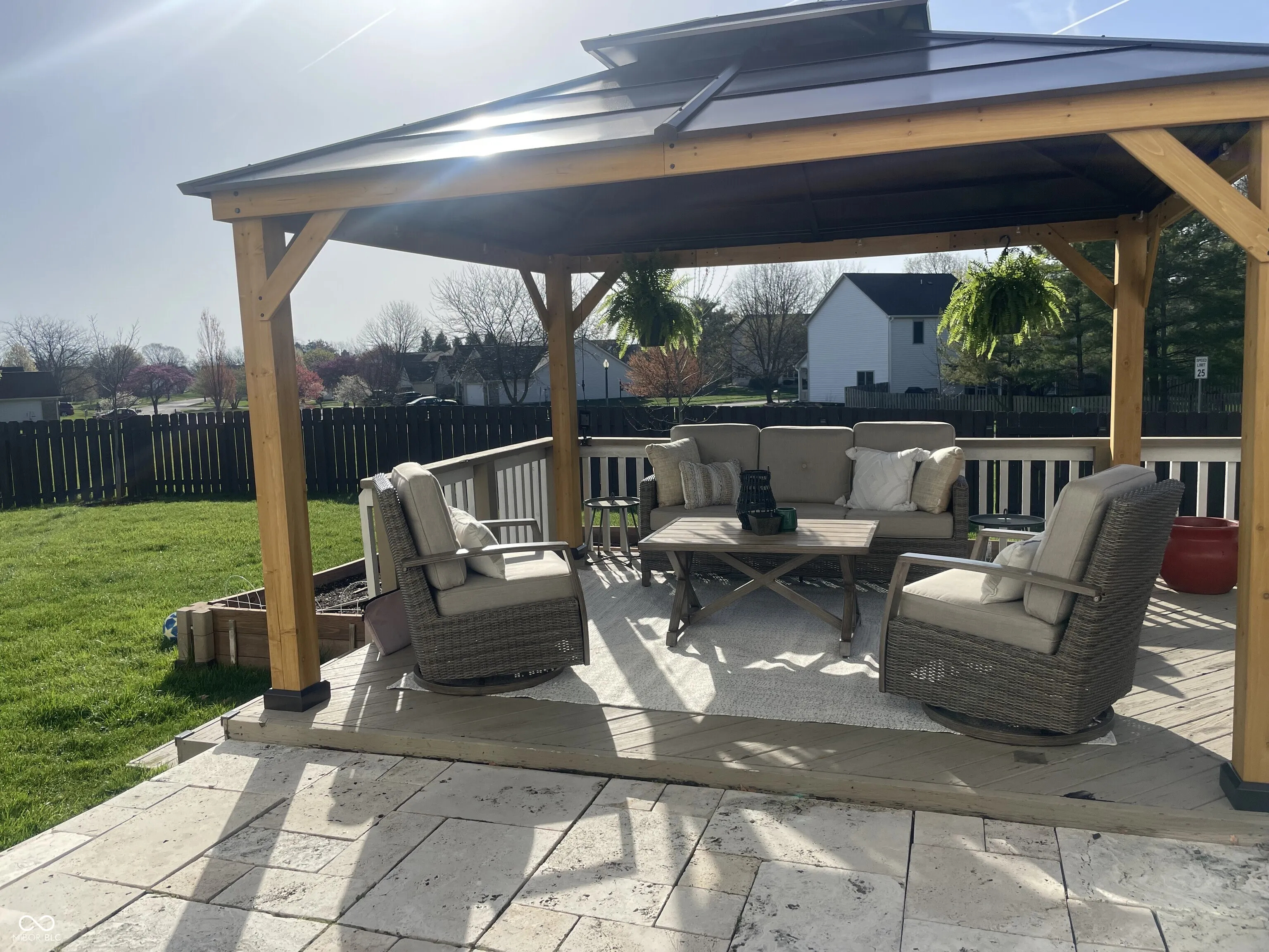 Welcome to this charming 4-bedroom, 2.5-bathroom home, offering 2,326 square feet of thoughtfully designed living space. The fully fenced backyard with a stunning concrete patio and deck, complete with a pergola with solar string lights, overlooking an enormous common area, sets the perfect stage for outdoor privacy, relaxation, and entertaining. Upon entry, you’re greeted by a private office, ideal for remote work or study. The kitchen is a chef’s dream, boasting stainless steel appliances, an island with seating, and a breakfast nook that opens to the beautiful backyard patio. The separate formal dining room is filled with natural light, making it an inviting space for gatherings. The cozy great room features a fireplace and large windows, creating a warm and welcoming ambiance. A convenient half bath completes the main level. Upstairs, the spacious master suite is a true retreat, featuring a luxurious ensuite with dual vanities, a glass-enclosed shower, a soaking tub, and walk-in closet. Three additional generously sized bedrooms and another full bathroom complete the upper level. This property truly has it all, offering comfort, functionality, and charm!