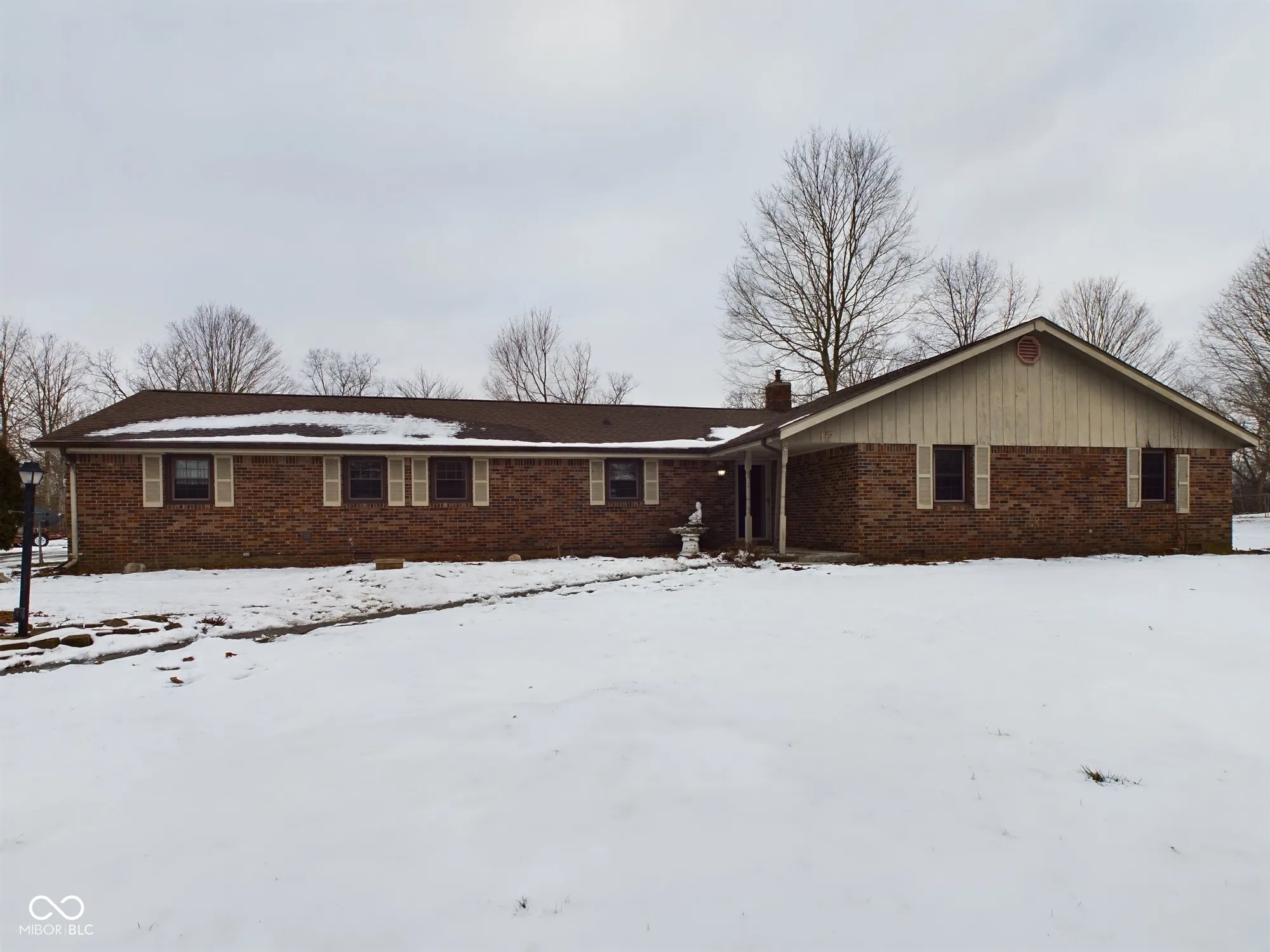 Welcome to this charming 3-BR, 2.5-BA, brick ranch situated on a sprawling 1.74-acre lot. Step inside from the inviting covered front porch into cozy living rm featuring a gas fireplace. The kitchen boasts a pantry, center island w/ breakfast bar, & flows seamlessly into the dining rm, perfect for entertaining. Enjoy the natural light in the sunroom, & take advantage of the convenient laundry/utility rm, complete with washer/dryer. Primary suite offers double sinks, a WIC, & plenty of space to relax. Recent updates include a newer furnace (2 yrs old) & Kinetico water softener. Home features a rear-load 2-car attached garage w/ electric heater for year-round comfort. Property includes a 36′ x 32′ pole barn w/ concrete floor & electricity, perfect for hobbies, storage, or a workshop. Home is part of an estate and is ready for its next chapter-schedule your showing today to explore all it has to offer! Estate sale, sold AS-IS.