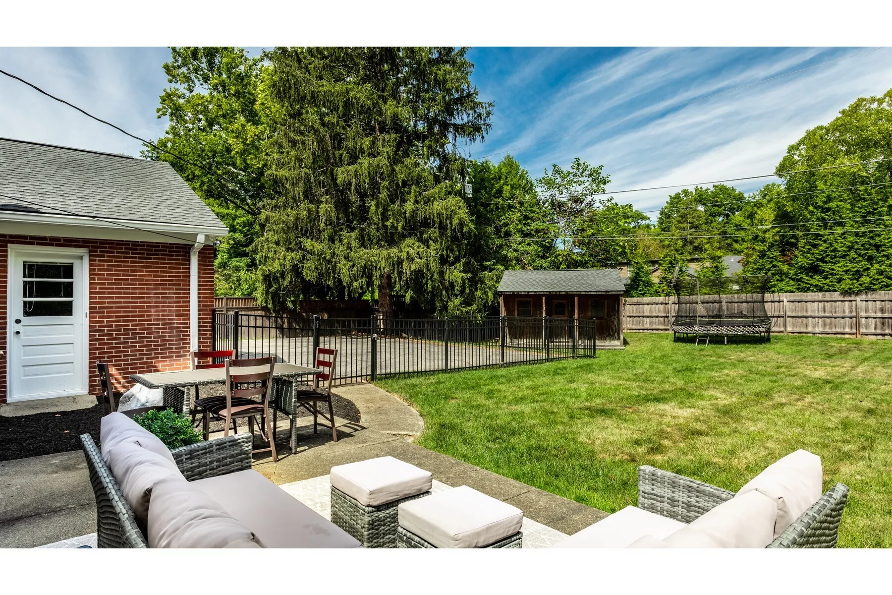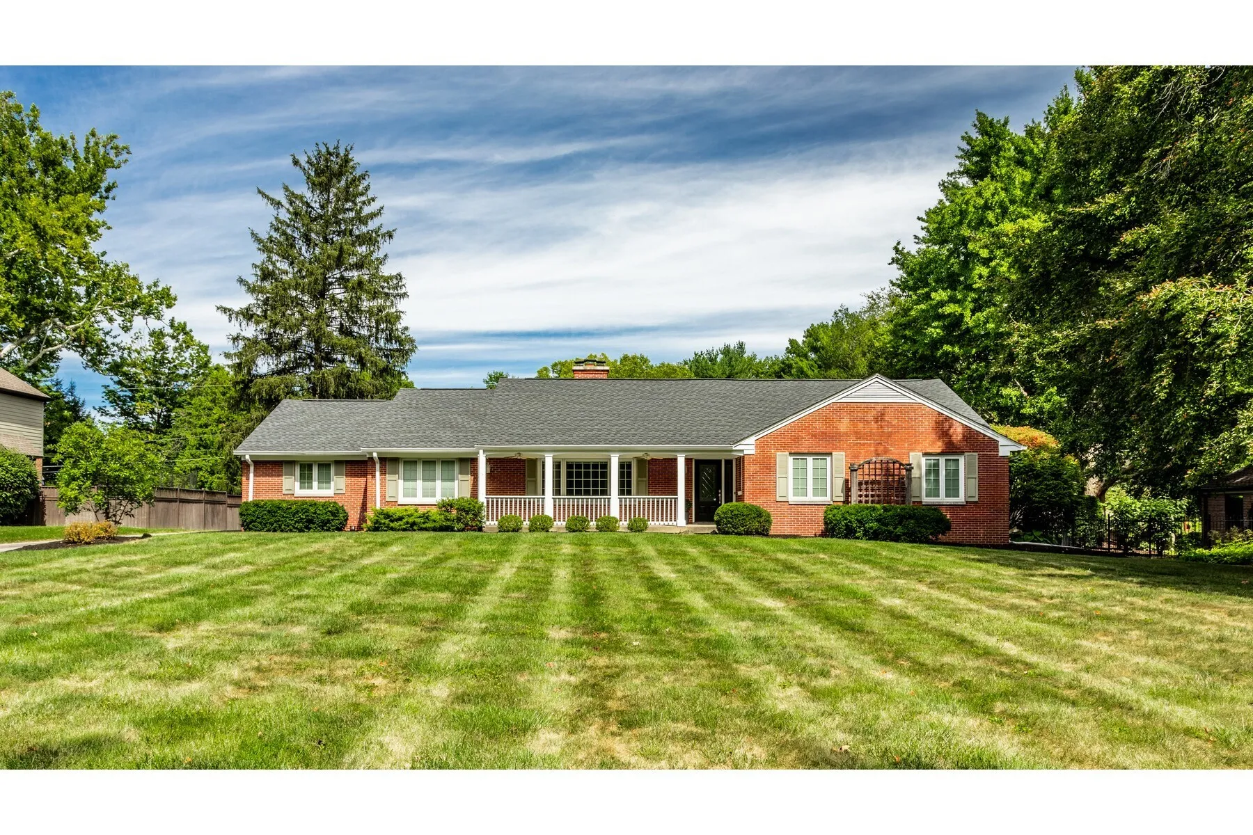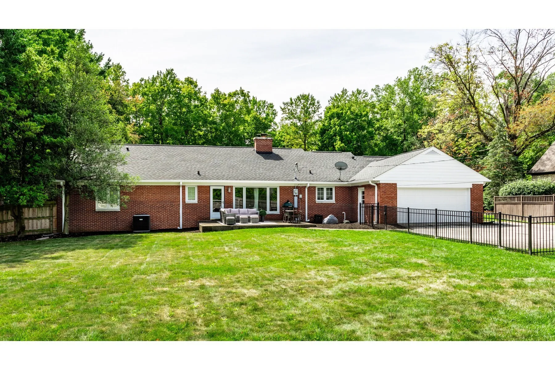This charming 4-bedroom, 3-bathroom brick ranch in Washington Township is nestled on a quiet, cull de sac street surrounded by mature trees, offering peace and privacy. The spacious fenced backyard features a versatile storage or play shed and a large patio, perfect for outdoor entertaining. Inside, the beautifully updated kitchen boasts granite countertops, an island with seating for 4+, stainless steel appliances, and under-cabinet lighting. Additional built-in bar in living area has granite counters and beverage fridge. Enjoy cozy evenings in the living room by the stone fireplace, or unwind in the finished basement with multiple living spaces, laundry room, and additional storage. All bathrooms are finished with granite countertops, and the home has been recently upgraded with a new tankless water heater and furnace (2024). New carpet has been installed in all bedrooms, with original hardwood floors beneath. The heated 2-car garage offers extra storage, and the property’s mature landscaping adds to its charm. Located in a highly sought-after school district, this home blends comfort, convenience, and modern updates in a peaceful setting.