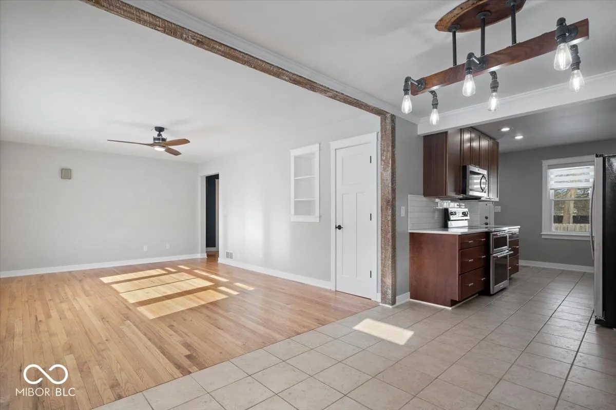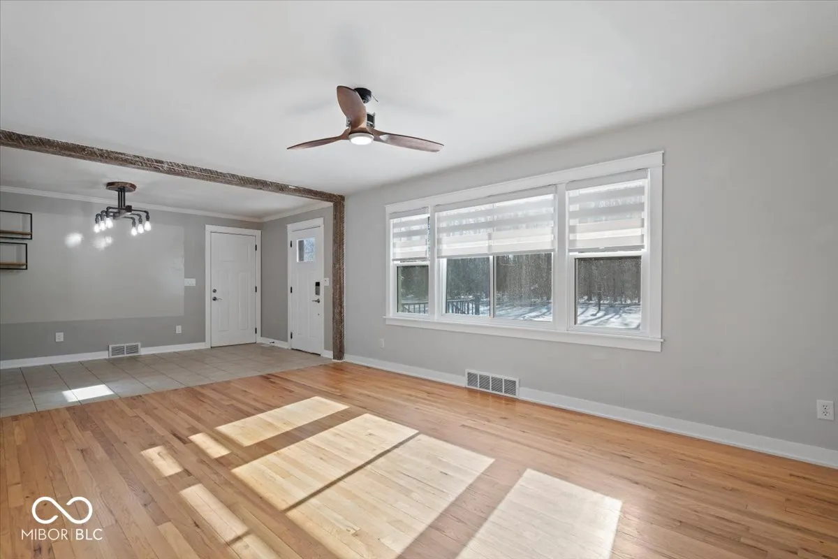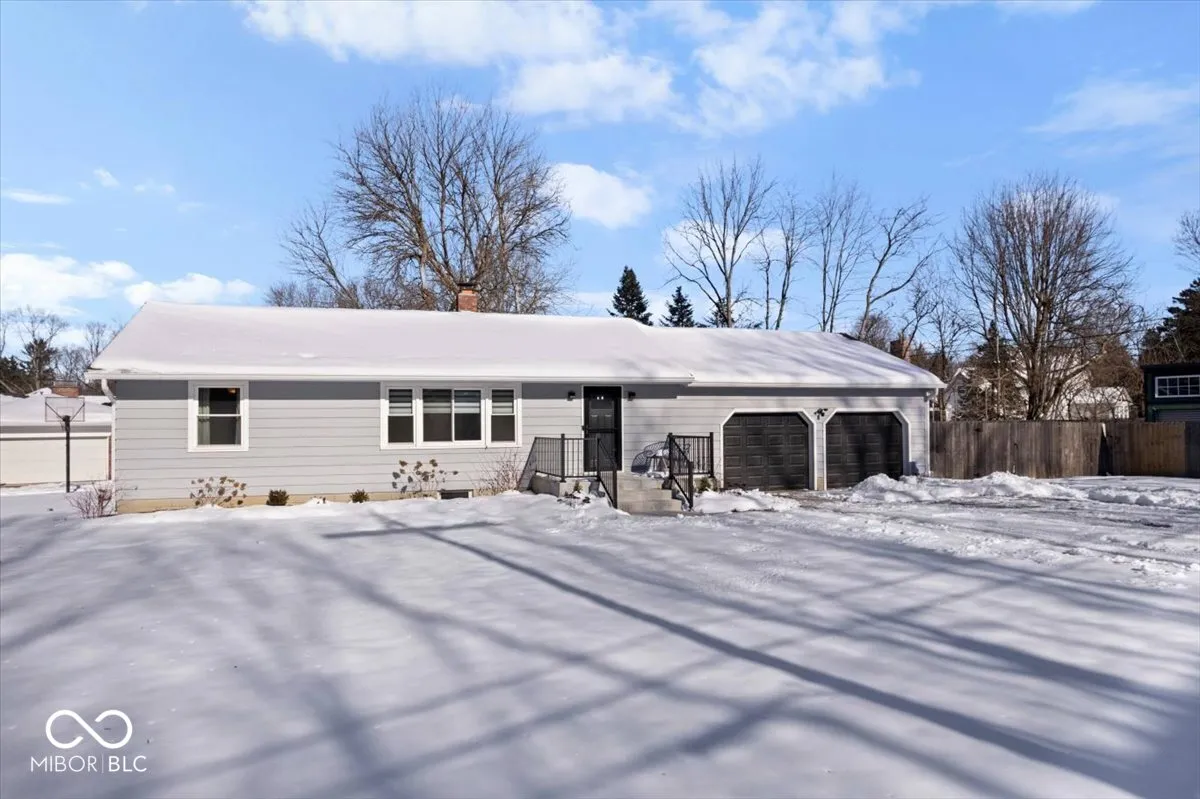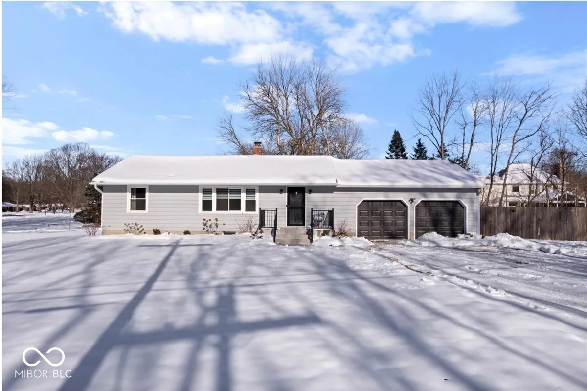 Welcome to this beautifully updated 3-bedroom, 2-bathroom ranch nestled on a sprawling private lot in desirable Carmel, IN. Enjoy the peace and tranquility of no neighbors across the street! Step inside to discover gleaming refinished hardwood floors that flow throughout the main living areas. The updated kitchen boasts updated cabinets and backsplash, quartz counter tops, a new fridge and updated appliances. The exterior was painted and concrete stoop was installed in 2024. The interior and exterior doors were replaced in 2024 and new trim was installed throughout. Two updated bathrooms offer modern fixtures and finishes. The finished basement adds valuable living space with a full bath, recreation area, potential 4th bedroom, and plenty of storage. An oversized 2-car garage provides ample parking and workshop space. There are so many options with the expansive fenced in backyard and new storage shed. This home offers the perfect blend of comfort, privacy, modern updates and only minutes from The Monon Trail, The Monon Center and Downtown Carmel. Don’t miss out!