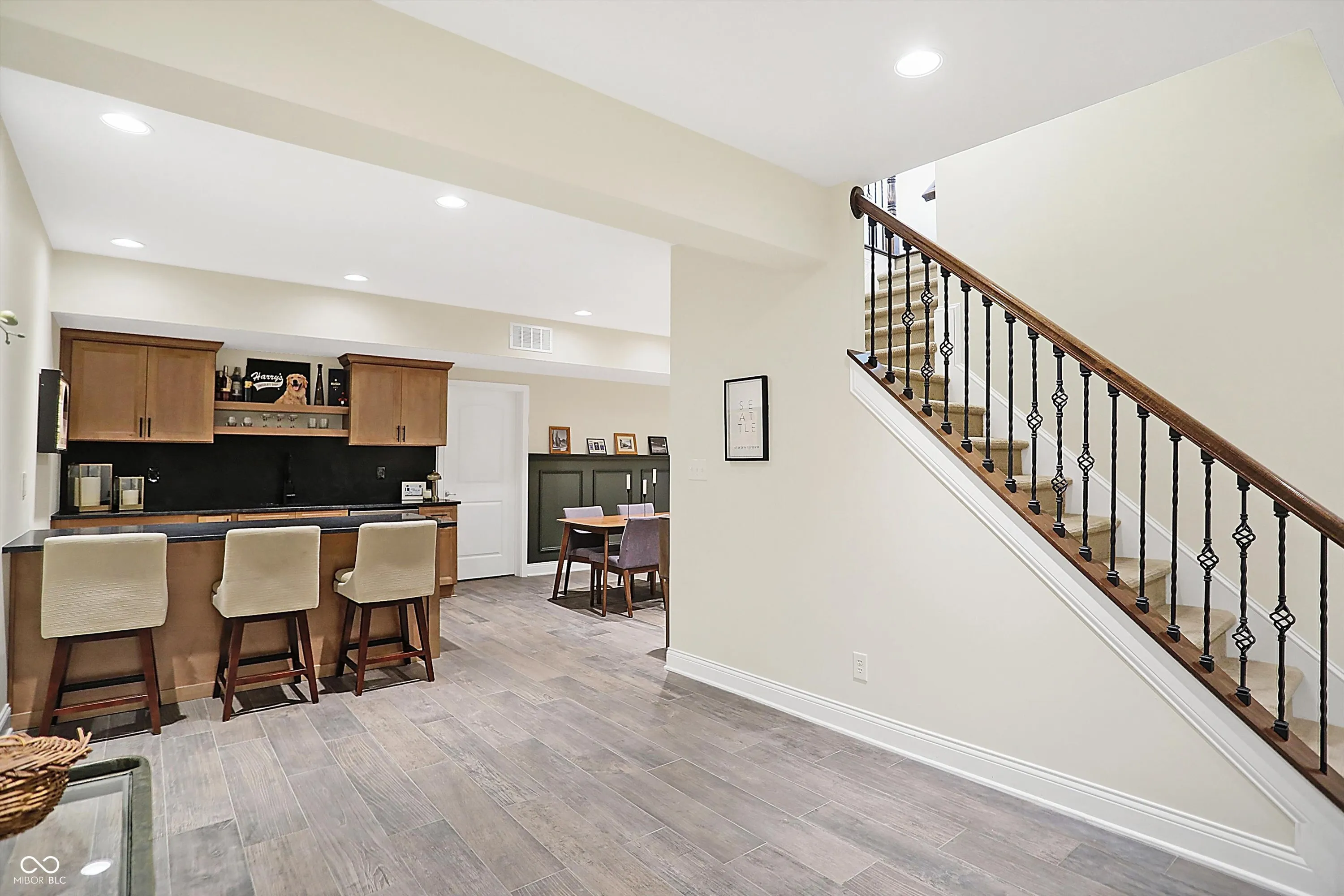 Experience sophisticated living in this beautifully updated home located in Bridgewater Club. Situated on a quiet cul-de-sac, this home offers a private and tranquil setting with fresh exterior paint, meticulously landscaped grounds, a fenced backyard, and a covered front & rear porch complete with an outdoor fireplace and pergola. Step inside to discover an inviting interior featuring new paint, new plush carpeting, updated light fixtures, and many thoughtful upgrades throughout. The main level offers expansive spaces perfect for living & entertaining, including a gourmet kitchen, cozy family room with a gas fireplace, casual and formal dining areas, and a private study w/ ATT Fiber. The dream mud room includes a landing area, planning station, multiple storage closets and walk-in pantry. Dual staircases lead upstairs where you’ll find four spacious bedrooms and loft, 3 full baths, including a luxurious primary suite with a spa-like bathroom & impressive closet! The finished basement adds even more space for enjoyment, with a brand new custom-designed bar, relaxed family room, exercise area, fifth bedroom, and full bath-perfect for hosting guests or creating memorable family movie nights. The spacious garage offers plenty of storage space and EV charging included. Living at the Bridgewater Club is more than owning a home; it’s embracing a lifestyle. The community offers exclusive amenities such as Pete Dye-designed golf courses, a luxurious clubhouse, tennis courts, a pool complex, a fitness center, and multiple dining options. Residents can also enjoy a scenic 5-mile walking trail that winds through lush landscapes, serene lakes, and wooded areas. With close proximity to upscale shopping, fine dining, and top-rated schools, Bridgewater Club embodies the perfect blend of luxury, convenience, and a serene environment. Don’t miss the chance to call this beautifully updated home your own and become part of one of the areas most desirable communities.