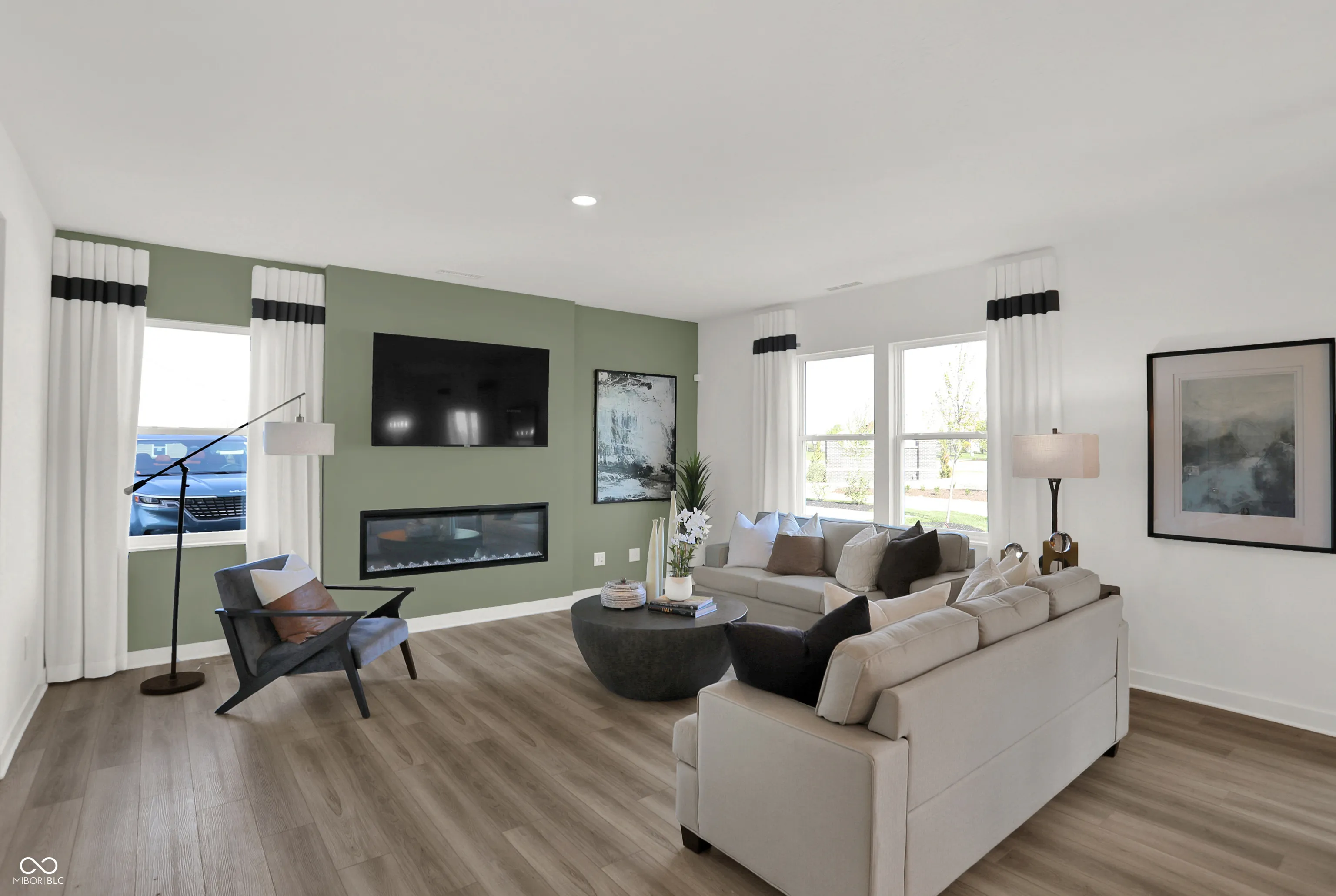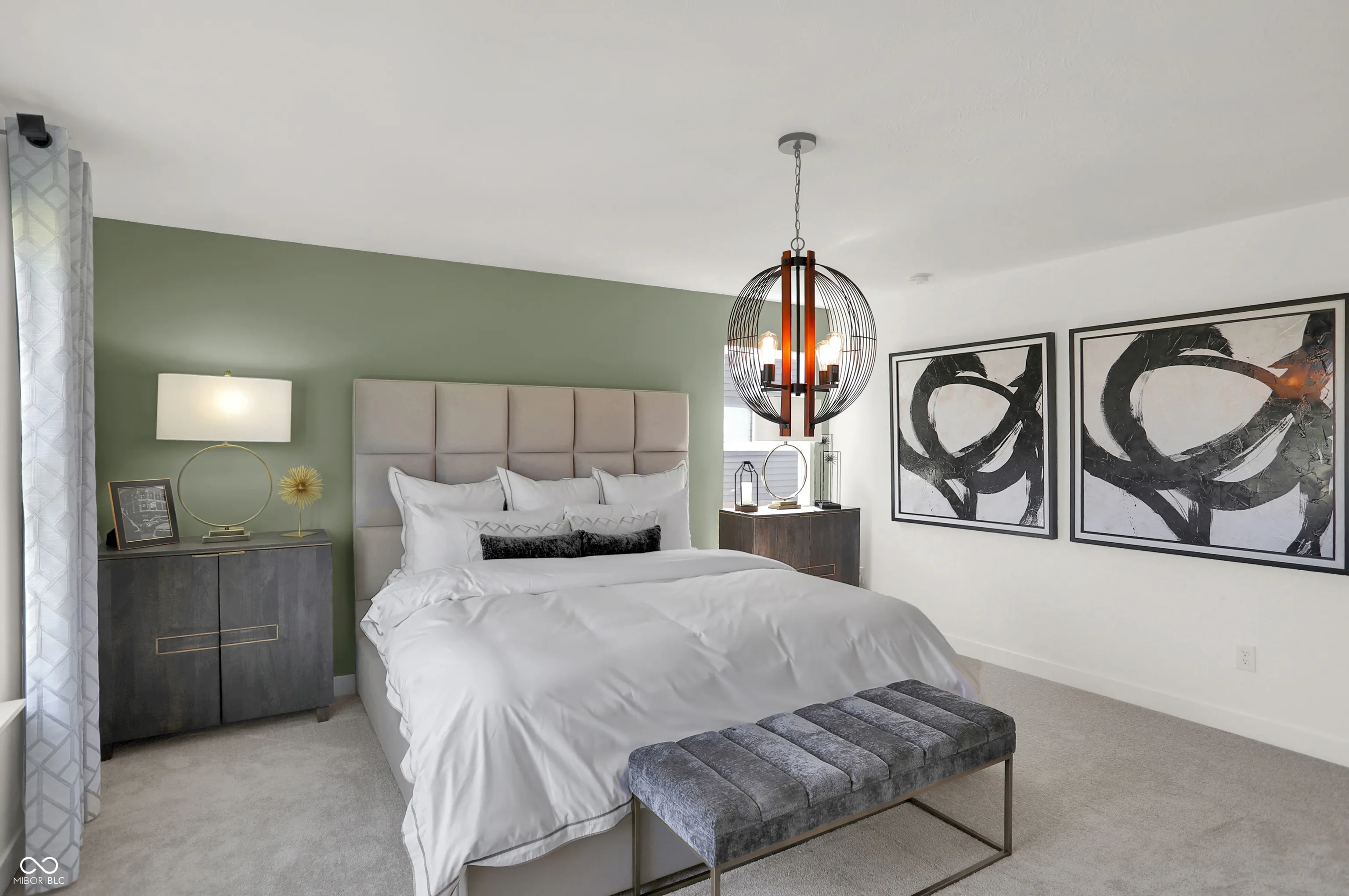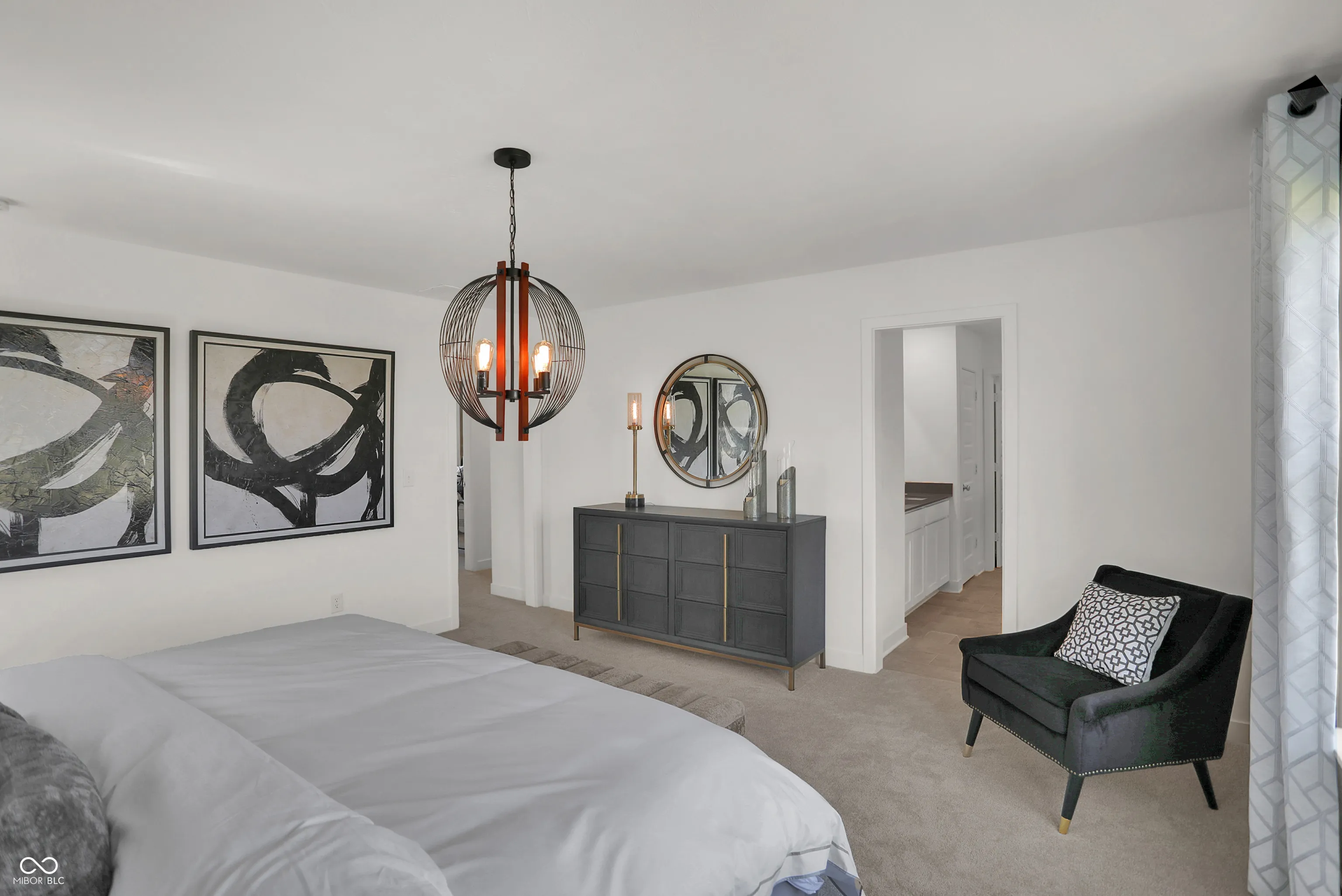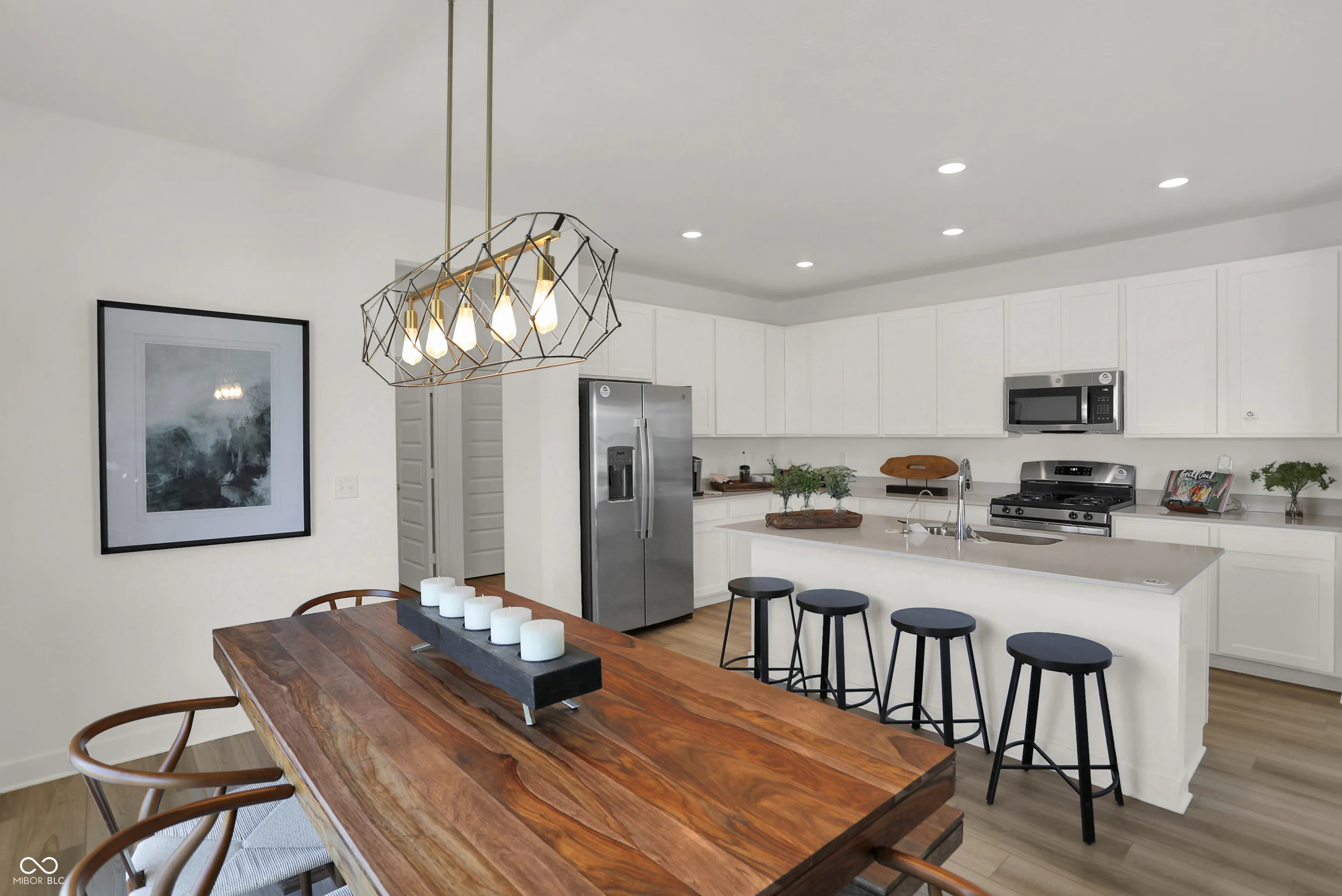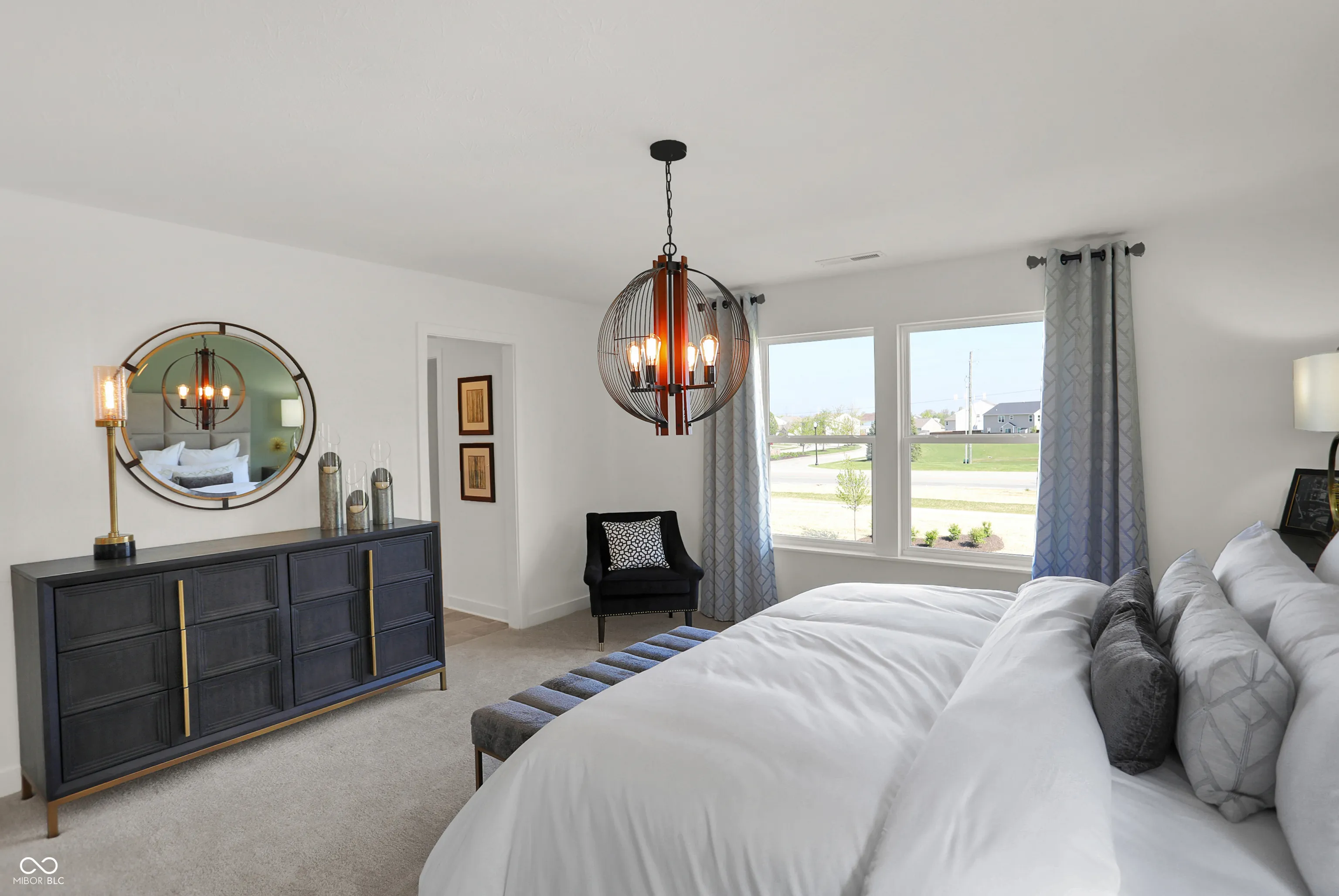 Sophistication meets everyday comfort in this stunning Irvington plan and former model home at Loudoun Place! Thoughtfully designed with 2,281 square feet, this home features 4 bedrooms, 2.5 baths, a versatile loft, and an oversized 2-car garage with extra storage-equivalent in size to a 3rd car space. Every detail has been designed for both function and style. From the moment you step inside, you’ll be drawn to the fireplace-accented Great Room, rich accent walls, and elegant chandeliers that elevate the staircase, dining area, and primary suite. The kitchen is a true standout, featuring a large center island with seating for counter stools, perfect for casual meals or entertaining. A walk-in pantry provides incredible storage, while the rear garage entry with a built-in bench adds everyday convenience. Upstairs, the loft offers extra flex space, and the second-floor laundry makes daily routines effortless. The primary suite is a true retreat, complete with a statement chandelier, a spa-like adjoining bath, and ample closet space. And both second level baths feature double vanities, offering both functionality and luxury. Even the powder bath boasts designer details, with decorative tiled walls adding a modern touch. Plus, a built-in alarm system ensures added security. Located in Loudoun Place, a vibrant master-planned community in Indianapolis, this neighborhood is designed for both relaxation and recreation. Future amenities include a pool and pool house, two playgrounds, a mile of walking trails, a picnic shelter, and three scenic ponds. Plus, this home is situated in Lawrence Township, offering access to highly rated schools, parks, and convenient shopping and dining. And with downtown Indianapolis just a short drive away, you’ll have quick access to the city’s top attractions, dining, and entertainment. See the designer model home details and thoughtful upgrades in person-schedule your tour today!