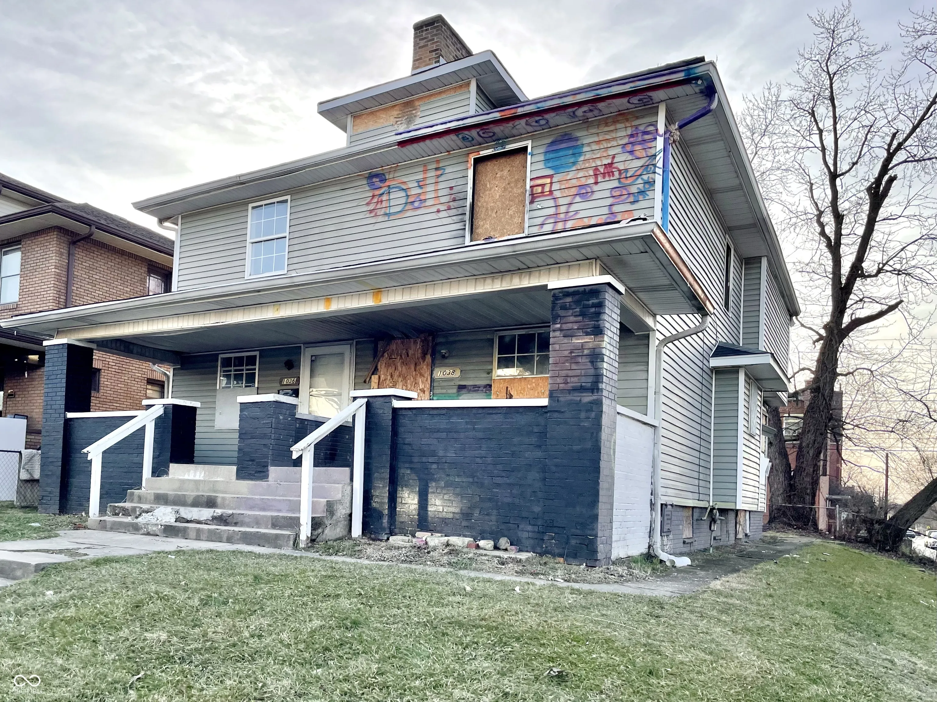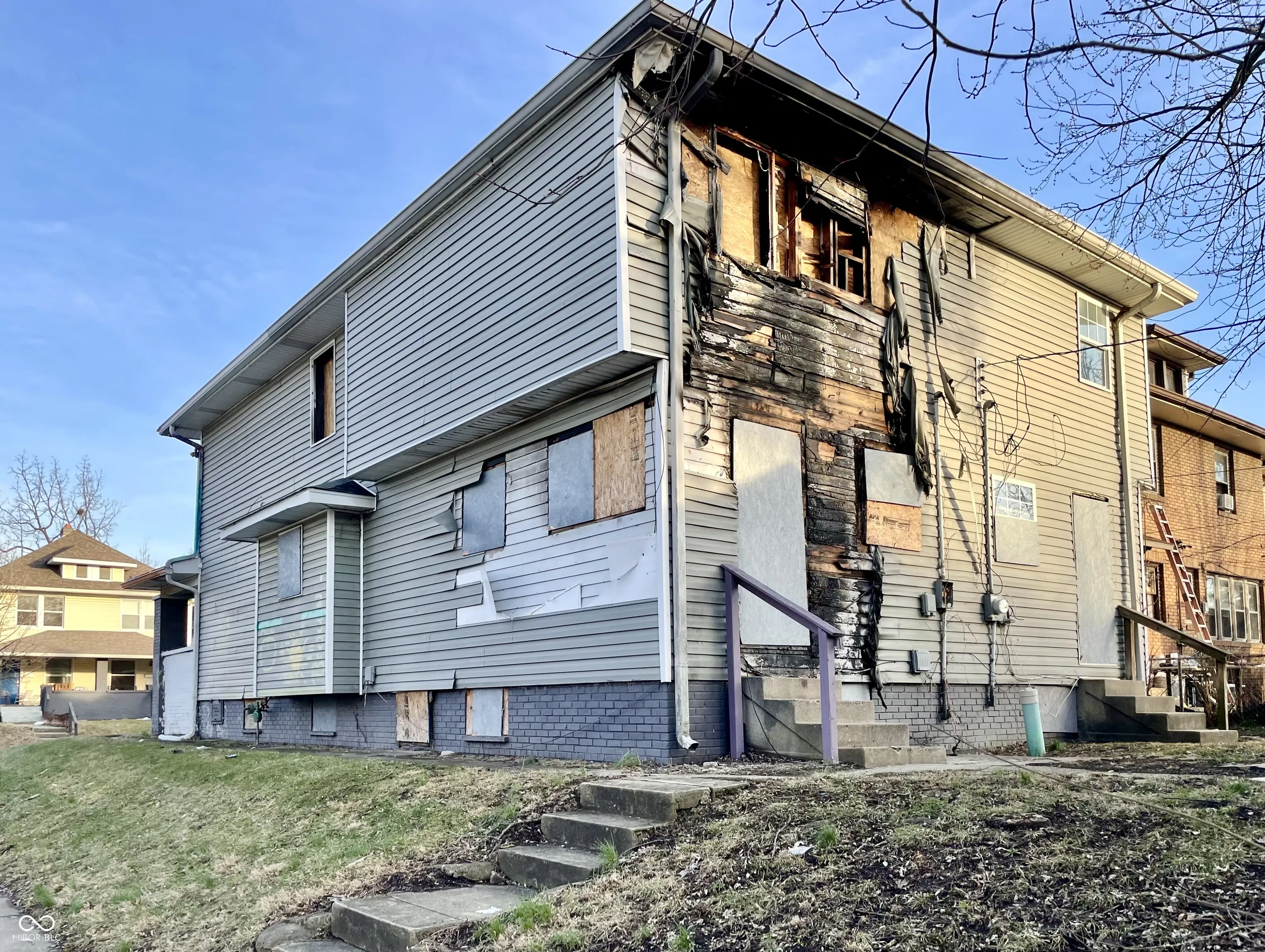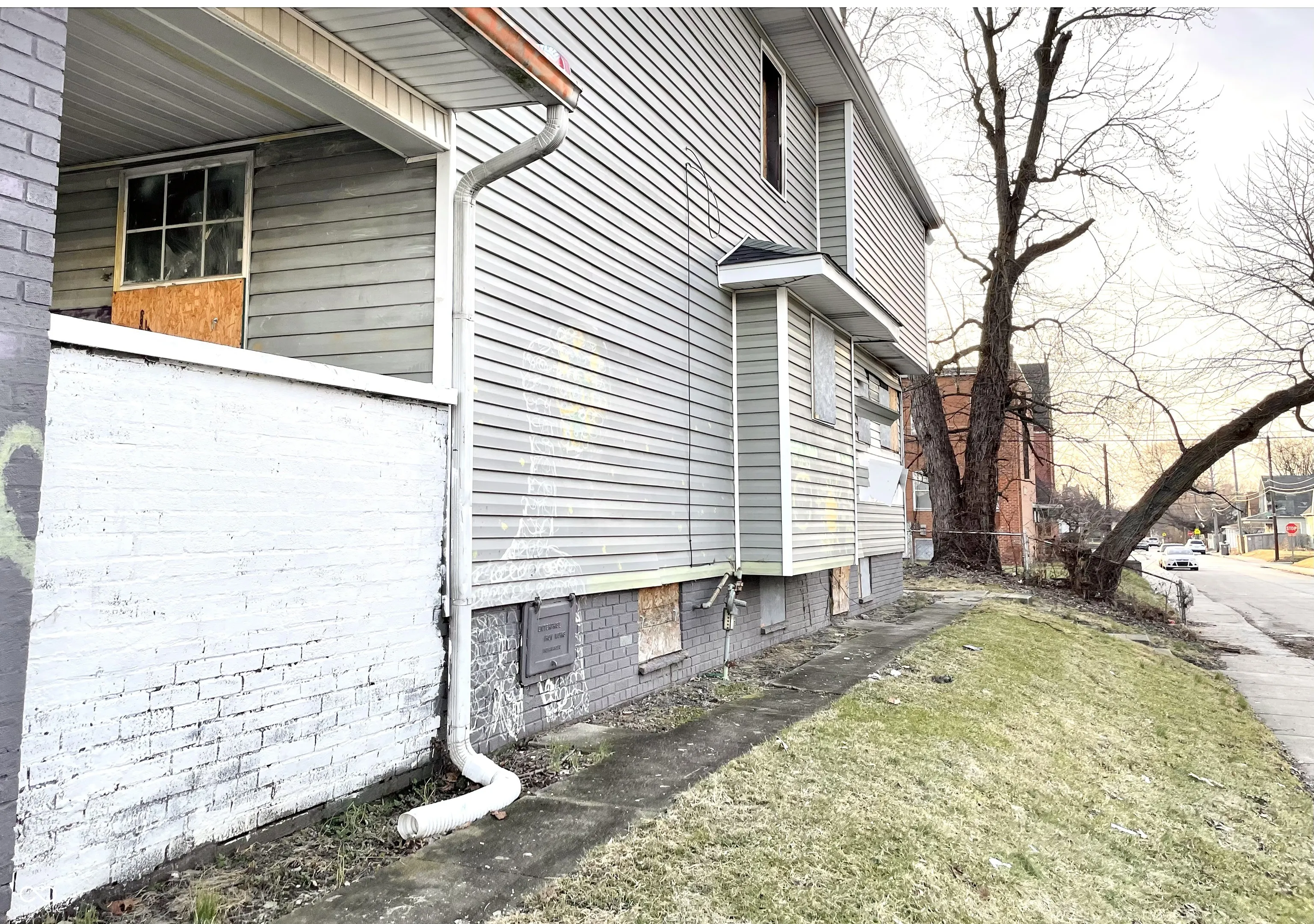 Brookside Park multi-family investment property awaits redevelopment. Easy access to Pogue’s Run, parks, 10th Street Corridor, interstate access, and more! Situated in neighborhood with strong rental demand and appreciating values. Located on a corner lot with 2-car detached garage. 3-Bedroom/1-Bathroom per side duplex. Layout includes Great Room, Dining Room, Kitchen with Breakfast Nook, storage, Laundry Area, and full unfinished basements. Separate meters for each unit. Fire damage present on one side. Needs renovation but will be a tremendous cash flow opportunity. This is a must see!