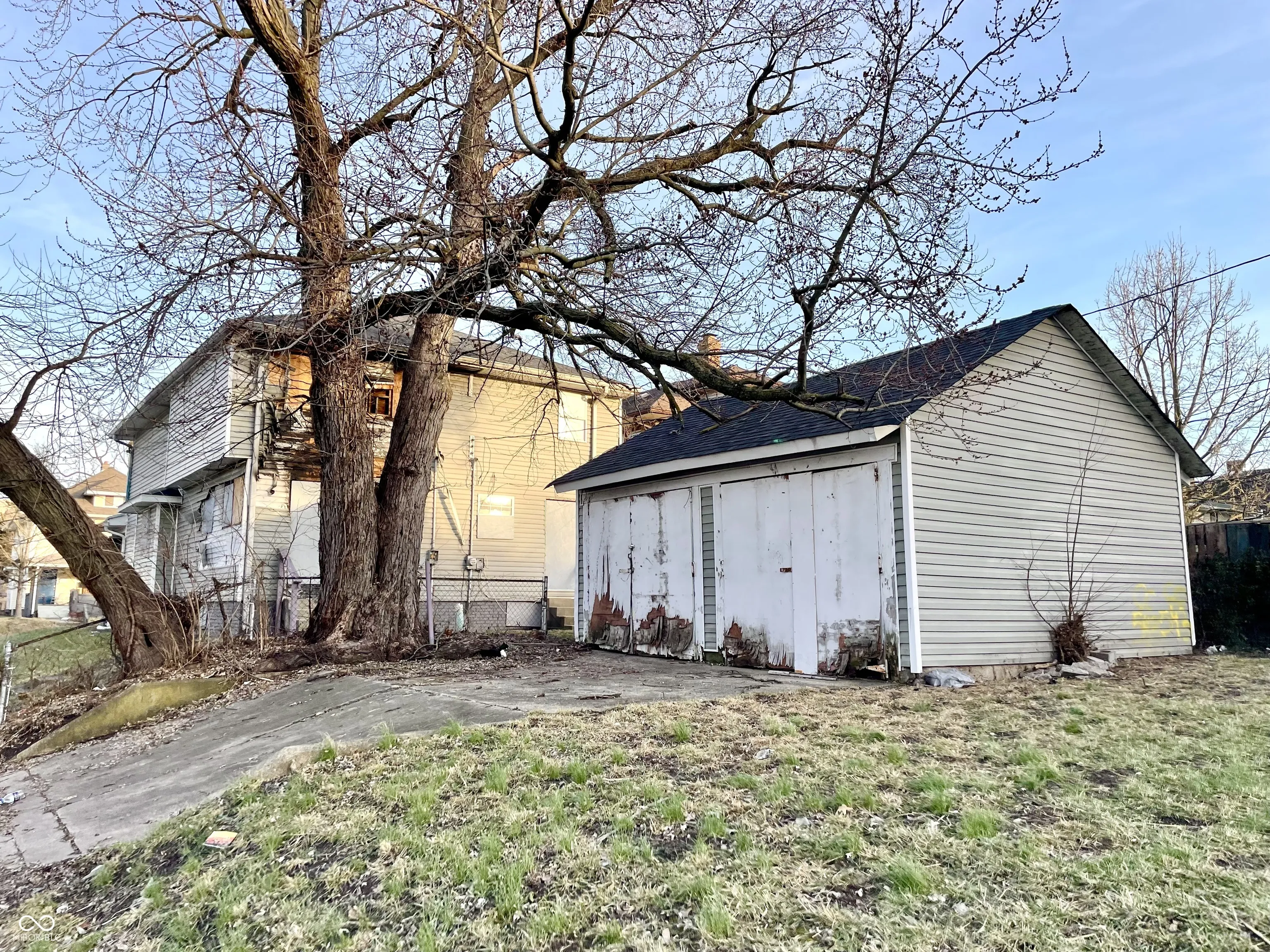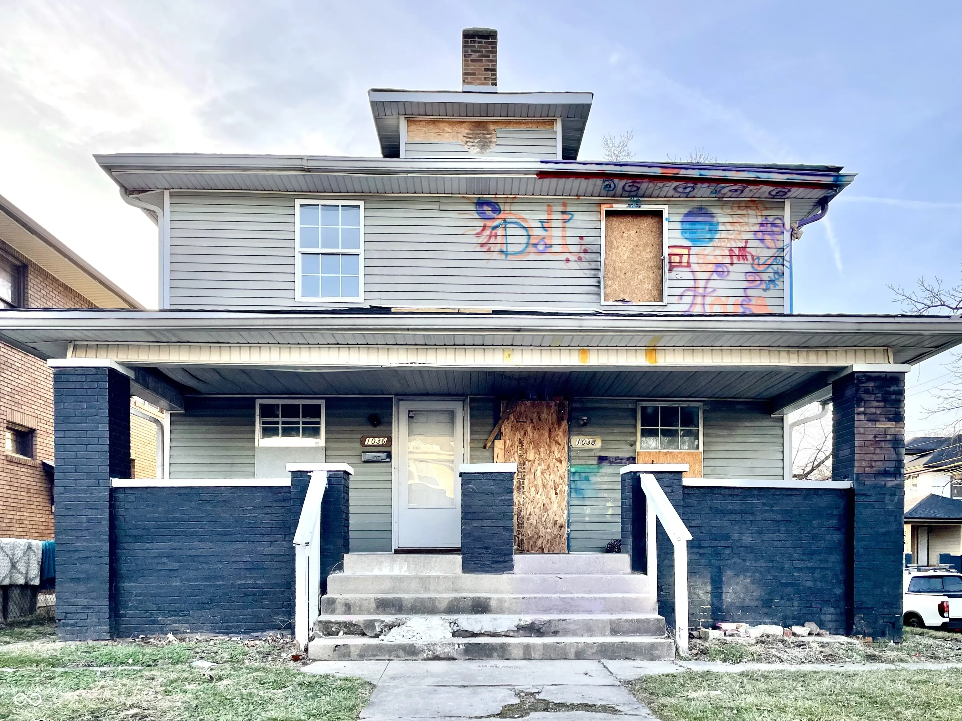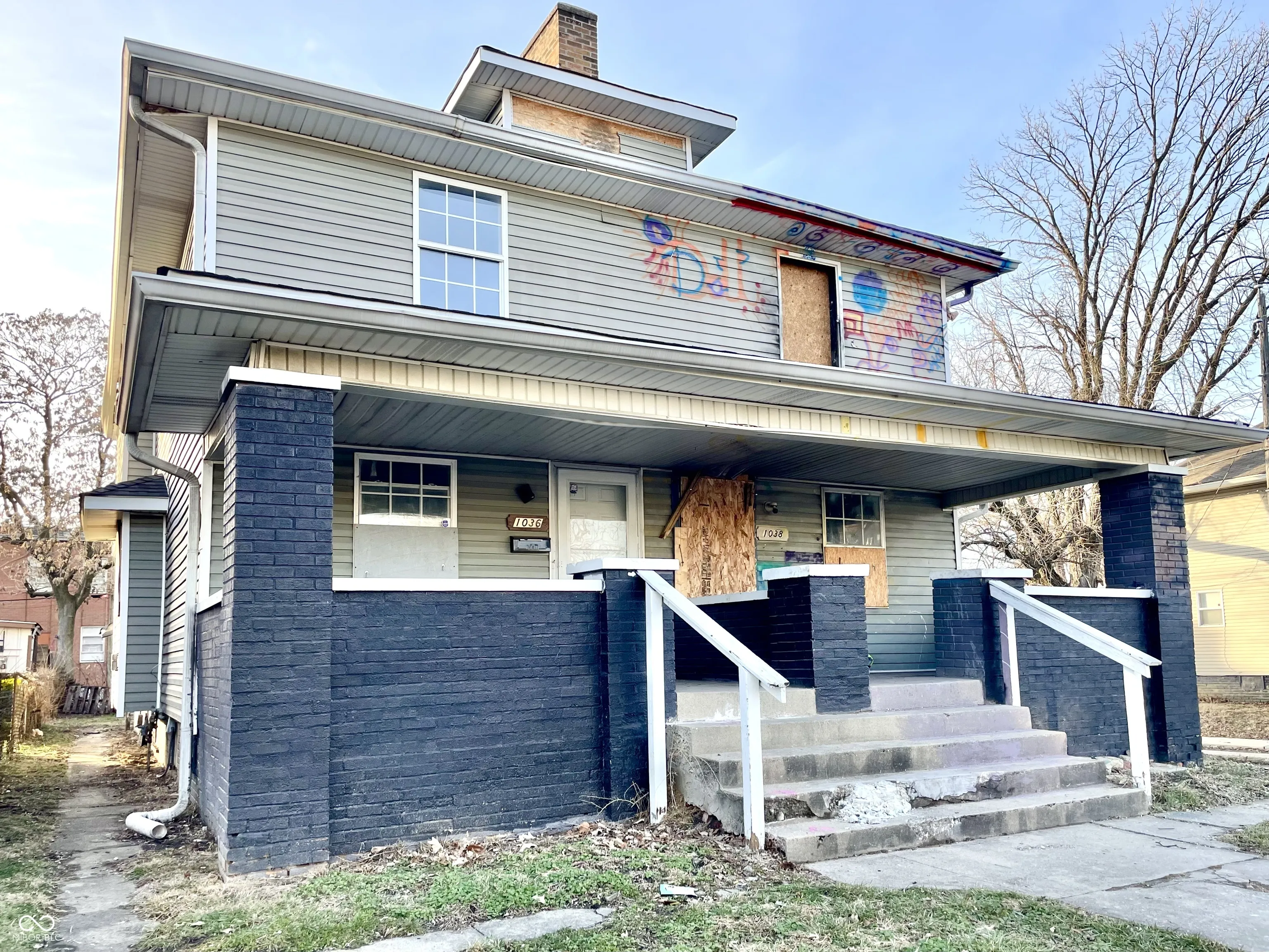 Brookside Park multi-family investment property awaits redevelopment. Easy access to Pogue’s Run, parks, 10th Street Corridor, interstate access, and more! Situated in neighborhood with strong rental demand and appreciating values. Located on a corner lot with 2-car detached garage. 3-Bedroom/1-Bathroom per side duplex. Layout includes Great Room, Dining Room, Kitchen with Breakfast Nook, storage, Laundry Area, and full unfinished basements. Separate meters for each unit. Fire damage present on one side. Needs renovation but will be a tremendous cash flow opportunity. This is a must see!