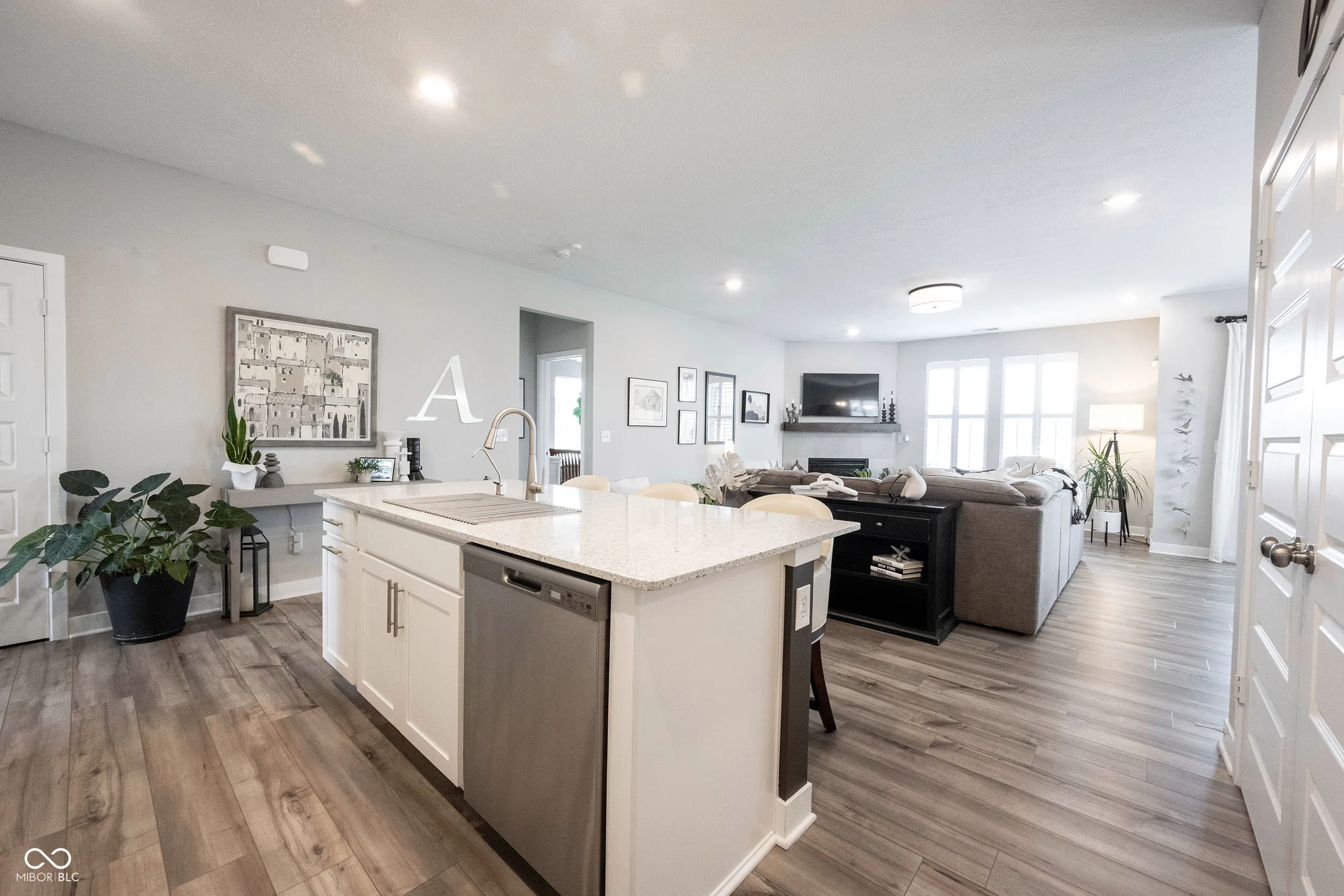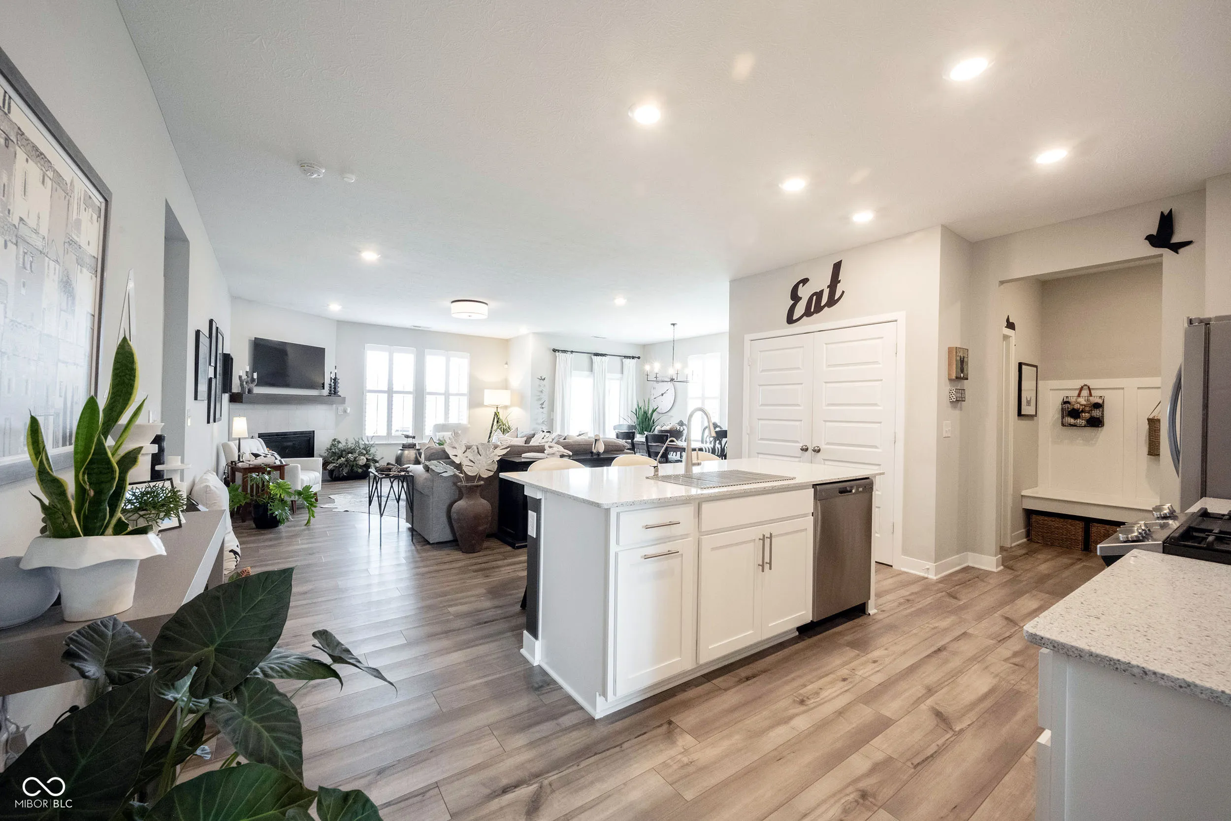 This home is the one you’ve been waiting for. Step into this beautifully maintained ranch that truly shows like a model. The open, airy floor plan was designed for both everyday comfort and effortless entertaining. A cozy fireplace anchors the family room, offering warm ambiance and tranquil views of the water just beyond your backyard. The sun-drenched dining area flows into a stunning kitchen featuring a large center island, stainless steel appliances, gas range, bright white cabinetry, and a custom-organized walk-in pantry-ideal for both the home chef and the casual cook. The primary suite is a calming retreat with a tray ceiling, dual vanities, and a walk-in closet with custom storage. All three bedrooms include custom closet systems to keep everything neat and within reach. A practical mudroom off the garage adds functionality to your day-to-day. But it’s the outdoor living space that will truly win you over. Enjoy peaceful mornings and relaxing evenings on the oversized stamped concrete patio, framed by professional landscaping and overlooking a serene pond-without a neighbor in sight behind you. A porch swing adds the perfect touch of charm. With a community pool and playground just minutes away, this home combines privacy, beauty, and convenience in one perfect package.