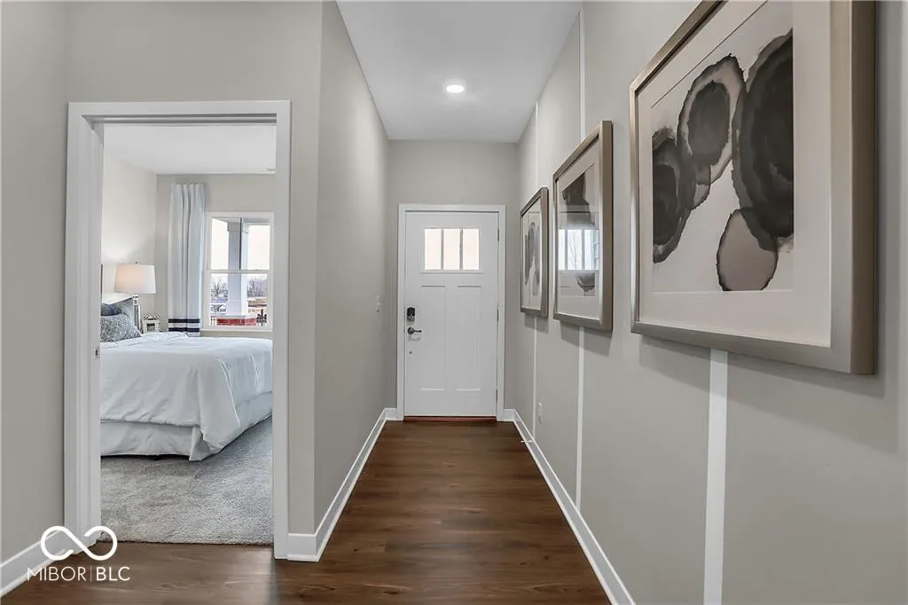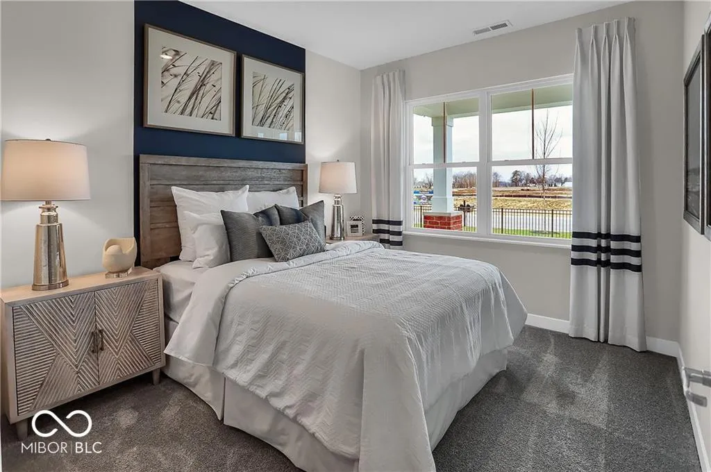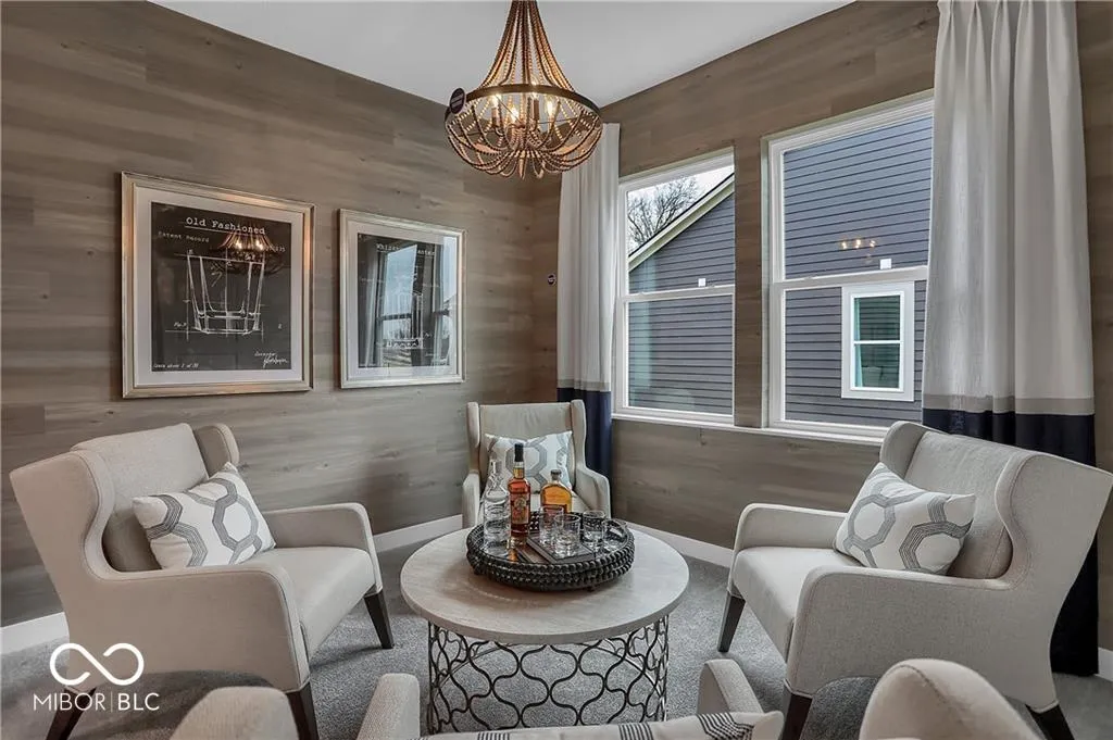 Style, comfort, and thoughtful design define this Fletcher model home in Osborne Trails, Westfield’s sought-after 55+ community. With 1,674 square feet of beautifully crafted living space, this former model home showcases upgraded finishes, designer accents, and smart features throughout. A standout exterior with lush, professionally landscaped grounds, a tree-lined backyard, and an irrigation system ensures effortless curb appeal. Inside, carefully curated details elevate every space. Accent-painted walls in the foyer and main-level bedroom create a designer touch, while the flex room-ideal as a study or lounge-features wood accents and a striking chandelier. The great room seamlessly blends function and style with built-in cabinetry below the TV, offering both storage and visual appeal. A statement kitchen island with accent painting anchors the heart of the home, perfect for gathering with friends or simply enjoying your morning coffee. The primary suite offers a private and peaceful retreat, complete with a warm, statement wood-accent wall for added character. Thoughtful design continues in the ensuite bath and walk-in closet, which connects directly to the laundry room-a seamless, everyday convenience. Additional highlights include a built-in mudroom bench, included front-load washer and dryer, and a built-in security system adds peace of mind. Osborne Trails is more than just a neighborhood-it’s a lifestyle. At the heart of the community is the 9,000+ sq. ft. Retreat Clubhouse, featuring a lounge, game room, bar, fitness center, yoga studio, library, and craft room. Outdoor amenities include a resort-style pool, pickleball courts, scenic walking trails, and outdoor kitchens. A full calendar of curated social events, led by an on-site lifestyle director, offers endless opportunities for entertainment, fitness, and connection. Don’t miss this opportunity to own a former model home designed with elegance and ease-experience its custom upgrades for yourself!
