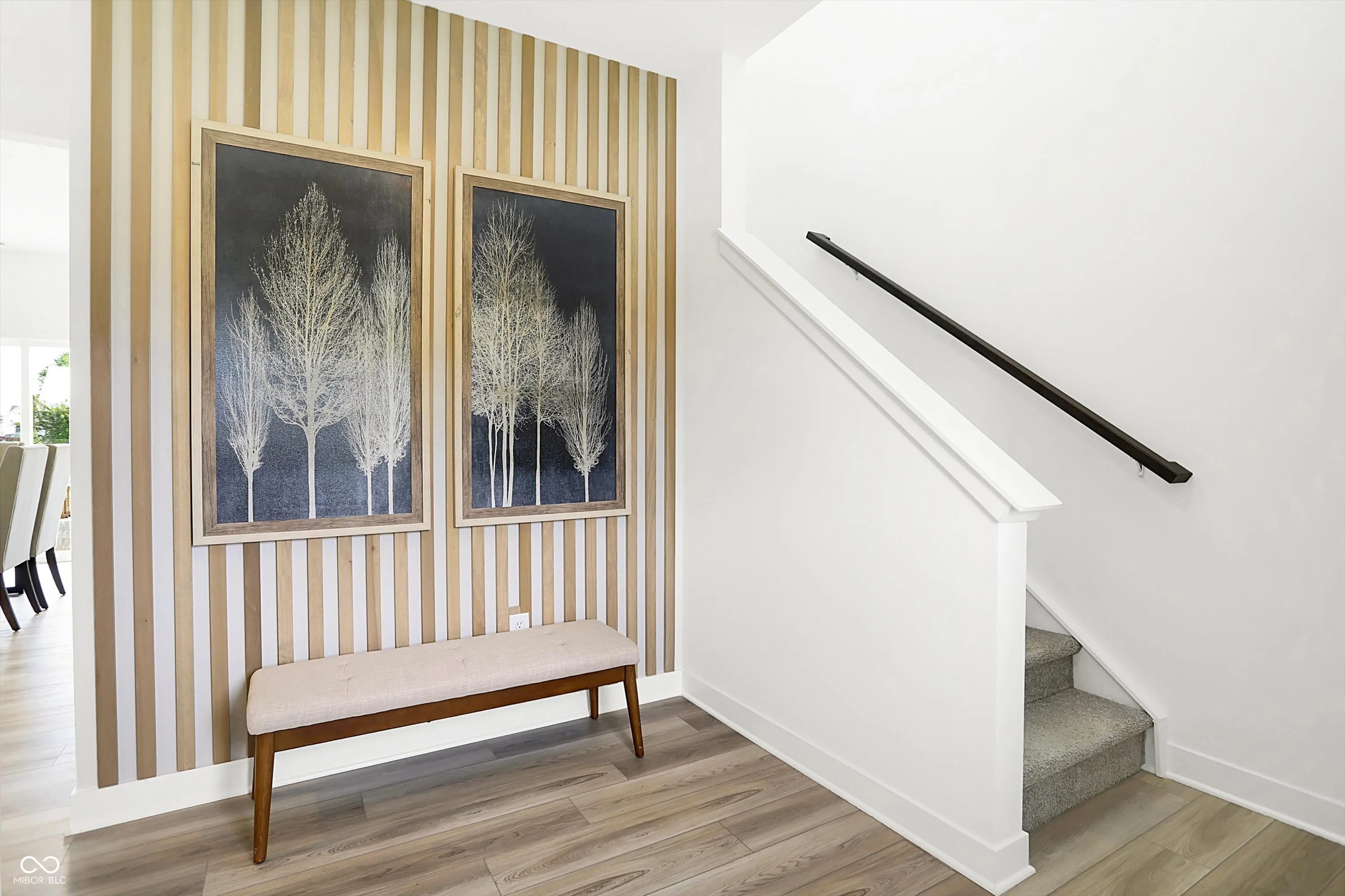 This Harmony model home in New Haven blends elevated style, thoughtful design, and everyday convenience in a layout perfect for modern living. With three bedrooms, two-and-a-half baths, and a versatile loft, this two-story home is filled with designer details and model-exclusive upgrades in every space. From the entry, a wood vertical accent wall makes a bold first impression. The open-concept first floor offers seamless flow between the kitchen, dining area, and Great Room-ideal for both casual evenings and entertaining-while decorative accent lighting adds warmth and dimension. Upstairs, the luxe owner’s suite is a retreat of its own, featuring a vinyl plank accent wall, designer lighting, a spa-inspired en-suite bathroom, and a spacious walk-in closet. Two secondary bedrooms bring charm and personality with touches like a white wood accent wall and custom fixtures, while the versatile loft creates a flexible second living space perfect for movie nights, study sessions, or a playroom. Beyond the interiors, this former model home showcases premium landscaping, an irrigation system, and a built-in security system, ensuring both beauty and peace of mind inside and out. Located in New Haven, residents enjoy access to shared amenities with Lancaster, including a pool, pool house, playground, trails, pickleball courts, and a picnic shelter. The community also places you close to high-end shopping and dining in downtown Westfield, the Monon Trail, and Grand Park Sports Campus. Students benefit from the highly rated Westfield-Washington School District, adding even more value to this sought-after location. A former model home with designer touches in every room-this is a rare opportunity you won’t want to miss.