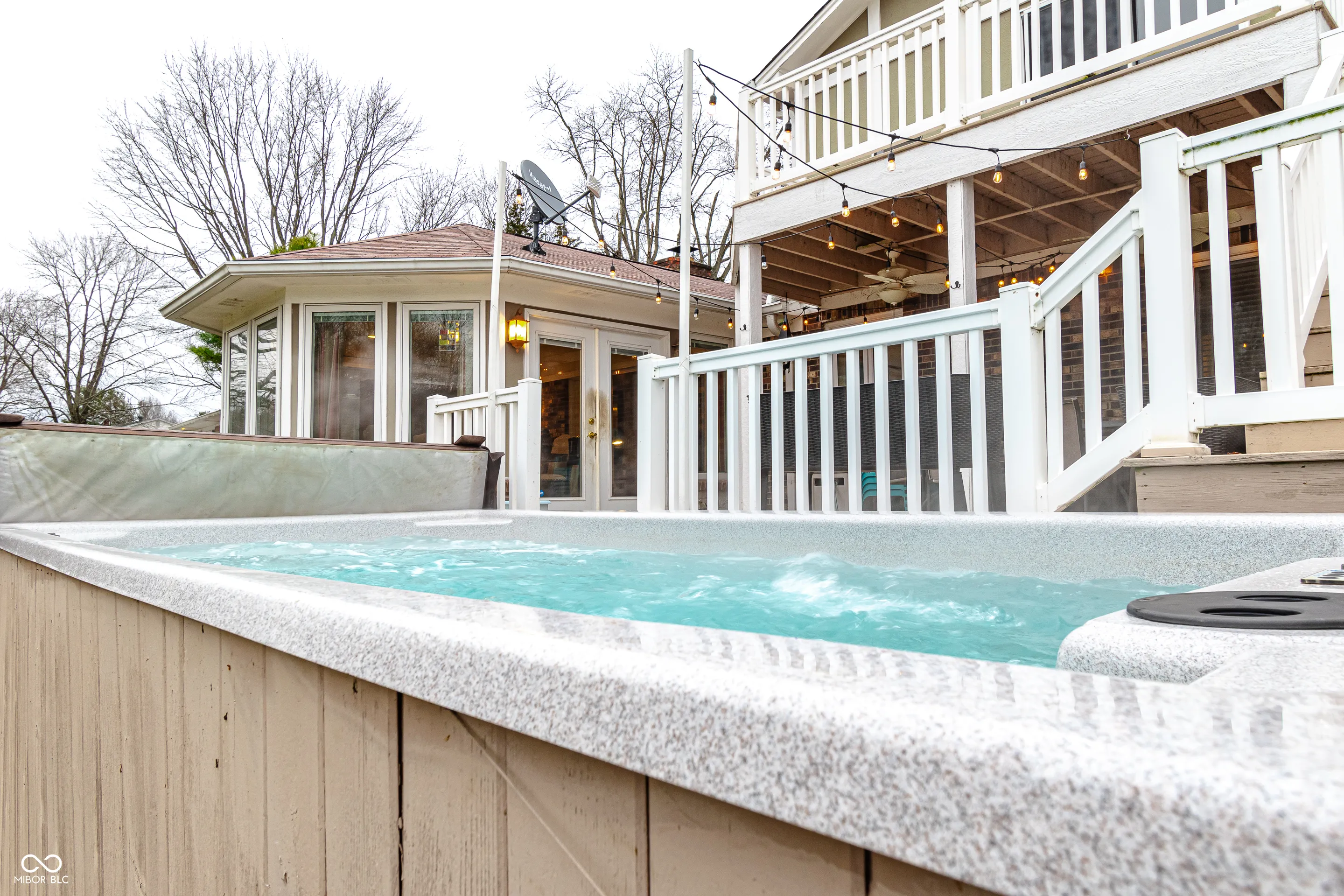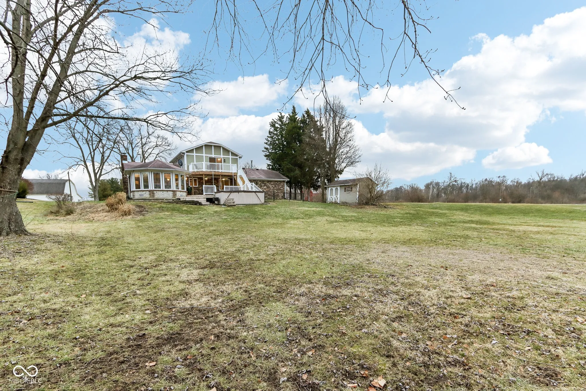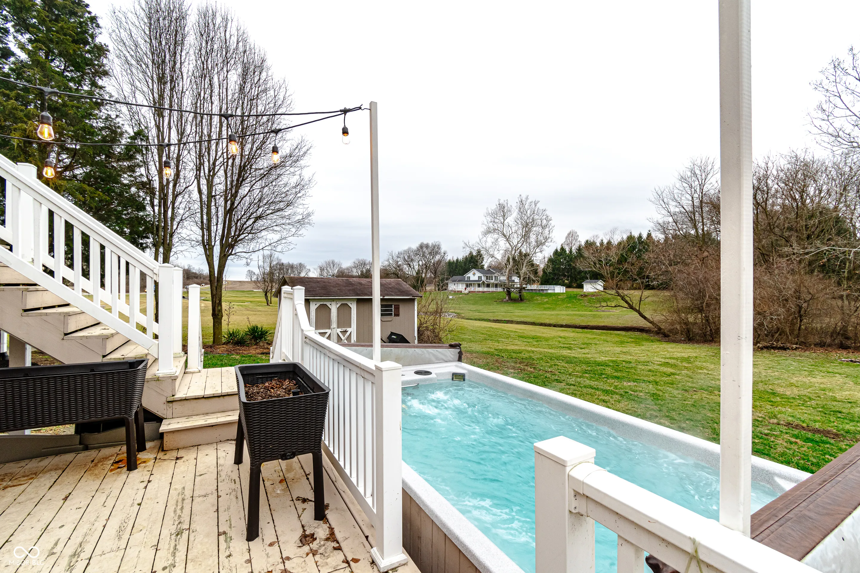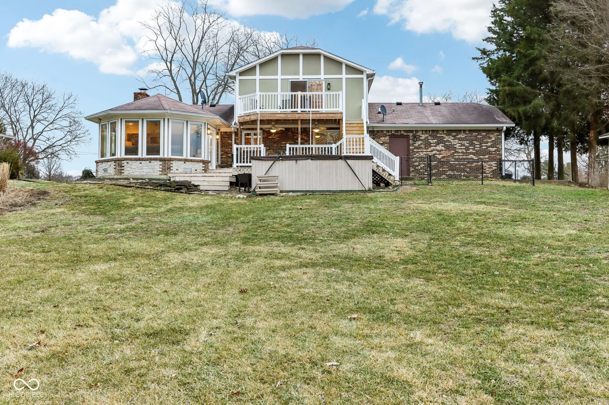 Nestled on a sprawling 1.17-acre level lot with a tree-lined view and a small creek running behind, this charming two-story Tudor style home blends modern upgrades with timeless appeal, featuring amenities like a sunroom, vaulted ceilings, and a private swim spa. With three bedrooms and three full baths, this residence is thoughtfully designed for both comfort and functionality.The main level features a cozy bedroom complete with its own full bath, offering privacy and convenience. Nearby, the first-floor laundry room adds a practical touch. The heart of the home is the beautifully updated kitchen, boasting new stainless steel appliances, elegant quartz countertops, and a striking butcher block island-perfect for preparing meals and gathering with loved ones.The living room offers a warm and inviting atmosphere, centered around a beautifully crafted fireplace, ideal for cozy evenings with family or friends. Upstairs, you’ll find two additional bedrooms, including the luxurious primary suite. The master en-suite bathroom with modern finishes and a serene ambiance .A private deck off the primary bedroom provides a tranquil spot to enjoy morning coffee or stargazing at night. Step outside and immerse yourself in the outdoor oasis. The brand-new two-story deck provides ample space for entertaining while overlooking partial woods and a peaceful swim spa that will remain with the property. The real hardwood floors throughout the home add warmth and character, complementing the natural beauty of the surroundings. This home is a perfect blend of modern amenities and serene living, offering a unique opportunity to enjoy the best of both worlds. For recreational activities, the property is conveniently located across from a golf course, providing opportunities for outdoor leisure. Additionally, the area offers ample space for parking and even accommodates RVs, catering to various lifestyle needs. Don’t miss your chance to make this incredible property your own.