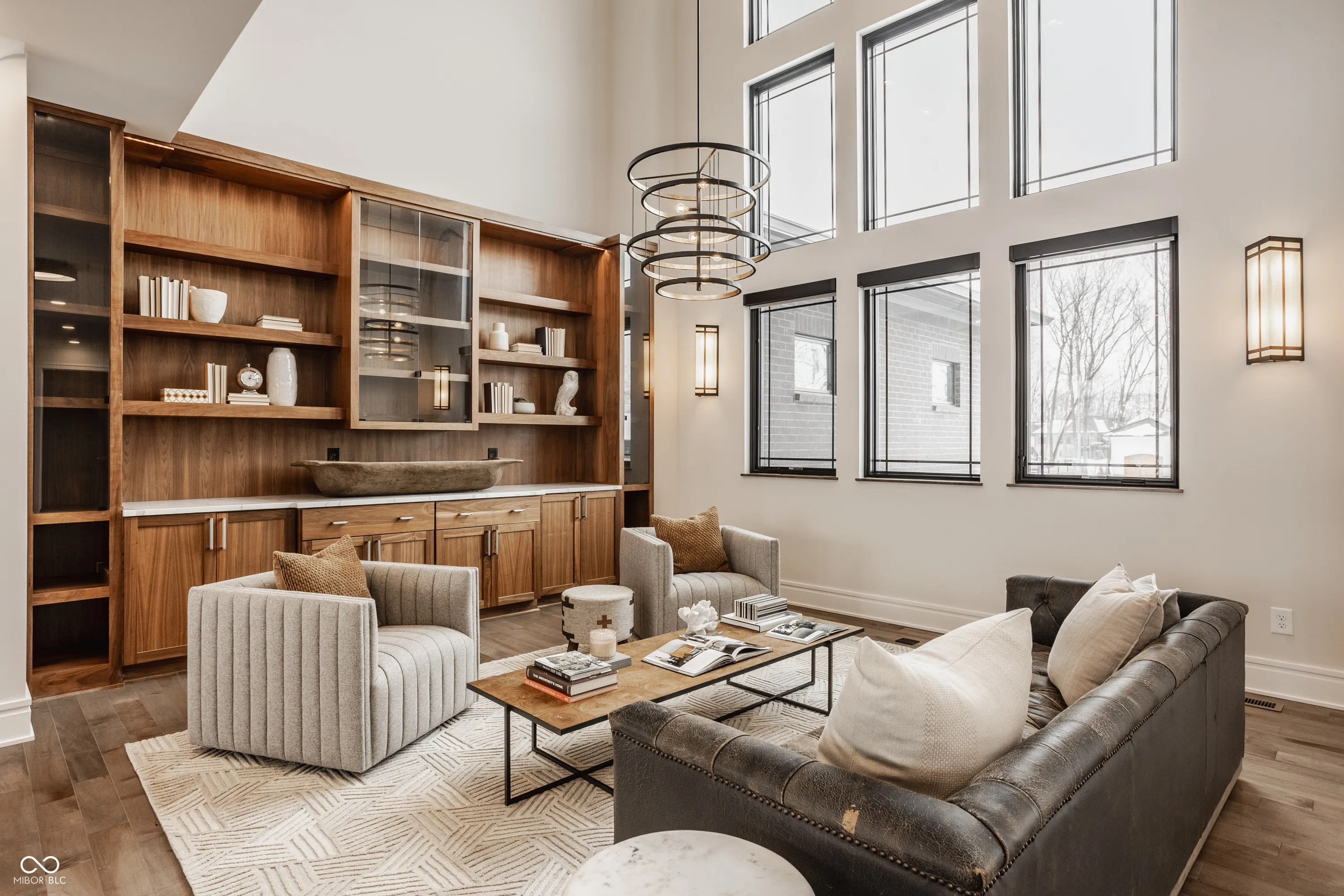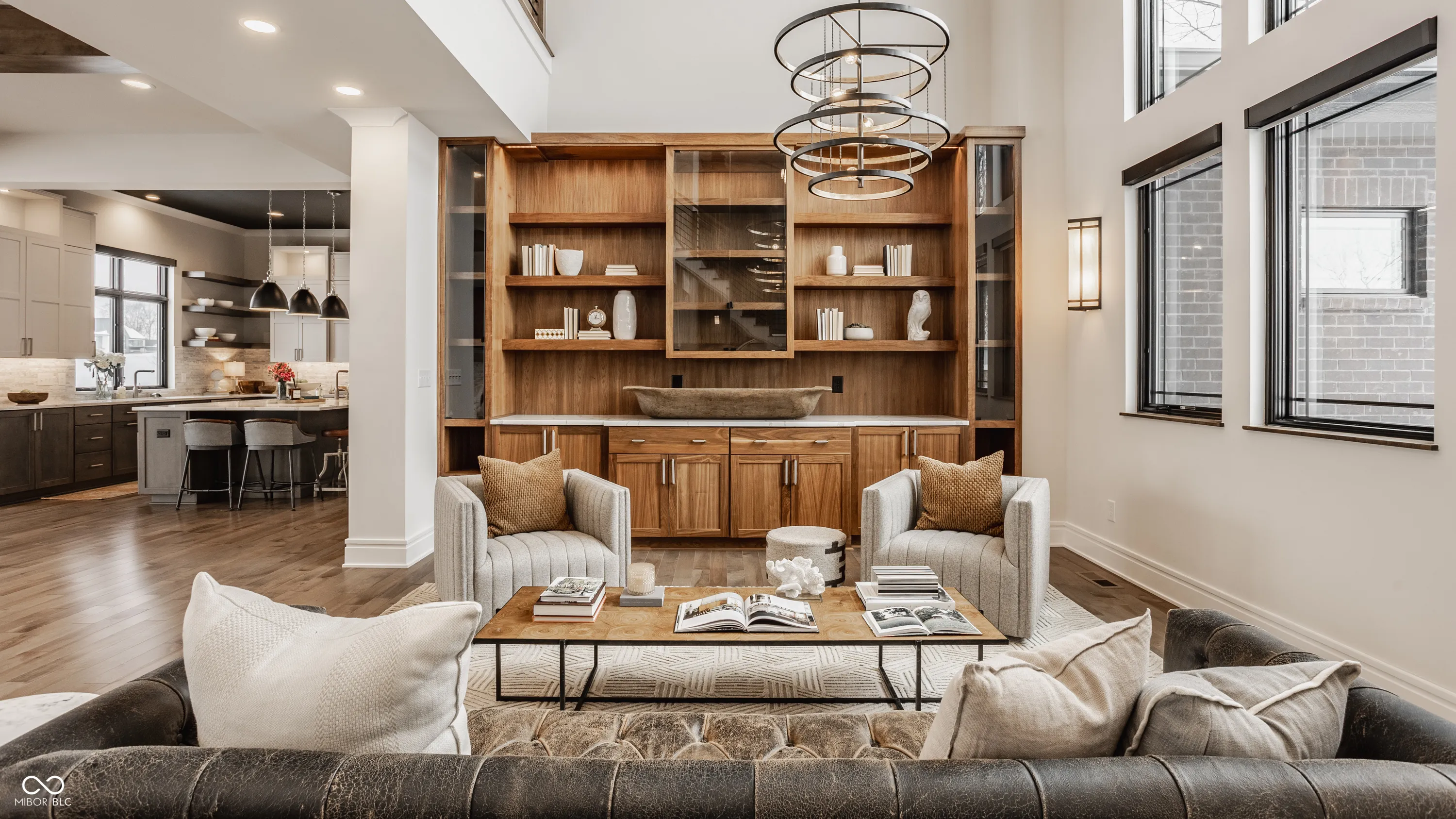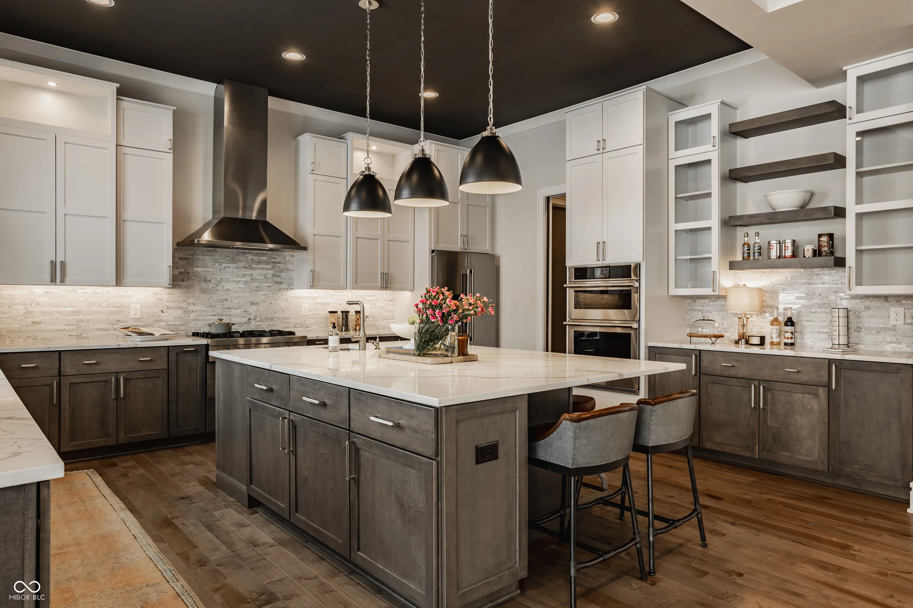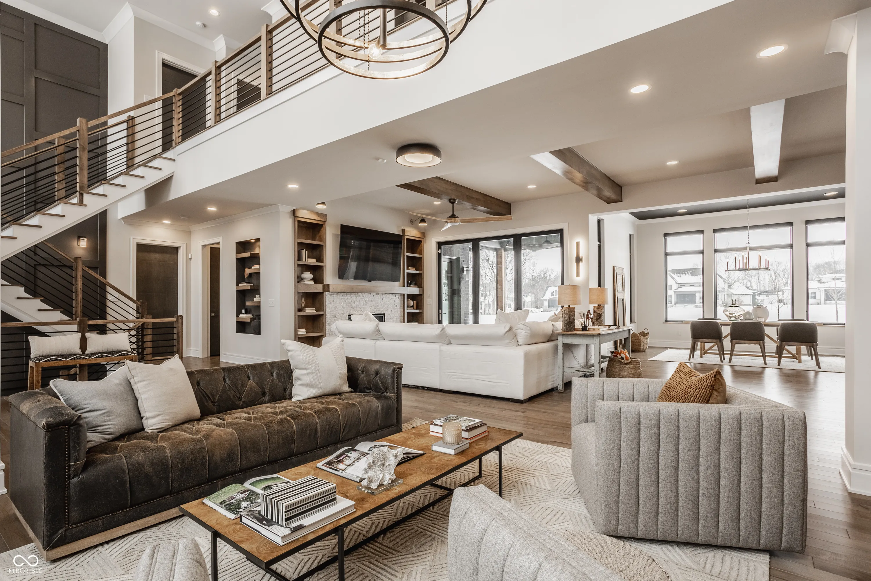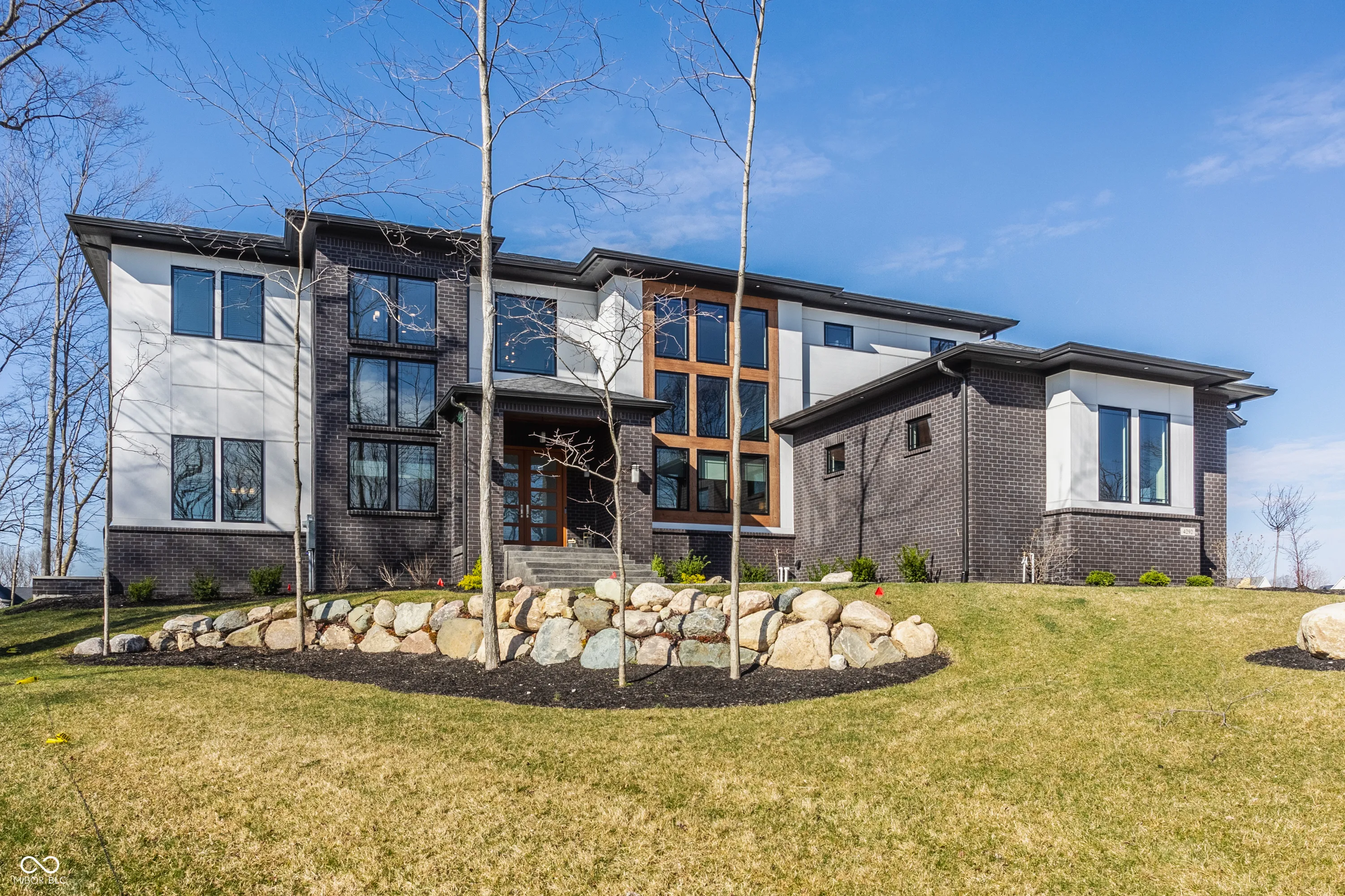 Experience the pinnacle of luxury living with this architectural masterpiece in the prestigious Holliday Farms community of Zionsville. Built by the renowned Sigma Builders, this home represents the height of contemporary elegance and offers an unparalleled lifestyle. The residence boasts breathtaking views of the fifth hole, with expansive windows flooding the open-concept spaces with natural light. The great room exudes sophistication, featuring a refined fireplace and custom built-ins, seamlessly leading to the gourmet kitchen. This culinary haven includes a large island and a separate catering kitchen fully equipped with a gas range, refrigerator, and dishwasher-ideal for hosting and entertaining with ease. The main level also includes a private guest suite with a luxurious full bath, as well as a home office overlooking the course. The upper level is home to a stunning primary suite. This sanctuary features a tray ceiling, a spa-like bath, an expansive walk-in closet, and a balcony with Trex decking overlooking serene pond views and the fairway. Two additional en-suite bedrooms, a stylish office with custom built-ins, a wet bar, and a secondary laundry room provide ultimate convenience and comfort. The lower level is an entertainer’s dream, complete with a media room, wine cellar, sitting area, and fully equipped wet bar. A fifth bedroom and full bath add versatility to this exquisite space. Outside, the lanai offers a breathtaking setting for sunset views, alfresco gatherings, or quiet evenings. This exceptional home also comes with a Holliday Farms social membership, granting access to premier clubhouse amenities. Combining refined elegance, modern comforts, and exclusive living, this residence is more than a home-it’s a sanctuary of unmatched luxury. Welcome to your dream home, where every detail is designed to inspire grandeur.