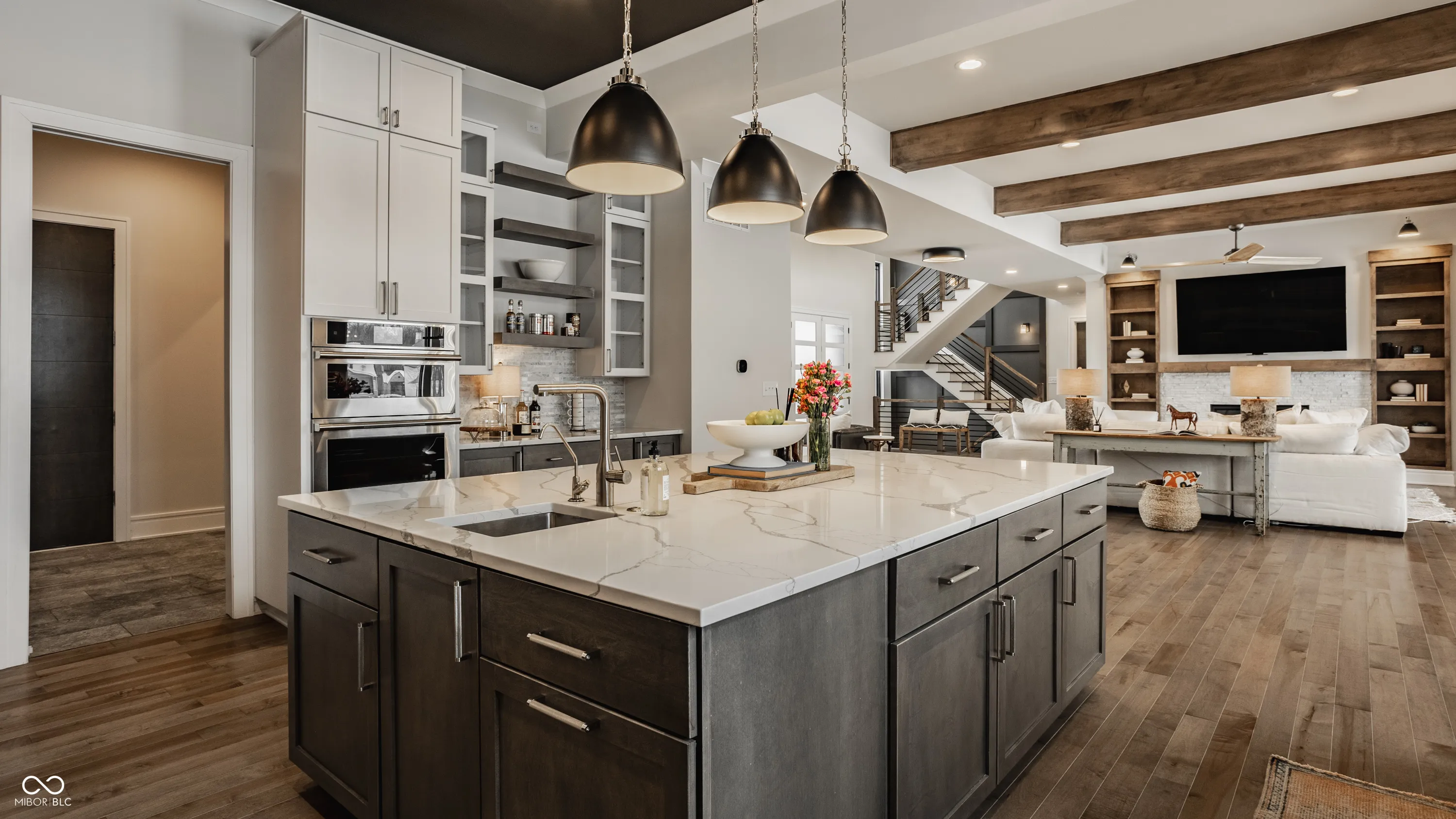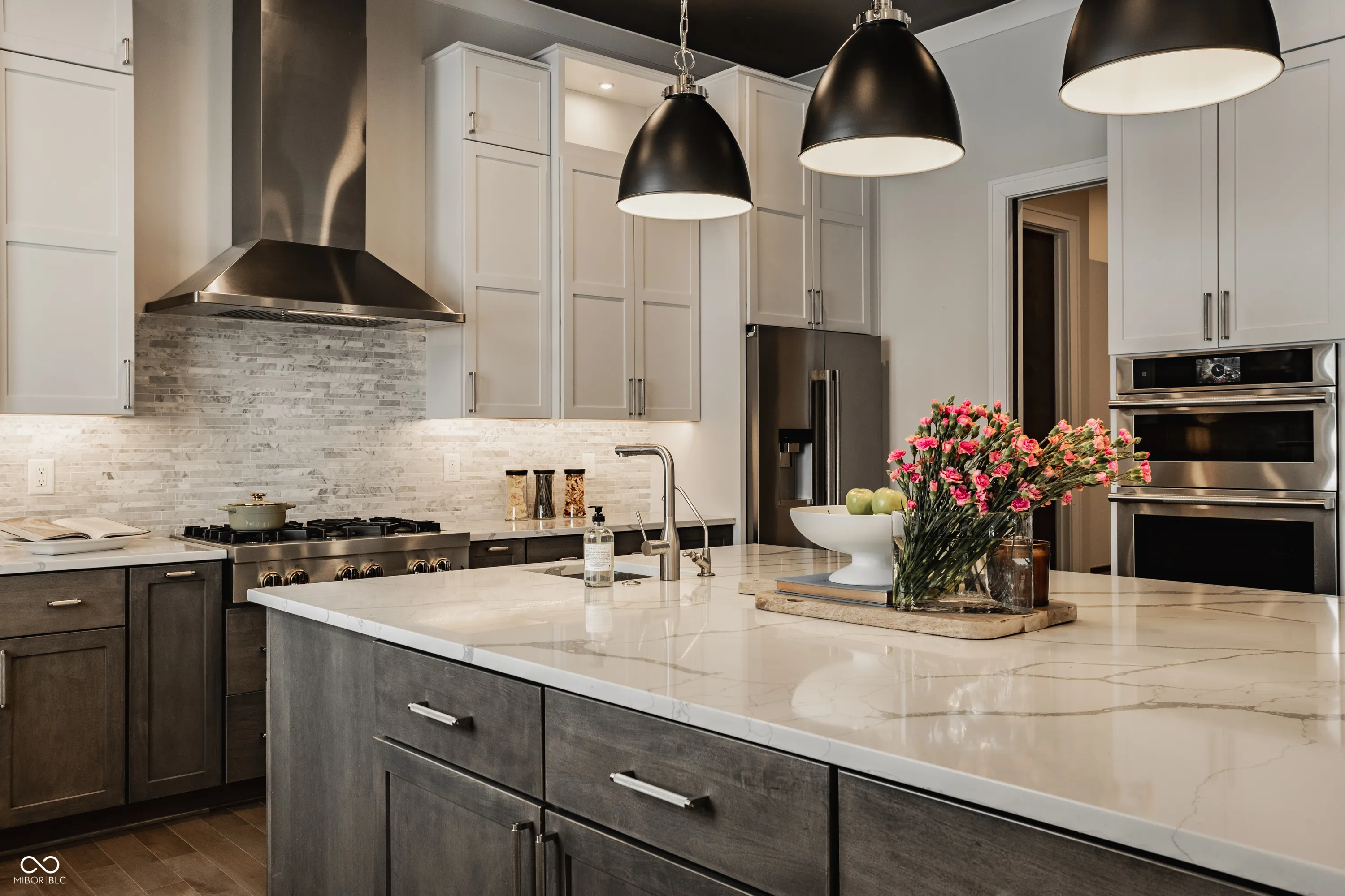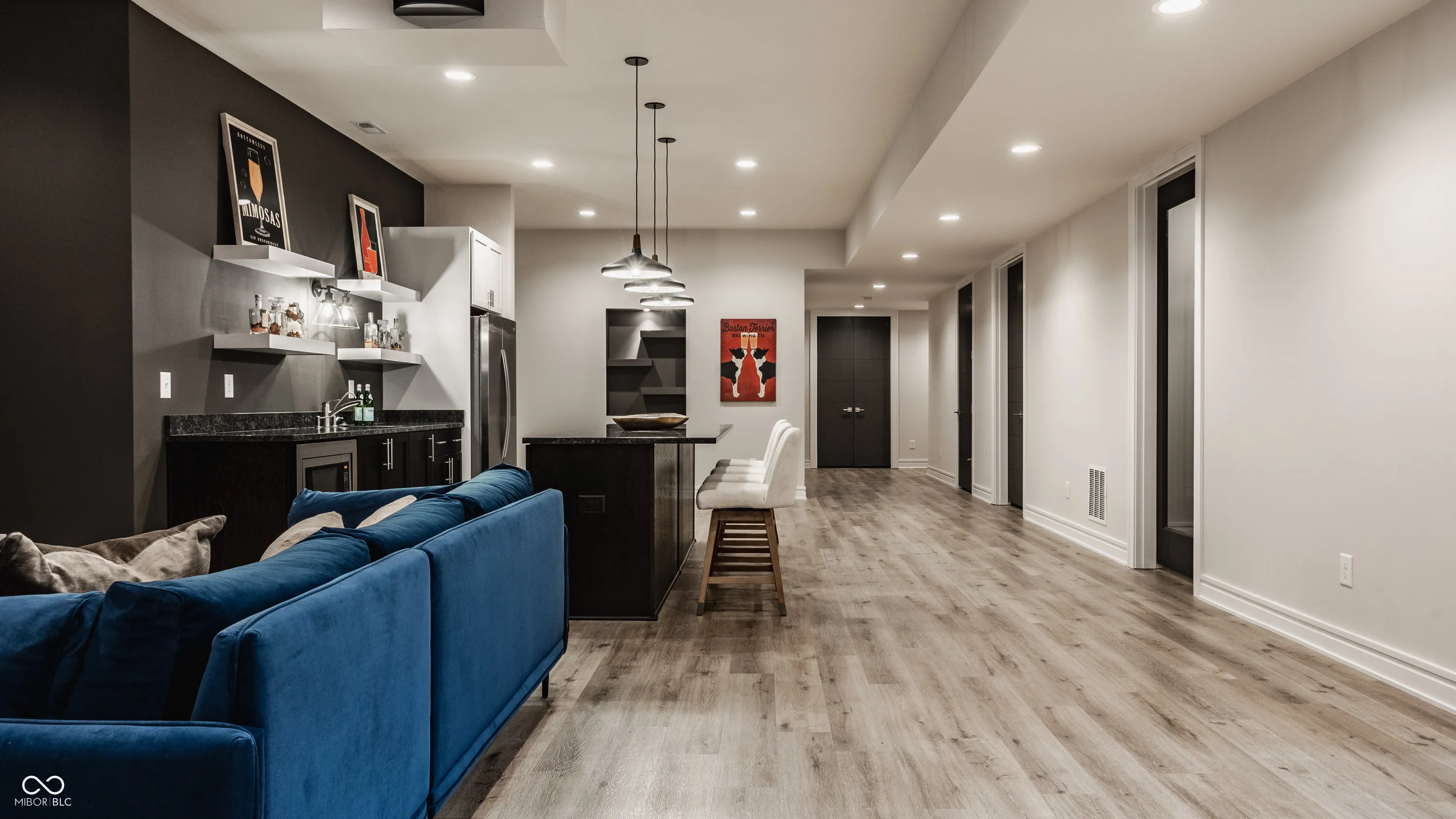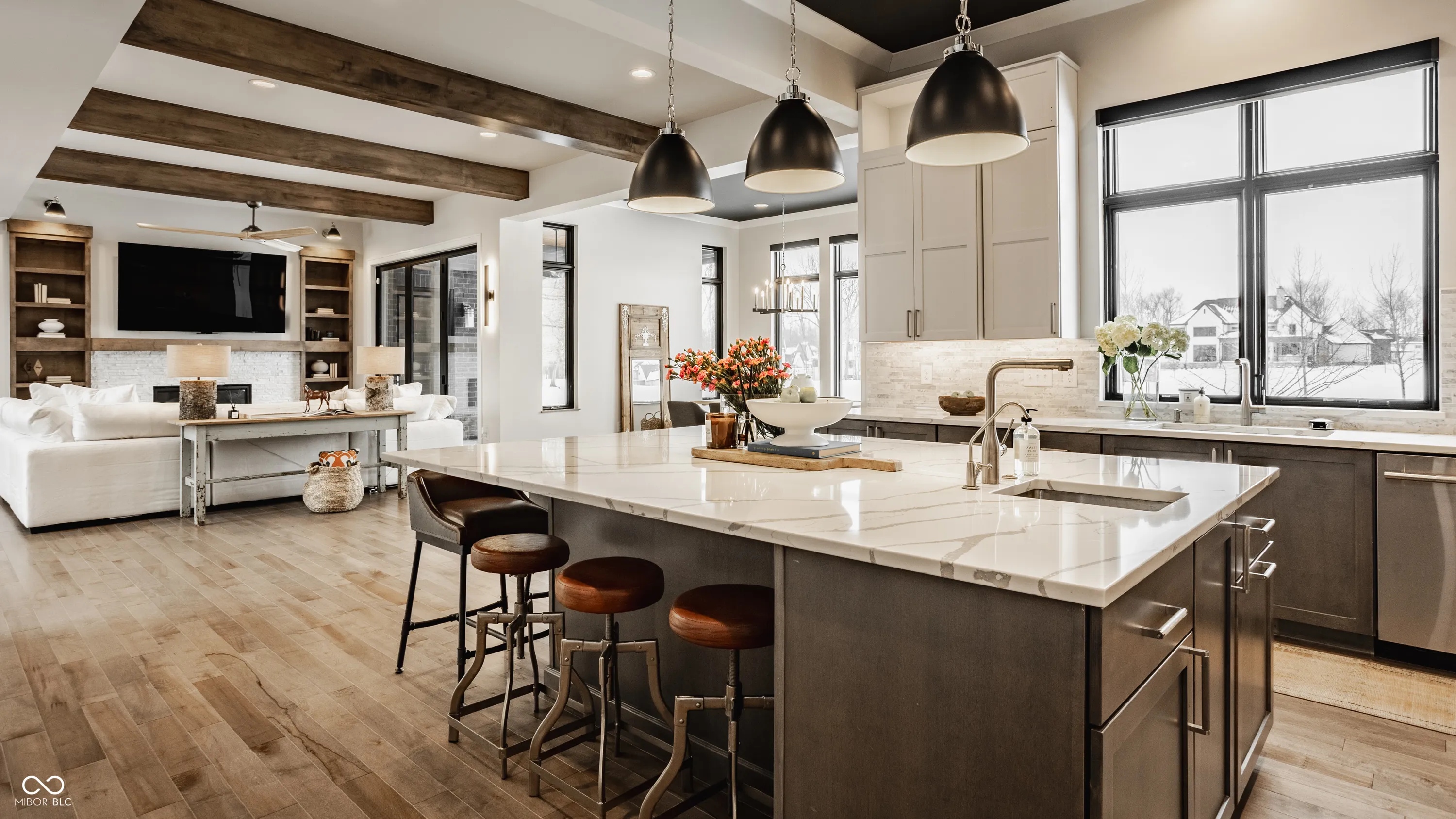 Experience the pinnacle of luxury living with this architectural masterpiece in the prestigious Holliday Farms community of Zionsville. Built by the renowned Sigma Builders, this home represents the height of contemporary elegance and offers an unparalleled lifestyle. The residence boasts breathtaking views of the fifth hole, with expansive windows flooding the open-concept spaces with natural light. The great room exudes sophistication, featuring a refined fireplace and custom built-ins, seamlessly leading to the gourmet kitchen. This culinary haven includes a large island and a separate catering kitchen fully equipped with a gas range, refrigerator, and dishwasher-ideal for hosting and entertaining with ease. The main level also includes a private guest suite with a luxurious full bath, as well as a home office overlooking the course. The upper level is home to a stunning primary suite. This sanctuary features a tray ceiling, a spa-like bath, an expansive walk-in closet, and a balcony with Trex decking overlooking serene pond views and the fairway. Two additional en-suite bedrooms, a stylish office with custom built-ins, a wet bar, and a secondary laundry room provide ultimate convenience and comfort. The lower level is an entertainer’s dream, complete with a media room, wine cellar, sitting area, and fully equipped wet bar. A fifth bedroom and full bath add versatility to this exquisite space. Outside, the lanai offers a breathtaking setting for sunset views, alfresco gatherings, or quiet evenings. This exceptional home also comes with a Holliday Farms social membership, granting access to premier clubhouse amenities. Combining refined elegance, modern comforts, and exclusive living, this residence is more than a home-it’s a sanctuary of unmatched luxury. Welcome to your dream home, where every detail is designed to inspire grandeur.