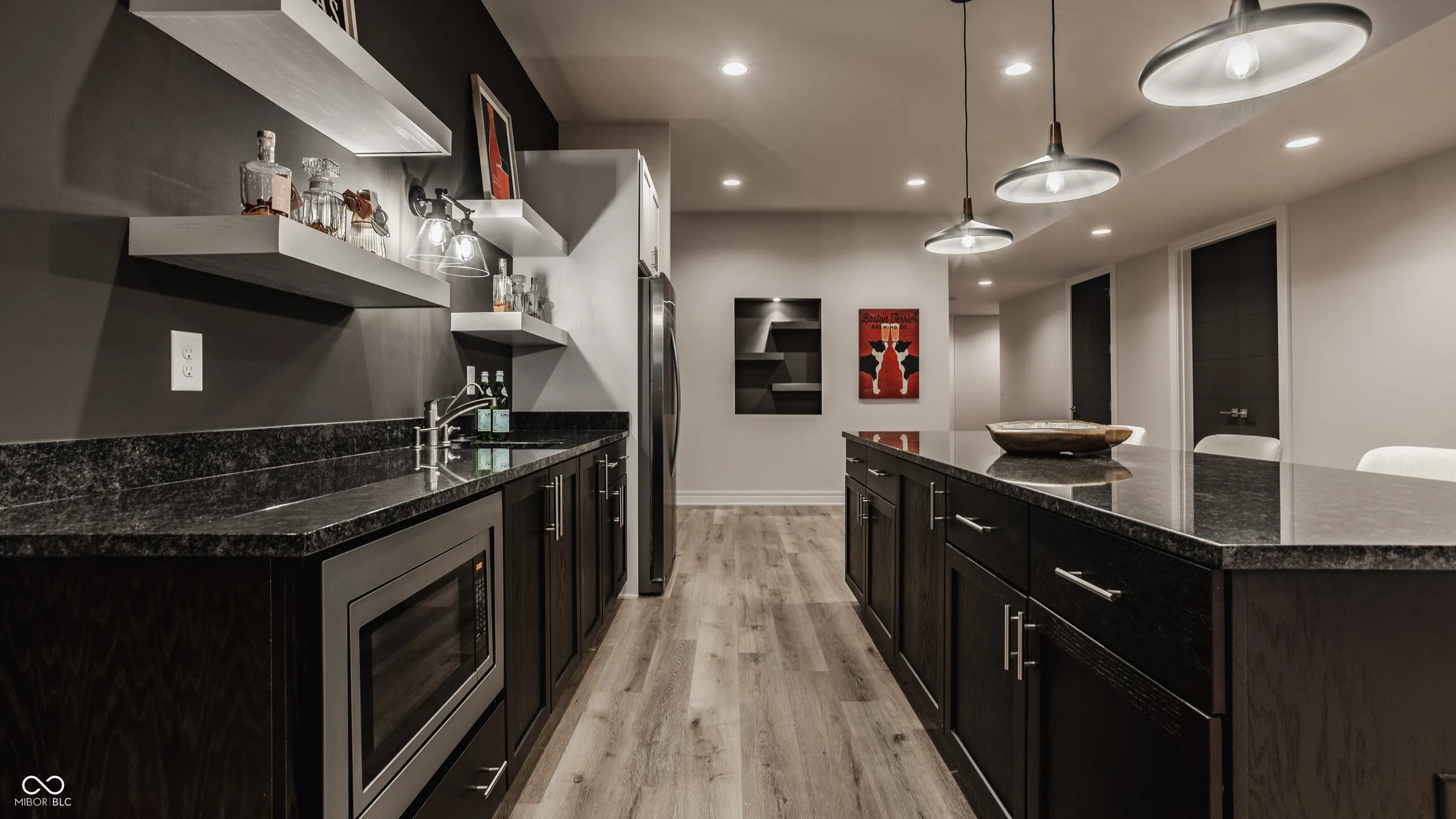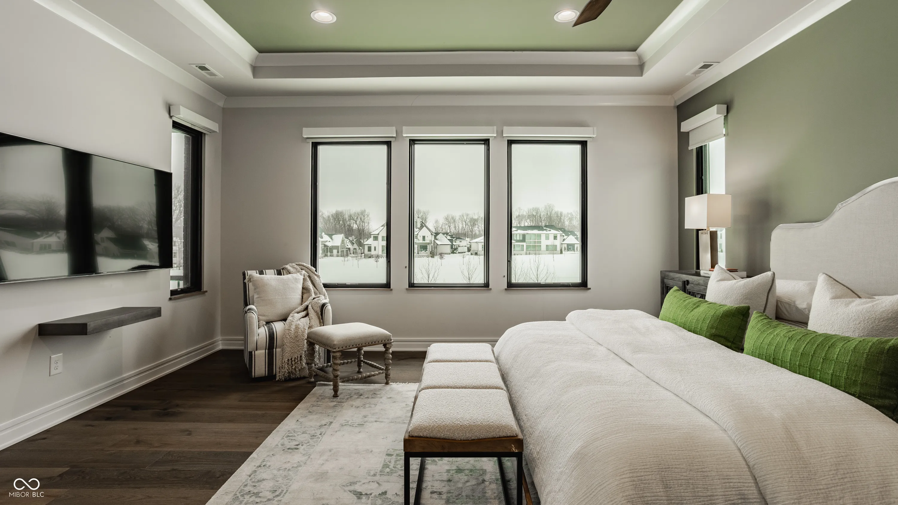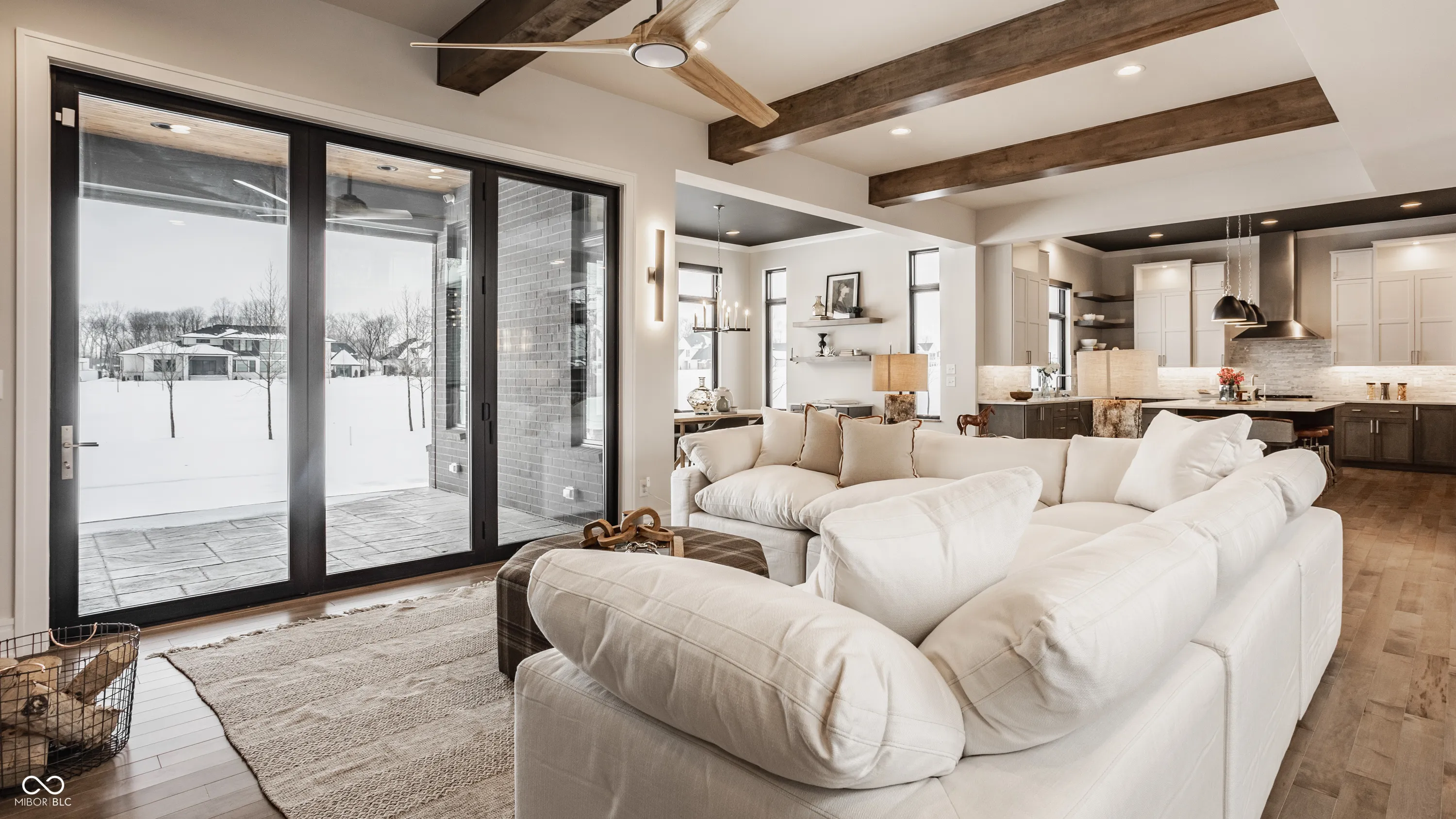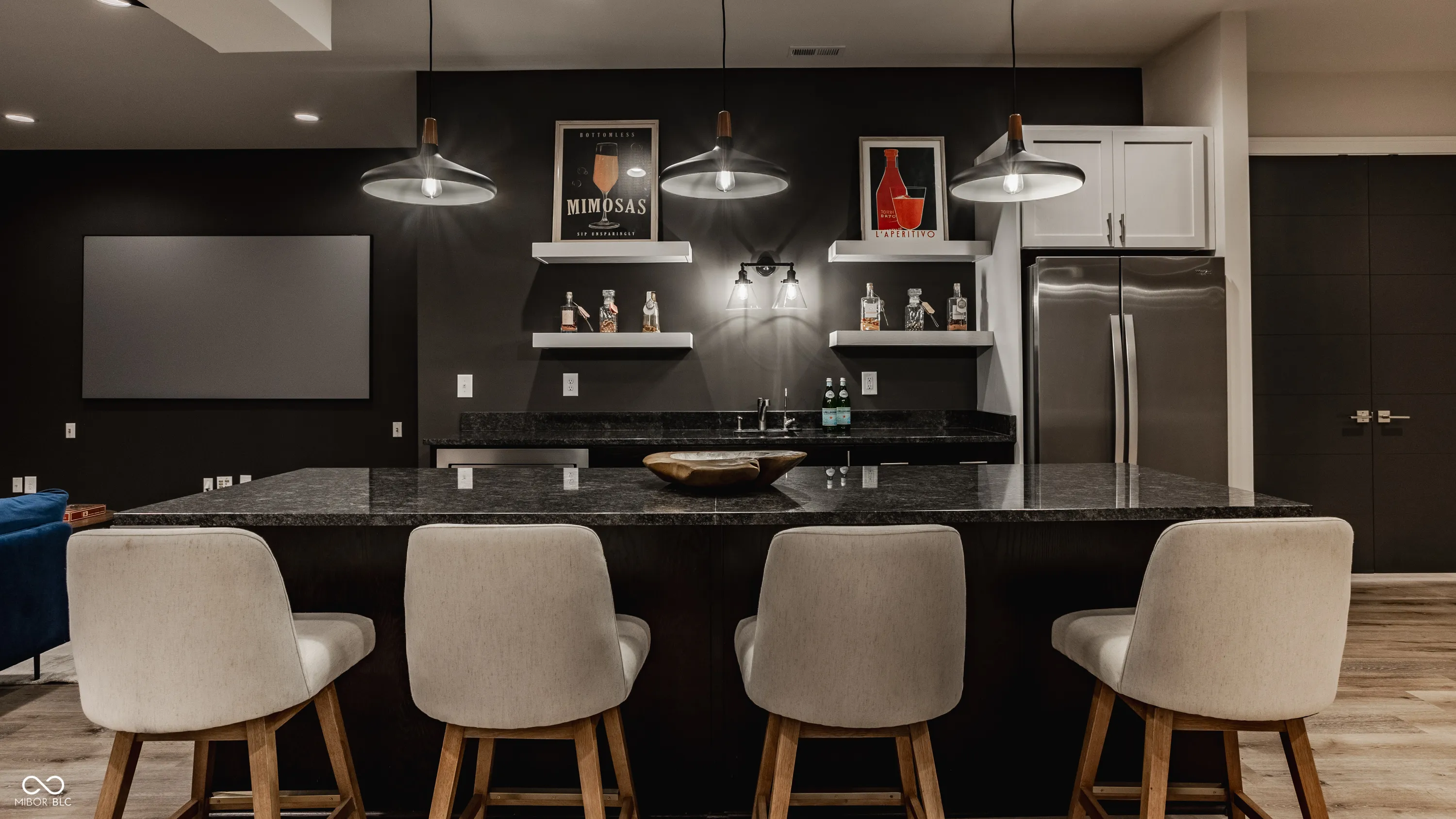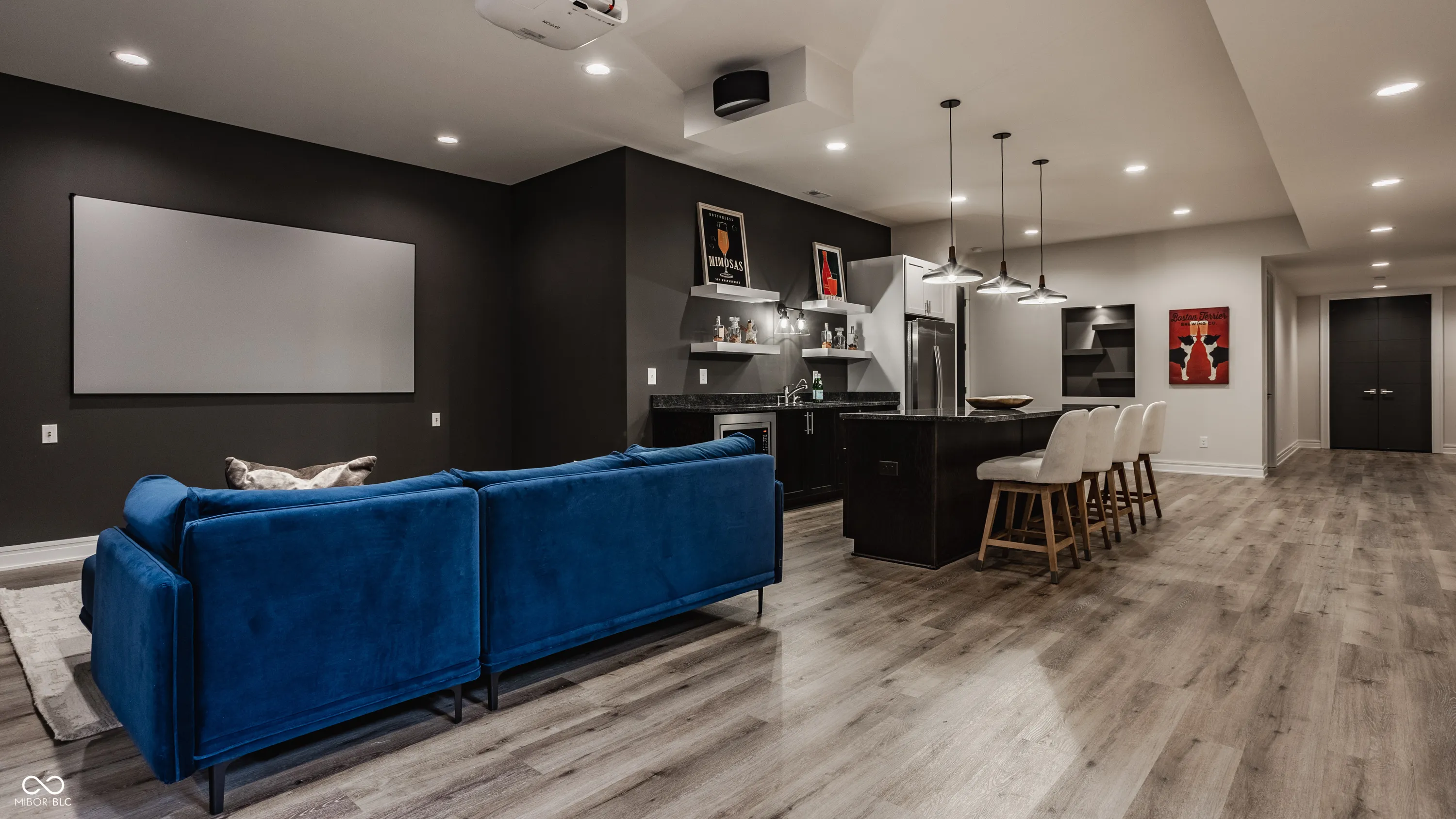Experience the pinnacle of luxury living with this architectural masterpiece in the prestigious Holliday Farms community of Zionsville. Built by the renowned Sigma Builders, this home represents the height of contemporary elegance and offers an unparalleled lifestyle. The residence boasts breathtaking views of the fifth hole, with expansive windows flooding the open-concept spaces with natural light. The great room exudes sophistication, featuring a refined fireplace and custom built-ins, seamlessly leading to the gourmet kitchen. This culinary haven includes a large island and a separate catering kitchen fully equipped with a gas range, refrigerator, and dishwasher-ideal for hosting and entertaining with ease. The main level also includes a private guest suite with a luxurious full bath, as well as a home office overlooking the course. The upper level is home to a stunning primary suite. This sanctuary features a tray ceiling, a spa-like bath, an expansive walk-in closet, and a balcony with Trex decking overlooking serene pond views and the fairway. Two additional en-suite bedrooms, a stylish office with custom built-ins, a wet bar, and a secondary laundry room provide ultimate convenience and comfort. The lower level is an entertainer’s dream, complete with a media room, wine cellar, sitting area, and fully equipped wet bar. A fifth bedroom and full bath add versatility to this exquisite space. Outside, the lanai offers a breathtaking setting for sunset views, alfresco gatherings, or quiet evenings. This exceptional home also comes with a Holliday Farms social membership, granting access to premier clubhouse amenities. Combining refined elegance, modern comforts, and exclusive living, this residence is more than a home-it’s a sanctuary of unmatched luxury. Welcome to your dream home, where every detail is designed to inspire grandeur.