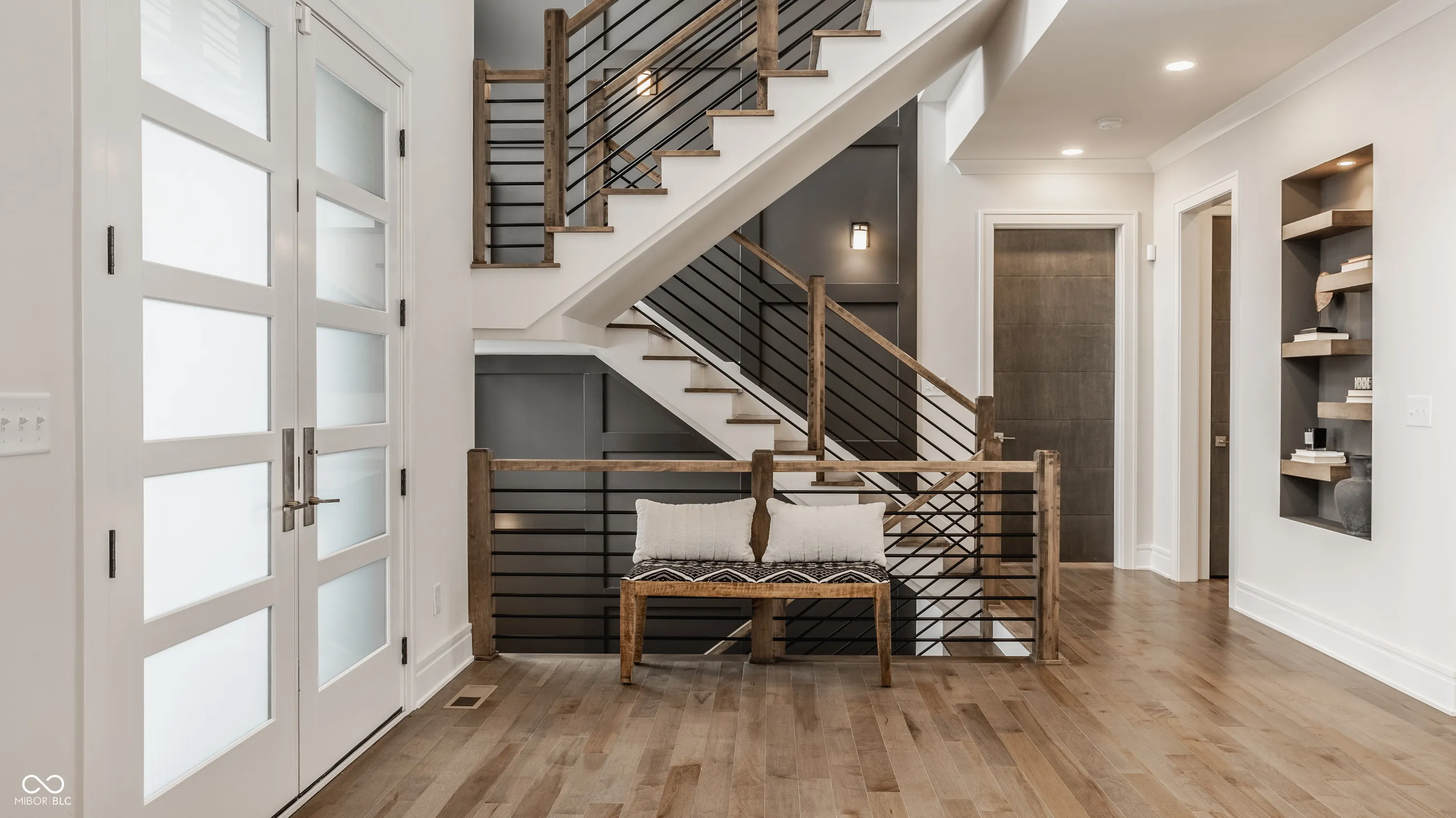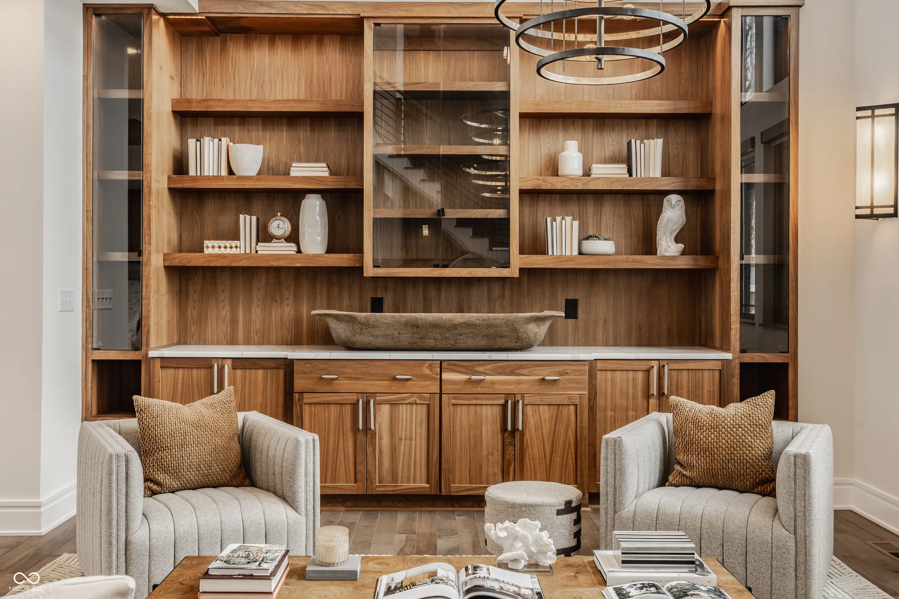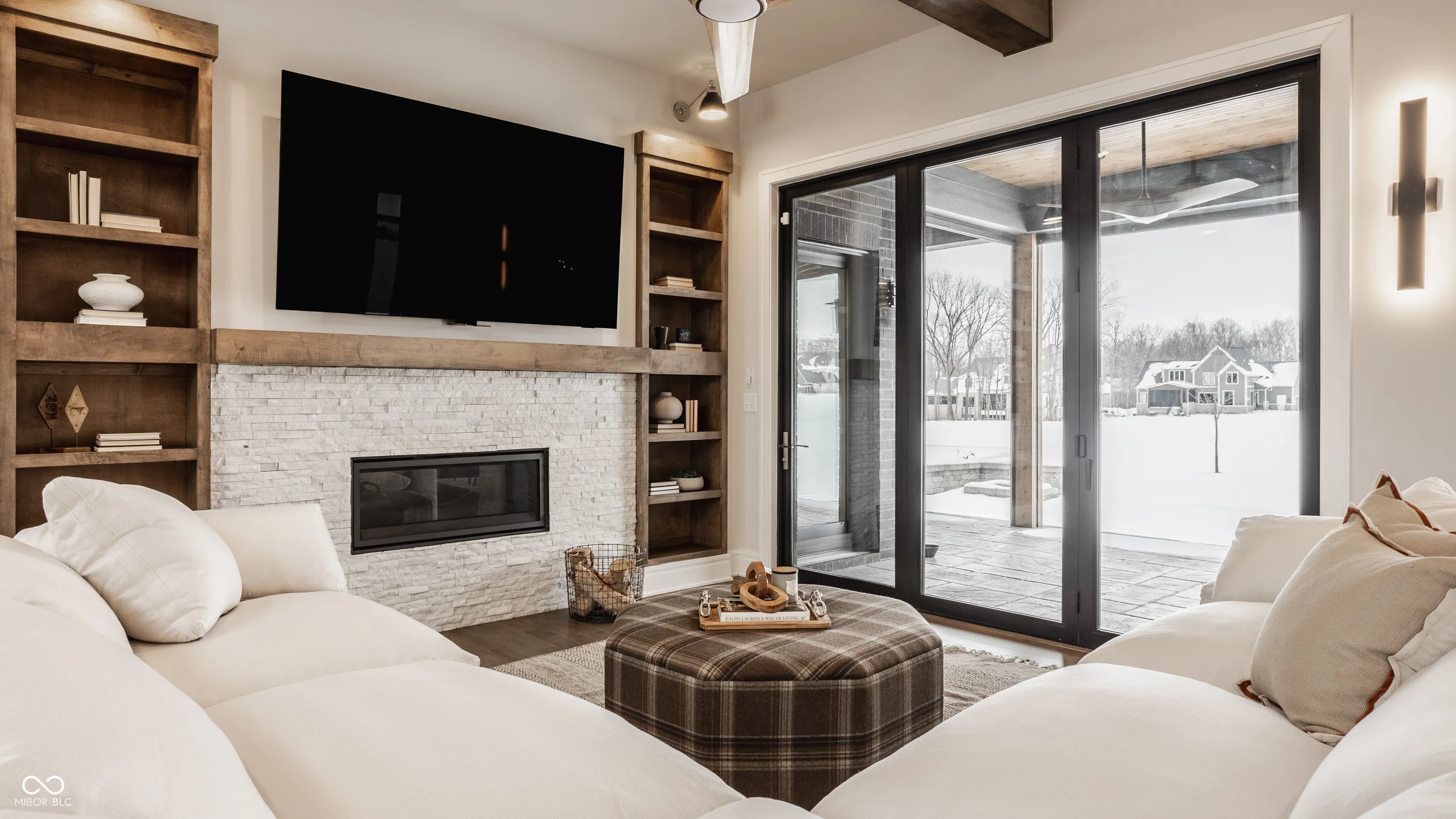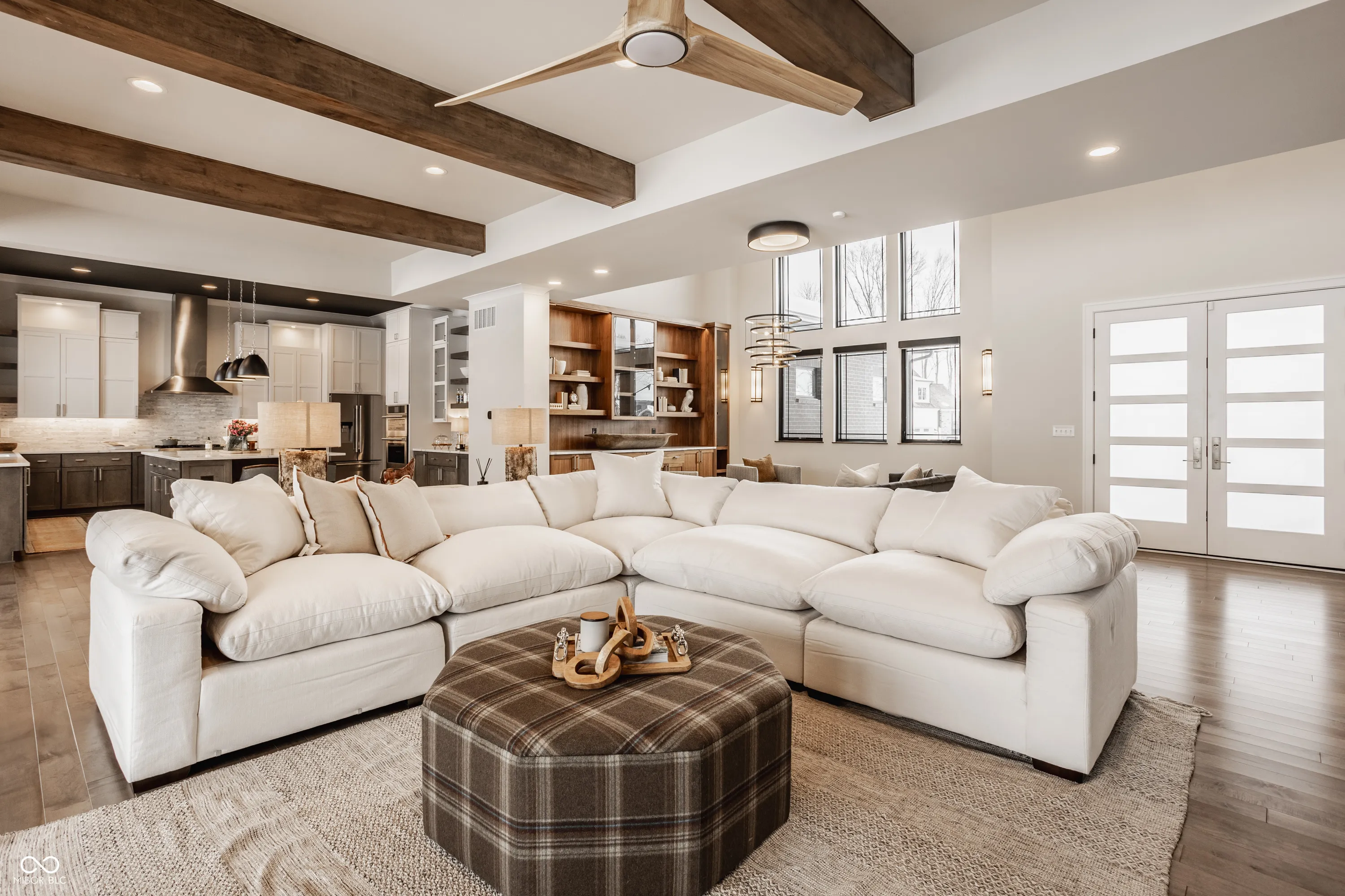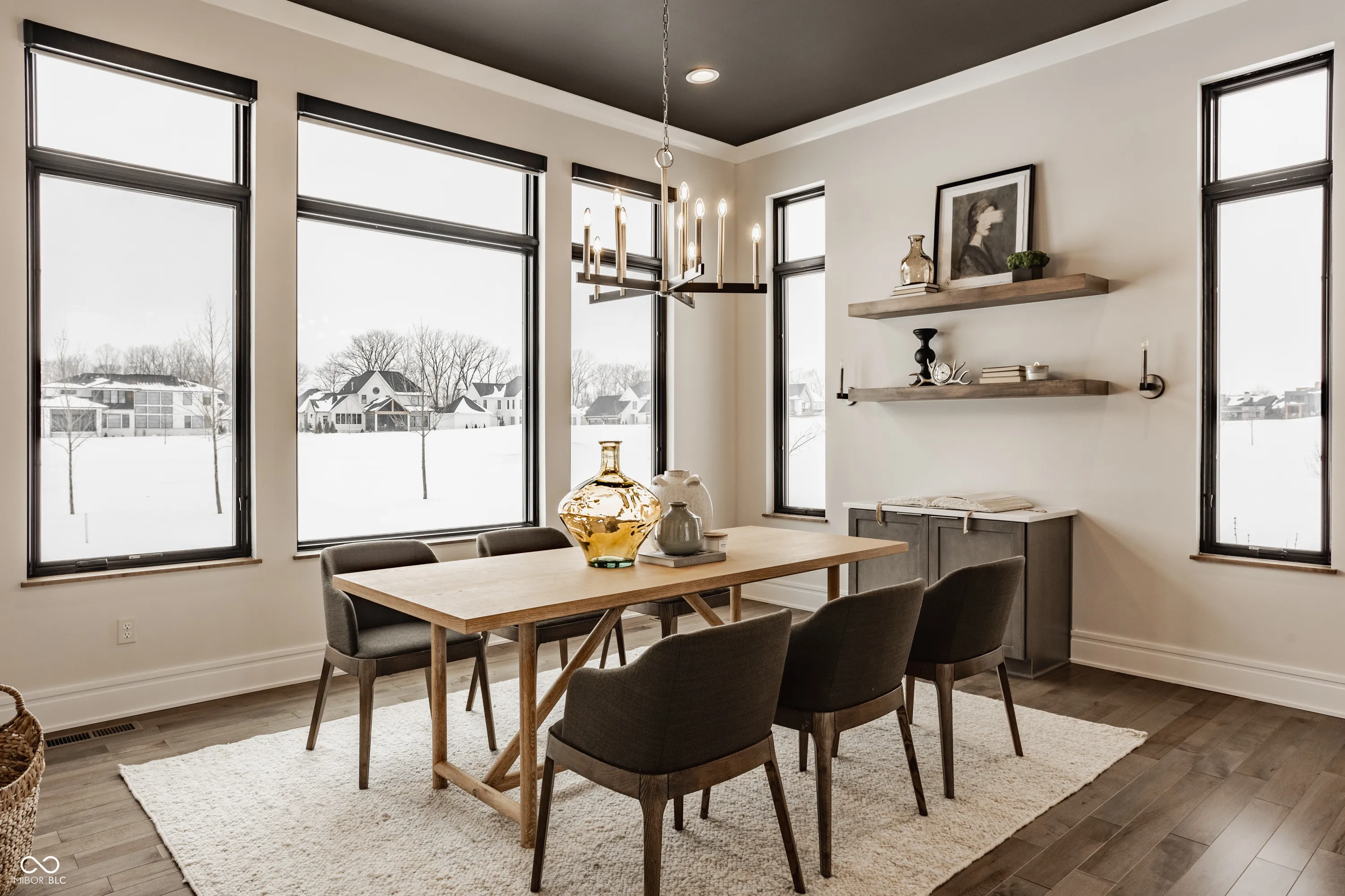 Experience the pinnacle of luxury living with this architectural masterpiece in the prestigious Holliday Farms community of Zionsville. Built by the renowned Sigma Builders, this home represents the height of contemporary elegance and offers an unparalleled lifestyle. The residence boasts breathtaking views of the fifth hole, with expansive windows flooding the open-concept spaces with natural light. The great room exudes sophistication, featuring a refined fireplace and custom built-ins, seamlessly leading to the gourmet kitchen. This culinary haven includes a large island and a separate catering kitchen fully equipped with a gas range, refrigerator, and dishwasher-ideal for hosting and entertaining with ease. The main level also includes a private guest suite with a luxurious full bath, as well as a home office overlooking the course. The upper level is home to a stunning primary suite. This sanctuary features a tray ceiling, a spa-like bath, an expansive walk-in closet, and a balcony with Trex decking overlooking serene pond views and the fairway. Two additional en-suite bedrooms, a stylish office with custom built-ins, a wet bar, and a secondary laundry room provide ultimate convenience and comfort. The lower level is an entertainer’s dream, complete with a media room, wine cellar, sitting area, and fully equipped wet bar. A fifth bedroom and full bath add versatility to this exquisite space. Outside, the lanai offers a breathtaking setting for sunset views, alfresco gatherings, or quiet evenings. This exceptional home also comes with a Holliday Farms social membership, granting access to premier clubhouse amenities. Combining refined elegance, modern comforts, and exclusive living, this residence is more than a home-it’s a sanctuary of unmatched luxury. Welcome to your dream home, where every detail is designed to inspire grandeur.