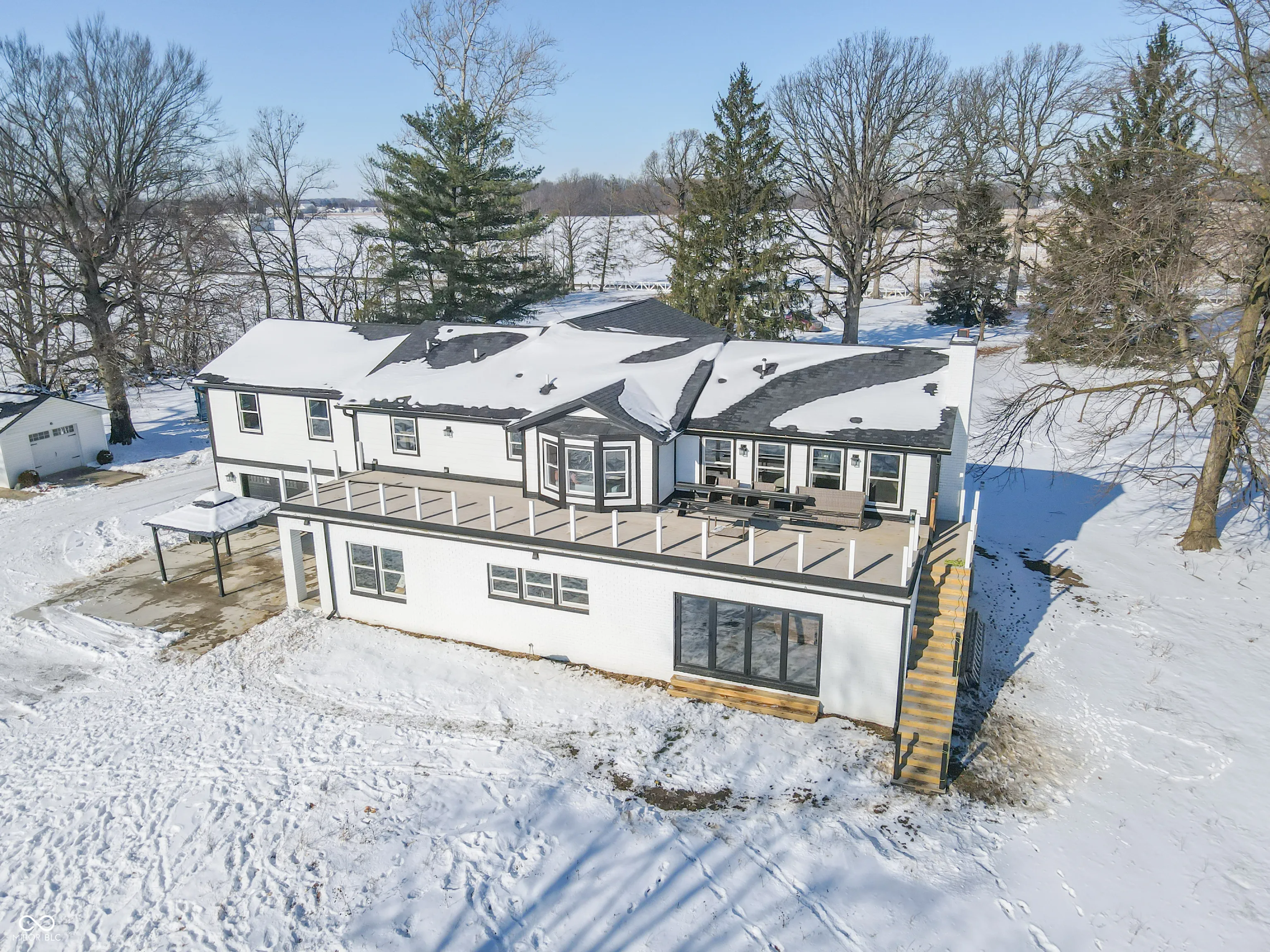 Welcome to your dream home, a beautifully renovated 5-bedroom, 4.5-bath estate offering over 5,300 sq. ft. of luxurious living space. Nestled on 9.24 acres of serene, private land, this property is an idyllic retreat from the hustle and bustle, featuring a large pond, 3-4 acres of wooded landscape, and breathtaking views from every angle. The home has undergone a full transformation, with no detail overlooked. A spacious, open-concept layout boasts brand-new flooring throughout, a chef’s kitchen with modern, high-end finishes, and large windows that fill the home with natural light. Enjoy cozy nights by the stunning new fireplace or step outside to your expansive deck off the primary suite to soak in the peaceful surroundings.The primary suite is a true retreat, offering a private sanctuary with a luxurious en-suite bath and ample closet space. Each additional bedroom and bathroom is equally spacious and thoughtfully designed, making this home perfect for large families or those who love to entertain. Outside, the picturesque pond provides a perfect spot for relaxation or recreational activities, while the wooded acreage offers privacy and endless possibilities for hiking, nature walks, or future expansion. Whether you’re seeking a quiet escape or a place to host gatherings, this home provides the ultimate blend of comfort, style, and nature.