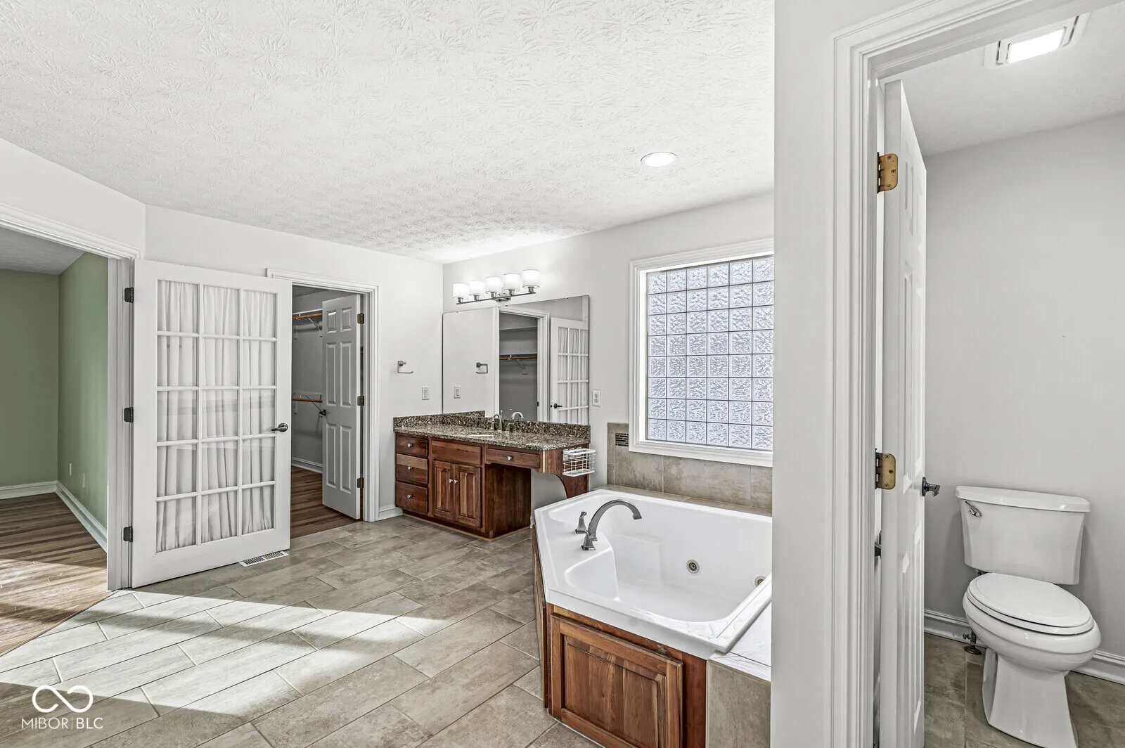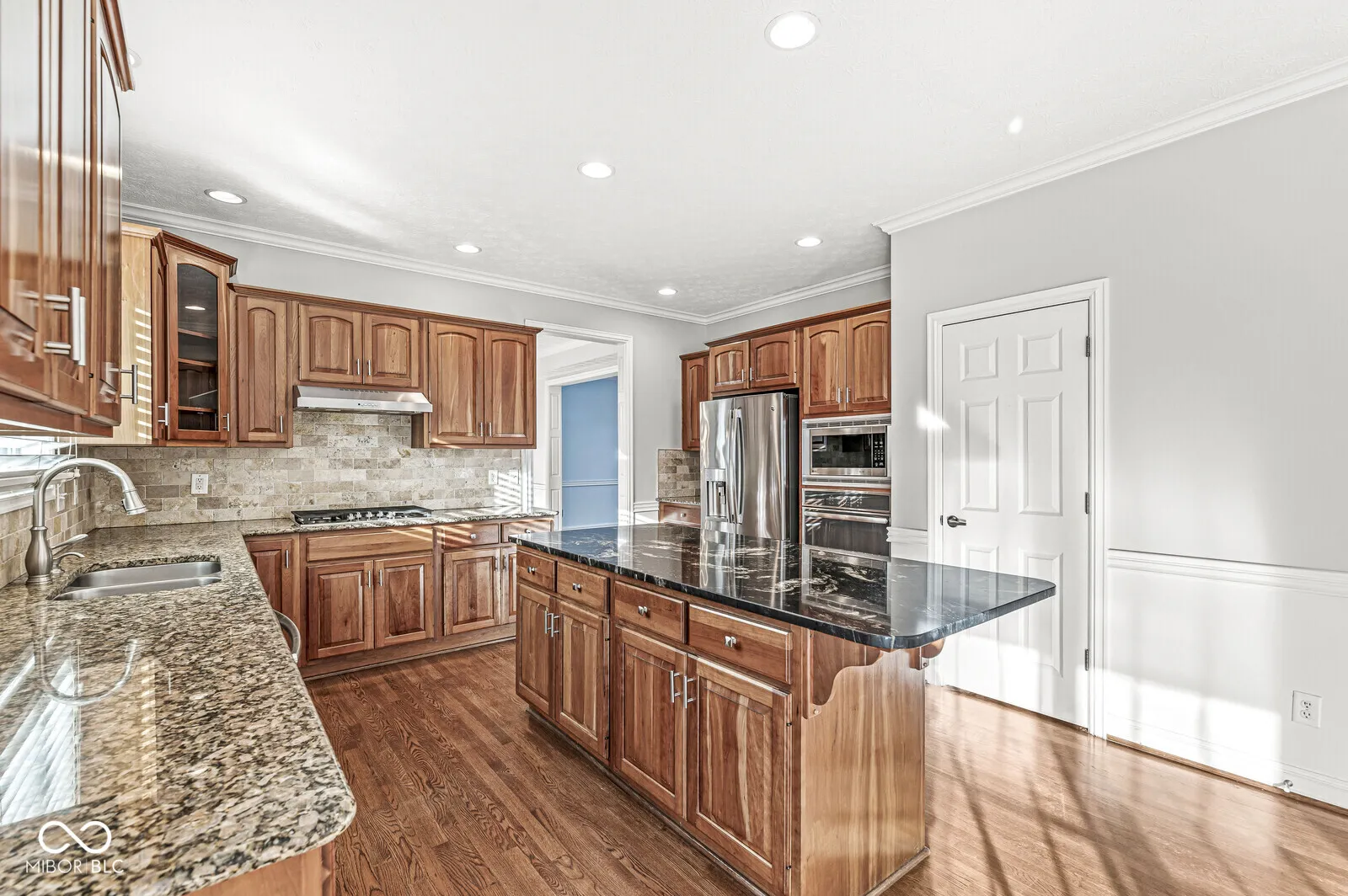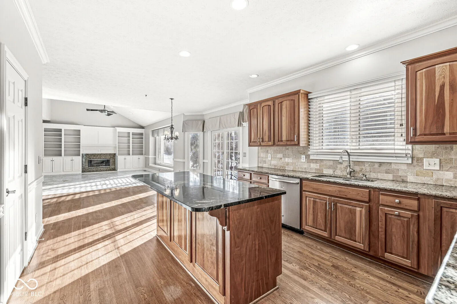 This custom home offers the perfect blend of charm, elegance, and functionality. Featuring beautiful wood floors throughout all 12 rooms and soaring architectural ceilings, the house is bathed in natural light and Andersen windows, including the finished basement. The two-story entryway and stunning iron three-story staircase create a grand first impression. The kitchen boasts a large granite island, warm hickory cabinetry, tile backsplash, and stainless steel GE Profile appliances, including a gas cooktop with an exhaust hood and a refrigerator. Open to the sunny vaulted family room and a cozy breakfast area, The second floor includes a Jack and Jill bathroom, providing convenient shared access between two spacious bedrooms. Step outside to your private oasis, featuring a stamped concrete patio with custom iron railings and professionally landscaped surroundings. The backyard is enhanced with a boulder retaining wall, lighting, and a drainage system seamlessly integrating into the natural environment. Additional highlights include a luxurious primary suite, premium wood flooring, luxury vinyl plank throughout, a gas fireplace with logs, and energy-efficient upgrades such as a Rheem HVAC system, tankless water heater, and energy-saving Andersen windows. The home has been meticulously maintained with numerous upgrades, including a new roof in 2020, professionally redesigned landscaping, upgraded egress window wells, fresh paint insight, and enhanced garage doors.