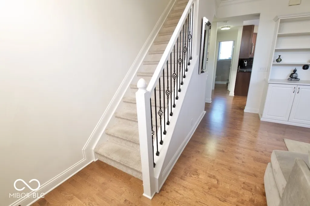 Move in ready townhouse available now located in the prestigious Historic Lockerbie neighborhood. Your guests will be amazed upon entering your home! You’re greeted with gleaming hardwood floors throughout the entire main level, enormous raised ceilings + refined crown molding, expansive Great Room, and exquisite details that will leave one breathless. The Great Room is ideal for entertainment and relaxation, and having built-in bookshelves & marble fireplace that creates a cozy and inviting atmosphere. The marble fireplace is a stunning focal point, yet maintains perfect flow into the Kitchen for everyone to use. This is the epitome of a Gourmet Kitchen with: High-end SS appls, Granite Countertops, Plethora of Custom Cherry Cabinetry, and a Mosaic Backsplash. Immediately off your eat-in kitchen boasts a Juliet balcony, allowing residents to enjoy all the beauty that downtown offers, and enjoy stunning sunsets of the skyline at night. Retreat upstairs on BRAND NEW HIGH-END carpet where the laundry room is conveniently located along with 2 bedrooms each with their own full bathrooms. The Primary has cathedral ceilings, walk-in closet with California Closets, accent marble wall, and windows that brighten your room every morning! The 2nd is perfect for in-laws, guests, or a nursery. The lower level is setup perfectly for anything you need: Office to work-from-home, Gym, Rec Room for teaching and arts & crafts, or potential 3rd bedroom. There is a finished 2-car heated ATTACHED garage that is tucked around for convenience and safety. Pet w/ approval. You can’t beat this location! Literally just steps away from everything Downtown has to offer: various amenities, attractions, nightlife, dining, breweries, ease to anywhere in the city, Brand New Bottleworks District, Mass Ave, bike trails, and so much more.