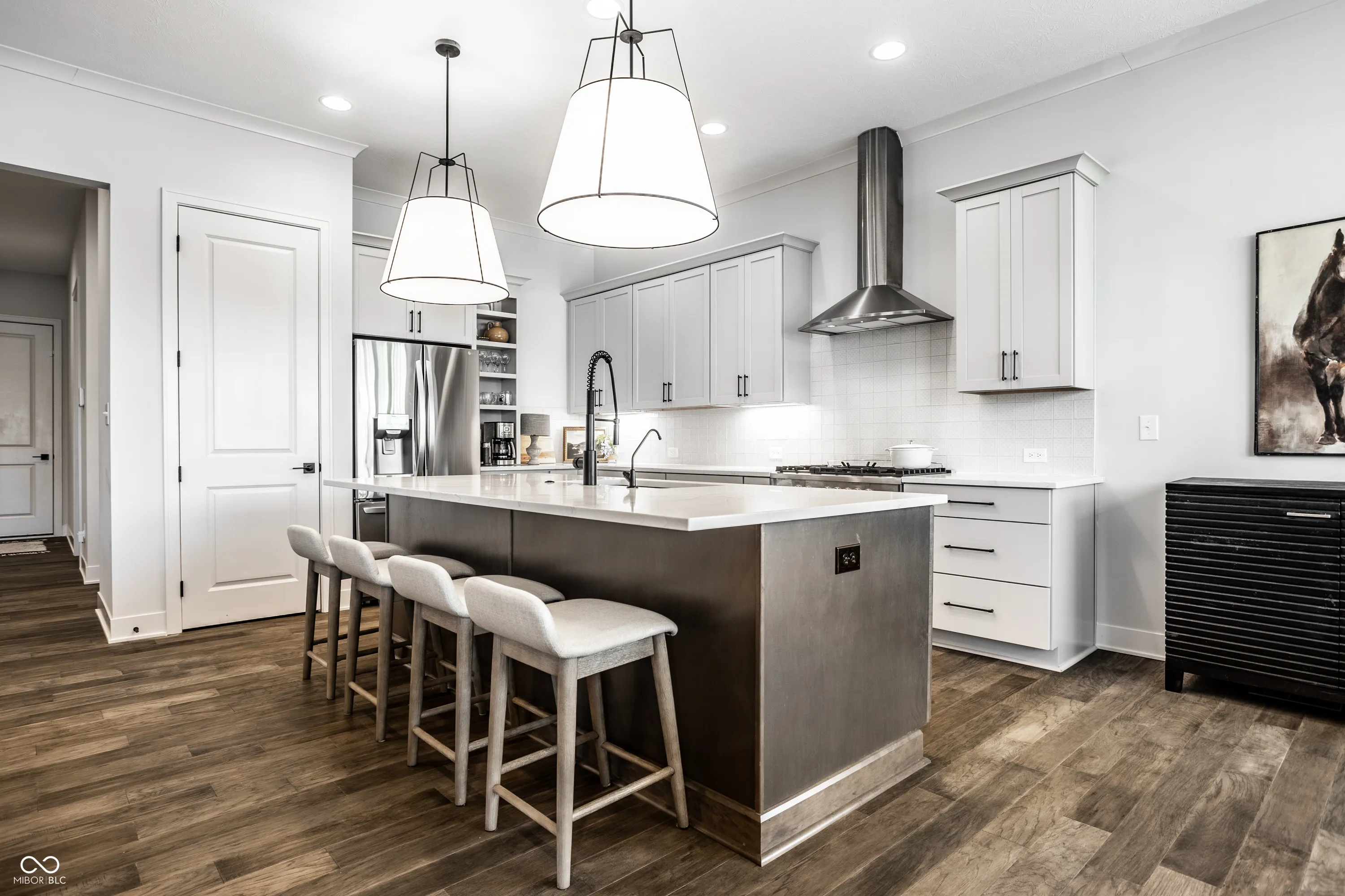 This stunning John McKenzie custom 3-bedroom, 3-bath ranch in a private gated cul-de-sac offers 2,700 sq ft of beautifully finished living space, including lovely finished basement with spacious storage area. As you step inside you will be greeted by open-concept living, high ceilings, and an abundance of natural light that flows through every room. The chef’s kitchen is a standout, featuring a large island, high-end appliances, and plenty of space for both cooking and entertaining. The cozy living area includes a fireplace, creating the perfect ambiance for relaxing. Sliding doors open to a serene outdoor space, with a walk out deck surrounded by views of the tree line providing added privacy. Enjoy low-maintenance living and access to top-tier amenities like golf, tennis, pickleball, a pool, and clubhouse. Ideally located near Grand Park with easy access to US-31, this home combines comfort, convenience, and resort-style living in one of the area’s most desirable communities. Don’t miss your chance to own this extraordinary property!