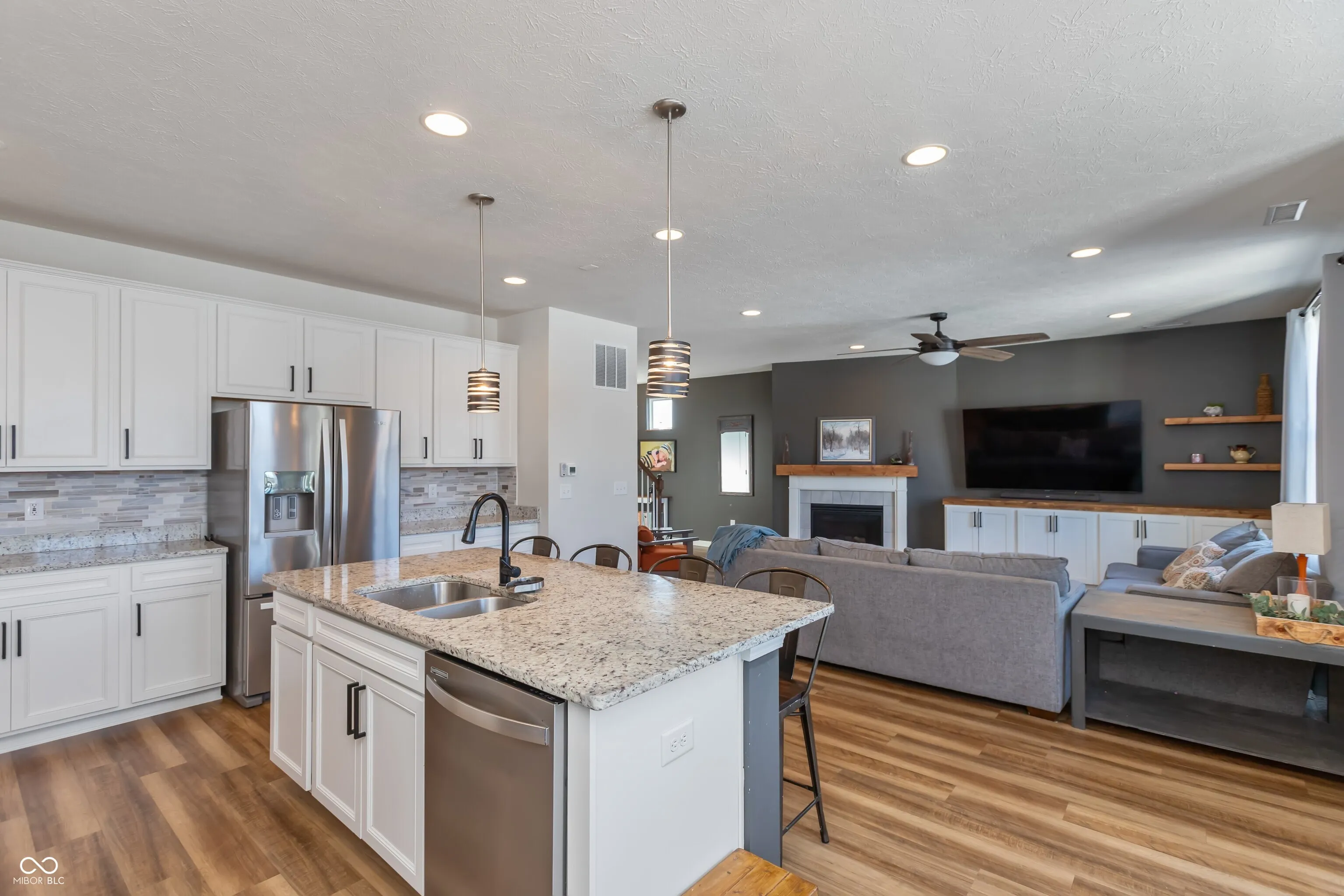 NO NEIGHBORS BEHIND this better than new Fab 4 Bdrm, 2.5 Bath Pulte home w/LOFT, MUDROOM & main level OFFICE w/Glass French Doors in Avon School District! Less than 5 years old & the work is done for you…. just move right in! LIGHT, BRIGHT & BEAUTIFUL w/ NEUTRAL DECOR & OPEN CONCEPT floorplan. Gather Friends & Family in the Huge Inviting Kitchen w/ISLAND, WHITE CABS & GRANITE Counters, SS Appl & Pantry that OPENs to GR w/FIREPLACE & BUILT-IN’s. This EFFICIENT Boardwalk floorplan has Large rooms, including the B-fast Nook that allows to expand for a Large Dining Rm Table & walks out to the Large BACK PATIO! All 4 Bedrooms Upstairs have WI-Closets. Retreat to the Primary Suite tucked in the back of the home w/Luxury bath including dual vanities & Walk-In Shower. The LOFT & convenient Upstairs Laundry Rm allows separation between bedrooms & lots of privacy & room for everyone! TODAY’S LATEST LOOKS & NEEDS w/Luxury Vinyl Plank throughout the main level, taller windows, corner fireplace, walls of windows, FLEX Rm off the Kitchen & Huge MUDROOM off the Garage. Popular & Perfect Location near Avon, Indy, Brownsburg & easy access to Ronald Reagan Pkwy, I-465, Downtown & Airport. Country Quiet w/City Convenience! Enjoy the handy neighborhood playground, walking & biking trails. It’s a great time to buy, and this one is like new but with the extras ALREADY added & done for you like BLINDS, WATER SOFTENER, HUGE PATIO & LUSH BKYD this Summer!… YOU BENEFIT!!