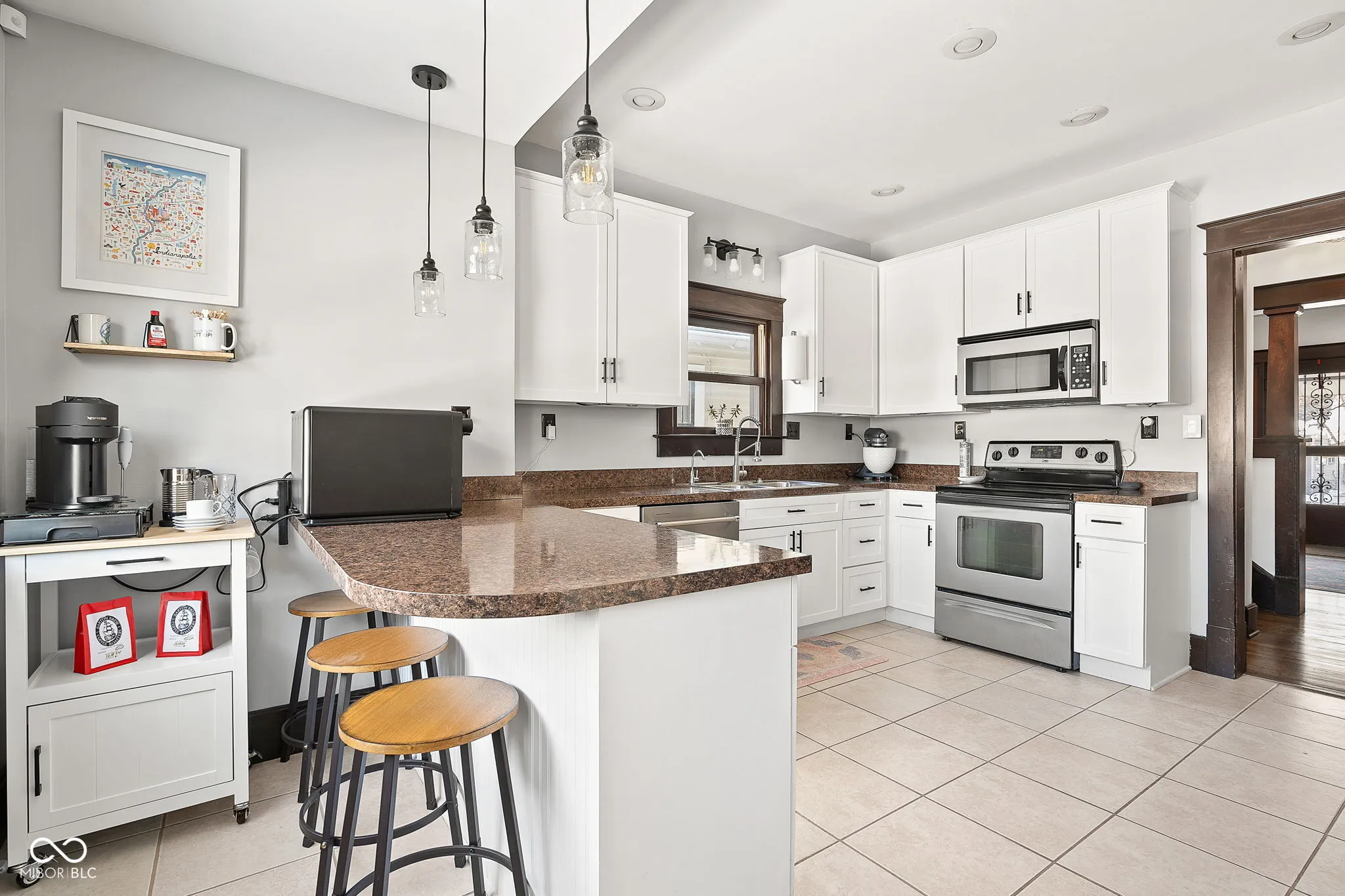 This beautiful 3 bed, 1.5 bath home is full of character and has been tastefully updated. You will love the gorgeous hardwood floors that go throughout the main floor. There is so much warmth to the home with the wood features, brick fireplace, and stained glass window. The kitchen has been beautifully renovated and flows into the large, formal dining room. Upstairs, you’ll find 3 great size bedrooms with large walk-in closets and an adorable full bath with so much charm. The home also offers a large, unfinished basement with ample storage. You’ll love the spacious fenced in backyard with a patio perfect for entertaining guests. You’ll also have a rare to find, 3 car-detached garage. This home has so much to offer including close proximity to downtown Irvington!