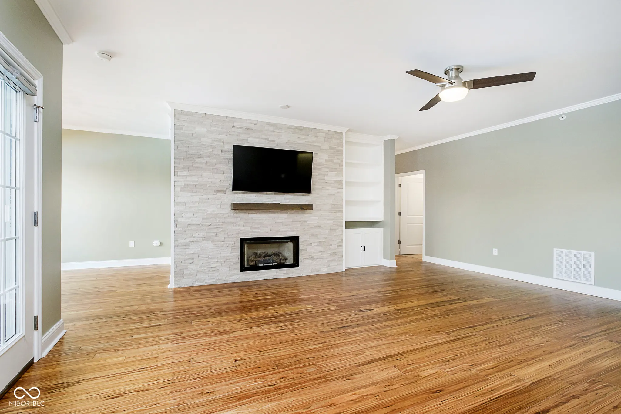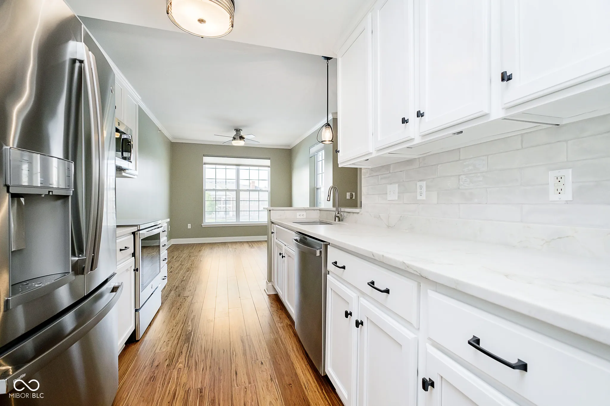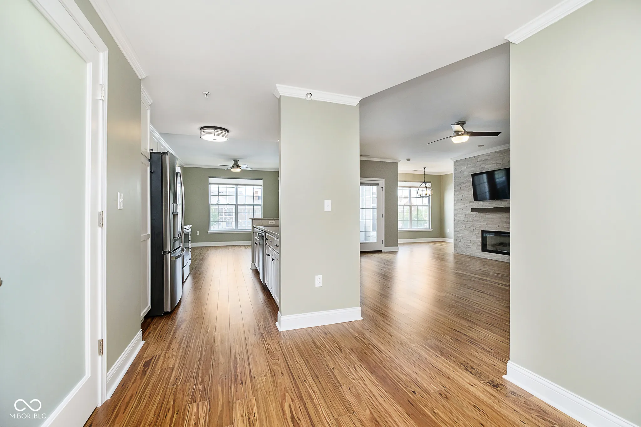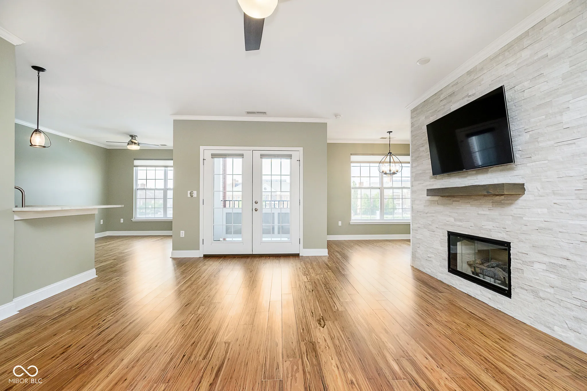 2-BR/2-BA luxury condo in the heart of Carmel’s Cultural District. This one-level corner unit on the 2nd floor corner has panoramic views of the Reflecting Pond, the Palladium Performing Arts Center, and Carter Green from every room. It features quartz kitchen countertops, top of the line stainless steel appliances, gas fireplace with built-in bookshelves, and bamboo wood flooring throughout. This condo is perfect for anyone looking to leisurely stroll or bike to everything Carmel to offer in the Midtown, City Center, and Arts & Design areas, and is steps away from the Monon Trail, Summer concerts at the Gazebo, Farmer’s Market on Saturdays, and famed Carmel Chriskindlmarkt in the winter. It also includes a stackable washer & dryer, and two designated spaces in the attached private parking garage with a keyless entry.