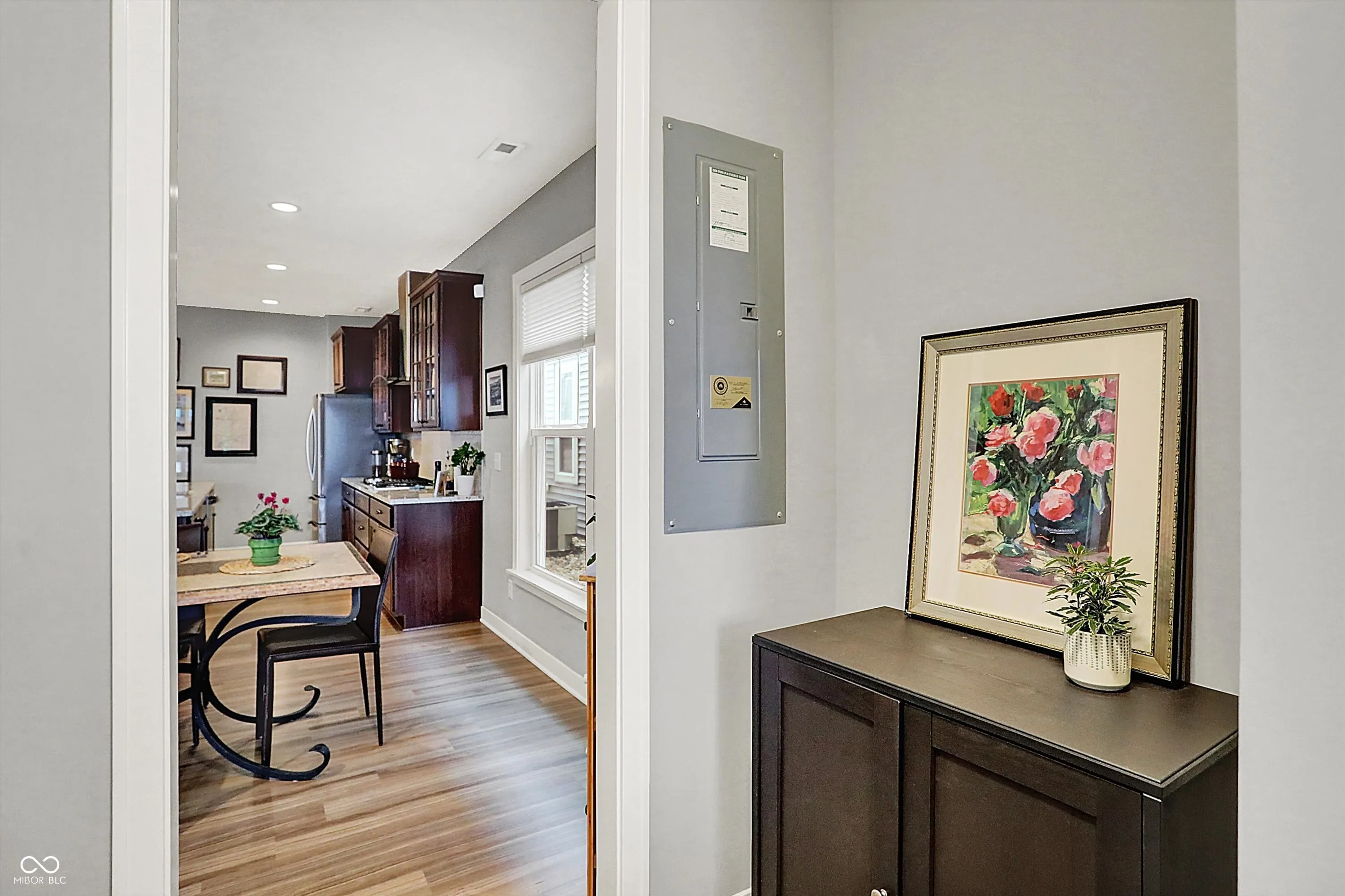 Welcome Home! This gorgeous 3BD/2.5BA home with fenced in rear yard and detached garage is conveniently located within minutes from Downtown Indy, Speedway, Interstate Access and so much more. Upon entering you’ll notice the LVP flooring throughout the home inviting you in. The home office is off of the foyer with french doors. Follow the hallway and the main level open floor plan grabs your attention with beautiful kitchen cabinetry and large center island with granite countertops, SS appliances, pendant lighting and enormous pantry. The breakfast nook is off of the Kitchen. The Great Room is in the rear of the home and boasts a wall of windows, gas fireplace and views of the covered patio in the back yard. Upstairs you will discover the large owners suite with tiled private bathroom and large walk-in closet. The upstairs laundry room is ideal and such a luxury. The secondary bedrooms are generous in size and share a full hall bathroom. Enjoy hosting or relaxing in the backyard surrounded by privacy fence. This home is a gem. Schedule a showing to see it today!