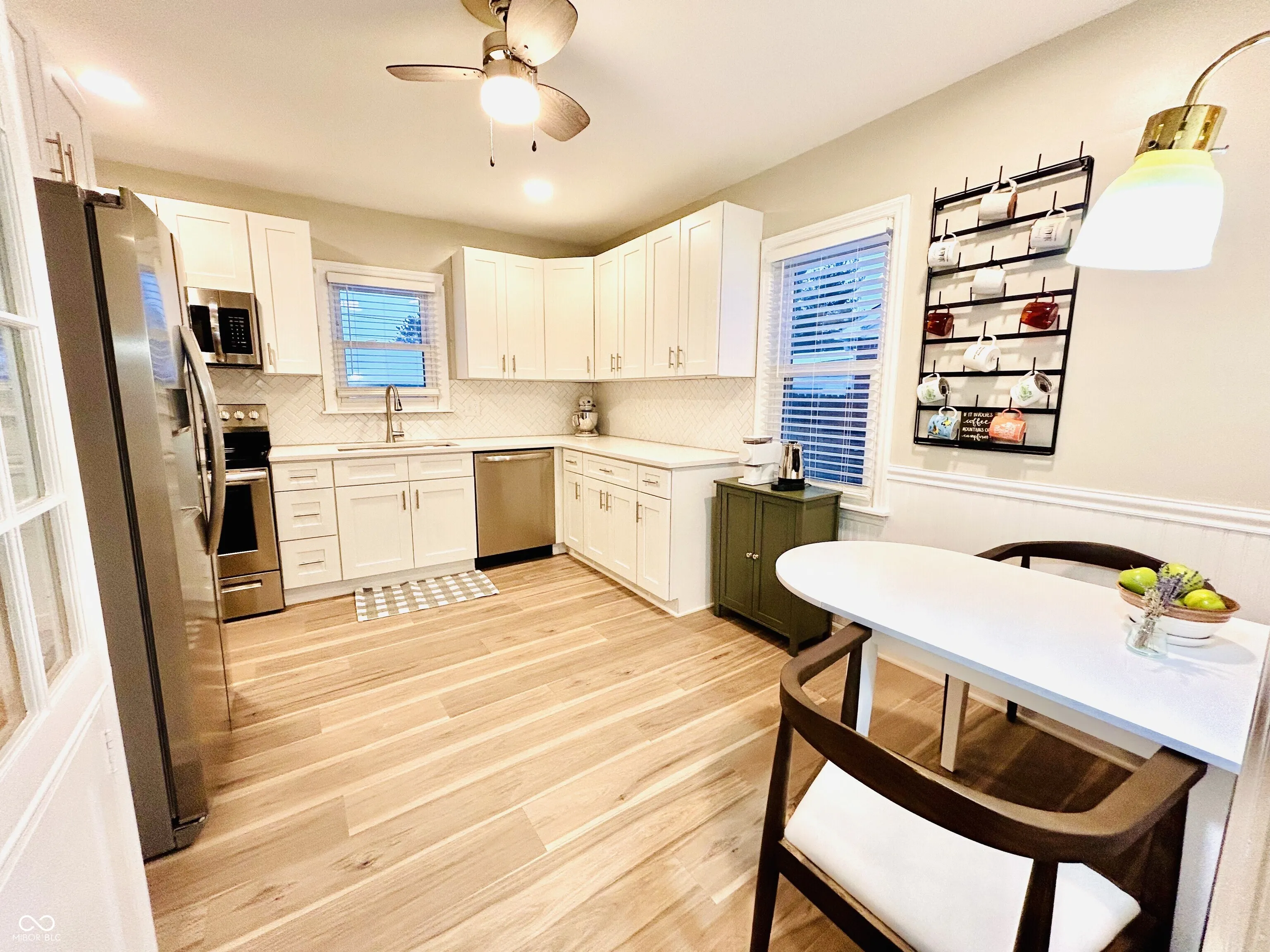 You will NOT want to pass this one by. At the end of the cozy Street sits this beauty. Original hardwood floors in LR and bedrooms. Total renovation to the kitchen and bath. Beautiful white cabinets in the kitchen with soft close, sink, flooring, built in cabinet dating the decade of time. Tile Back splash, gorgeous quartz countertop, newer faucet, stainless steel appliances and fixtures. Bathroom all new, floor to ceiling, wall to wall. New drywall, tub, sink, a double sink at that, new vanity/cabinets, flooring, faucets, and fixtures. Absolutely incredible, both areas you will love! Primary bedroom has a built-in closet/drawer unit that will stay. Cozy living area with large windows. So inviting. Utility and laundry area with storage, Attic pull down-stairs with additional storage. Cutest enclosed porch. Great outdoor deck, and oh, did I mention the garage size? 792 square feet. Two car garage, with a full-size workshop attached, service door to that area with access to the two-car garage bays. New overhead garage door openers, new sewer lines installed in 23, Roof in 19, HVAC 17 You will not be disappointed!