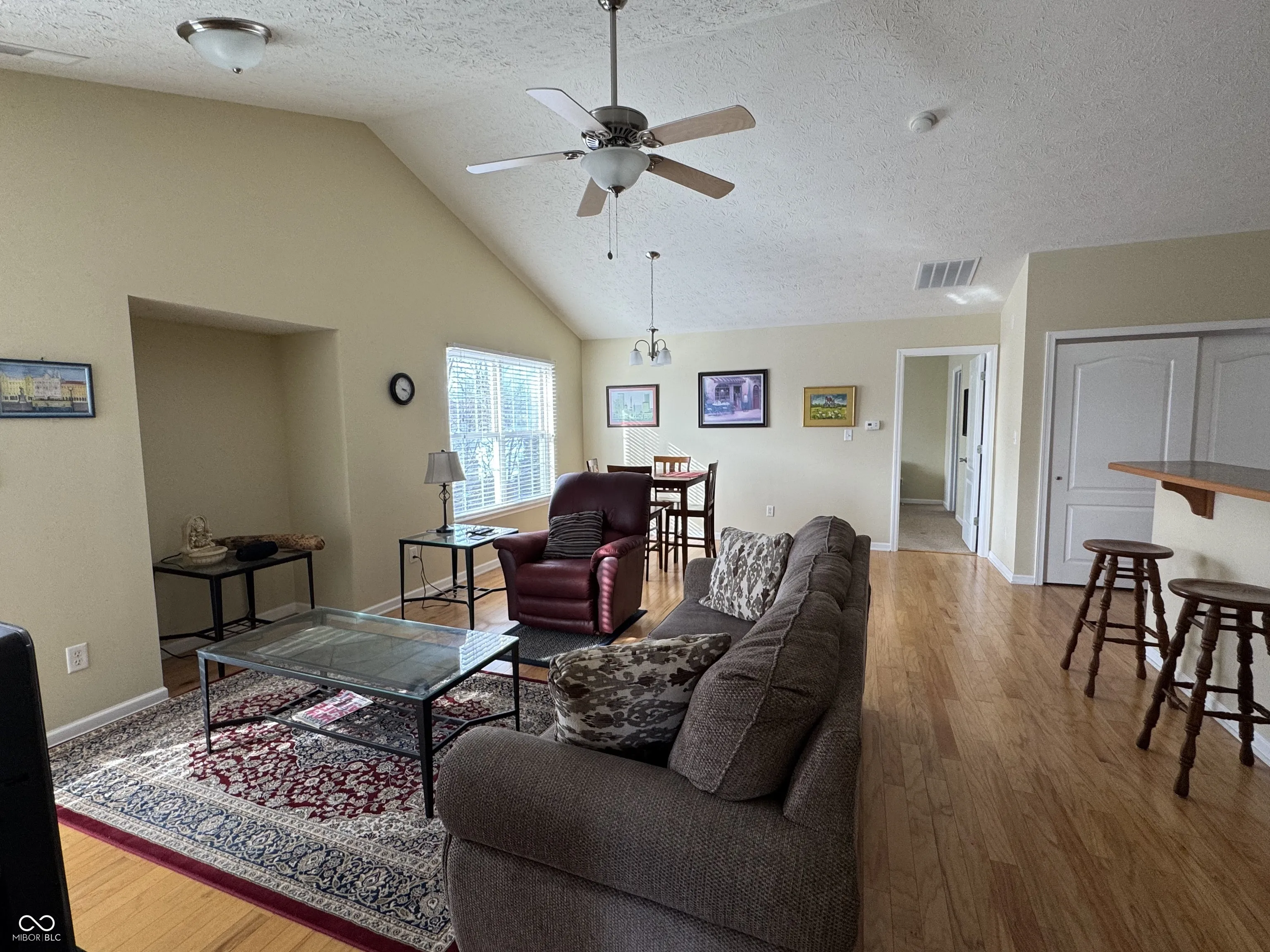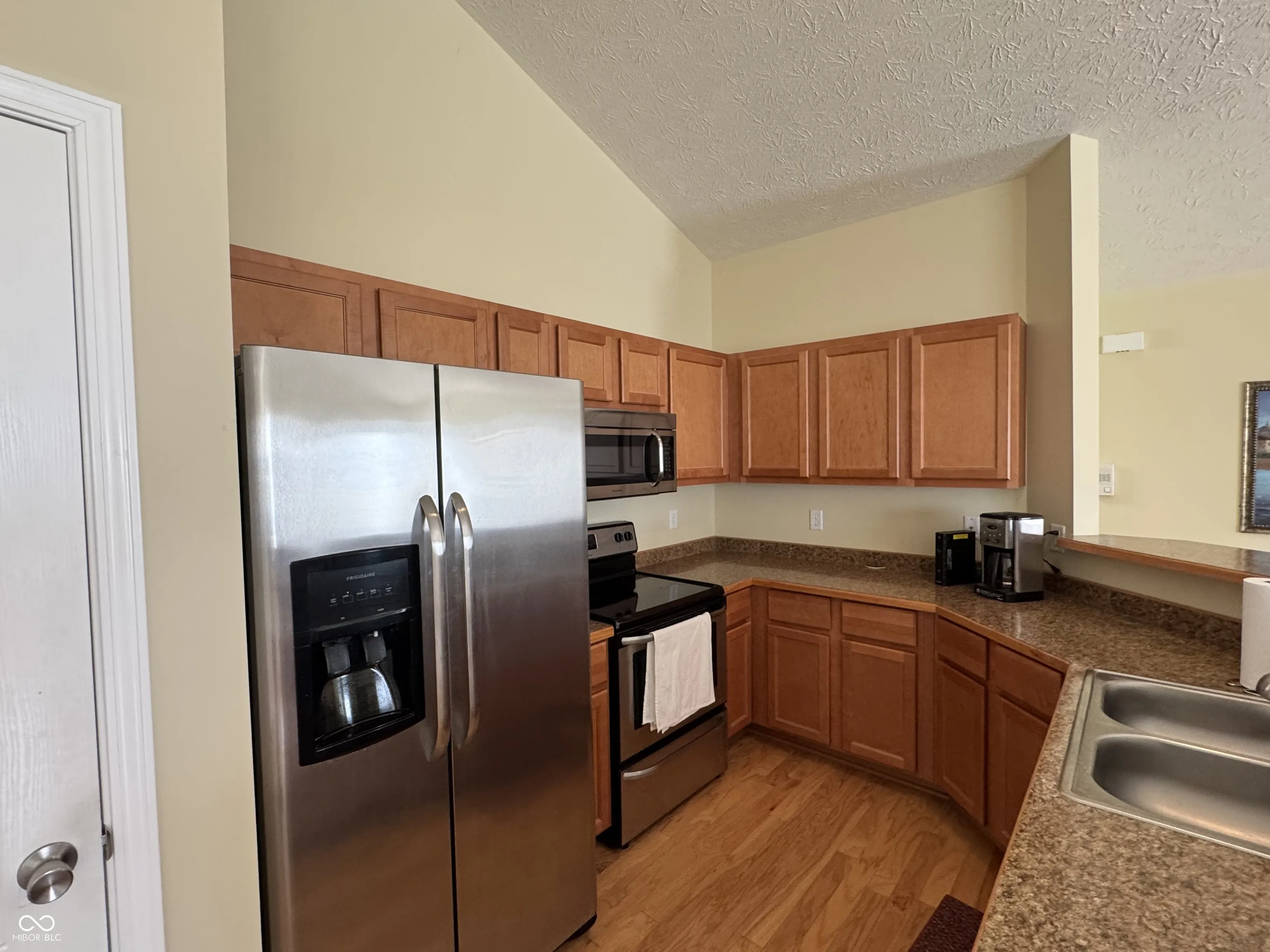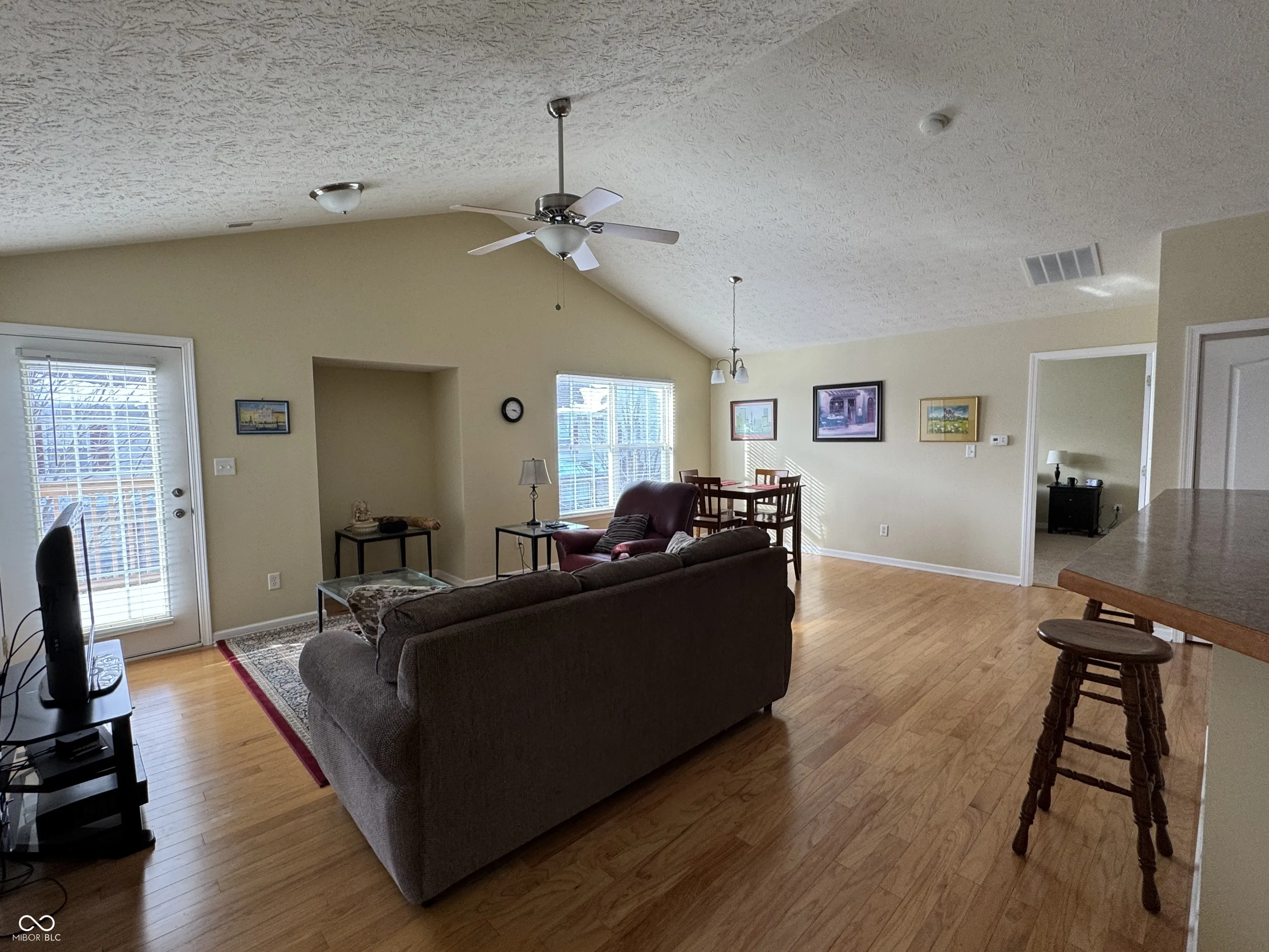 Excellent location in the quiet Blackthorne Condos neighborhood! Upper floor furnished 3 bedroom, 2 full baths, plus a large 2-car garage condo in great condition. Walk up to a sunny open concept great room and kitchen with cathedral ceilings with a split bedroom configuration. The large primary suite with walk-in closet on one side and 2 bedrooms and full bathroom on the other side. This is an end unit with two sides filled with natural light complete with a bay window and balcony/upper deck. The kitchen is open to the great room with stainless steel appliances including a ceramic top electric range with microwave, dishwasher and French doors refrigerator. Lives large with a 2-car garage. Conveniently located near shops, restaurants, industrial complex and near the Indianapolis International airport. Included in the sale: all kitchen appliances, all the furniture, wall decor, window treatments, TV and TV equipment. Excluded: personal items, no washer and dryer. Move in ready! Note: RE taxes should be approximately half of the current RE taxes with a Homestead Exemption.