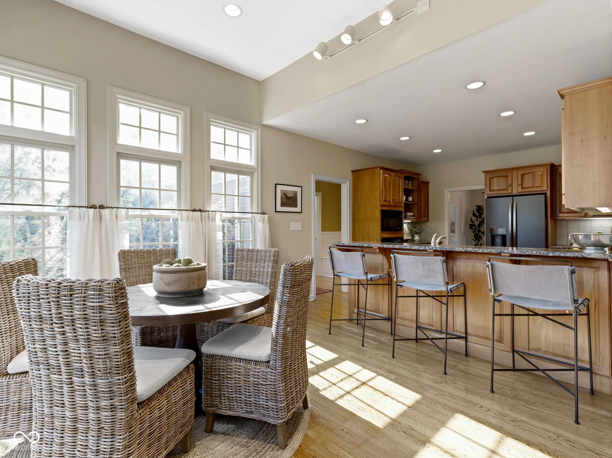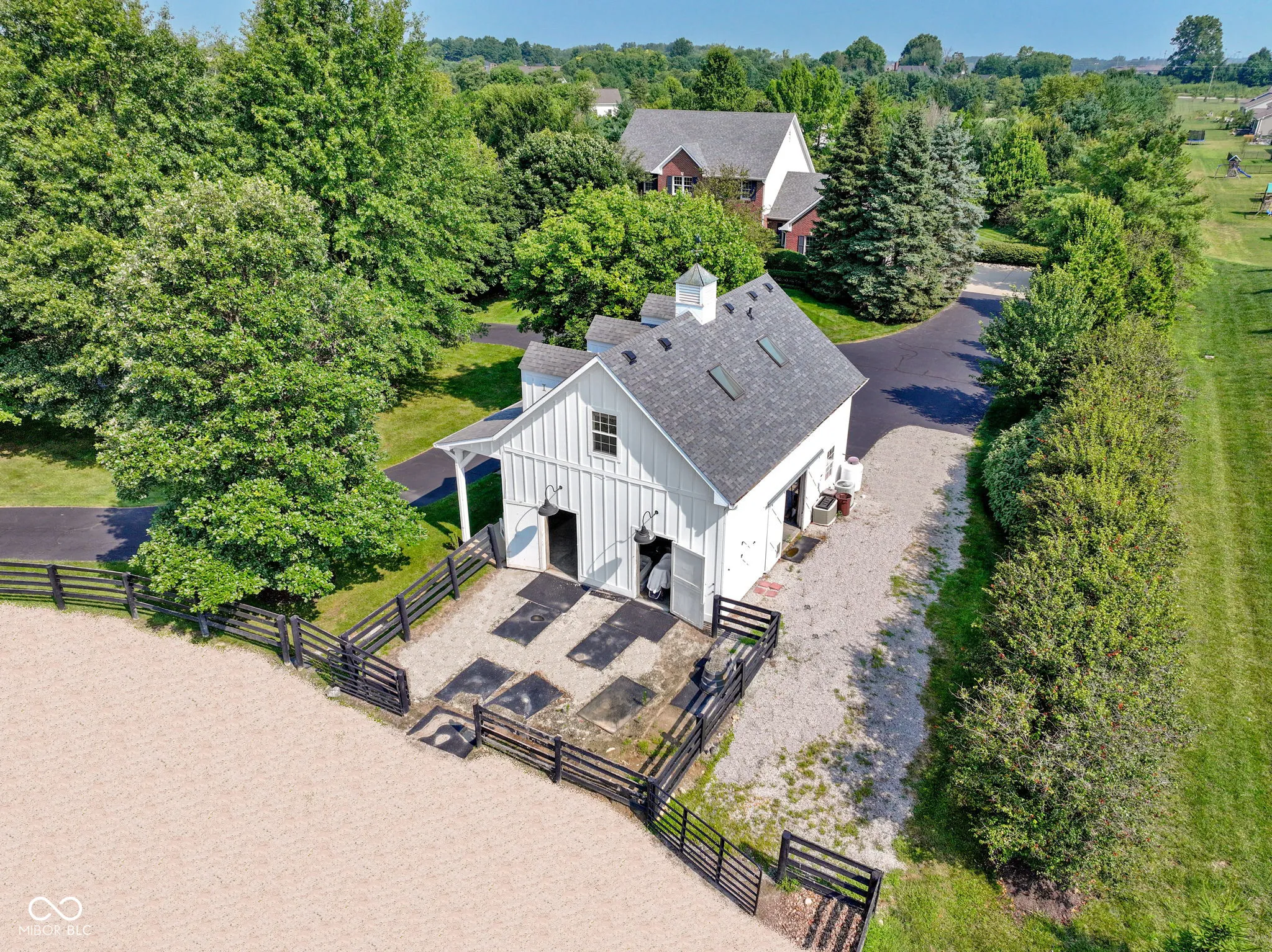 Welcome to this extraordinary custom-built home situated on 5-plus acres. Tucked away along a picturesque, winding driveway, this full-brick home sits on a beautifully landscaped property bordered by a diverse mix of mature trees, offering exceptional privacy year-round and stunning views that change with the seasons. Step inside to discover a warm, timeless interior featuring hardwood floors and inviting spaces throughout. The main-level primary suite is a private retreat with a stunning ensuite and thoughtfully designed with a dedicated hallway that connects the bedroom to the home office. Featuring French doors, custom-built-ins, and plenty of natural light, the office is ideal for working from home or a quiet sitting room. At the heart of the home, a vaulted great room with a striking brick fireplace flows seamlessly to the kitchen. Upstairs offers three spacious bedrooms and a full bath, while the finished lower level includes a fifth bedroom, full bath, wet bar, and a generous recreation area-perfect for entertaining, working out, or movie nights. Outside, you can relax on the patio, enjoy s’mores around the fire pit, or dream up designs for a future pool. Additionally, this property features a stunning barn that includes two stalls, automatic waterers, hay storage, and a tack area perfect for horses or a hobby farm. There is a finished apartment with a kitchenette and bath that provides endless possibilities. A turnout paddock leads to a professionally designed sand pad and beyond that, a lush pasture awaits your vision-be it for grazing, gardening, or play. The possibilities are endless! Minutes from Zionsville schools, shopping, dining, and interstates, this property is a rare opportunity to enjoy peaceful country living without giving up modern convenience. Whether you’re dreaming of horses, hobby farming, or a retreat from everyday life, this property is ready to bring your vision to life.
