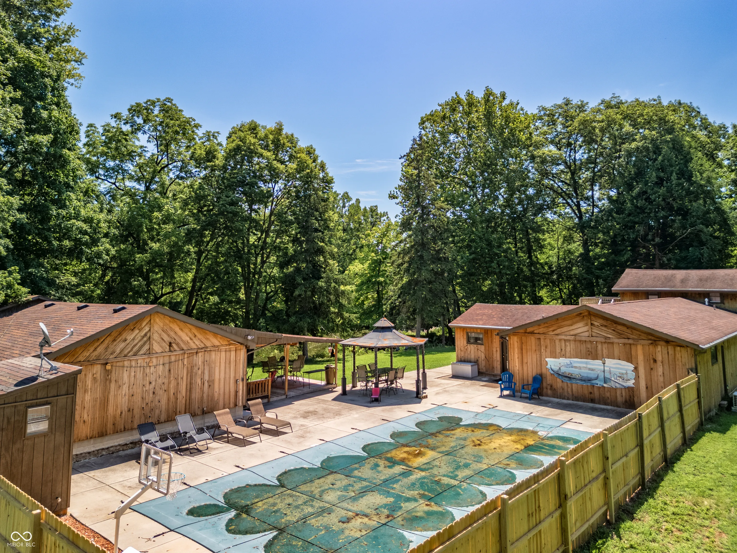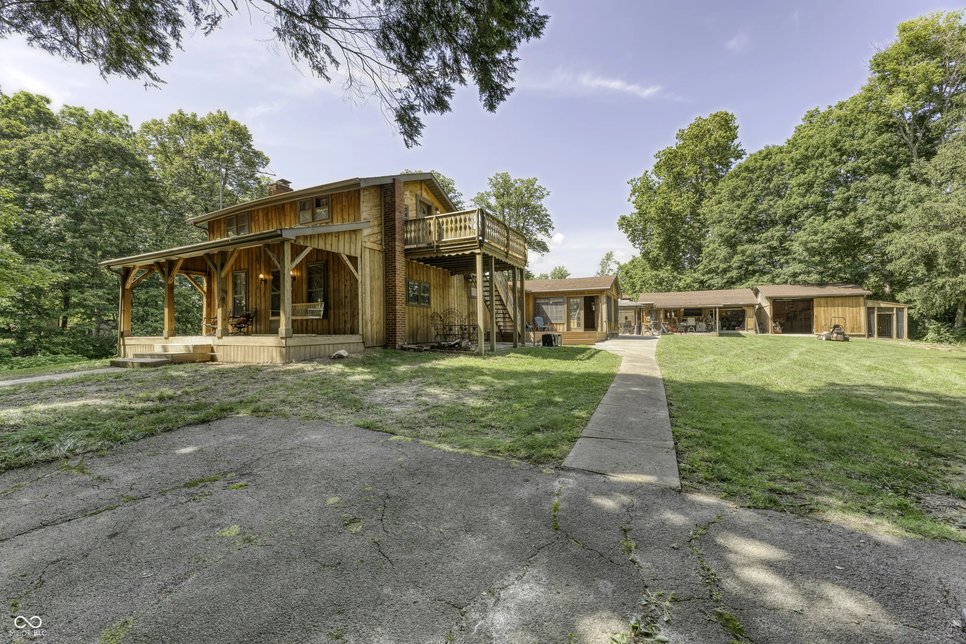 Enjoy your own slice of Heaven ideally situated on a 4 acre Lot with your own private Pond with an Island access by a walking Bridge. The original Cabin dates back to the early roots of Elwood history, where it was once a Retreat destination for the Town’s Doctor. Fast forward to today and you still have a perfect spot for an easy get away spot for family and friends. Entertain with multiple Outdoor Living spaces. The 40 X 20 Pool with privacy Fence includes a large Pool Deck and 1/2 Bathroom. The Pool Rec Room measures 23 X 17, offering a Bar & Service Window to the Outdoor Living & Dining areas. Multiple Outdoor Living spaces to sit and enjoy this peaceful setting. You will find ample storage area in the 24 X 20 Outbuilding with a 24 X 08 Loft & Chicken Coop. The Upper Level Loft area of the Cabin would make a great spot for a Dorm room type area for the children, or perhaps as a Home Office. The 2nd Bedroom can offer flexibility in its use as well. Additions to the Cabin over the years include a large Kitchen and Hearth/Dining Room space. The large Primary Bedroom includes a 12 X 10 Sitting Room and private Bathroom. Feel the history of the Cabin and the Land sipping on Lemonade or fresh Tea while relaxing on the original charming Front Porch. Open up the Artesian Wells for naturally filtered ground water. Cross over the Bridge onto your own private Island and camp for the night, or spend the day fishing. Properties like this simply do not come along very often.