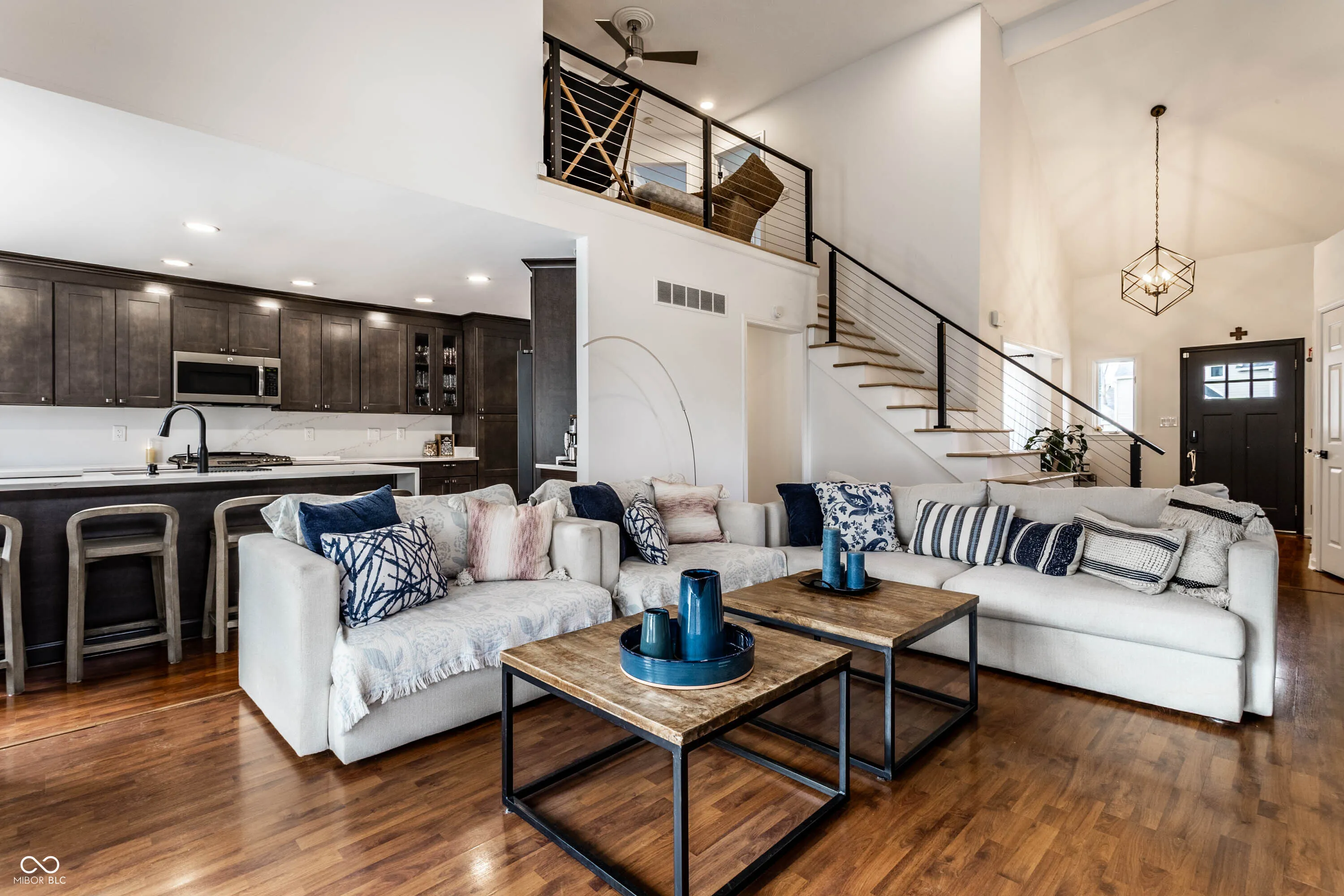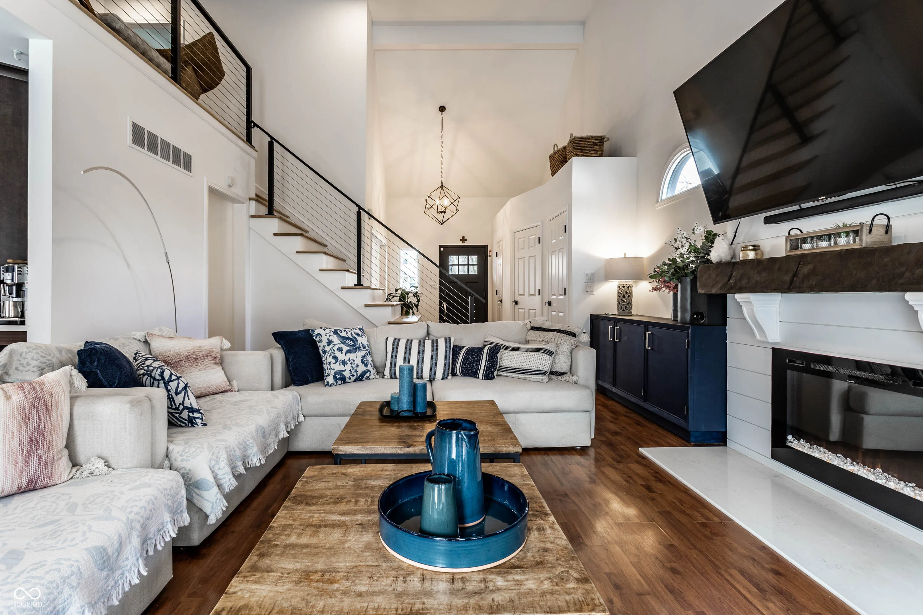Exquisite Renovated Home in the Heart of Zionsville’s Village Discover the perfect blend of modern luxury and timeless charm in this beautifully renovated home, featuring high-end finishes and state-of-the-art smart home upgrades throughout. The vaulted Great Room, complete with a new electric fireplace, creates a warm and inviting ambiance. The fully updated kitchen boasts white quartz countertops, a stylish backsplash, a Samsung smart refrigerator, and GE slate appliances, seamlessly complementing the elegant dining area illuminated by a striking black iron chandelier. The primary suite offers a spacious walk-in closet with a newly installed glass divider (2023) and a spa-like bathroom, providing a serene retreat. A renovated half-bath enhances convenience on the main level. Upstairs, three spacious bedrooms shine under new LED lighting, accompanied by a beautifully updated full bathroom. The newly installed wooden staircase with iron-and-steel railing adds a sophisticated touch to the home’s aesthetic. Outdoors, the freshly painted deck and exterior overlook a fully fenced backyard, ensuring privacy and an ideal space for relaxation. Additional enhancements include a new LG ThinQ washer and dryer (2023) with a quartz countertop, a new Rheem water softener (2024), as well as smart lighting, updated electrical outlets and switches, a RING security system with cameras, and a newly installed garage door and Andersen front window. Located just blocks from Zionsville’s finest dining, shops, trails, and parks, this home is truly a must-see.