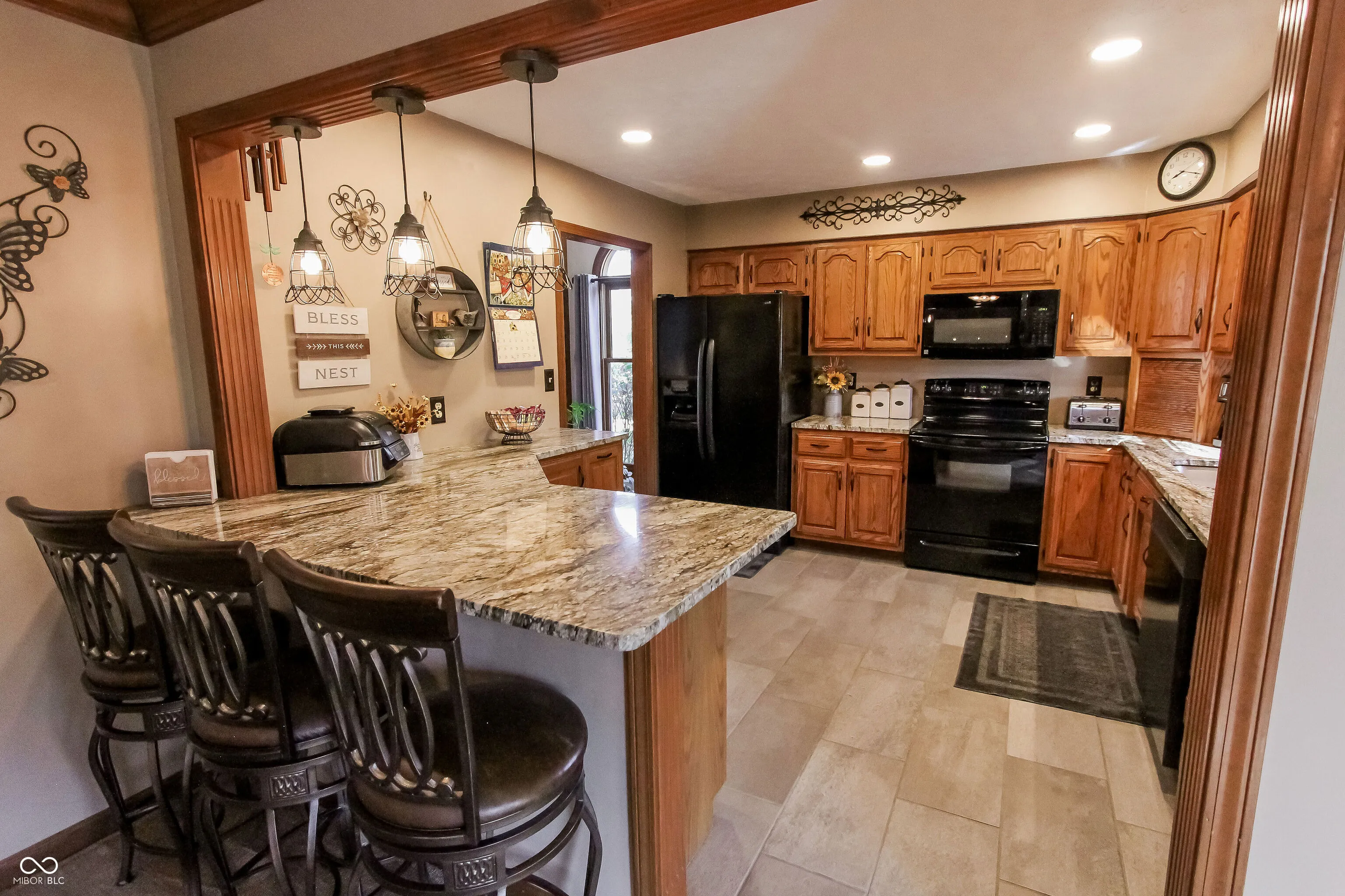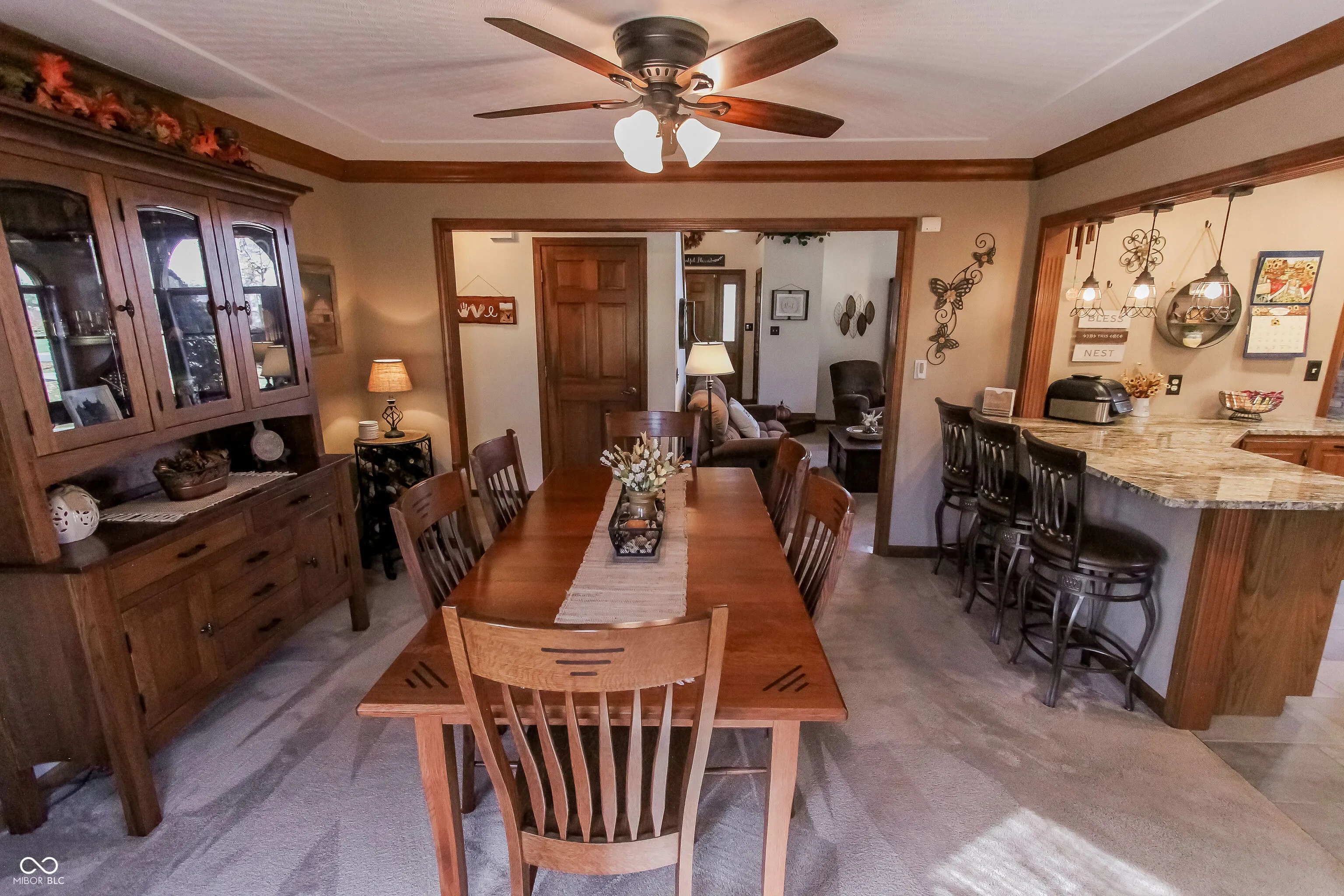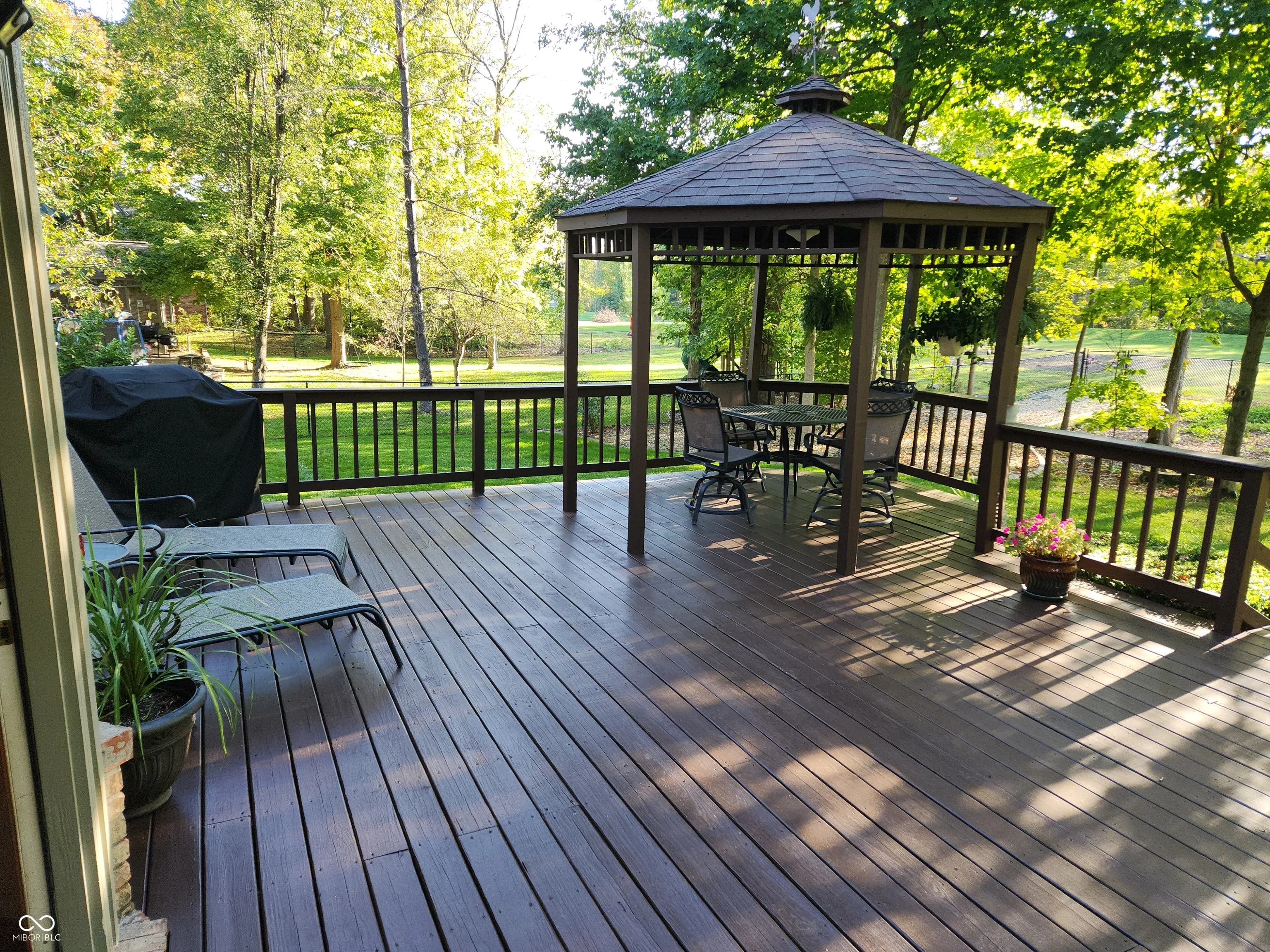 PRICE REDUCED!! Nestled in the highly sought-after Schildmeier Village and Sugar Creek Township school system, this custom-traditional American home boasts an open concept design with a grand wood-burning fireplace, perfect for entertaining or cozy nights in. The formal dining room leads to a large custom wood deck with a lighted gazebo and Royal Spa, offering privacy and seclusion surrounded by mature trees. The spacious kitchen features modern appliances, granite countertops, ample storage, and a custom bar for added charm and counter space.The lower level includes a generous bedroom with a walk-in closet, ideal as an office or guest room, plus an updated laundry area with extra storage and a utility sink. Upstairs, a grand loft with a sitting window overlooks the living area, with two bedrooms and a full bath. The larger bedroom is pre-wired for a home theater system. The primary suite offers a jet tub, updated shower, and an impressive walk-in closet. Additional features include a BRAND NEW high efficientcy furnace installed 02/2025, large unfinished attic for storage, a freshly painted 3-car garage with shelving, irrigated lawns and full camera and alarm system ensure security. Conveniently located near shopping, restaurants, and parks, this home offers easy access to all things NP & Indianapolis. Indianapolis.