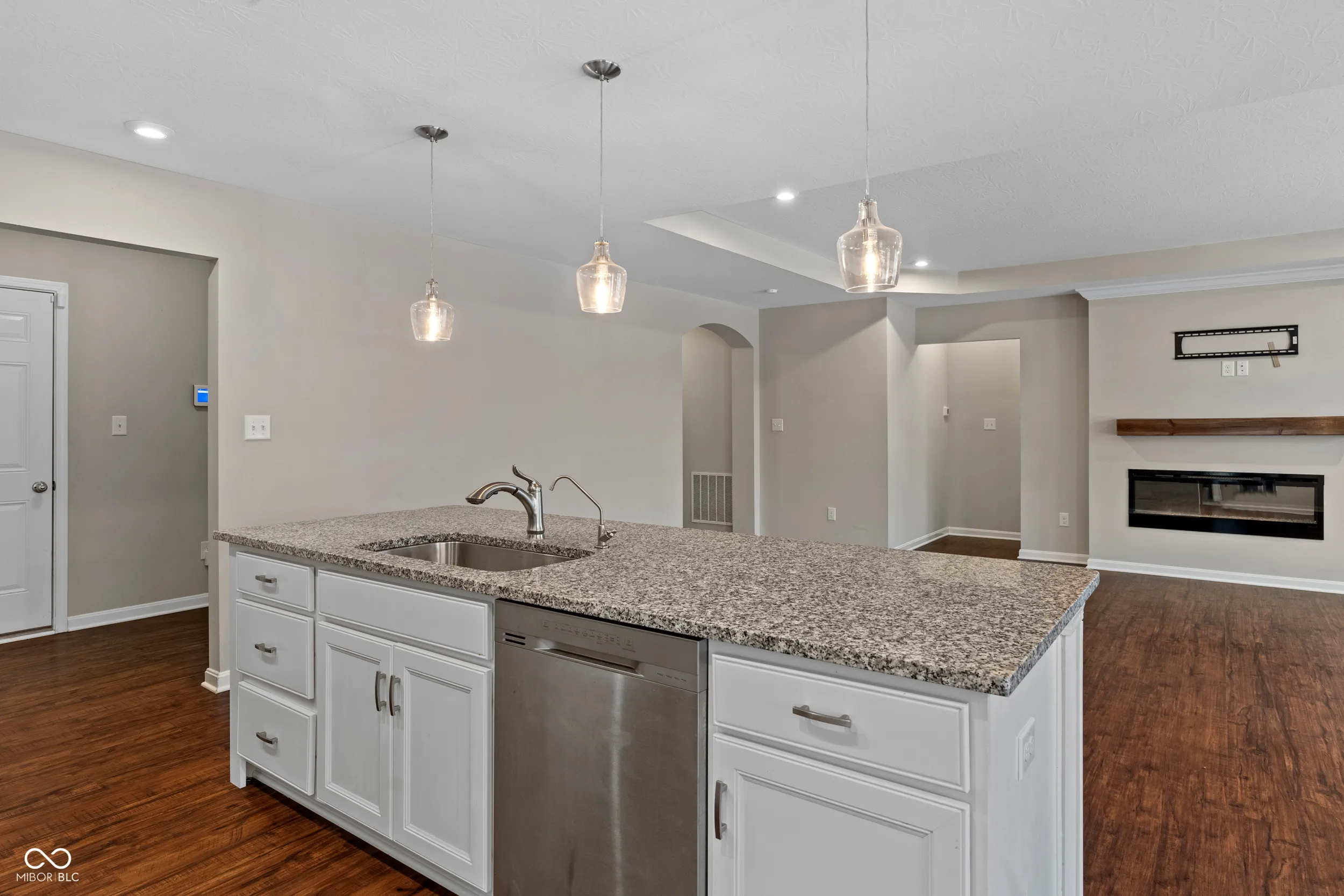 Stylish Preston American Classic plan by Fischer Homes in beautiful Woodhaven. The original study has been converted to a third bedroom by closing off the French doors and adding a closet. Open concept design with a massive island, granite countertops and upgraded maple cabinetry with 42-inch uppers, vinyl plank flooring, walk-in pantry and walk-out morning room to the 12×12 covered patio with beautiful pond views, all open to the large family room wall mount fireplace. Owners’ suite includes double bowl vanity, walk-in shower and walk-in closet. Split bedrooms offer privacy. Laundry room is just off the kitchen. Upgraded overhead lighting in the owner’s suite and second bedroom has an app to adjust for mood lighting. So much to enjoy and move-in ready, just waiting welcome you home!