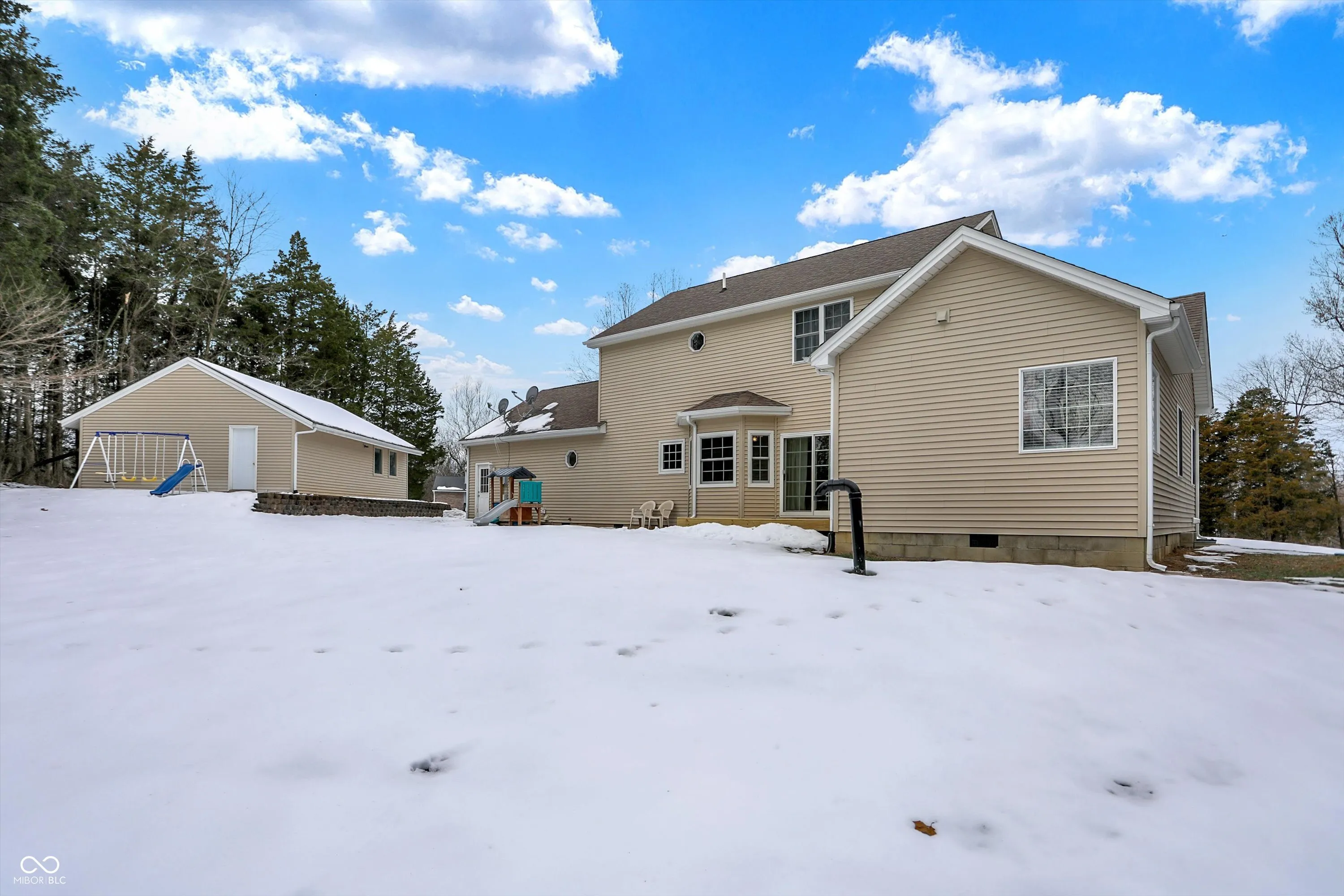 Move In Ready, 3 Bedroom, 2.5 Bath, home which sits on a large beautifully manicured, landscaped lot – the Curb Appeal with the Large Covered Front Portch is sure to catch your eye. This beautiful home has just over 2300 SF of Living Space and features an abundance of Natural Light. The Main Level features an Open Kitchen/Living Room Layout with Gas Fireplace & Hardwood Floors, Dining Room, Home Office, Laundry Room and Large Primary Suite. The Kitchen features an abundance of Cabinets, Kitchen Island/Bar, Pantry, & Stainless Steel Appliances. Spacious Primary Suite features Double Sinks, Garden Tub/Separate Shower, Walk-In-Closet. On the 2nd level there is a large Family Room/Play Room, and 2 Bedrooms connected by a Jack-and Jill Bath. There is an Attached Two Car Garage, plus a 768 sq.ft. Detached Garage. Located in Country Meadows Subdivision, this Home is a Must See !!