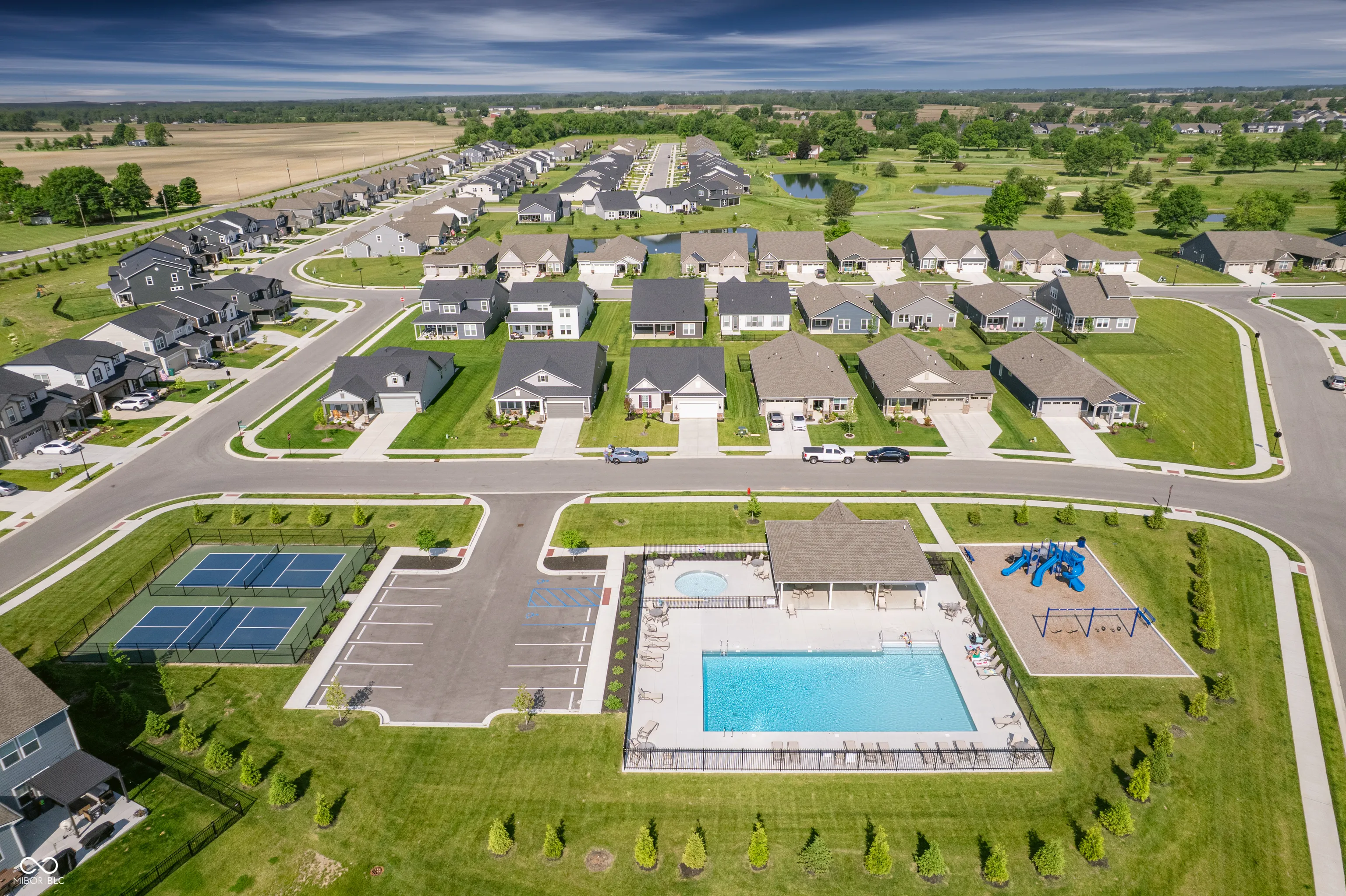 Experience effortless living in the Prosperity floor plan at Cardinal Pointe, a beautifully designed single-story home that blends elegance with modern convenience. The heart of the home is the open-concept kitchen, featuring 42″ Stone Gray cabinets, quartz countertops, island and built-in appliances, including a 36″ gas cooktop and a wall oven with microwave. A spacious pantry and a cozy cafe space provide both functionality and charm. The flowing layout seamlessly connects the kitchen to the main living areas, creating an inviting space for both relaxation and entertaining. Retreat to the luxurious Owner’s Suite, offering dual vanities, a generous walk-in closet, and a tiled shower. Thoughtfully designed for privacy, the secondary bedrooms are set apart from the Owner’s Suite. A garage extension adds extra storage and flexibility to this already impressive home. Cardinal Pointe offers exceptional community amenities including a private pool, pickleball courts, and a playground-perfect for active and relaxed lifestyles alike. Residents also enjoy exclusive access to the Golf Club of Indiana with a social membership that includes advanced tee times, merchandise discounts, and complimentary clinics at the Golf Pro-Performance Academy. The 175+ acre course features over 7,000 championship yards and 15 water holes, delivering a dynamic experience for all skill levels. Located less than a mile from I-65 with easy access to I-465, Cardinal Pointe is just minutes from downtown Zionsville and W 86th Street.