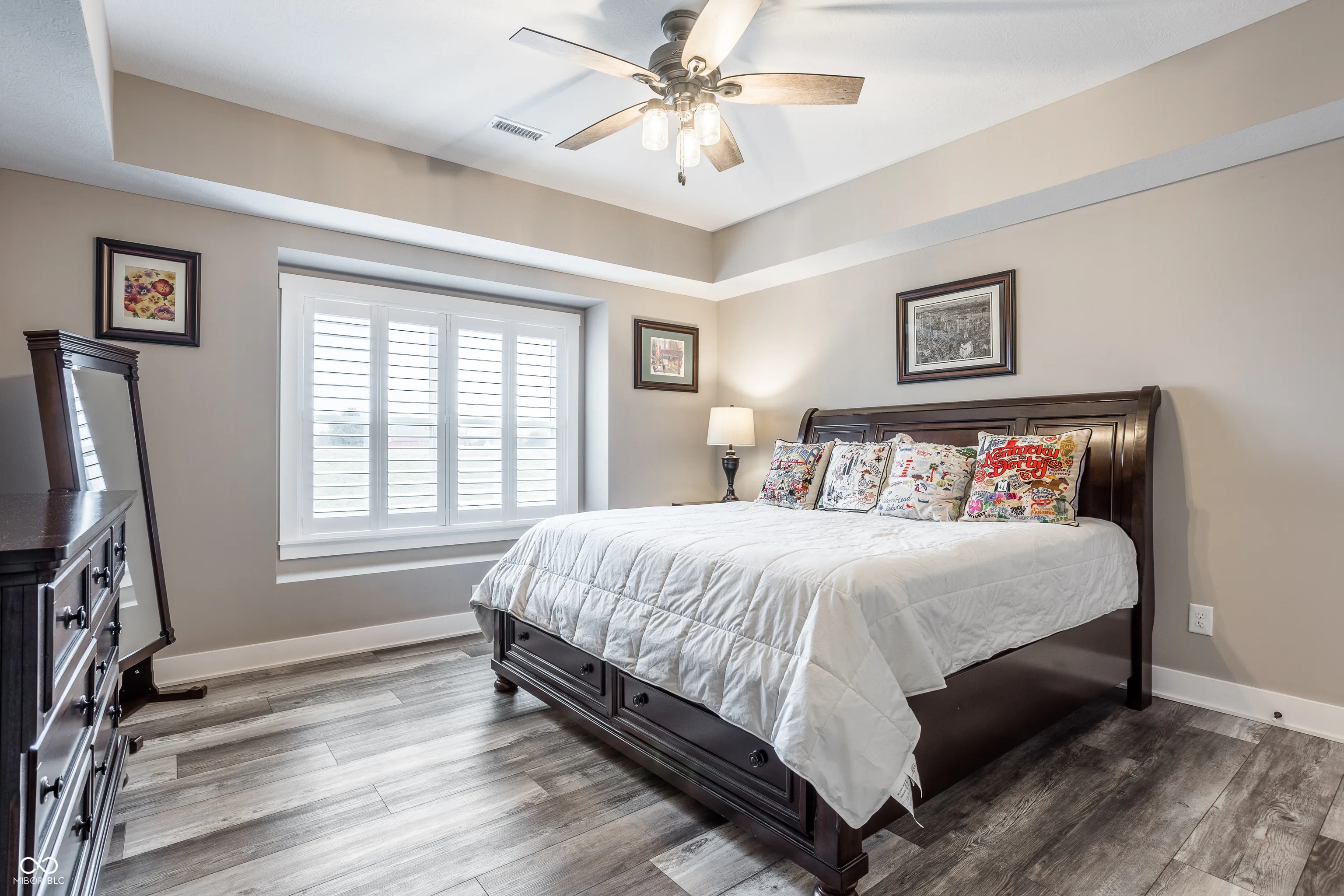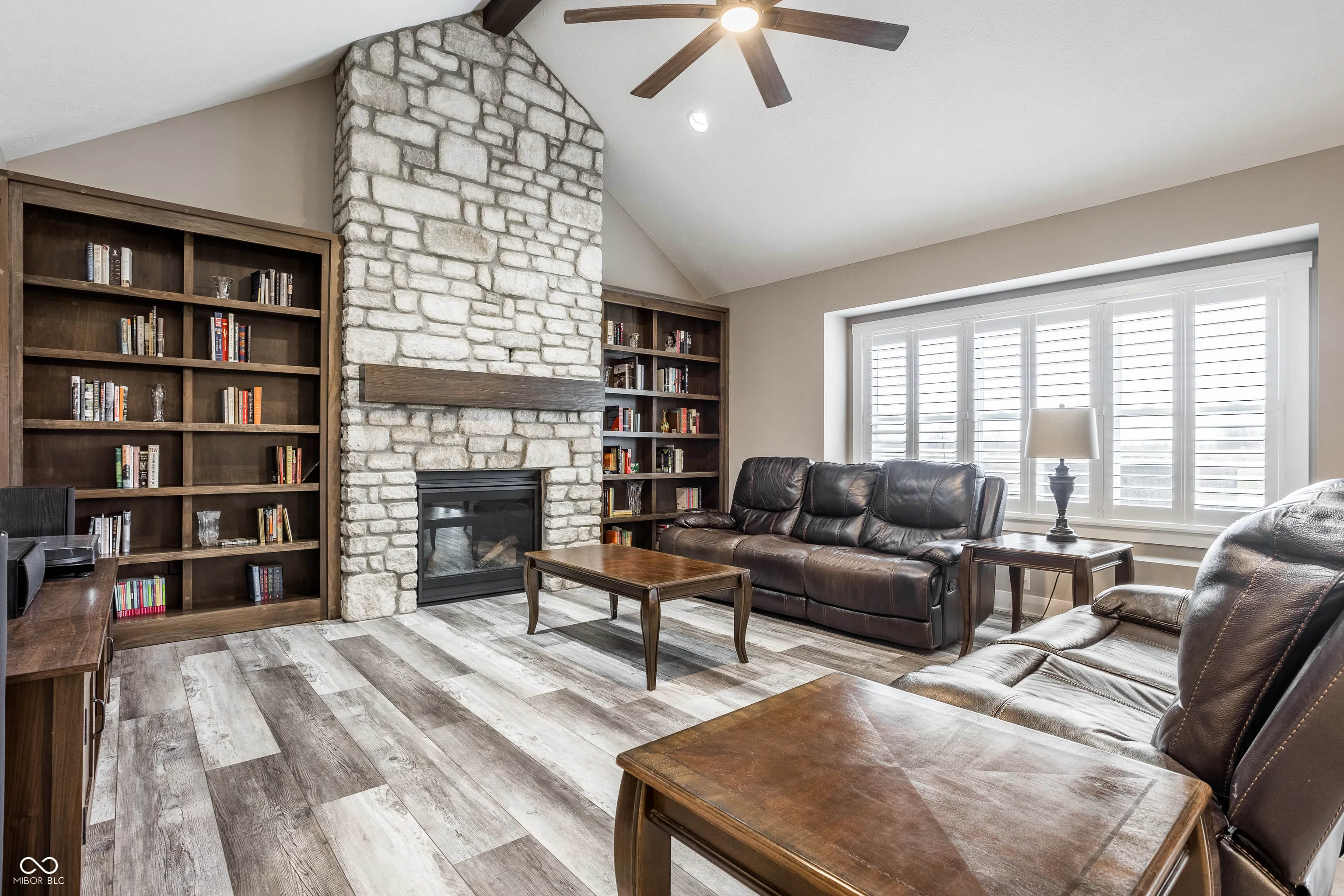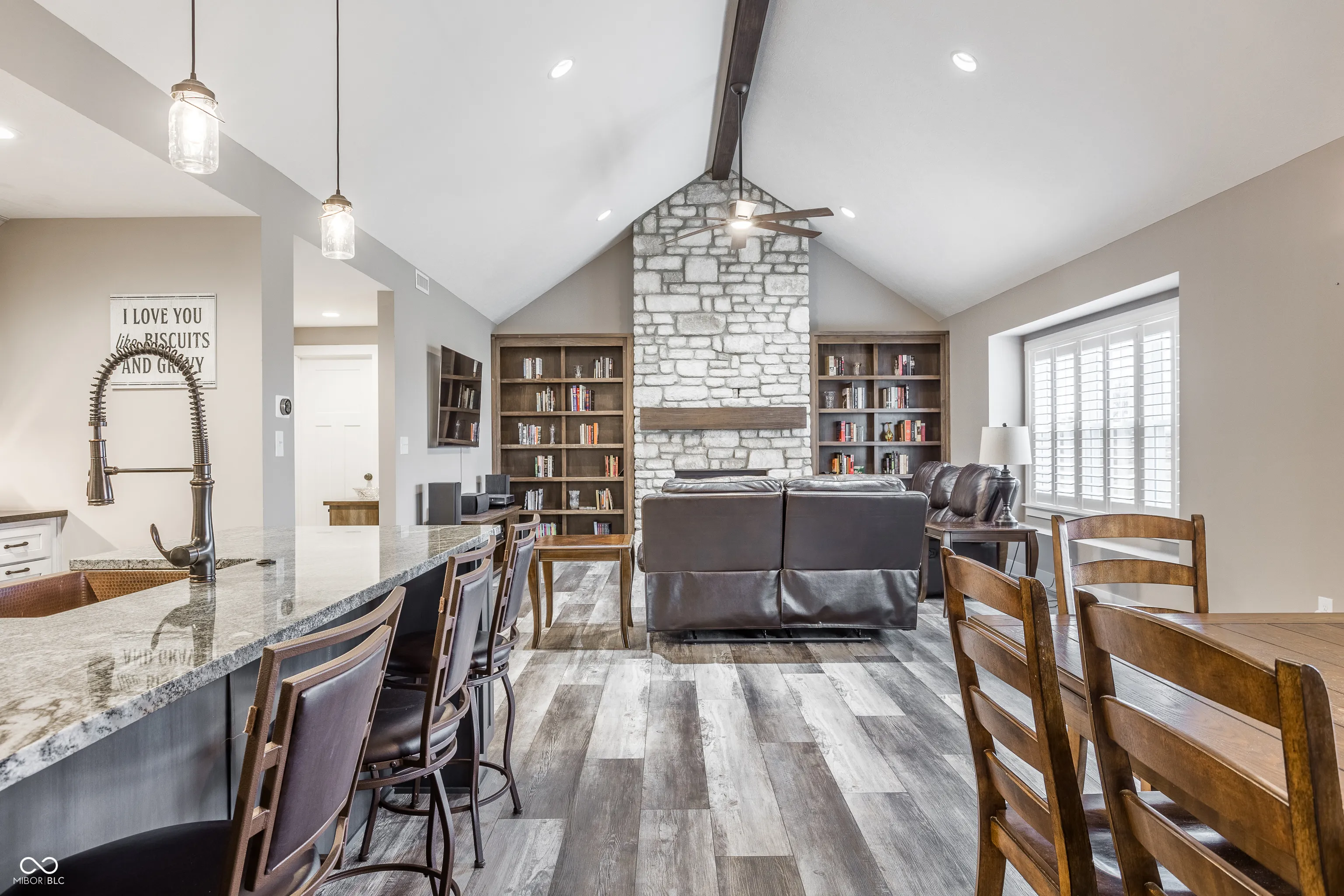 This like-new custom home by P & W Development offers everything you could wish for in new construction without the wait! This open and inviting floor plan is current and on trend with vaulted ceilings, large windows with plantation shutters, and a gourmet kitchen ideal for entertaining. The gorgeous kitchen features a large center island well equipped for any chef with granite counters, double ovens, gas range, and ample counters and cabinet space. Don’t miss the walk-in pantry! The great room is warmed by a gas fireplace set inside beautiful floor to ceiling stone mantel and flanked by beautiful built-ins. A main floor primary suite is a tucked away retreat with large bedroom and a plush ensuite bathroom with garden tub, expansive separate shower, dual sinks, and walk-in closet. The upper level is host to an enormous loft space with ample opportunities – additional hang out space, hobby room, or work-from-home – the possibilities are endless. Outdoor entertaining space includes covered and uncovered patio in the rear yard and welcoming front porch! You’ll have to see for yourself all this exceptional home has to offer.