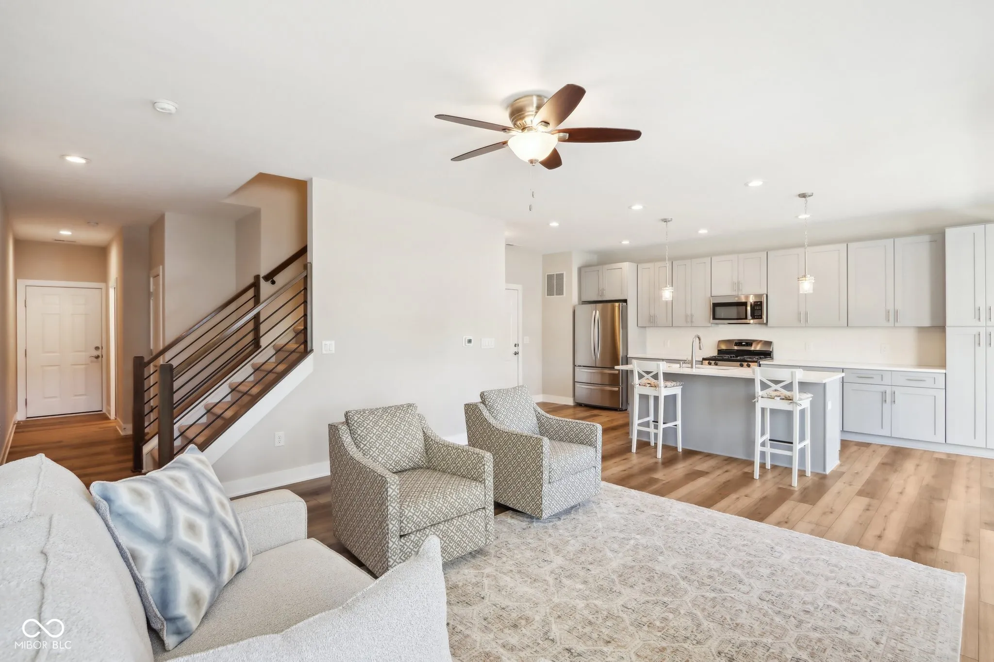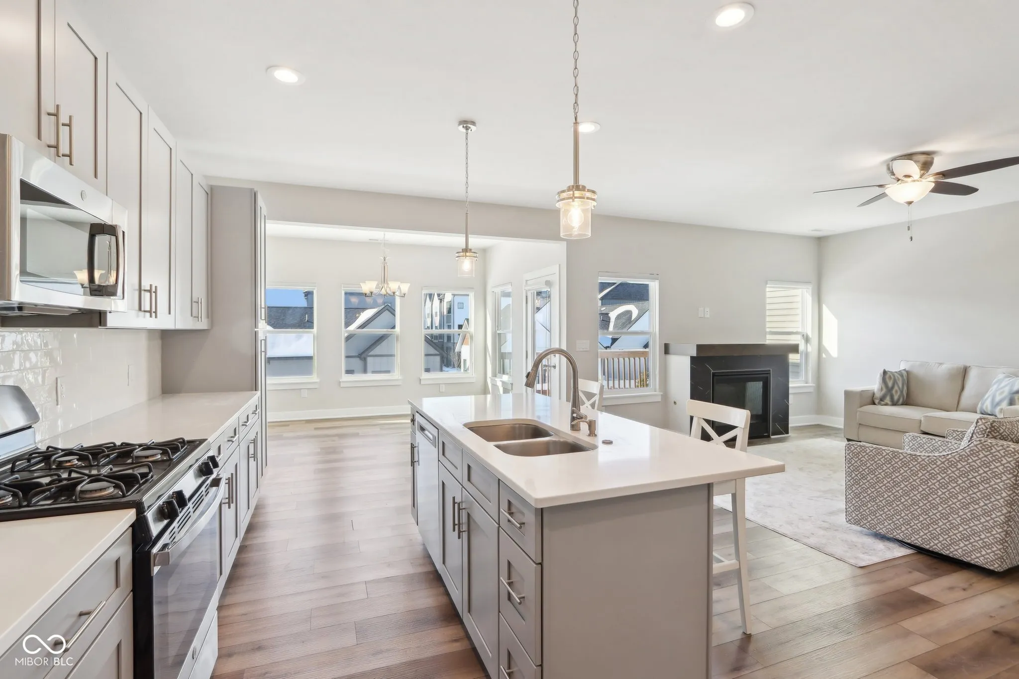 Have you been looking for a low maintenance lifestyle in the perfect Fishers location? You found it! Step into this better than new 3 level condo to find LVP floors throughout the main level. A half bath just off the entry is perfect for guests. Living room is sized for entertaining, has a cozy gas fireplace and evening sun from the west. Open floor plans flows into the kitchen with large island, quartz countertops and stainless steel appliances. Adjacent to this area is a dining area overlooking the backyard and a door stepping out onto the deck. Head upstairs to find two nicely sized secondary bedrooms with large closets and an adjacent full bath with tile floors and quartz countertops. Master suite is spacious and features tray ceiling as well as a large walk-in closet. Master bathroom has a glass door, fully tiled shower, tile floors, and double vanity with quartz countertops. Walkout basement features two bonus rooms perfect for another living space, office, fitness area or whatever you desire. Off of the basement is a covered patio with steps to grade. Two car attached garage allows for plenty of storage and parking for 2 cars. Neighborhood is well maintained and features a walking trail to the Fishers District – a dining and entertainment area featuring 1933 Lounge, Sun King, and many other great options. Also nearby is the new Fishers Event Center – home of the Indy Fuel and tons of other great events! HOA covers all exterior maintenance, lawn care, snow removal, water and sewer! Come take a look today.