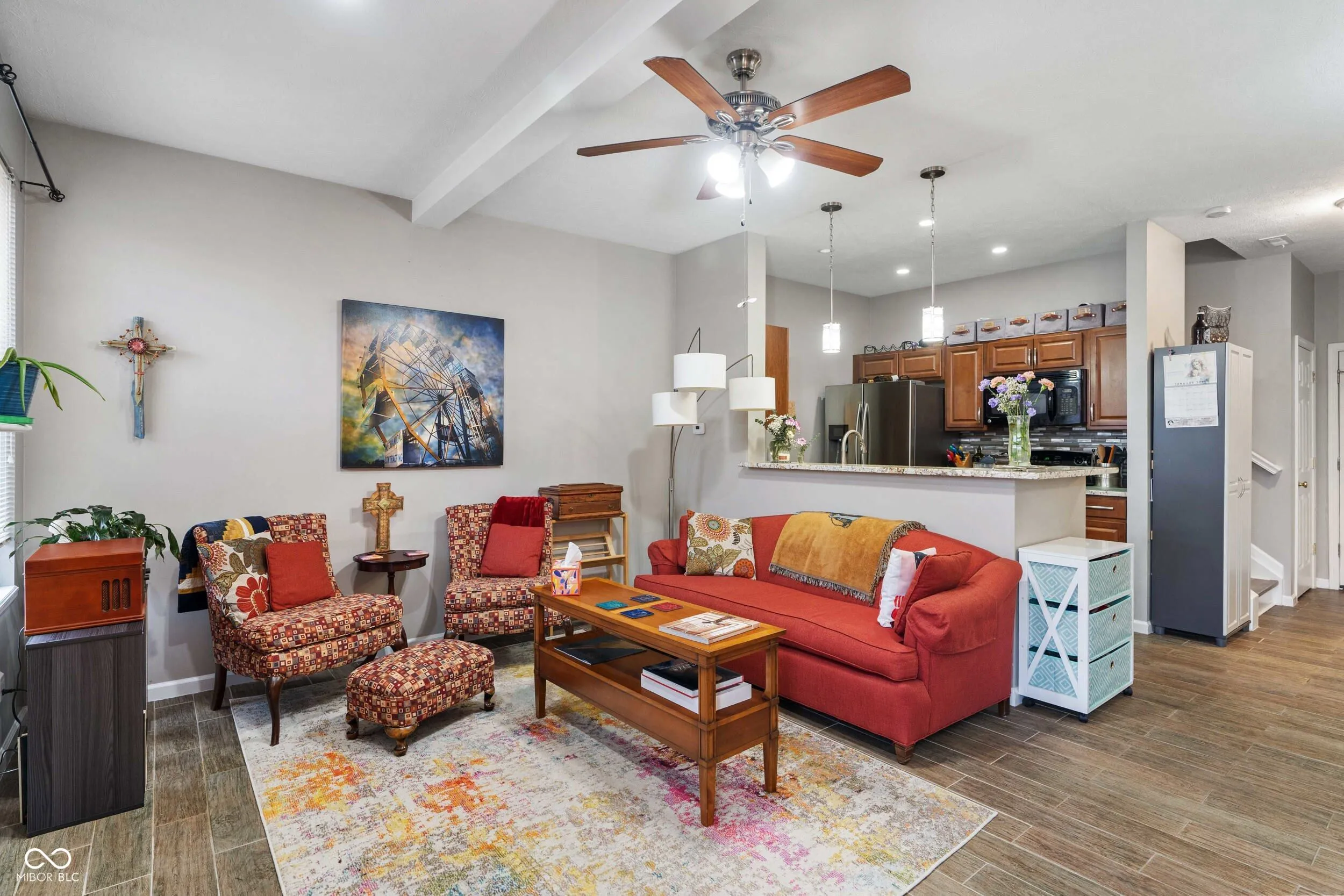 This 2-level end-unit condo offers a bright and open layout, thoughtful updates, and a prime location at the end of a quiet street with no through traffic. Featuring 2 bedrooms, 2.5 bathrooms, and a bonus room/library, this home is move-in ready with modern conveniences and stylish finishes throughout. Inside, the open floor plan seamlessly connects the updated kitchen, dining area, and family room. The electric insert fireplace adds a cozy touch, while large windows bring in natural light and provide a beautiful pond view. A large open patio offers the perfect space for outdoor relaxation. Upstairs, the primary suite boasts a spacious walk-in closet and a private bathroom with a separate soaking tub and walk-in shower. The second bedroom, a full hall bath, and a versatile bonus room/library complete the second level, offering additional space for a home office, reading nook, or flex room. The upstairs laundry room adds extra convenience. New luxury vinyl plank flooring upstairs and new tile downstairs bring a fresh, updated feel to the home. Additional upgrades include a new gas water heater, air conditioner and coils, water softener, washer, garbage disposal, and updated faucets in the kitchen and bathrooms. The built-in bookshelves in the library and TV are included, making this home even more move-in ready. With its quiet end-of-street location, finished 2-car garage, and low-maintenance lifestyle, this condo offers the perfect blend of space, comfort, and convenience. Just minutes from shopping, dining, and everyday essentials, this home is a must-see!