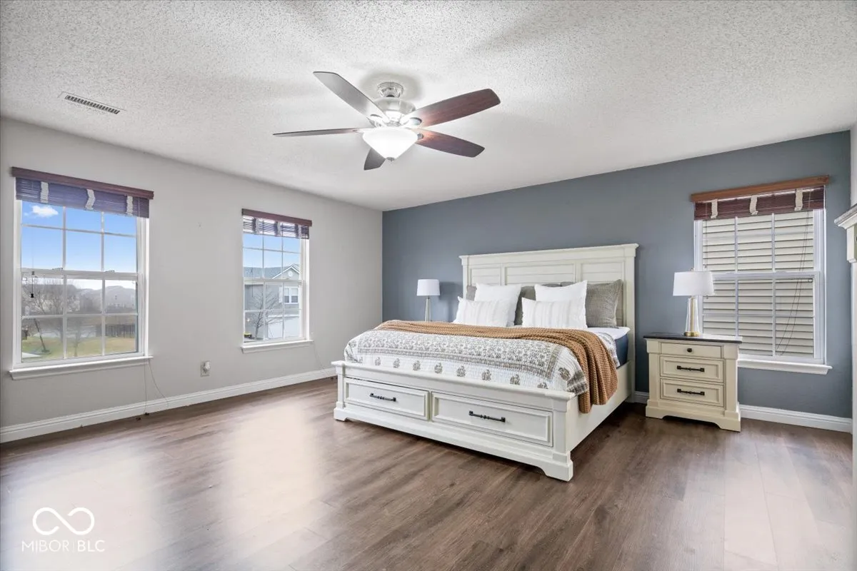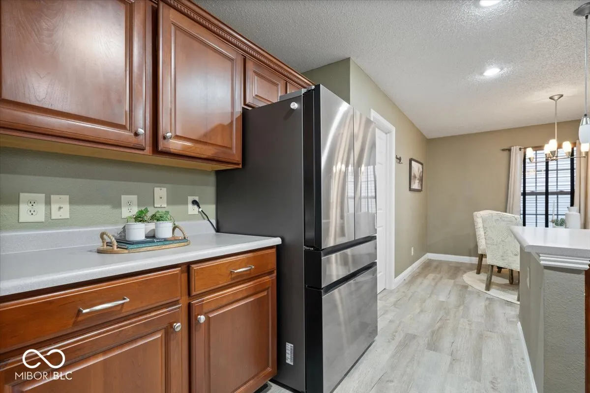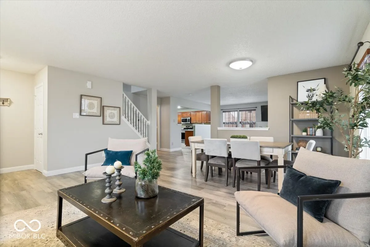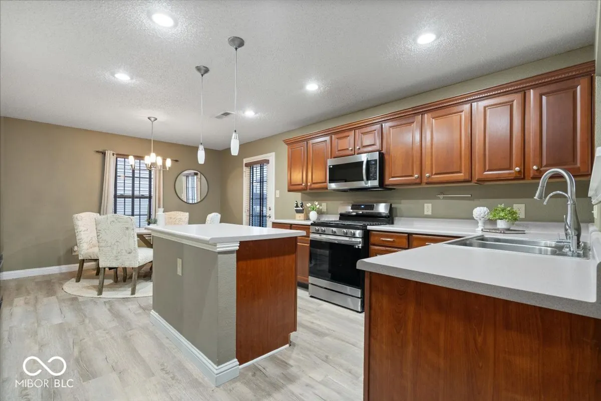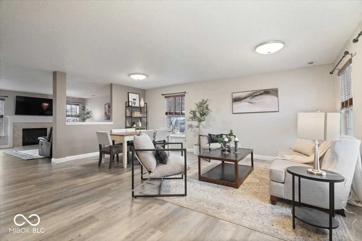 Welcome to this stunning 3-bedroom, 2.5-bathroom two-story home, perfectly situated on a coveted corner lot in a prime location. From the moment the front door opens, the expansive floor plan captivates, designed for both comfort and style. The sprawling great room seamlessly flows into the living and dining areas, anchored by a cozy gas fireplace that adds warmth and charm-ideal for gatherings and entertaining. Luxury vinyl plank flooring extends throughout the entire home, enhancing both durability and elegance, while numerous thoughtful updates add to its appeal. The kitchen is a true showpiece, boasting a generous center island, upgraded appliances, a spacious walk-in pantry, and effortless access to the breakfast nook and backyard-perfect for sipping morning coffee or hosting summer barbecues. Ascending to the upper level, a versatile loft offers endless possibilities, whether used as a home office, playroom, or additional living space. The primary suite is a private retreat, featuring dual vanities, a walk-in closet, and a beautifully tiled shower with a large soaking tub for ultimate relaxation. Two additional bedrooms share a well-appointed hall bath with a tub/shower combo.Designed for both entertaining and everyday living, this home offers multiple living spaces and a seamless layout. Ideally located just minutes from Cyntheanne Park and scenic campgrounds, with easy access to I-69 and IN-13, and a short drive from the charming towns of Pendleton and Fortville.