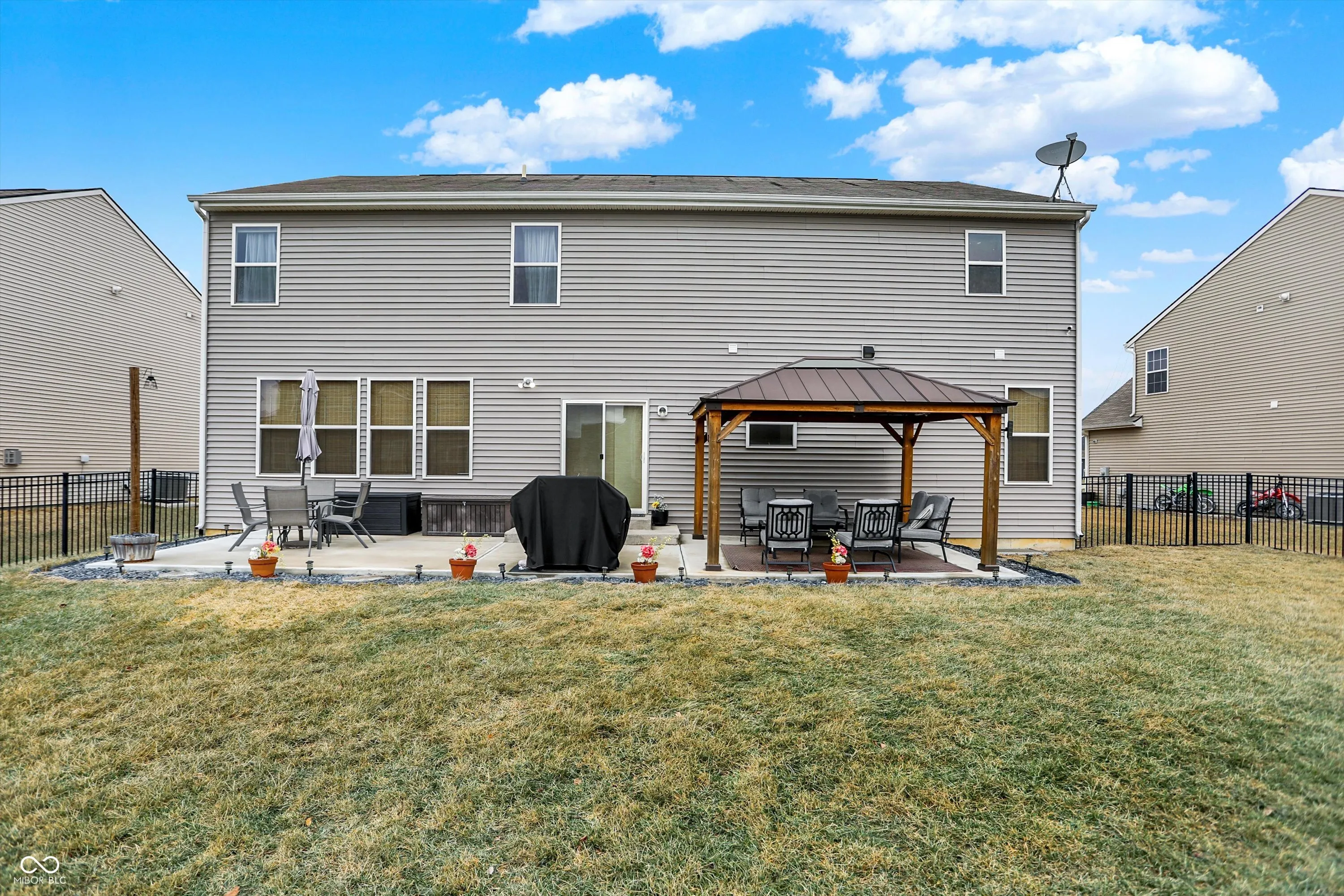 Nestled in a desirable neighborhood, this stunning 5-bedroom, 4.5-bathroom home offers luxurious living with thoughtful design and upgrades throughout. The gourmet kitchen boasts stainless steel appliances, Quartz countertops, and a spacious island, perfect for culinary creations and entertaining. Granite countertops elevate the elegance of the bathrooms, including the spa-like primary suite featuring a garden tub, a separate walk-in shower, and a dual vanity. The open floor plan provides abundant natural light, while the fully finished basement offers endless possibilities for recreation, complete with a dedicated entertainment area. Step outside to the concrete patio with a charming gazebo, ideal for hosting gatherings or relaxing in the shade. Every detail has been considered, from the cozy fireplace in the living room to the ample storage and modern fixtures. With five spacious bedrooms, including a serene primary suite, this home is perfect to accommodate those seeking additional space. Don’t miss the chance to make this dream home yours!